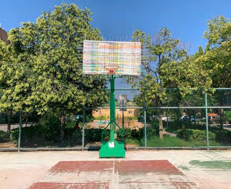 Over a 10-day residency combining fieldwork and social practice, the project treats mapping as a way to read, act in, and re-compose a neighbourhood. Last year, under Grandma Ma’s guidance, workshop participants learned a weaving technique to functionally repair a chair— testing how vernacular craft sustains use and memory. This year, a new cohort applied the same technique to an abandoned basketball hoop, pursuing an artistic repair rather than a structural fix. The woven intervention does not restore playability; it restores attention. By wrapping and re-inscribing a familiar but neglected object, the work asks the community to see care, maintenance, and shared responsibility as public values. In this shift, from object utility to relational visibility—the project frames art as an act of making-visible, and repair as a language for mapping social ties.