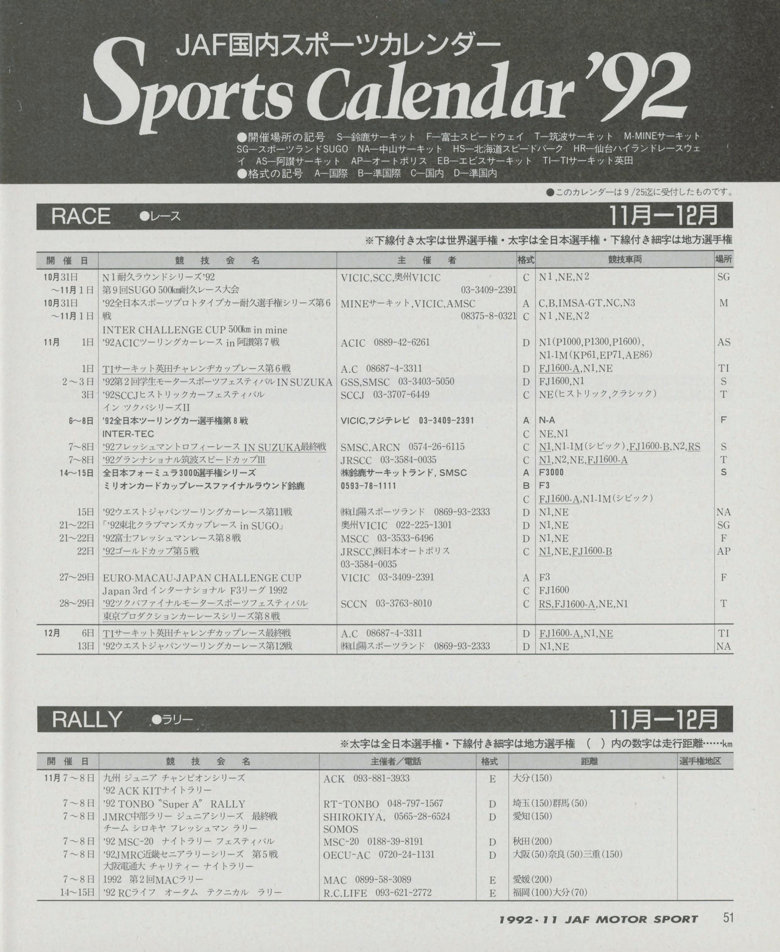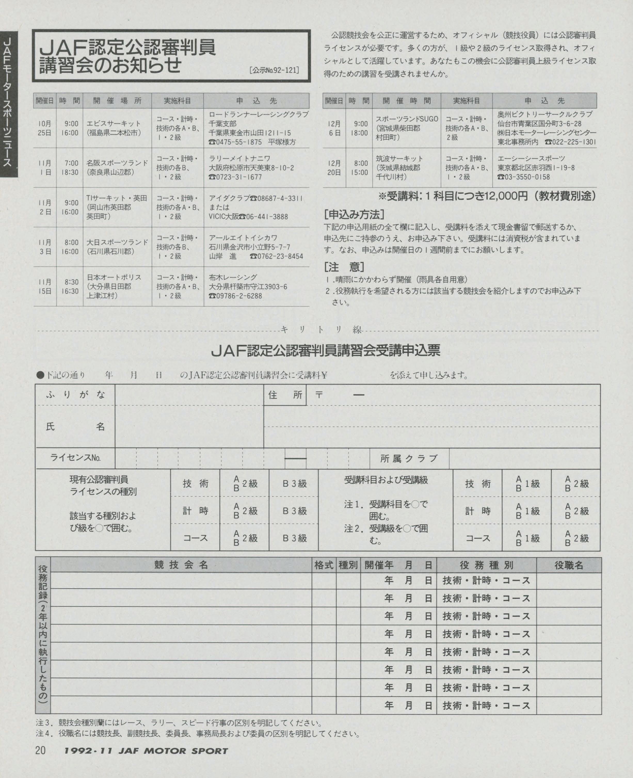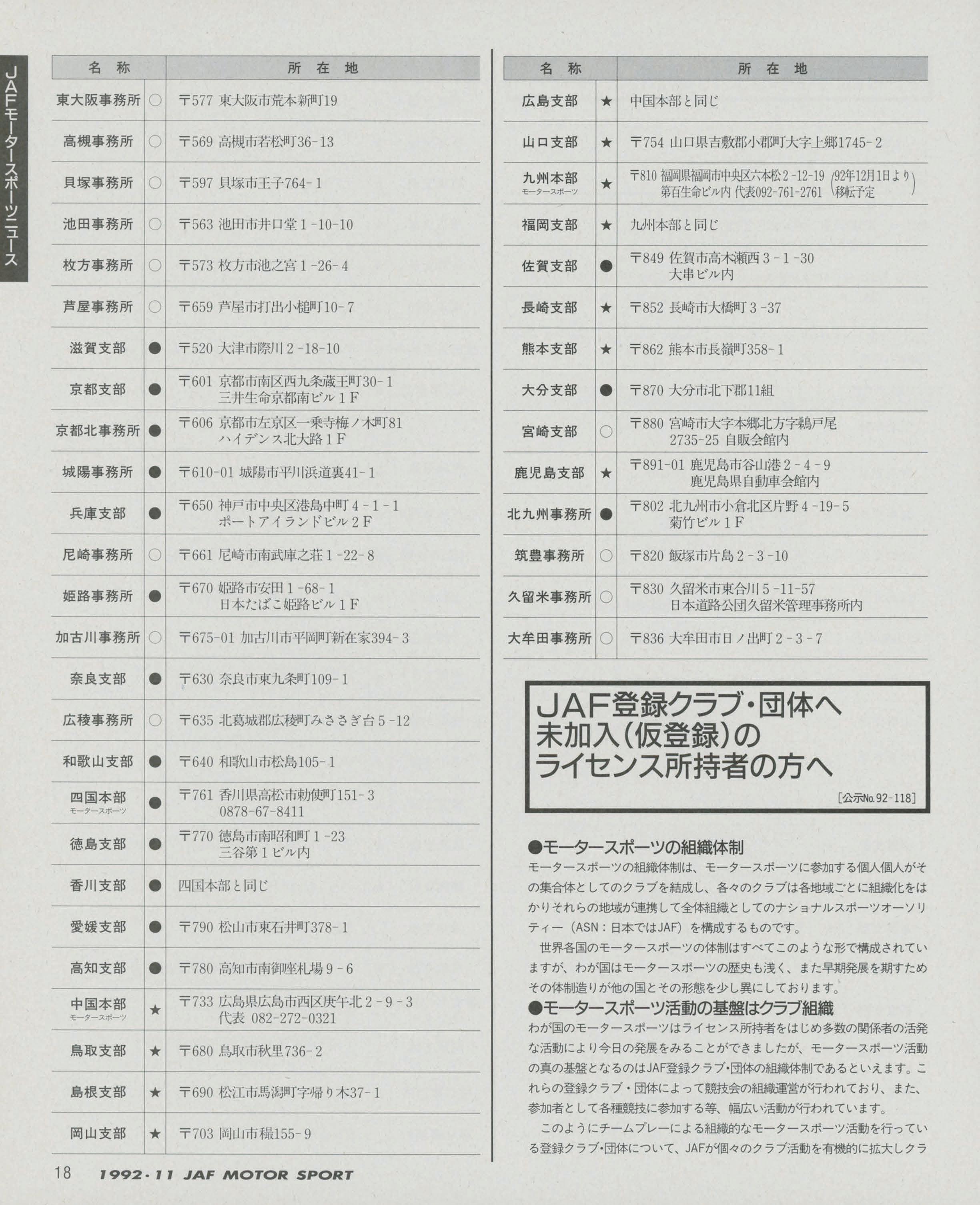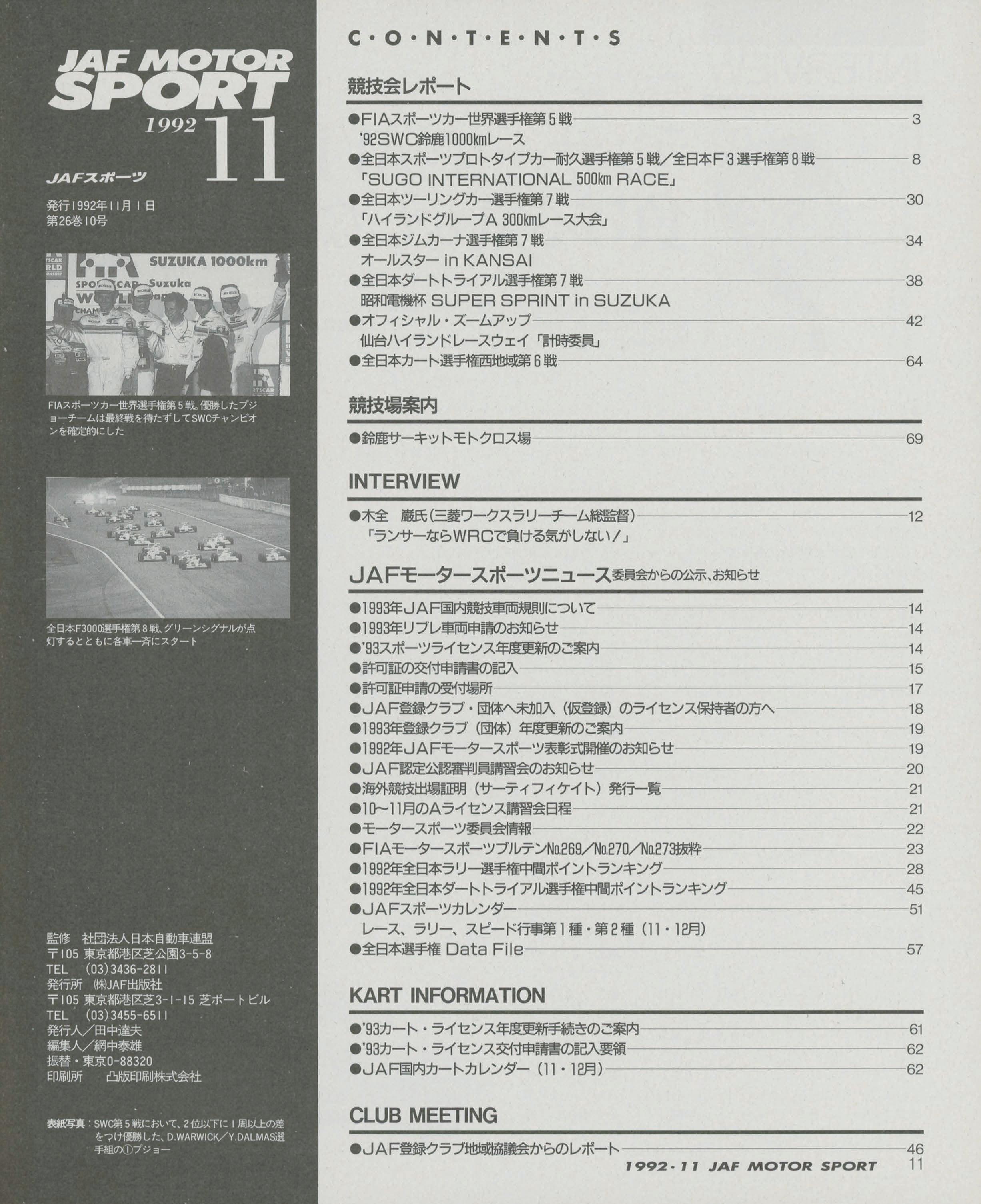 JAFスポーツ 1992年 11月号(第26巻 第10号 1992年11月1日発行)