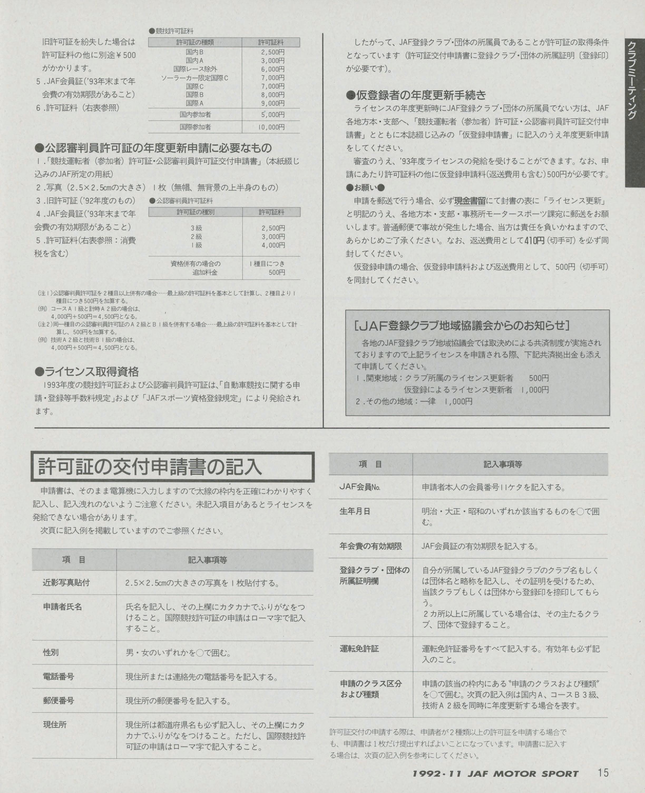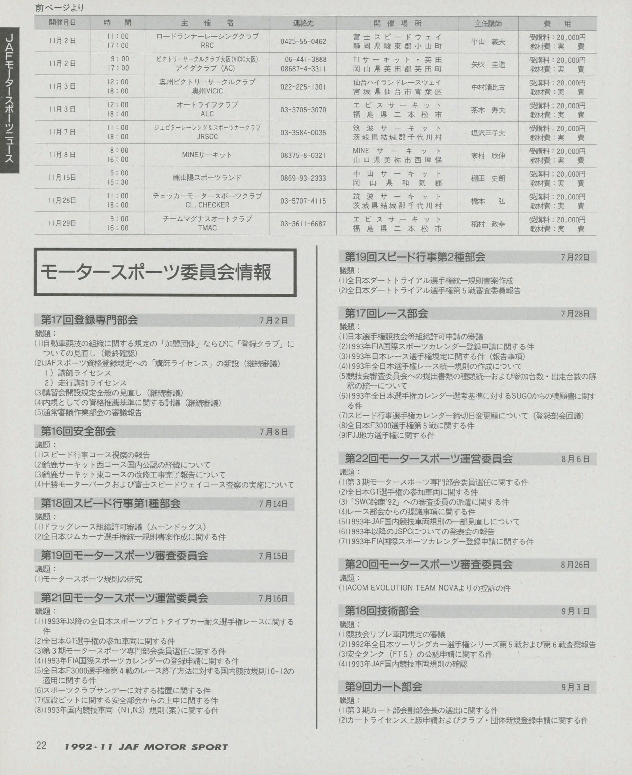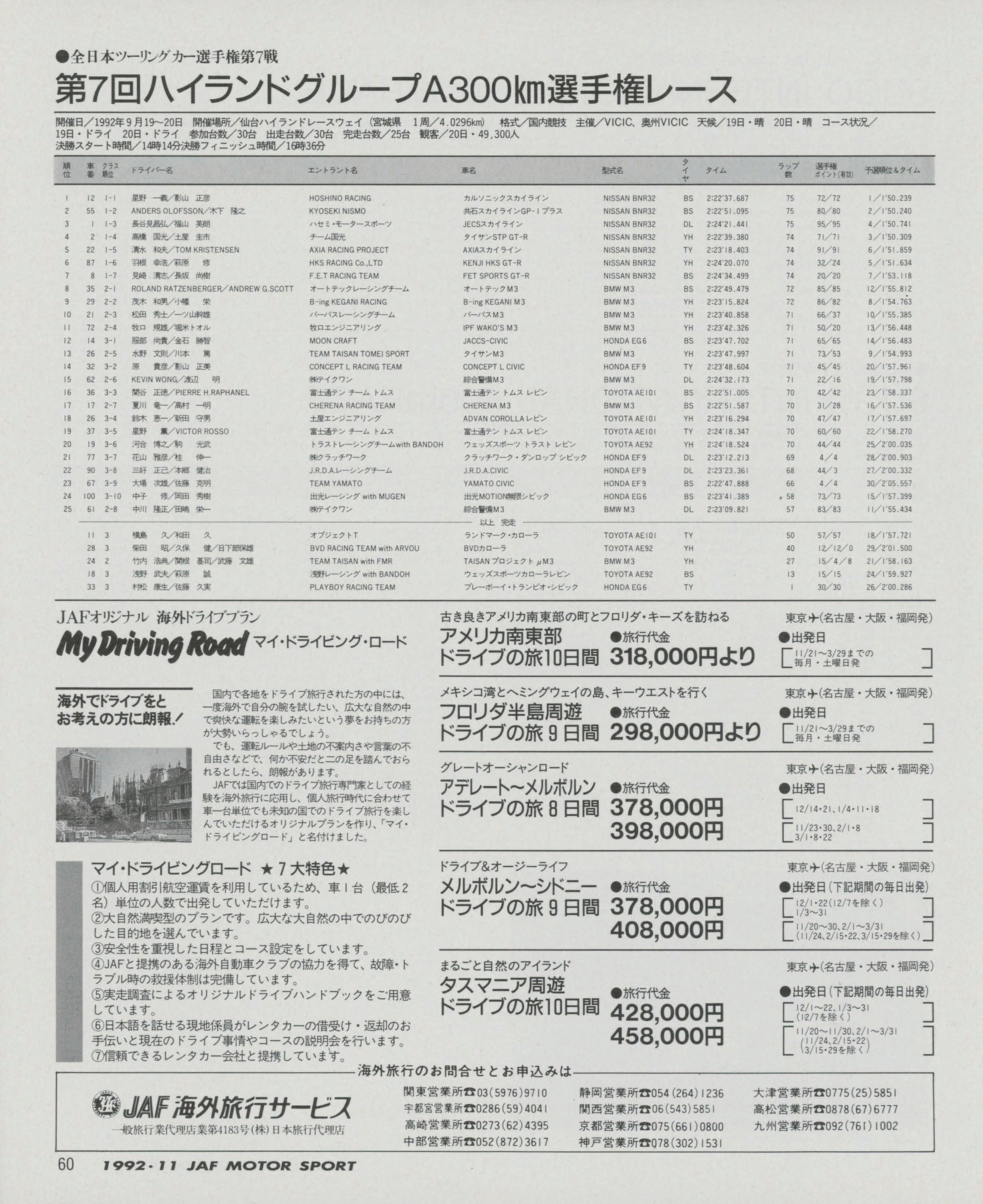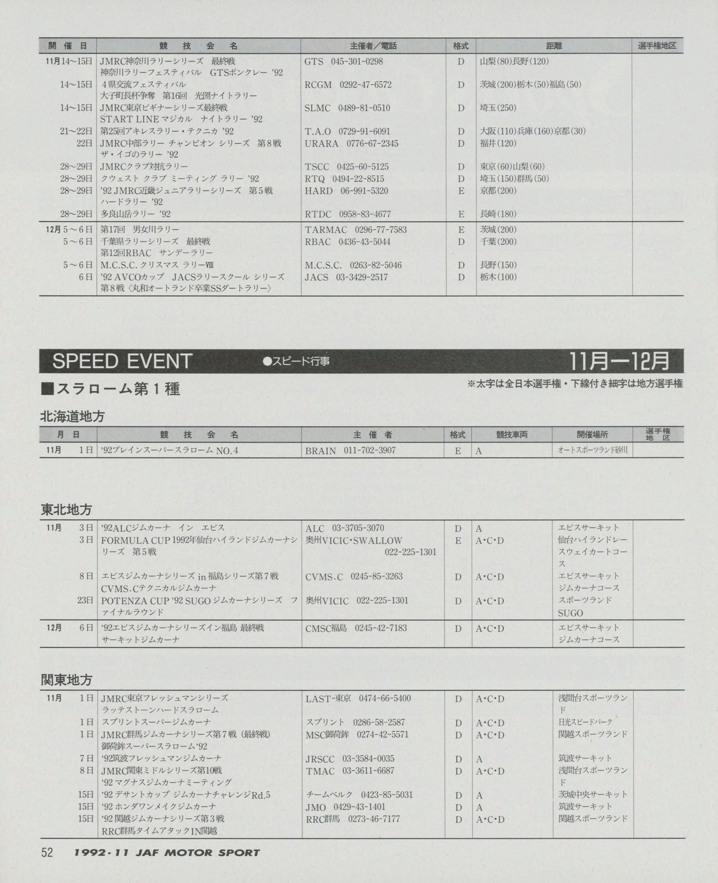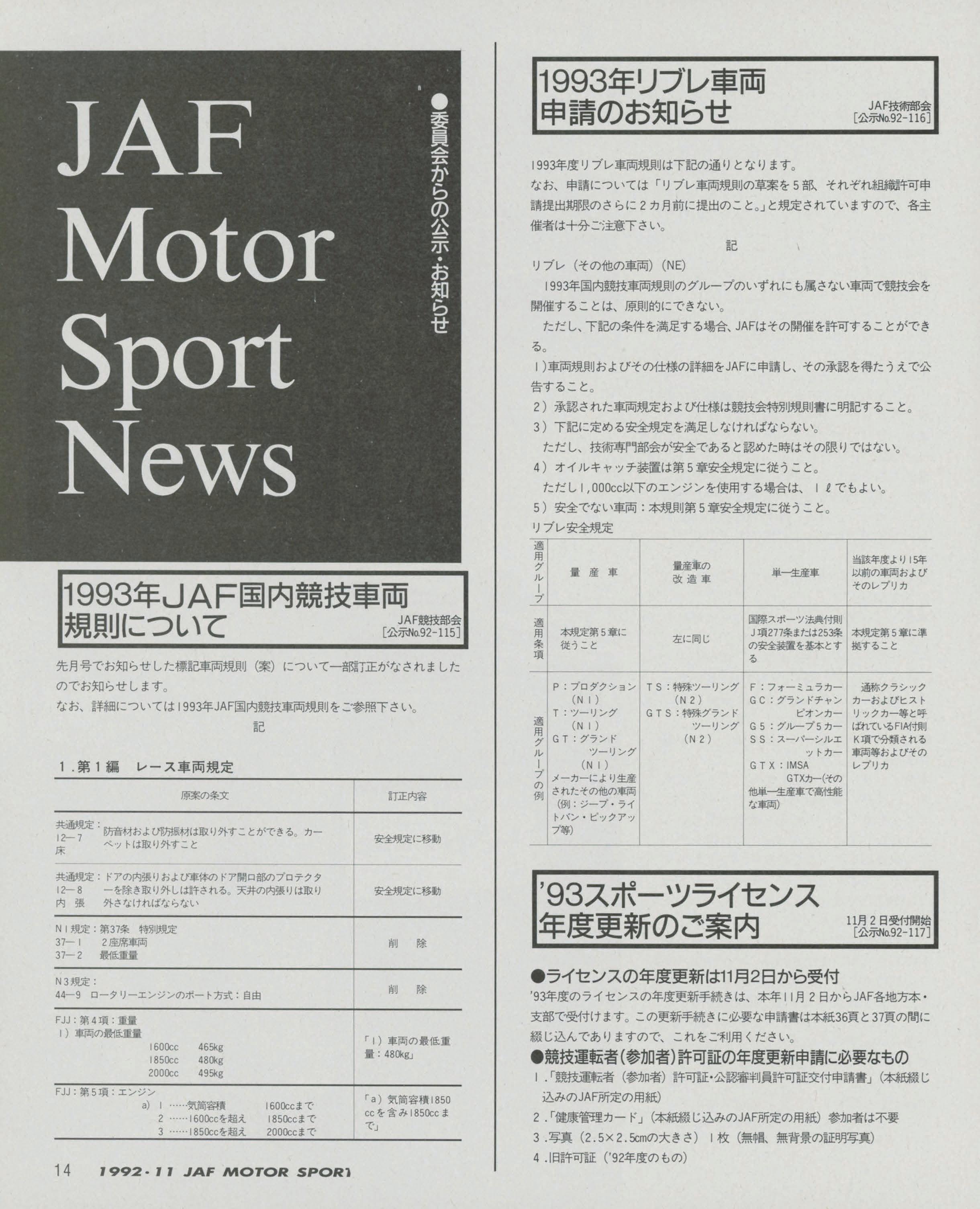 JAFスポーツ 1992年 11月号(第26巻 第10号 1992年11月1日発行)