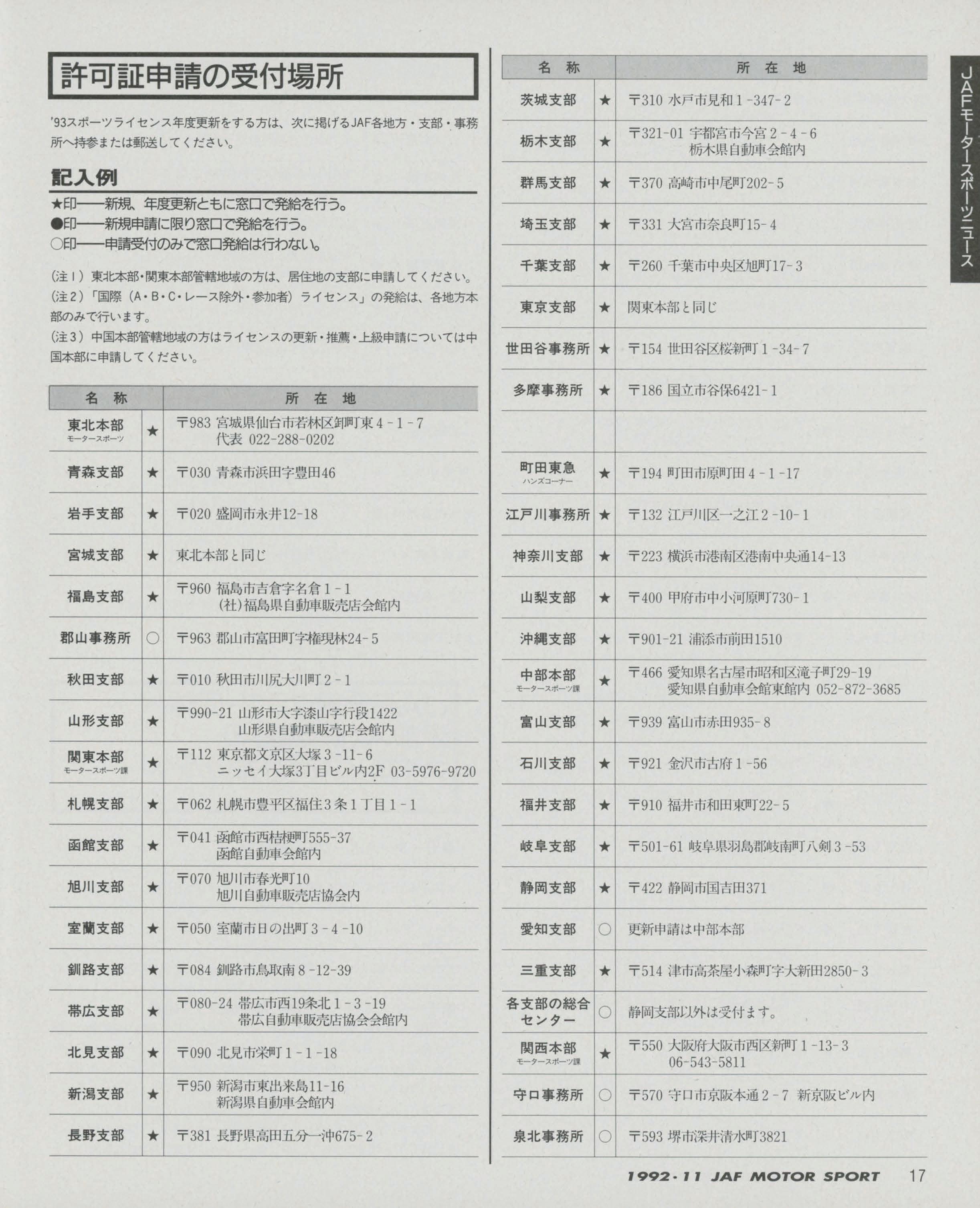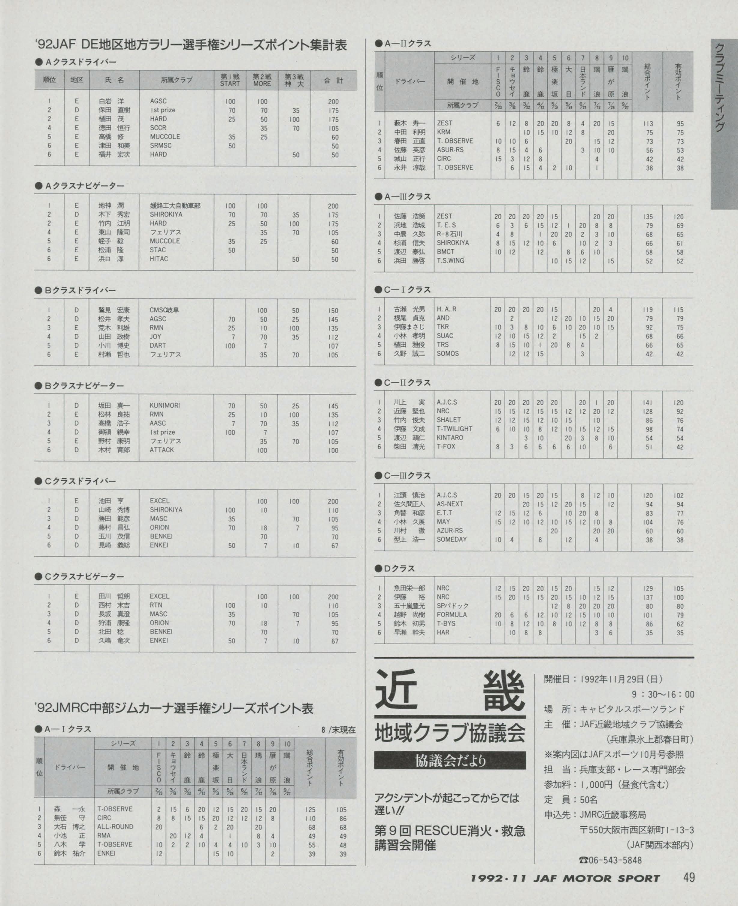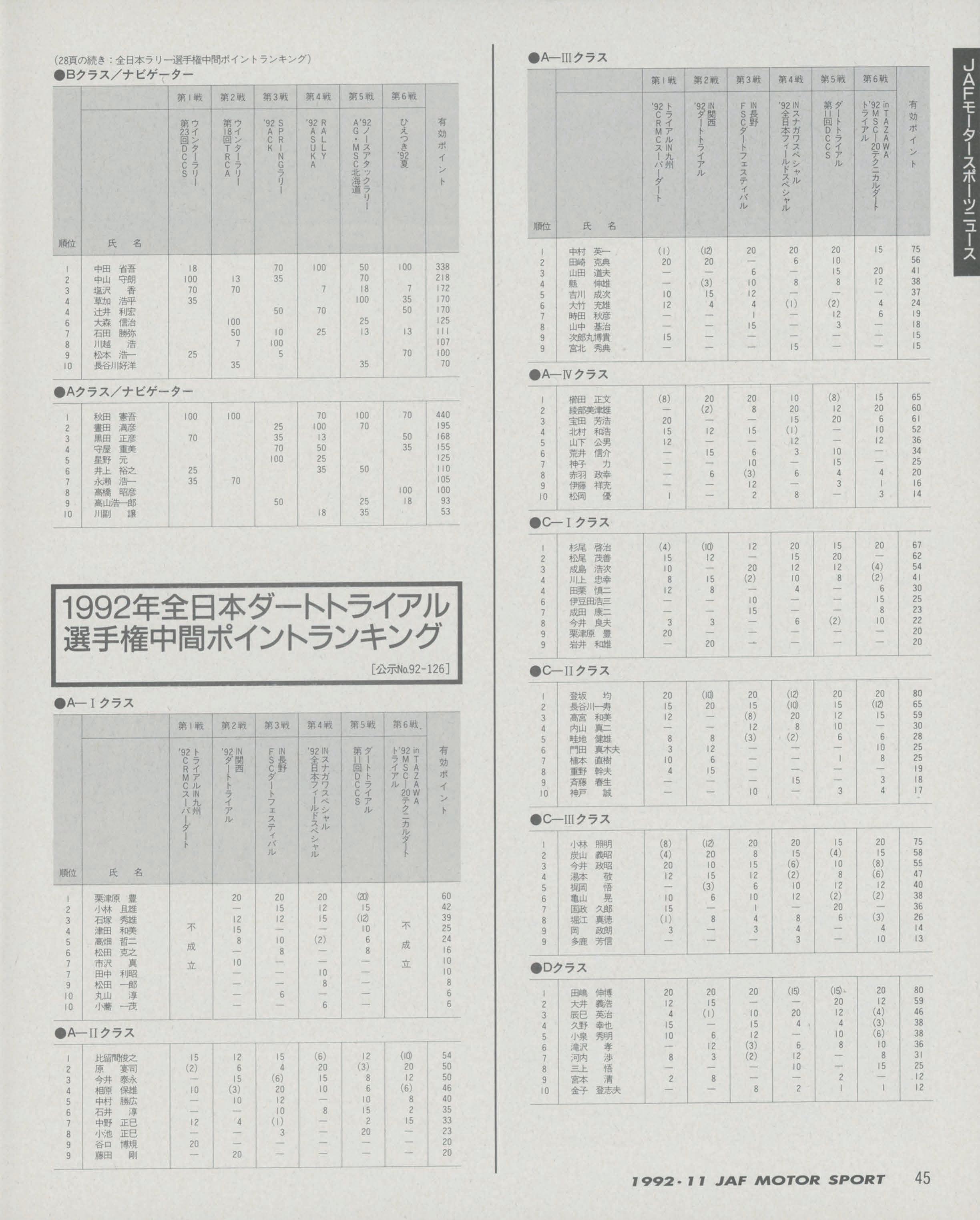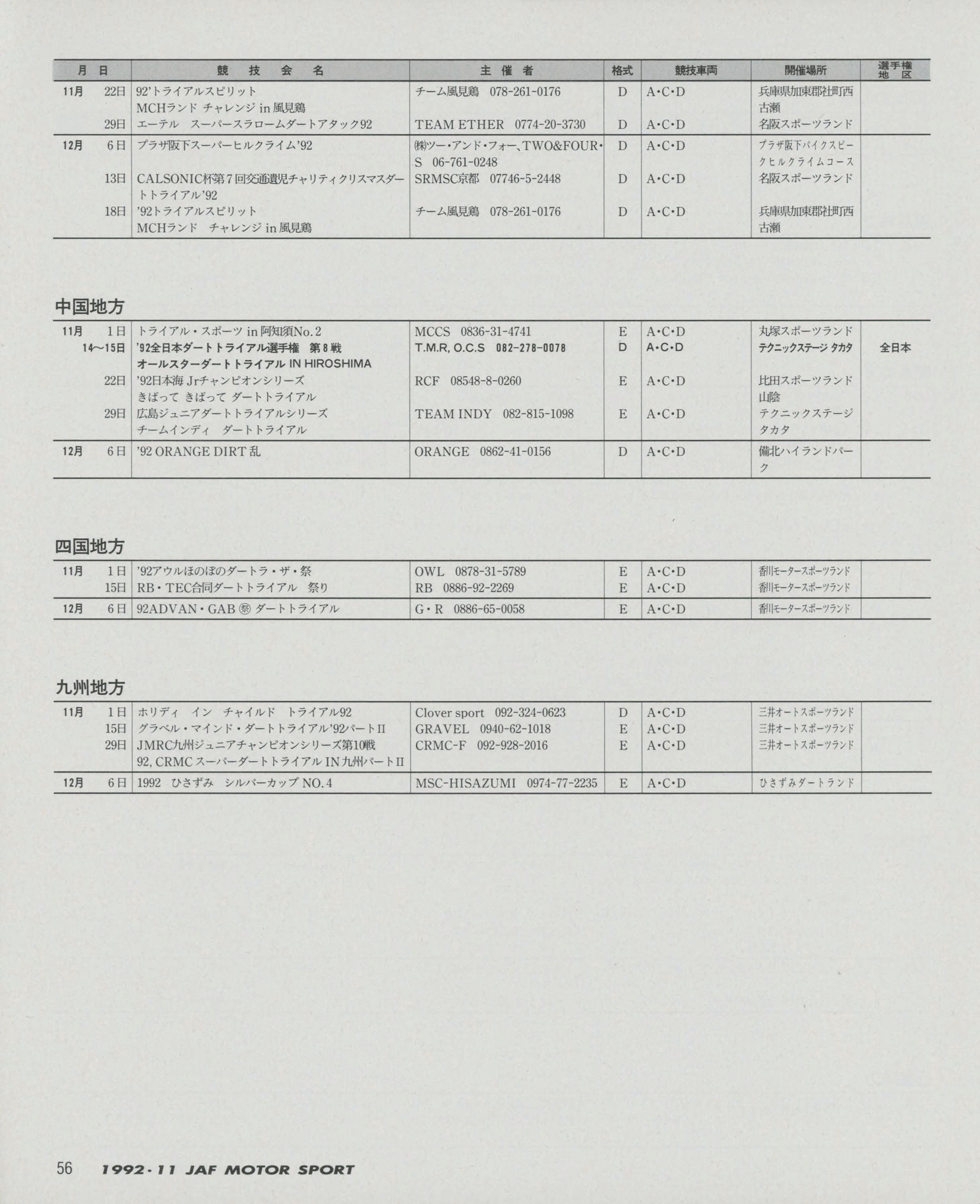 JAFスポーツ 1992年 11月号(第26巻 第10号 1992年11月1日発行)