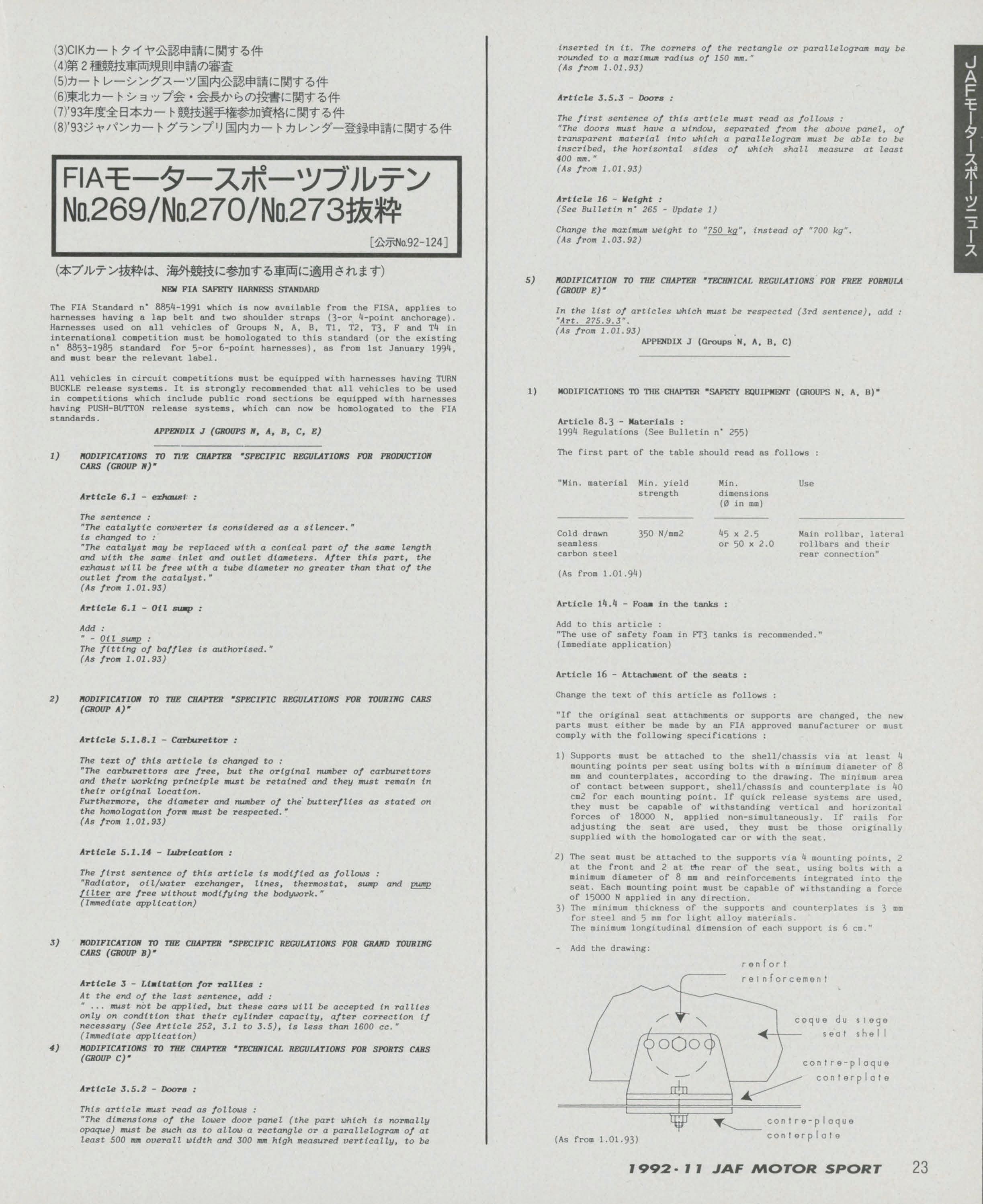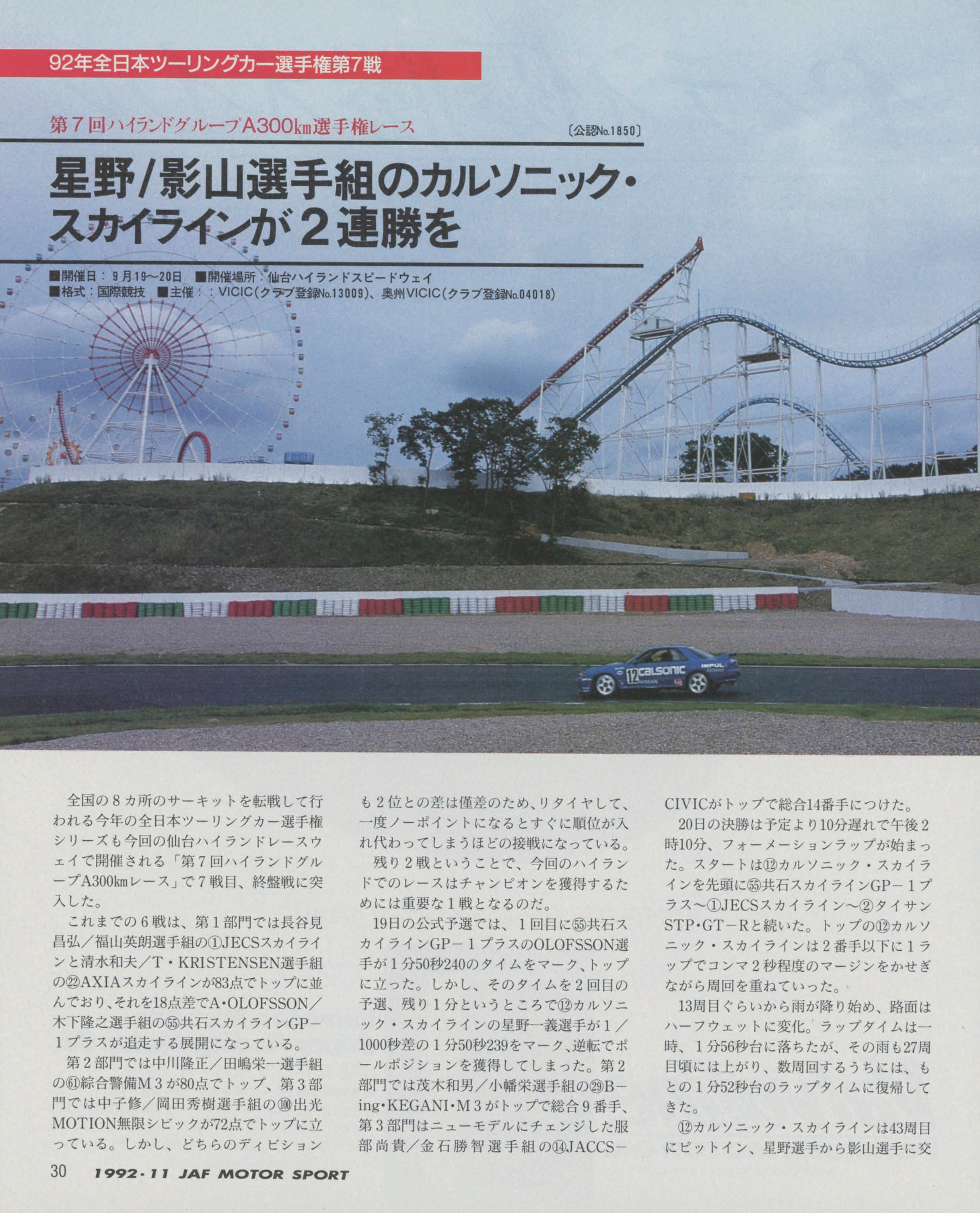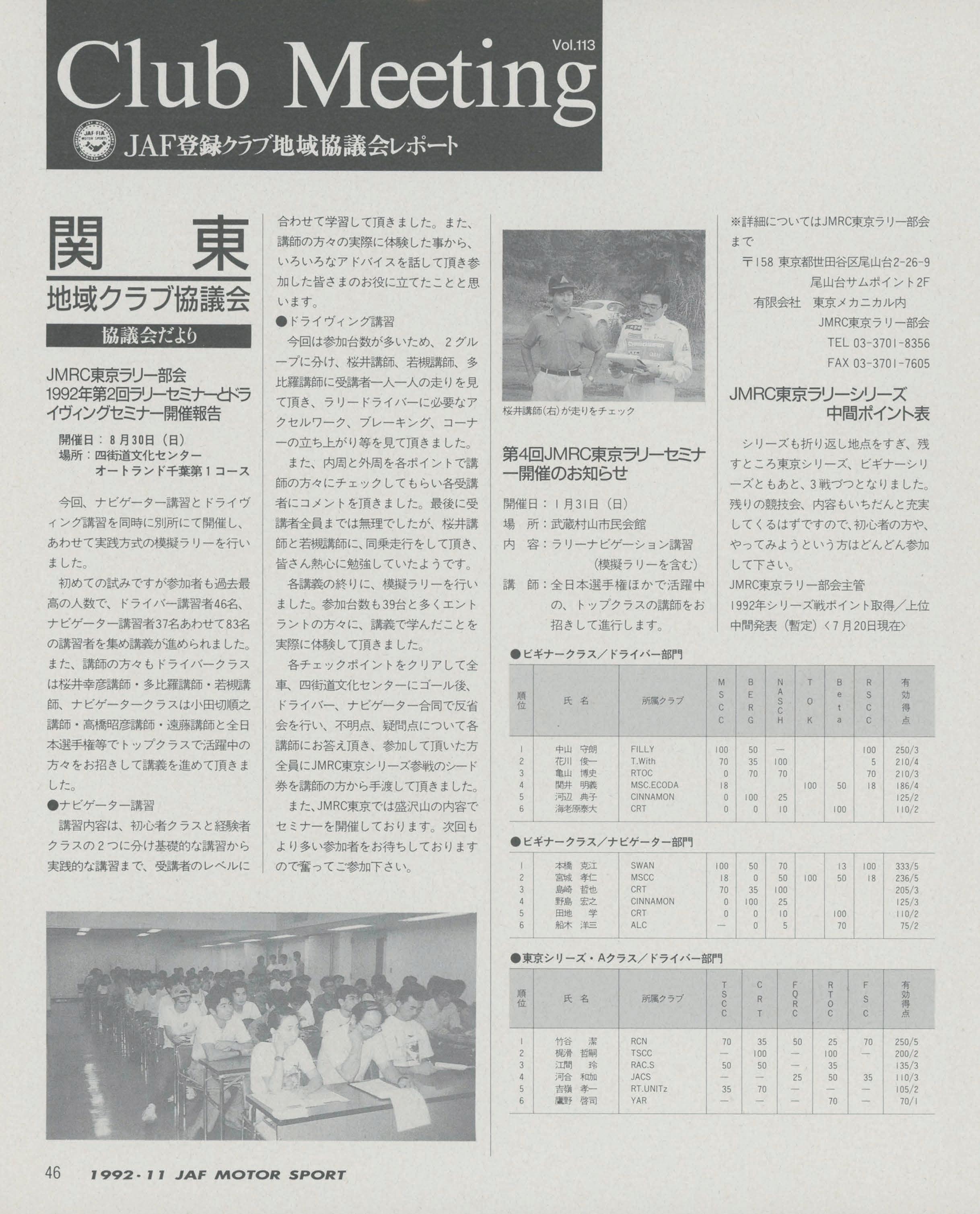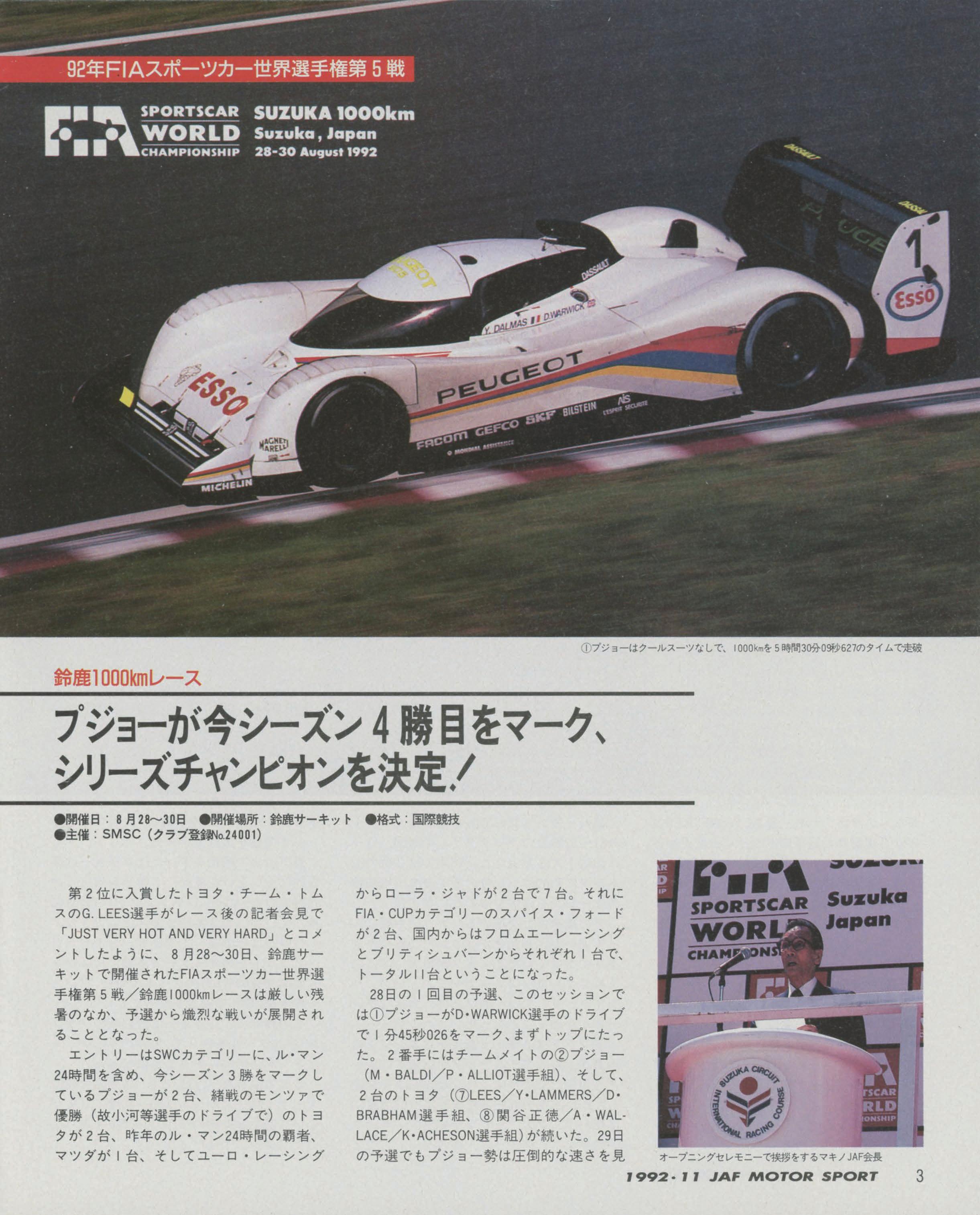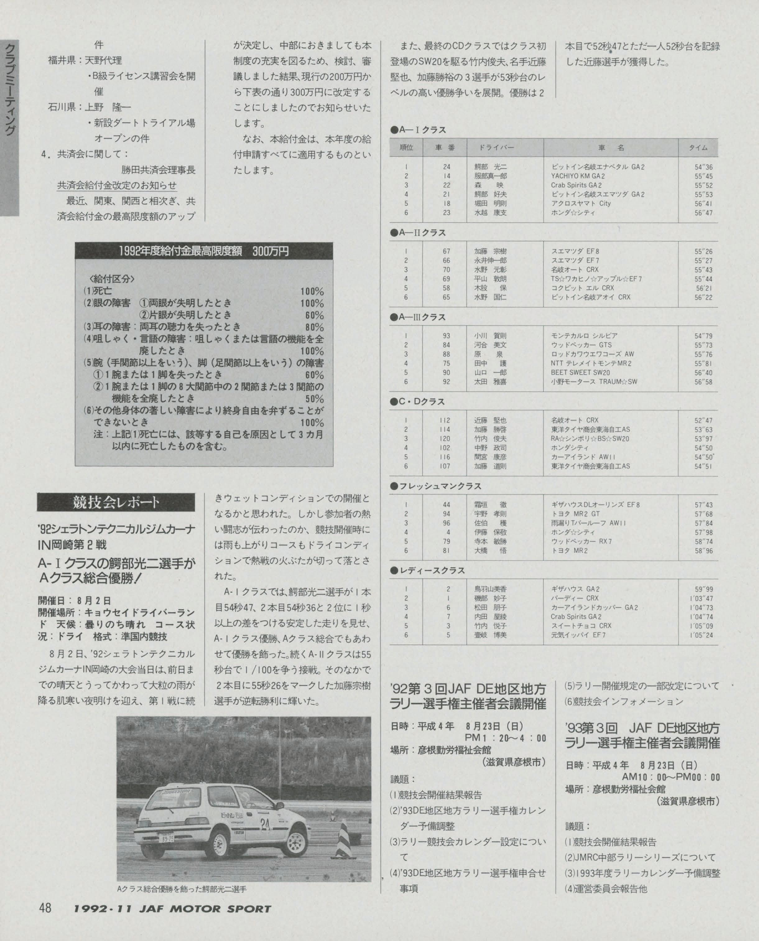 JAFスポーツ 1992年 11月号(第26巻 第10号 1992年11月1日発行)