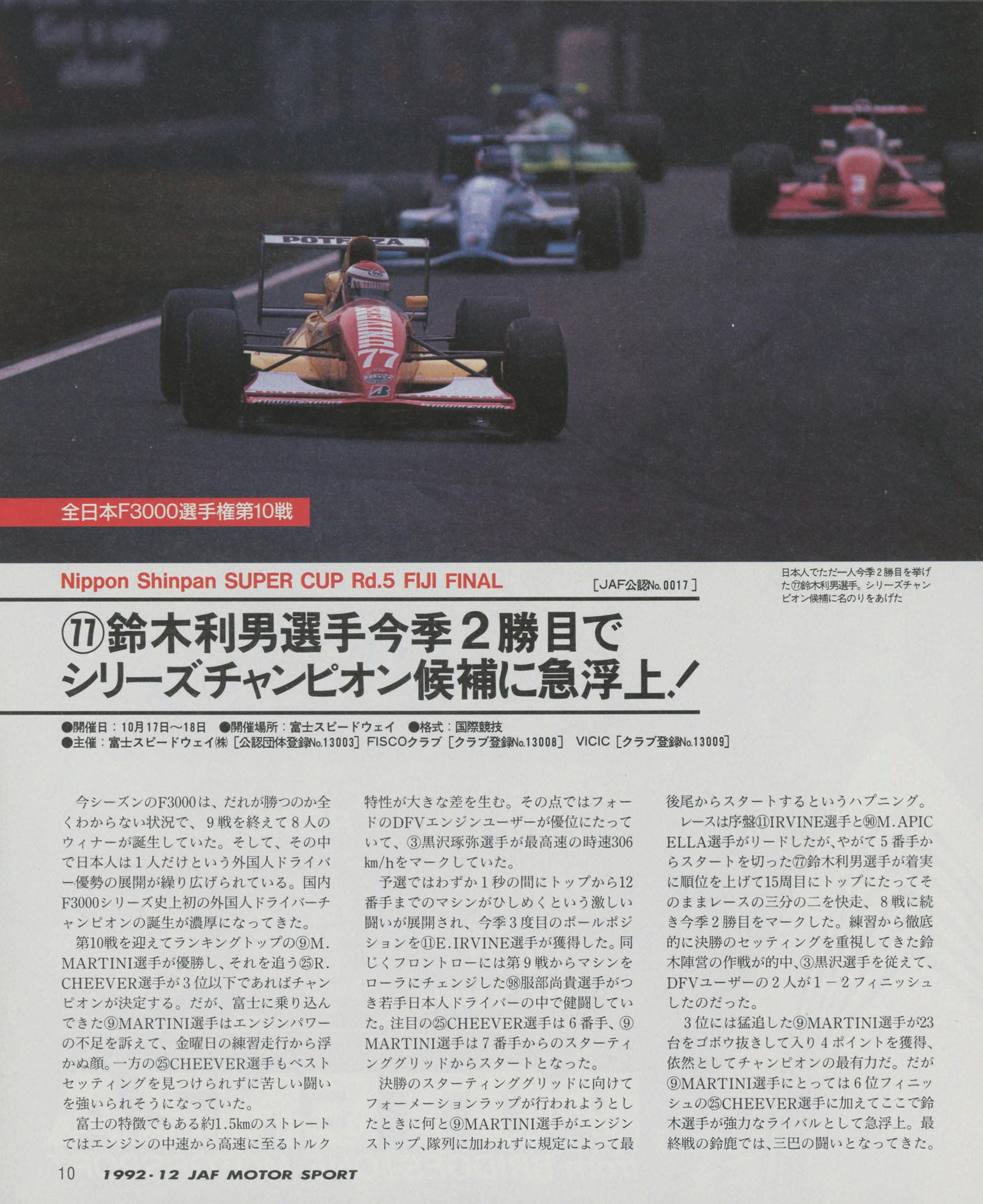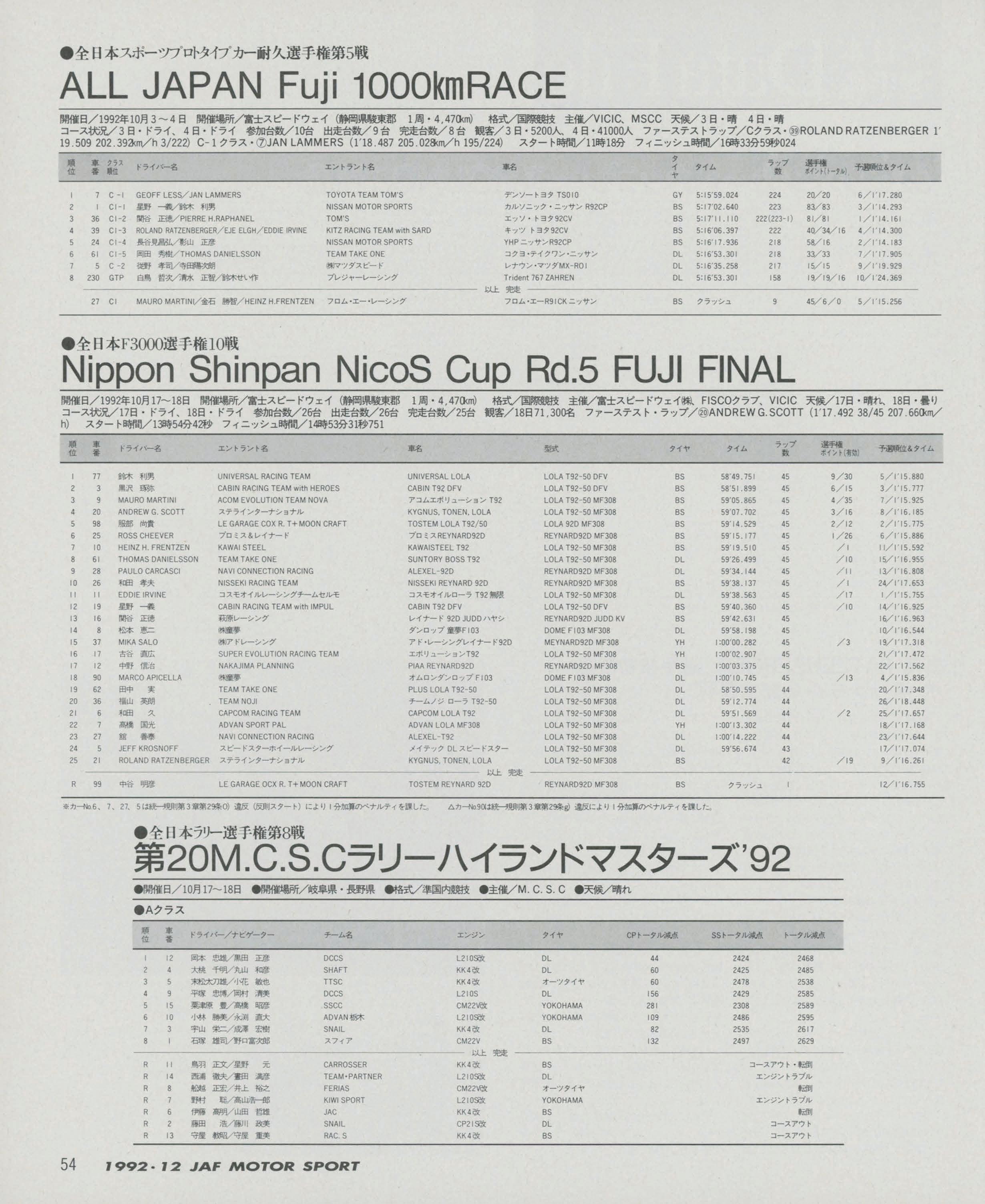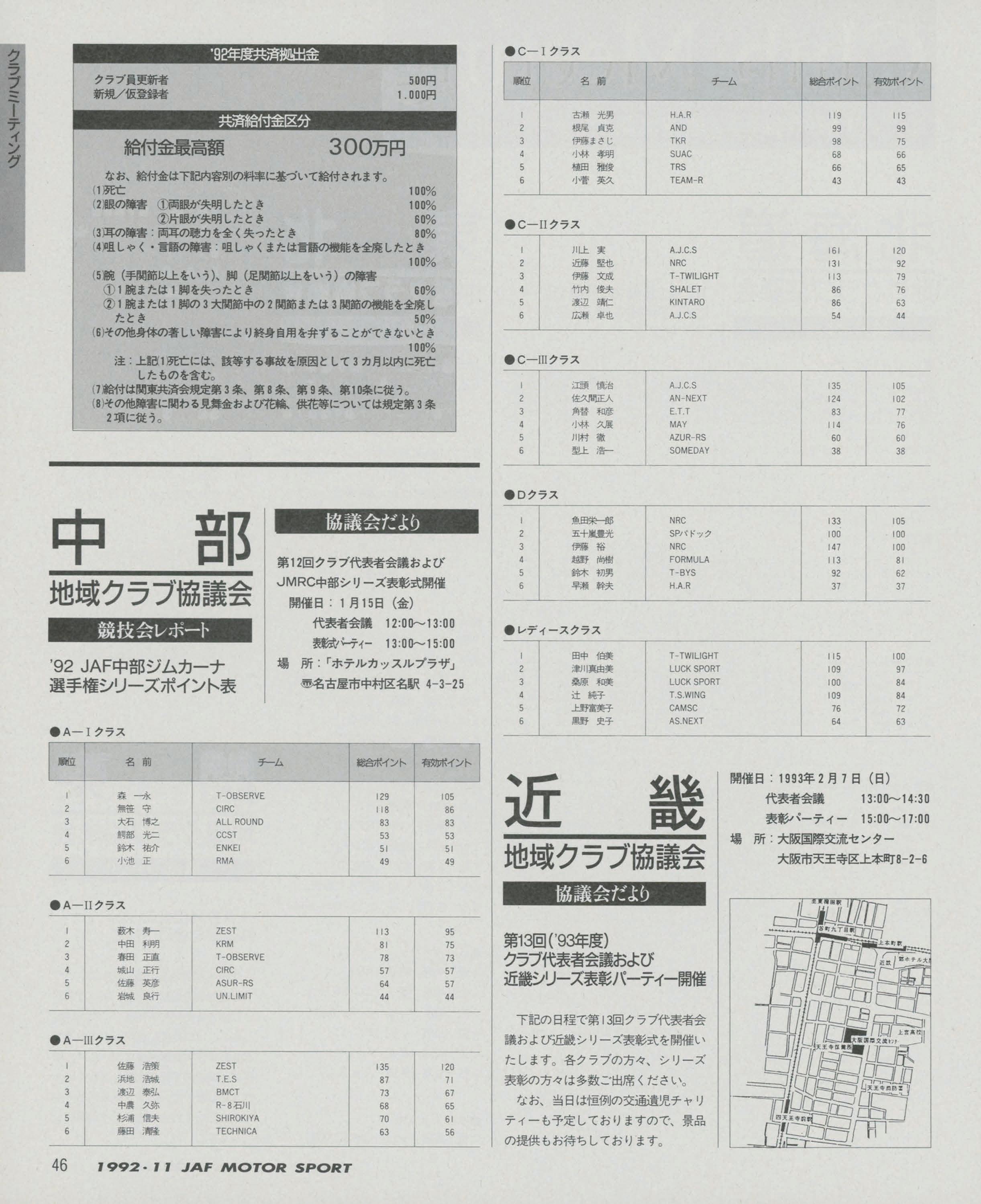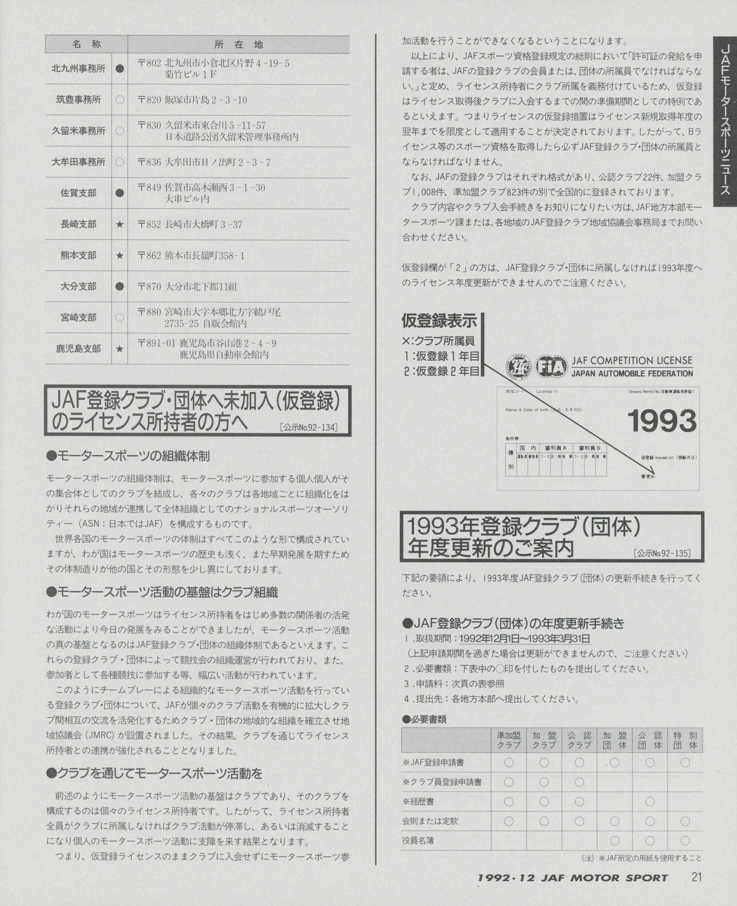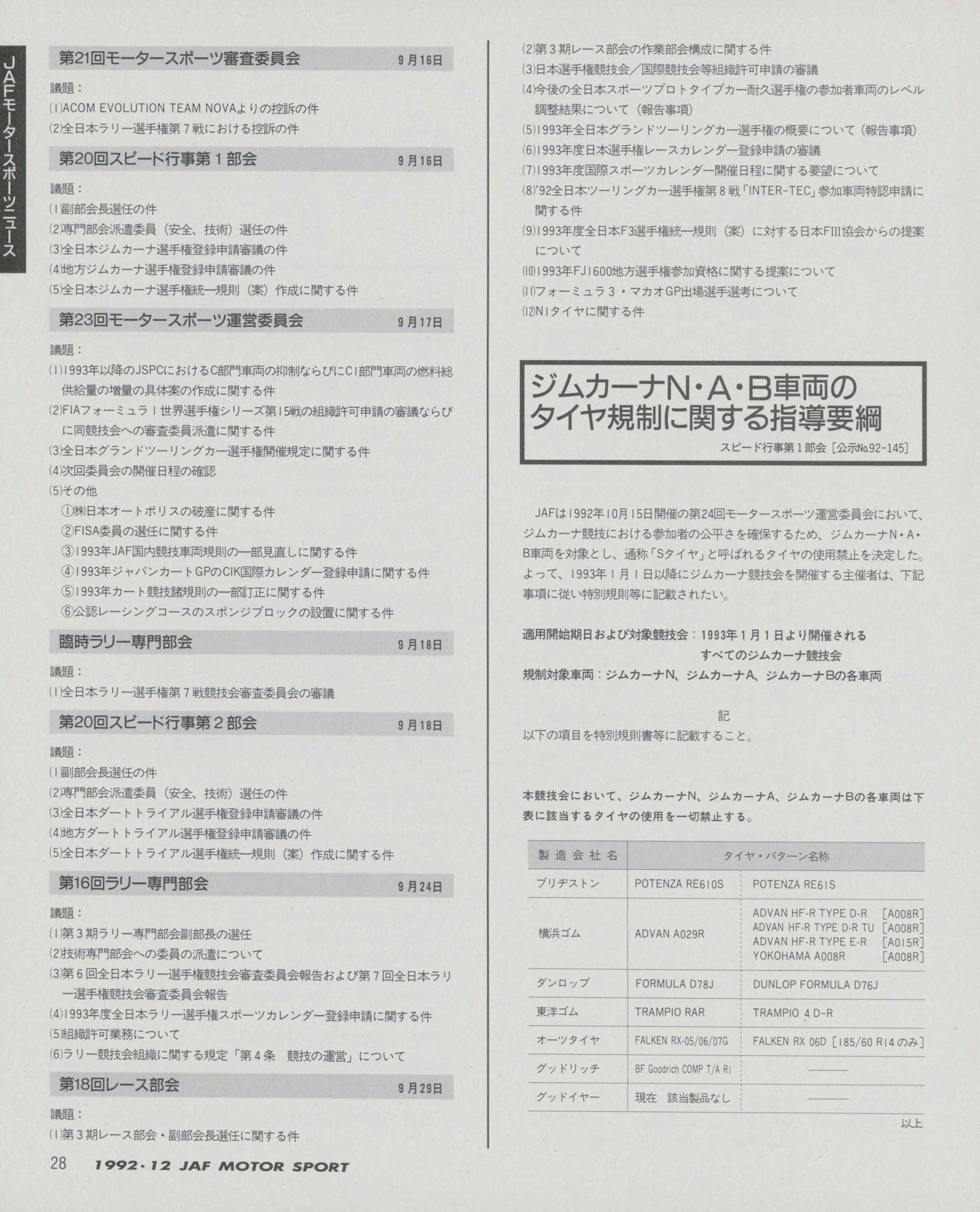 JAFスポーツ 1992年 12月号(第26巻 第11号 1992年12月1日発行)