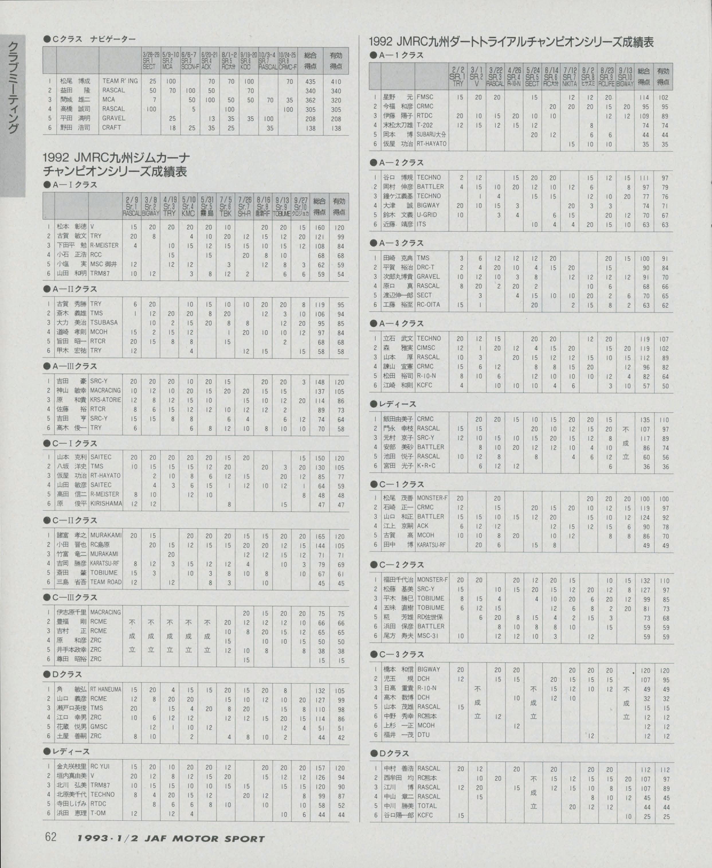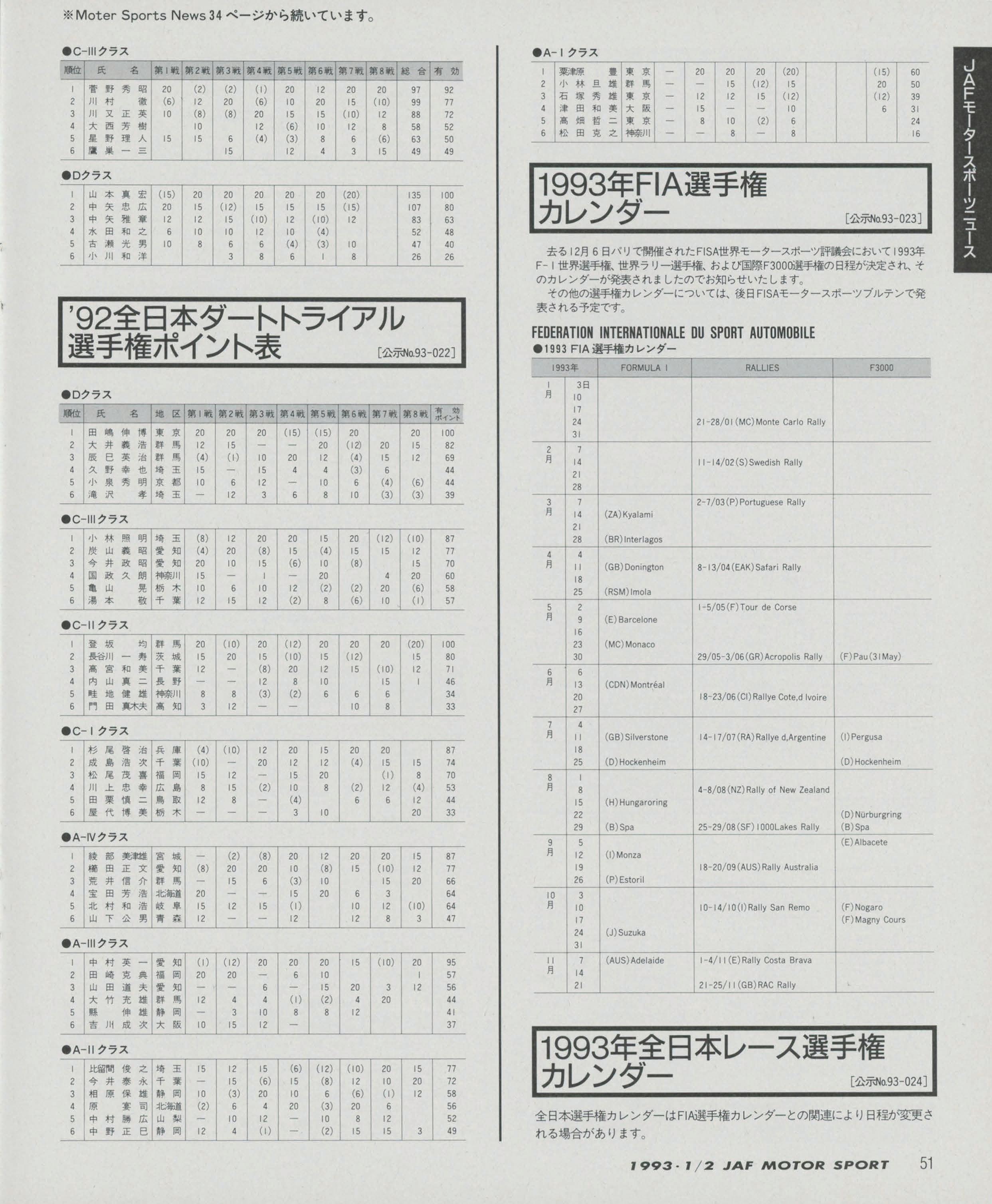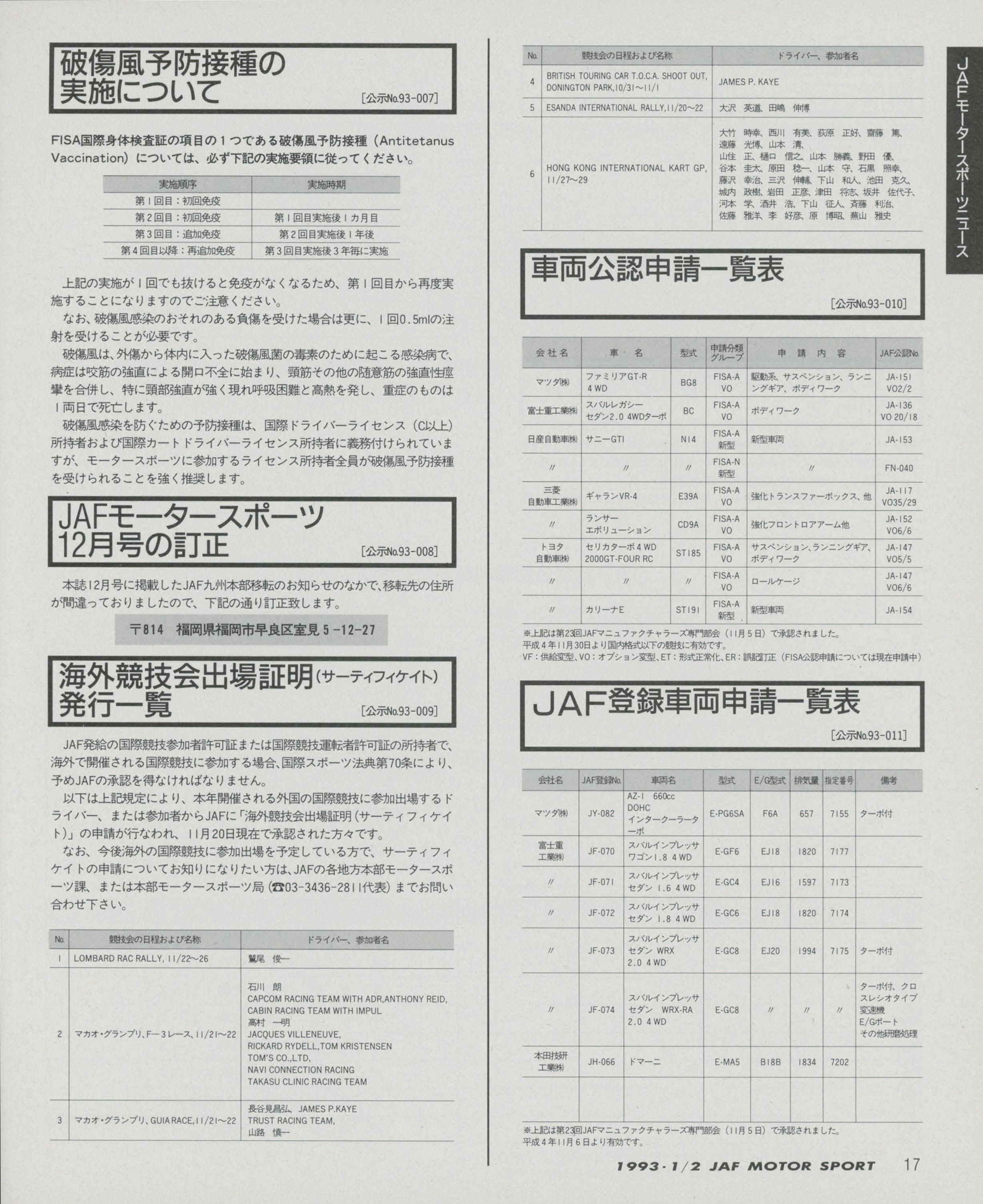 JAFスポーツ 1993年 1/2月号(第27巻 第1号 1993年1月1日発行)