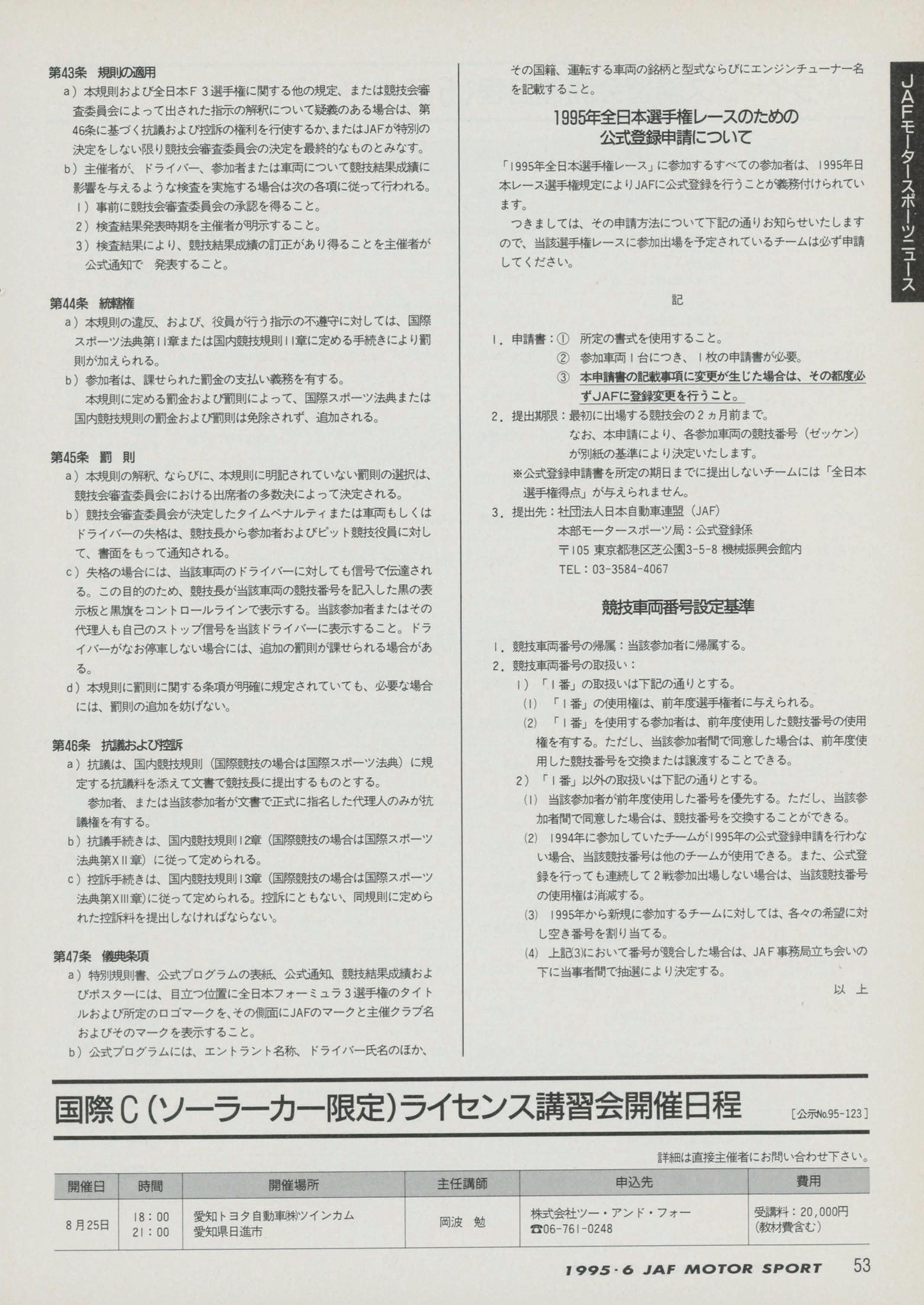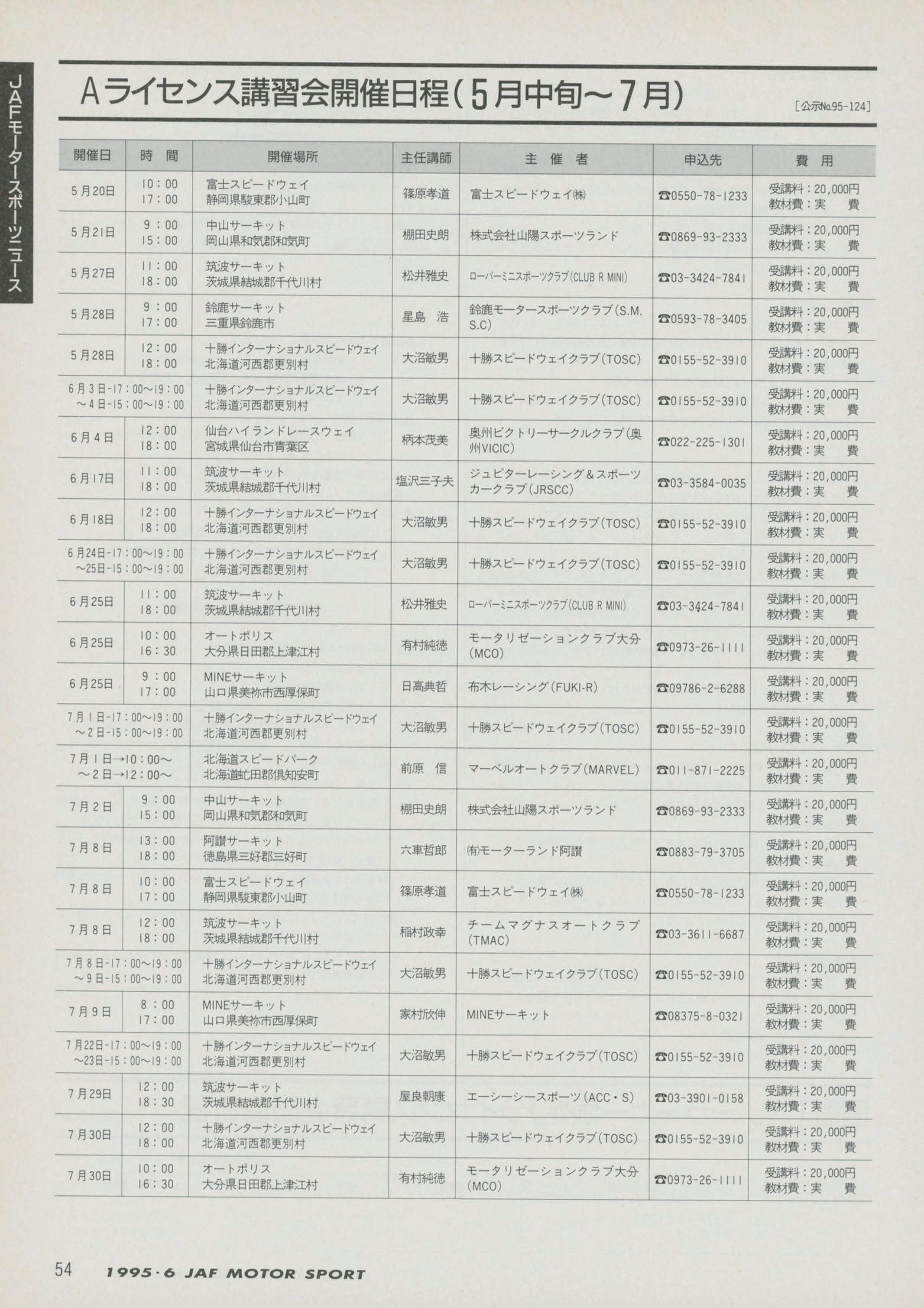 JAFスポーツ 1995年 6号(第29巻 第5号 1995年5月1日発行)
