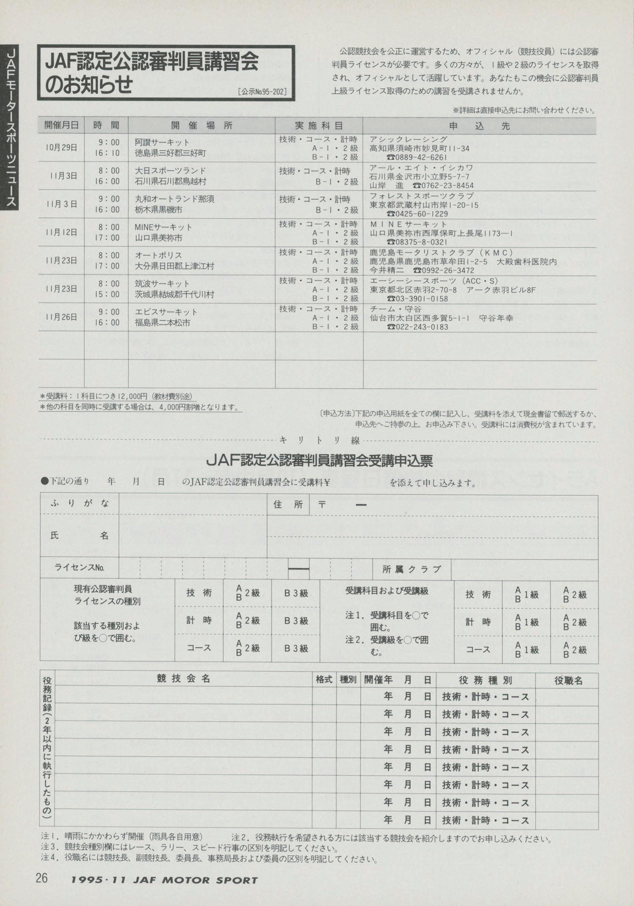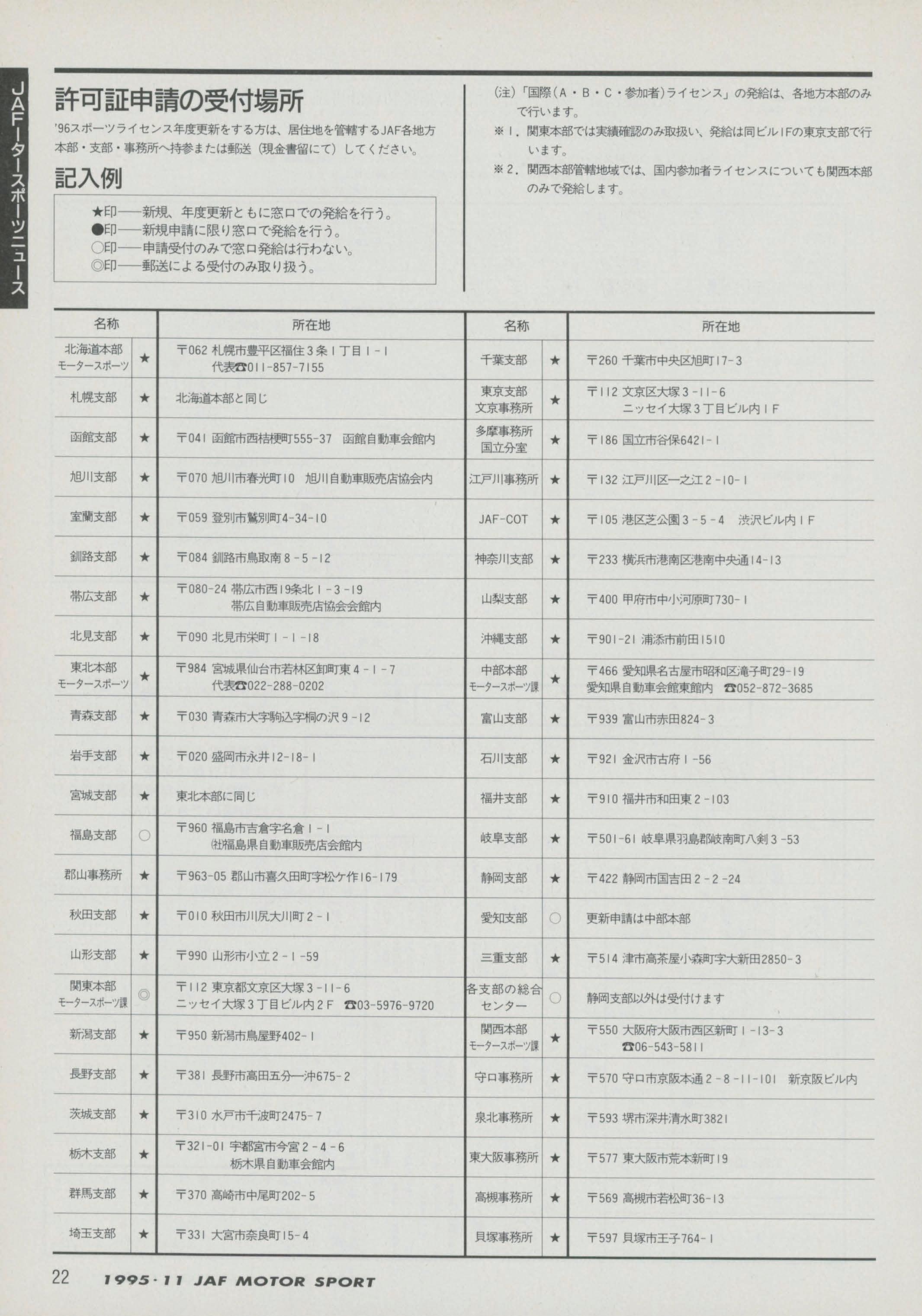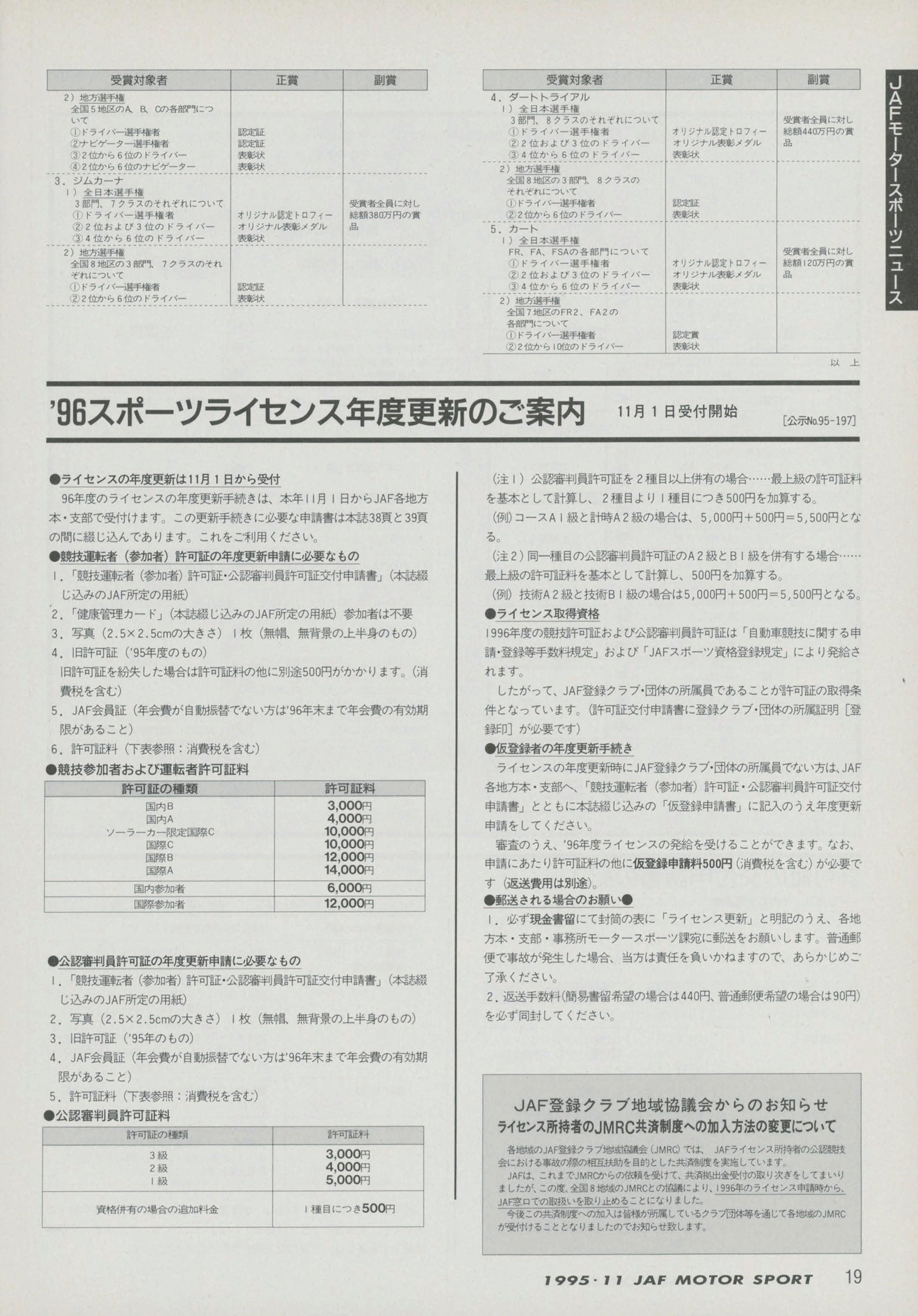 JAFスポーツ 1995年 11号(第29巻 第9号 1995年11月1日発行)