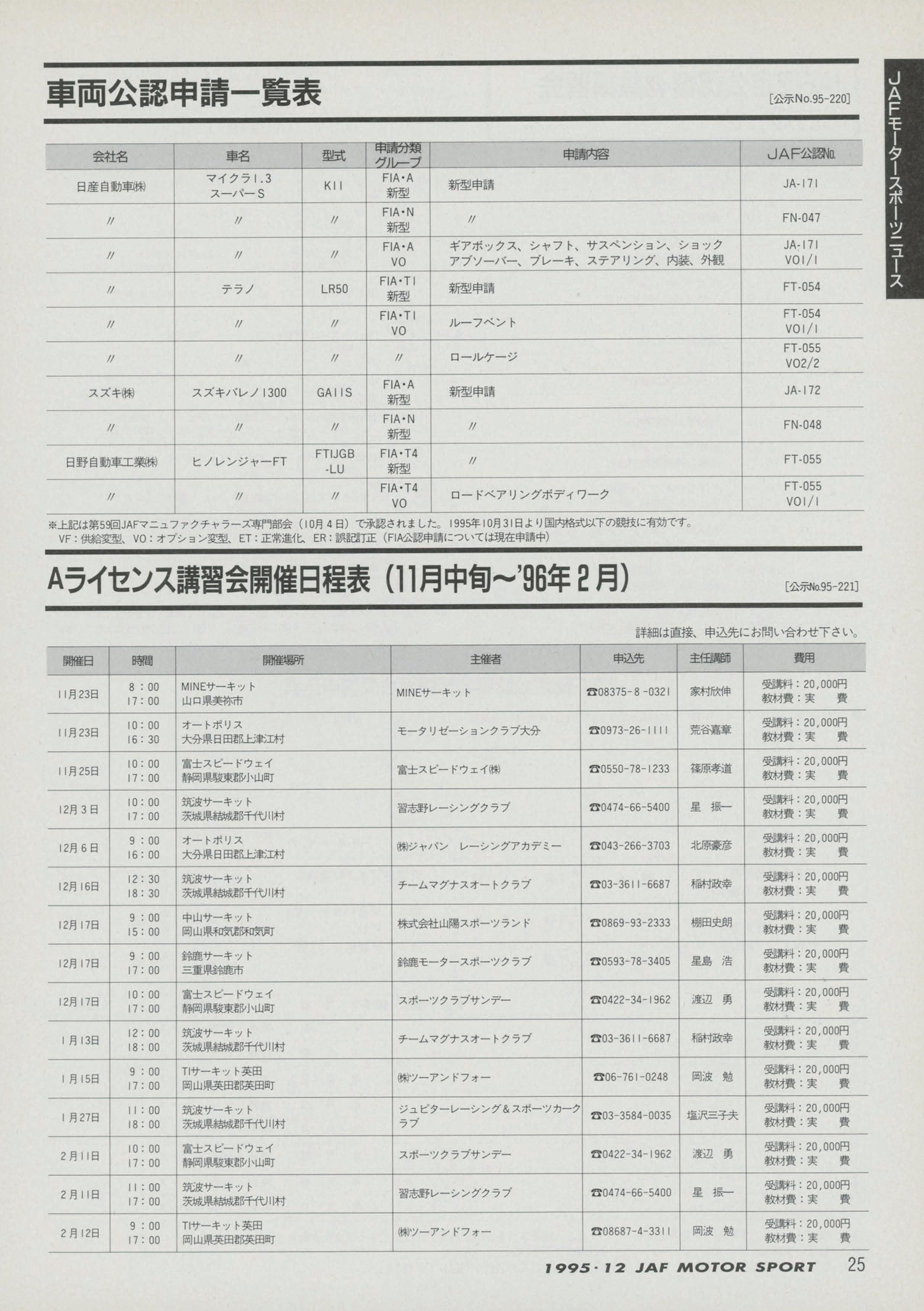 JAFスポーツ 1995年 12号(第29巻 第10号 1995年12月1日発行)