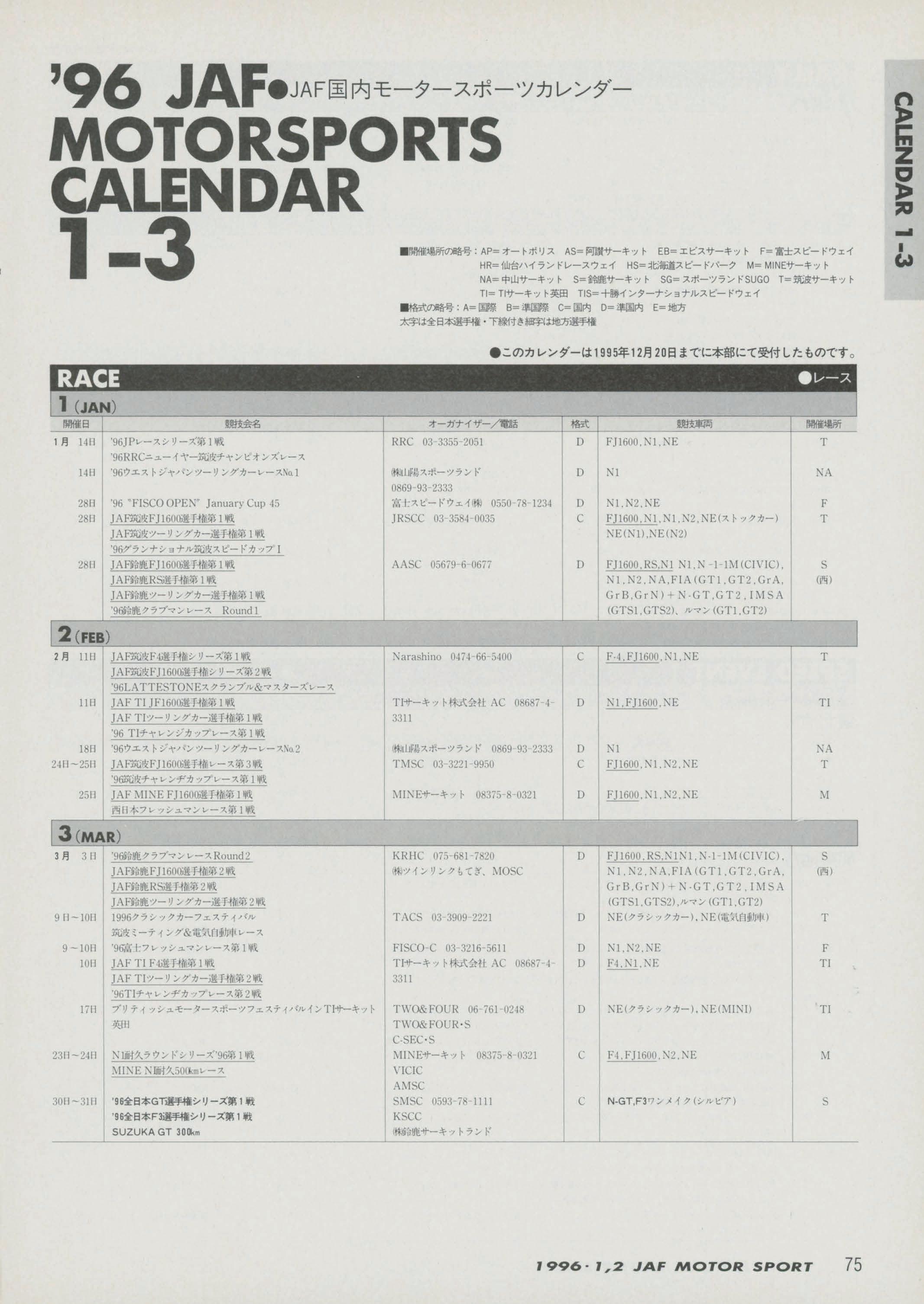 JAFスポーツ 1996年 1/2月号(第30巻 第1号 1996年1月1日発行)
