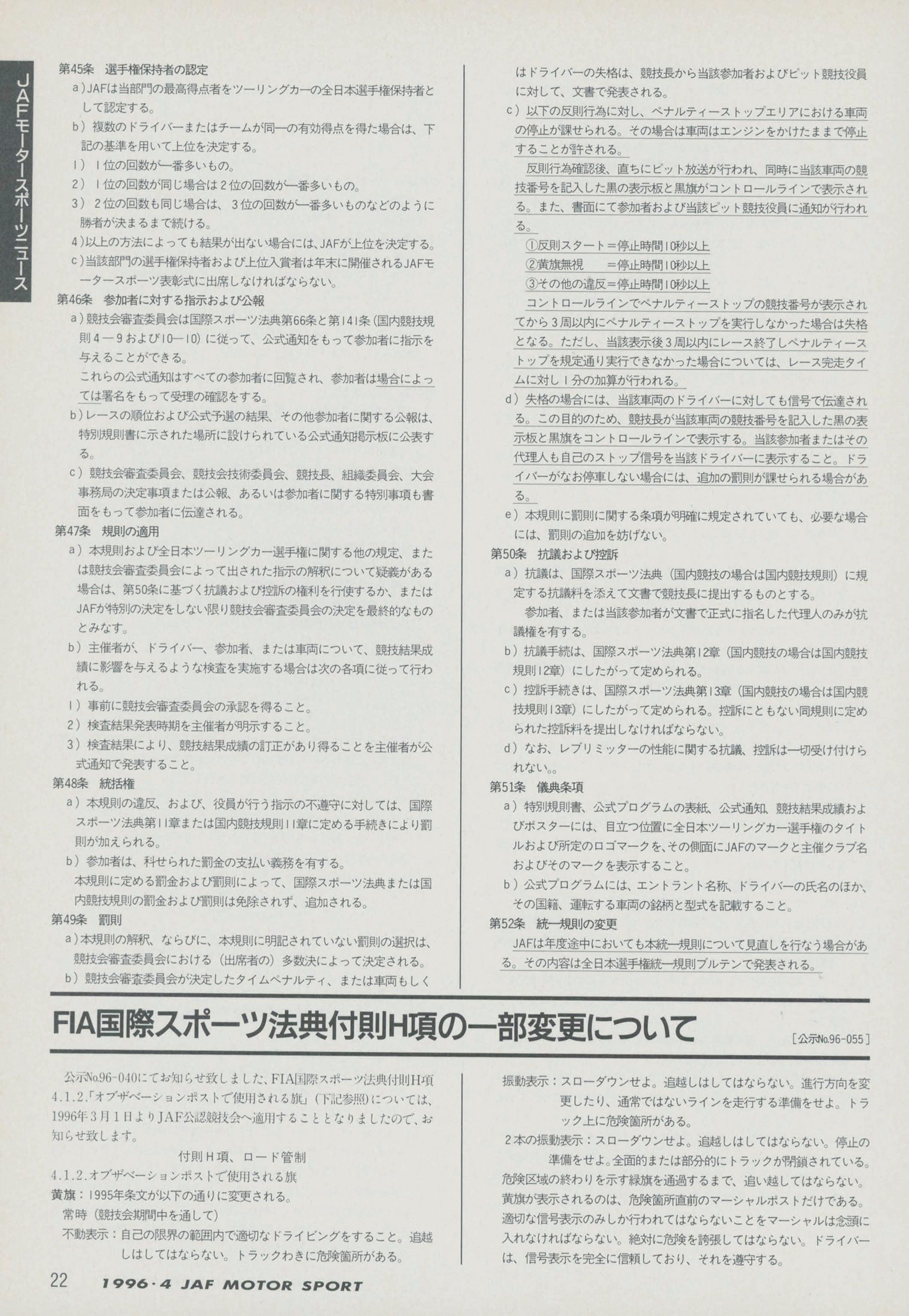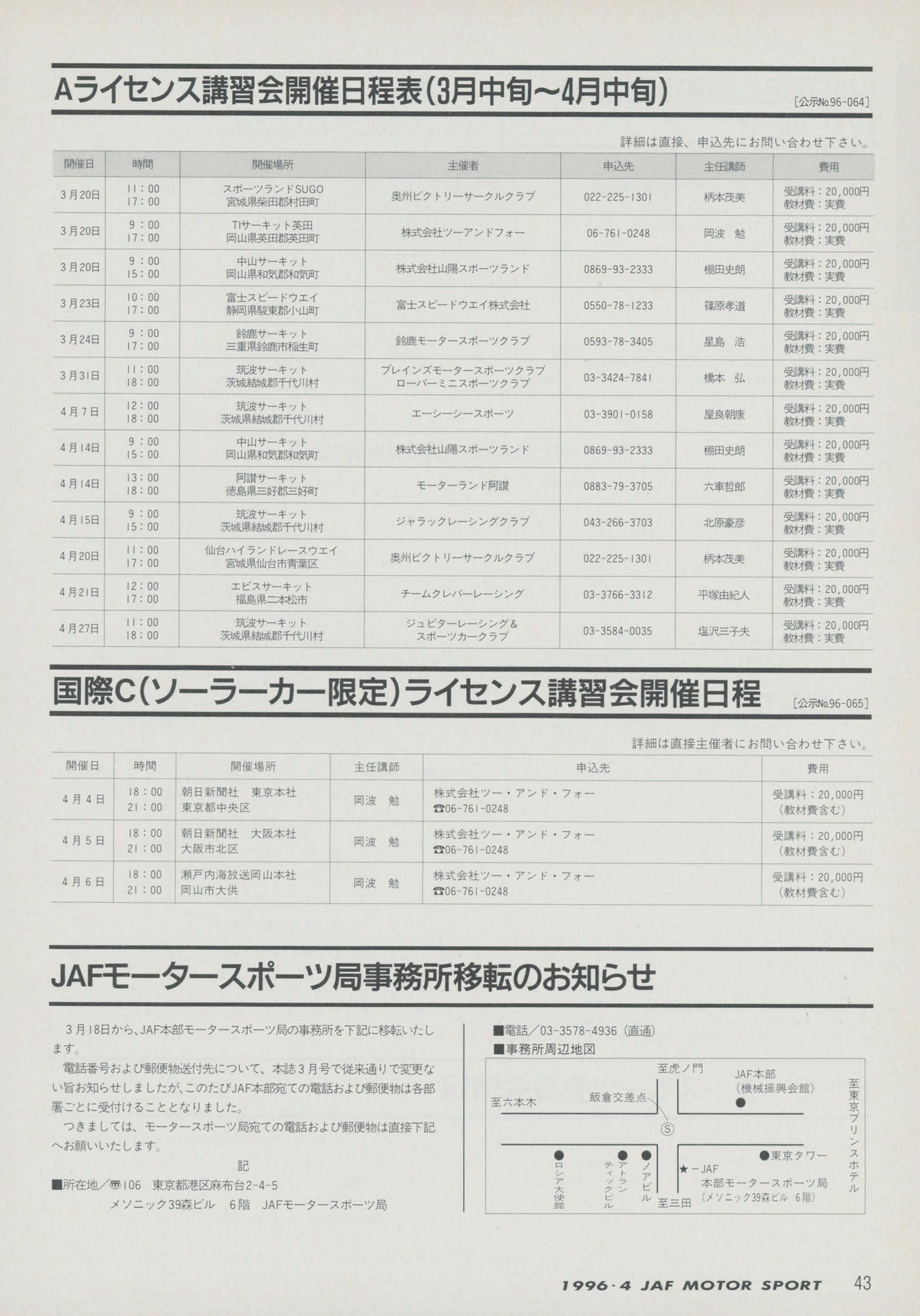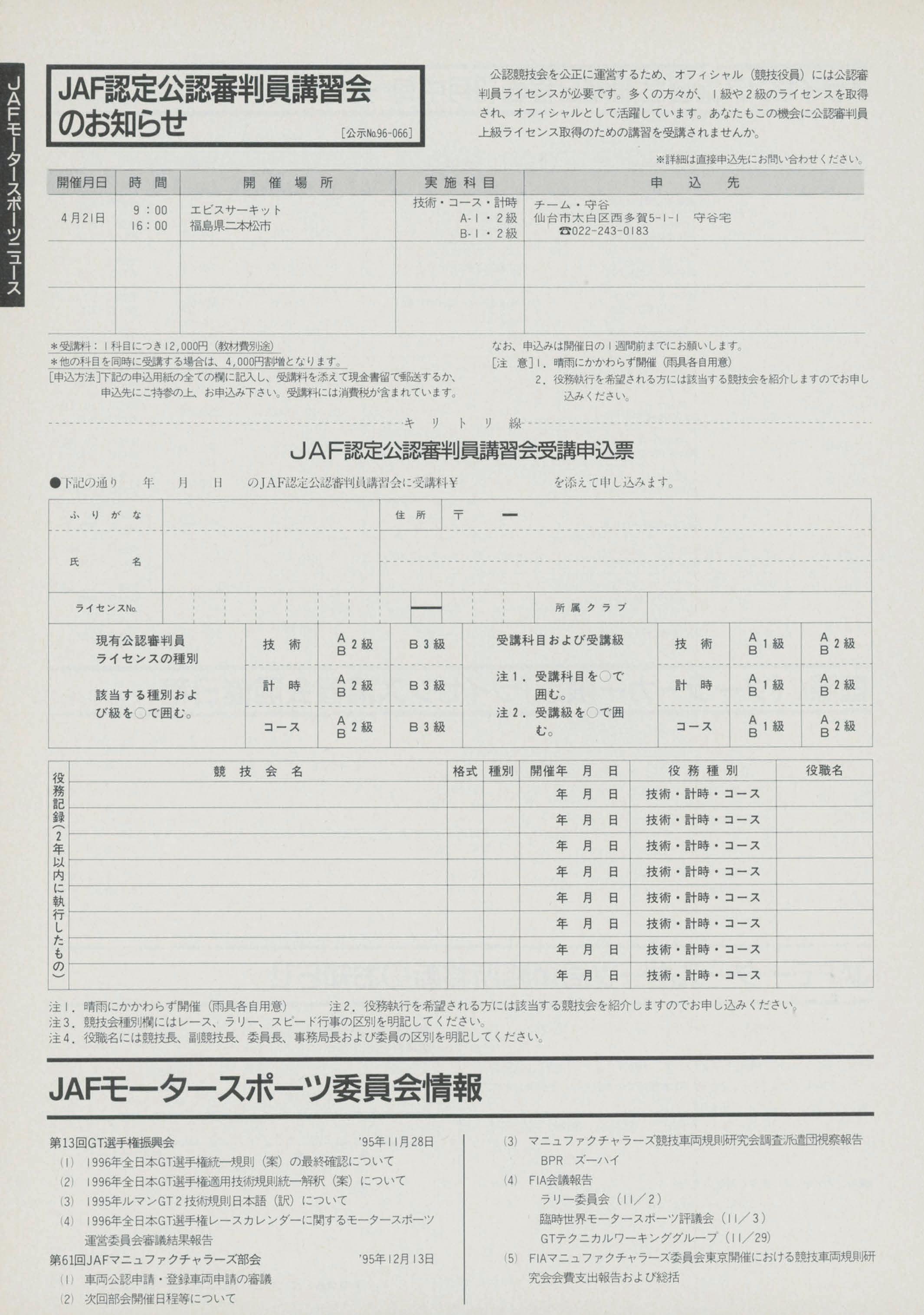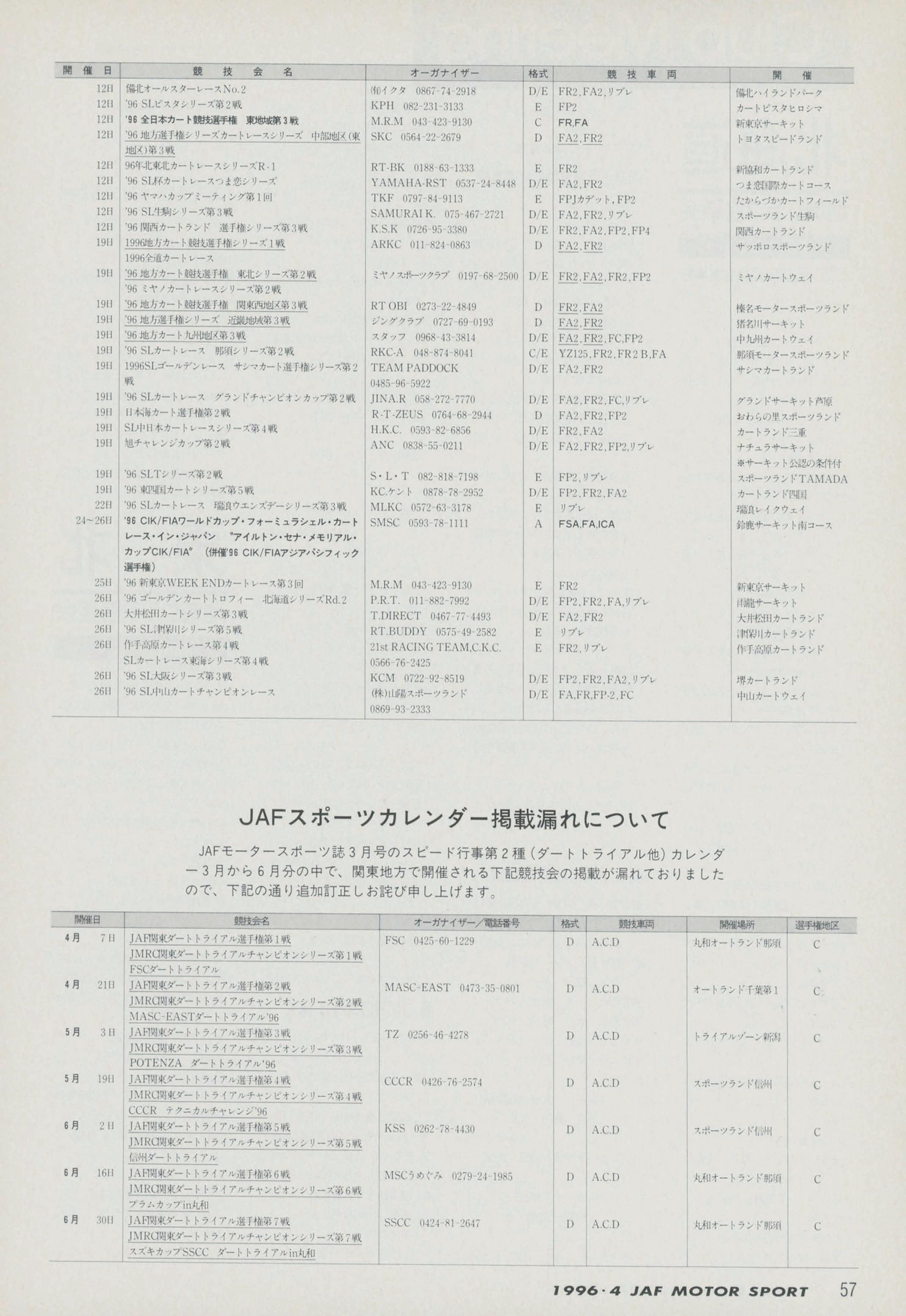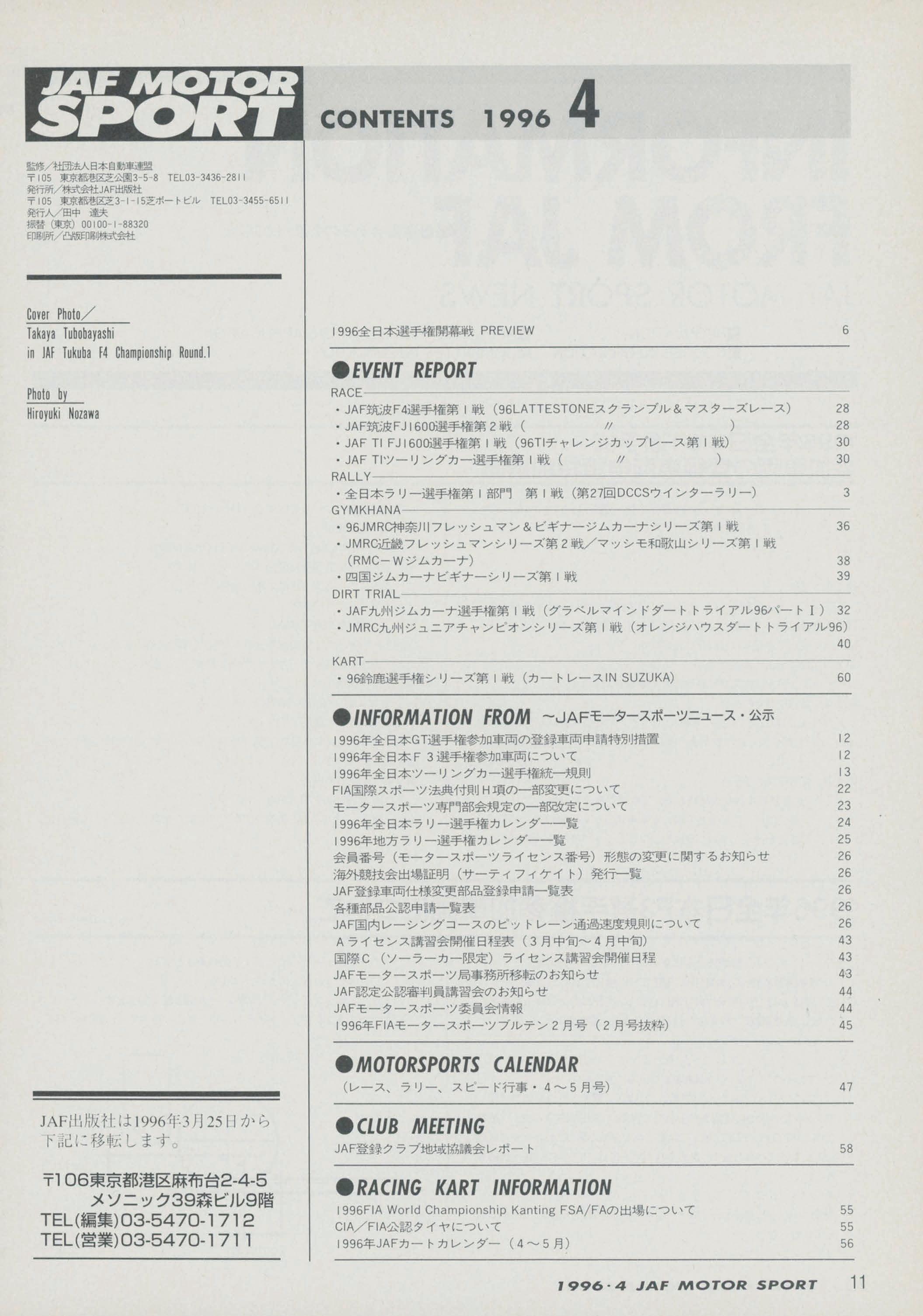 JAFスポーツ 1996年 4月号(第30巻 第3号 1996年4月1日発行)