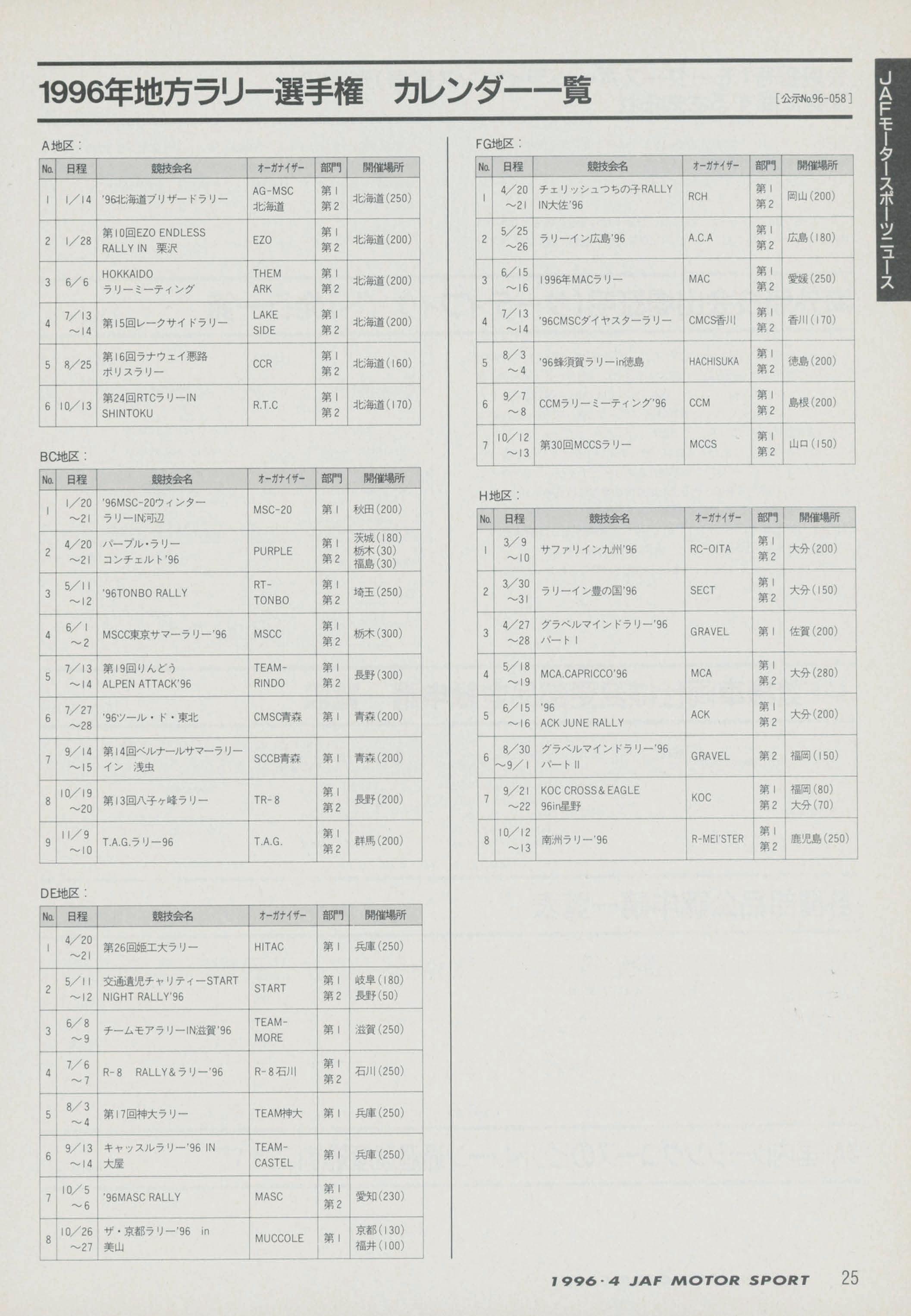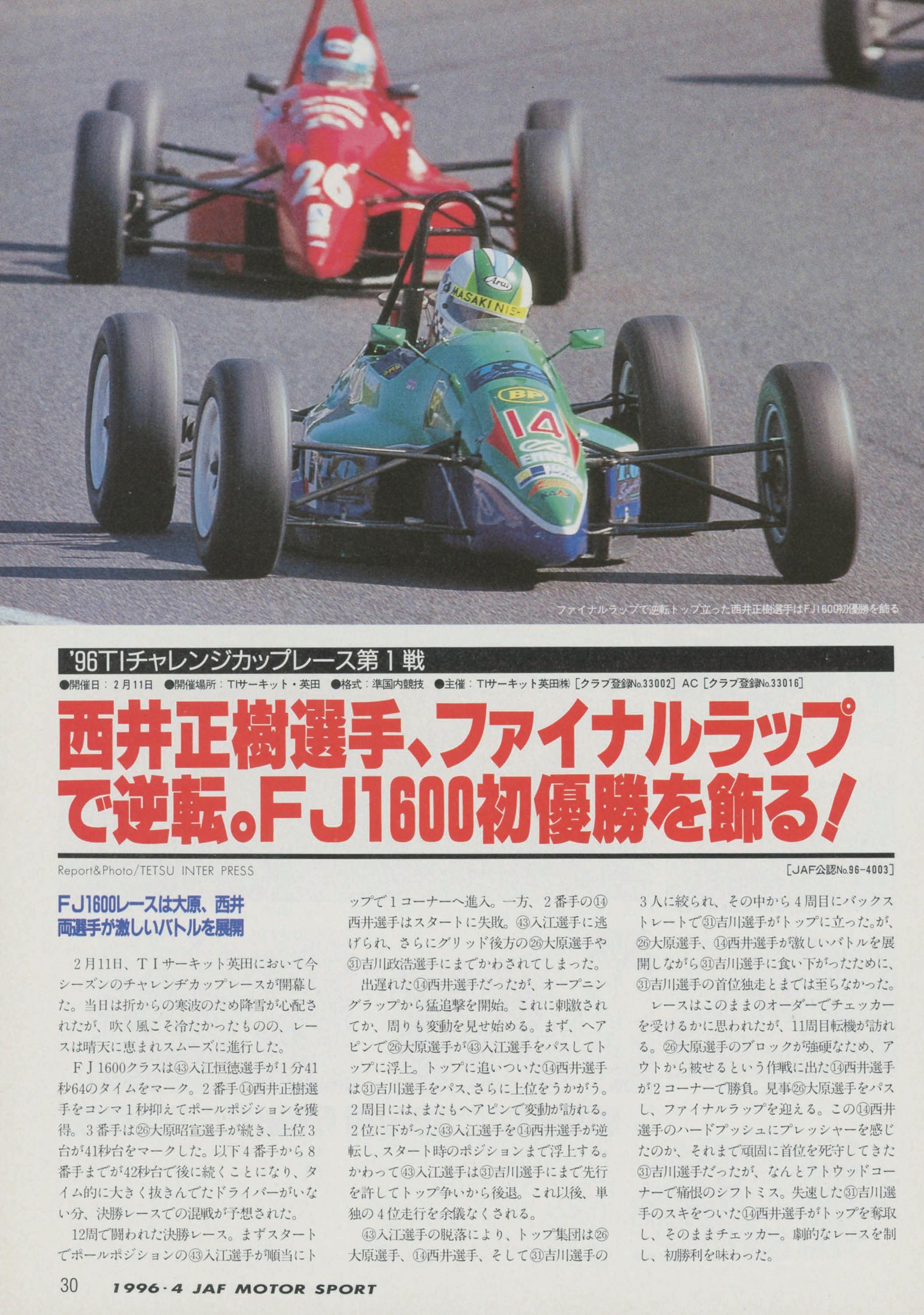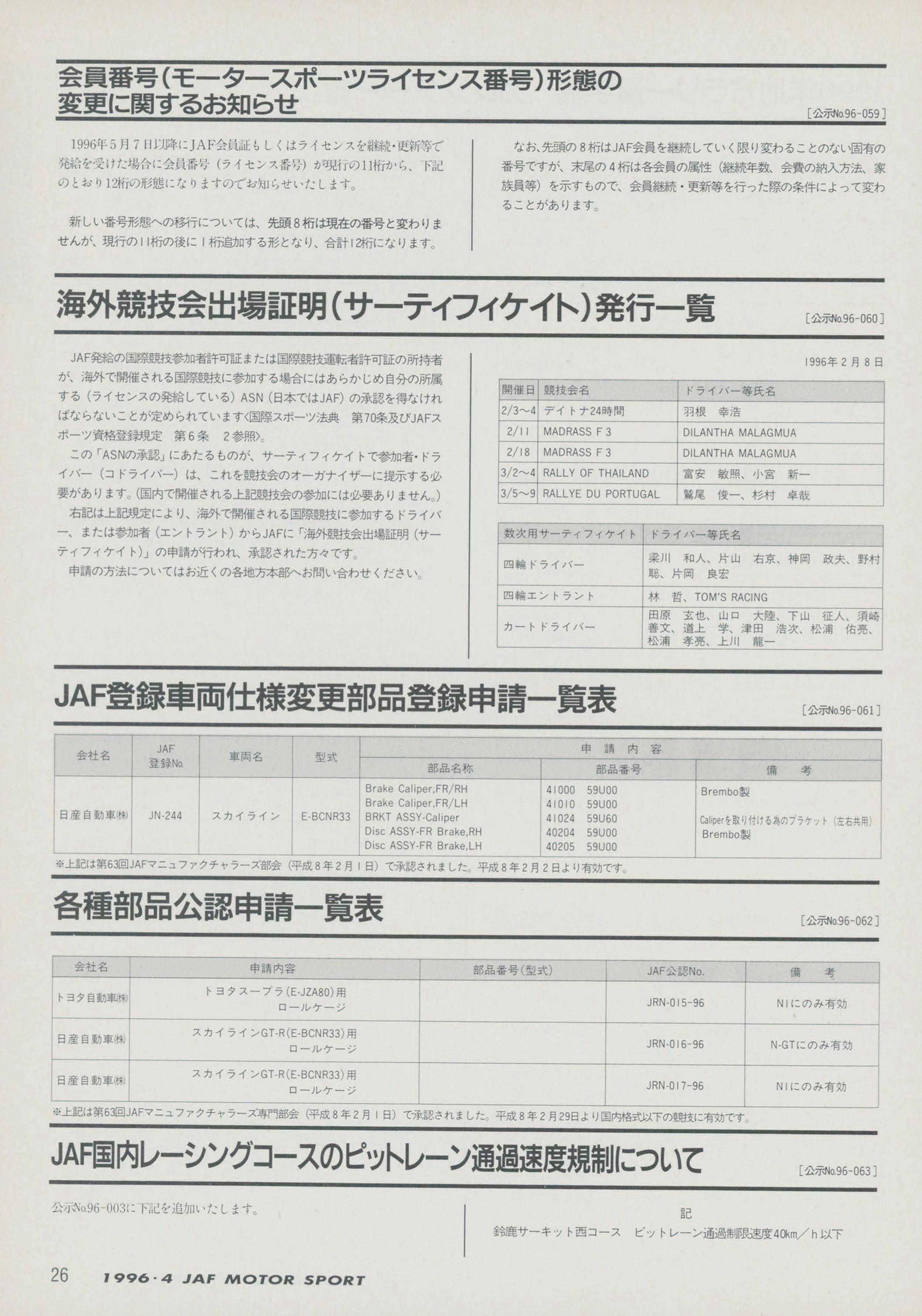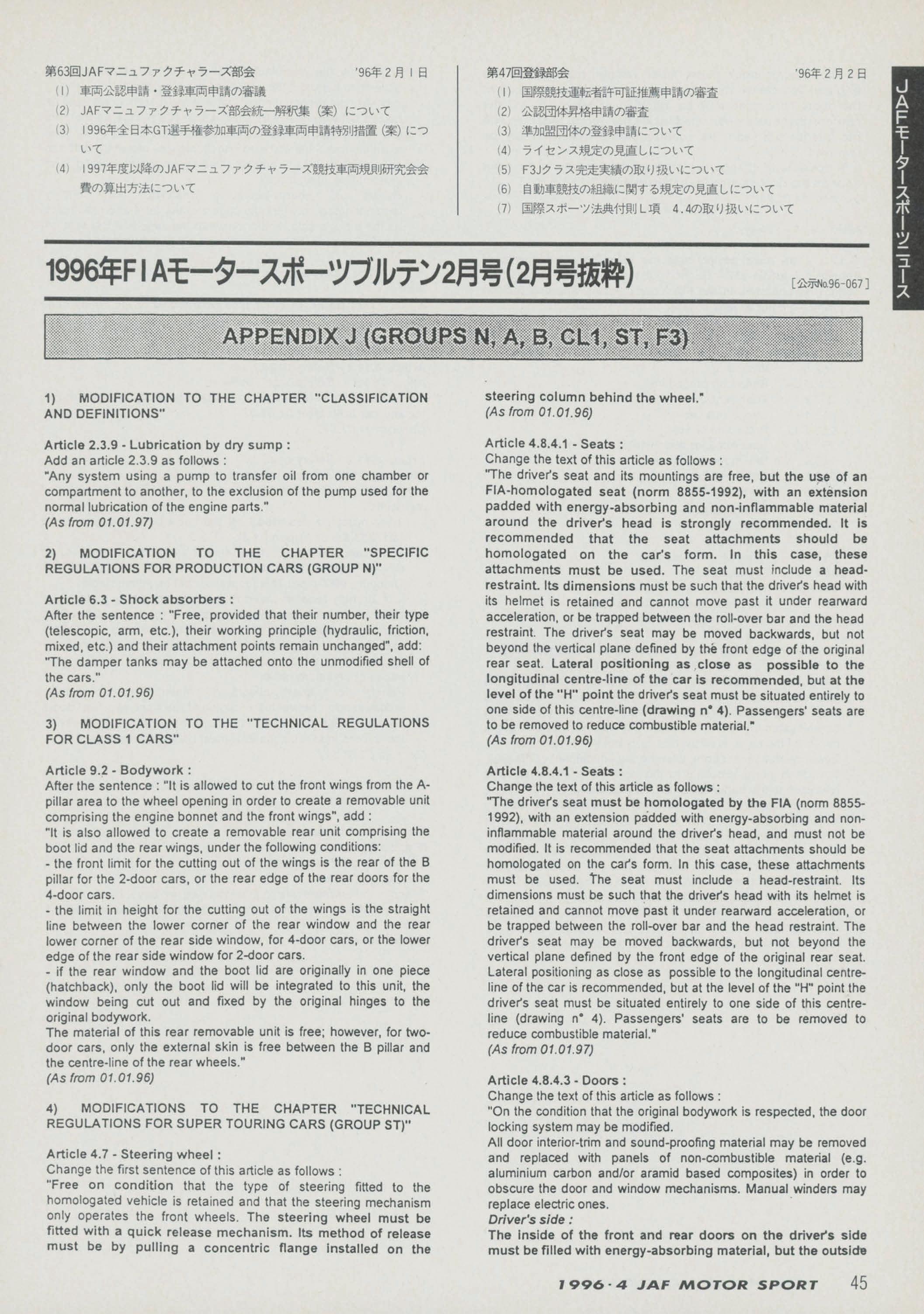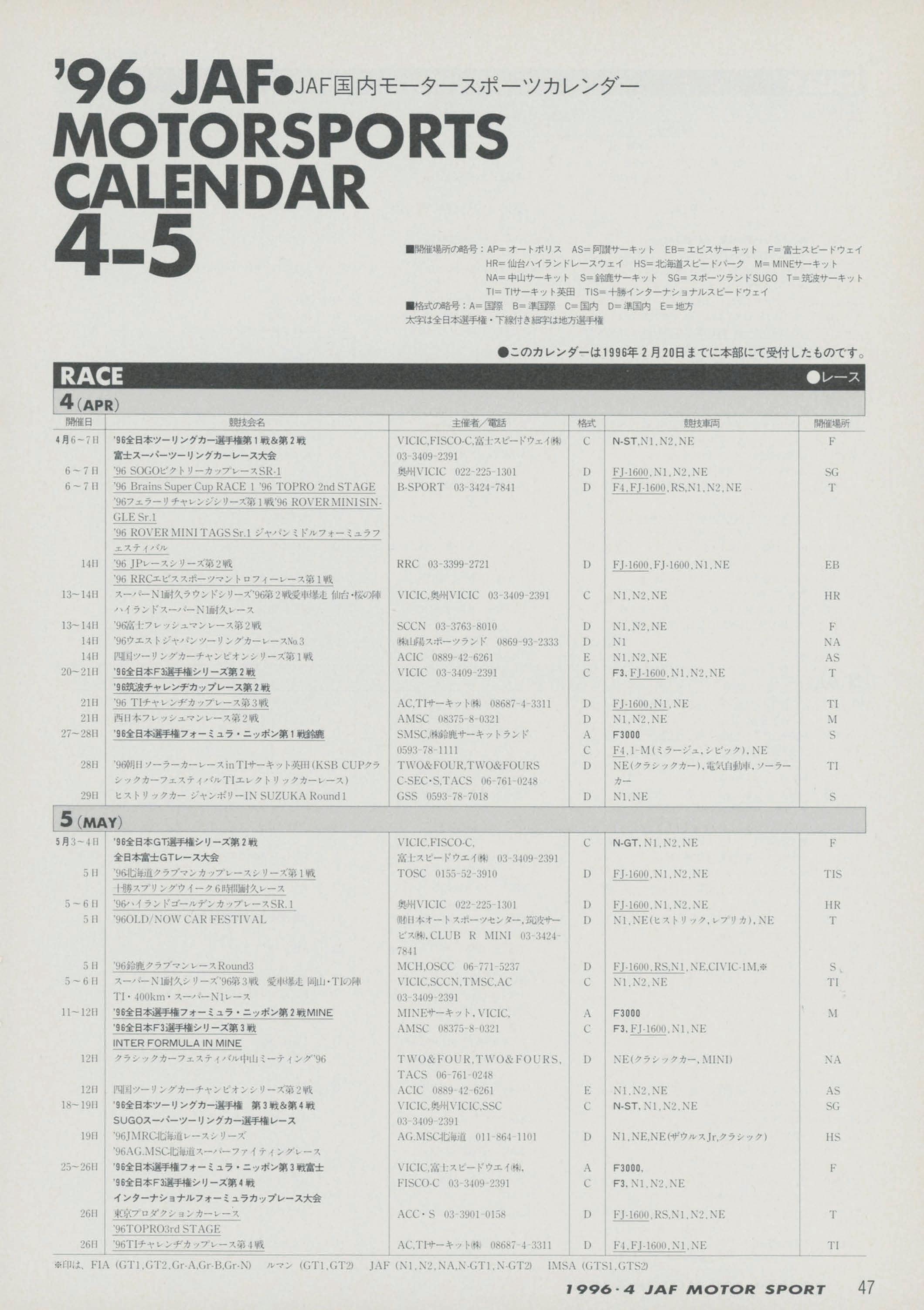 JAFスポーツ 1996年 4月号(第30巻 第3号 1996年4月1日発行)