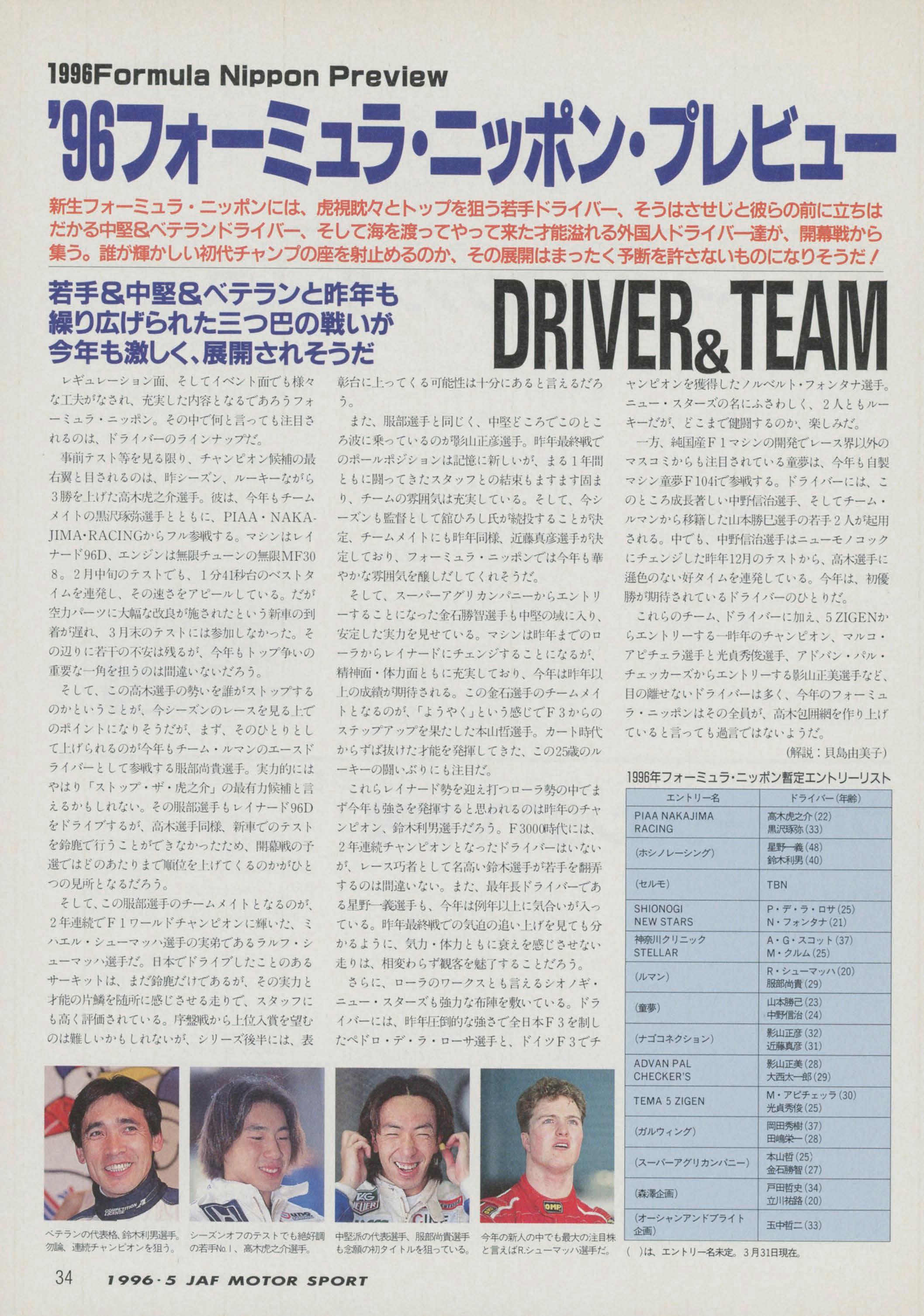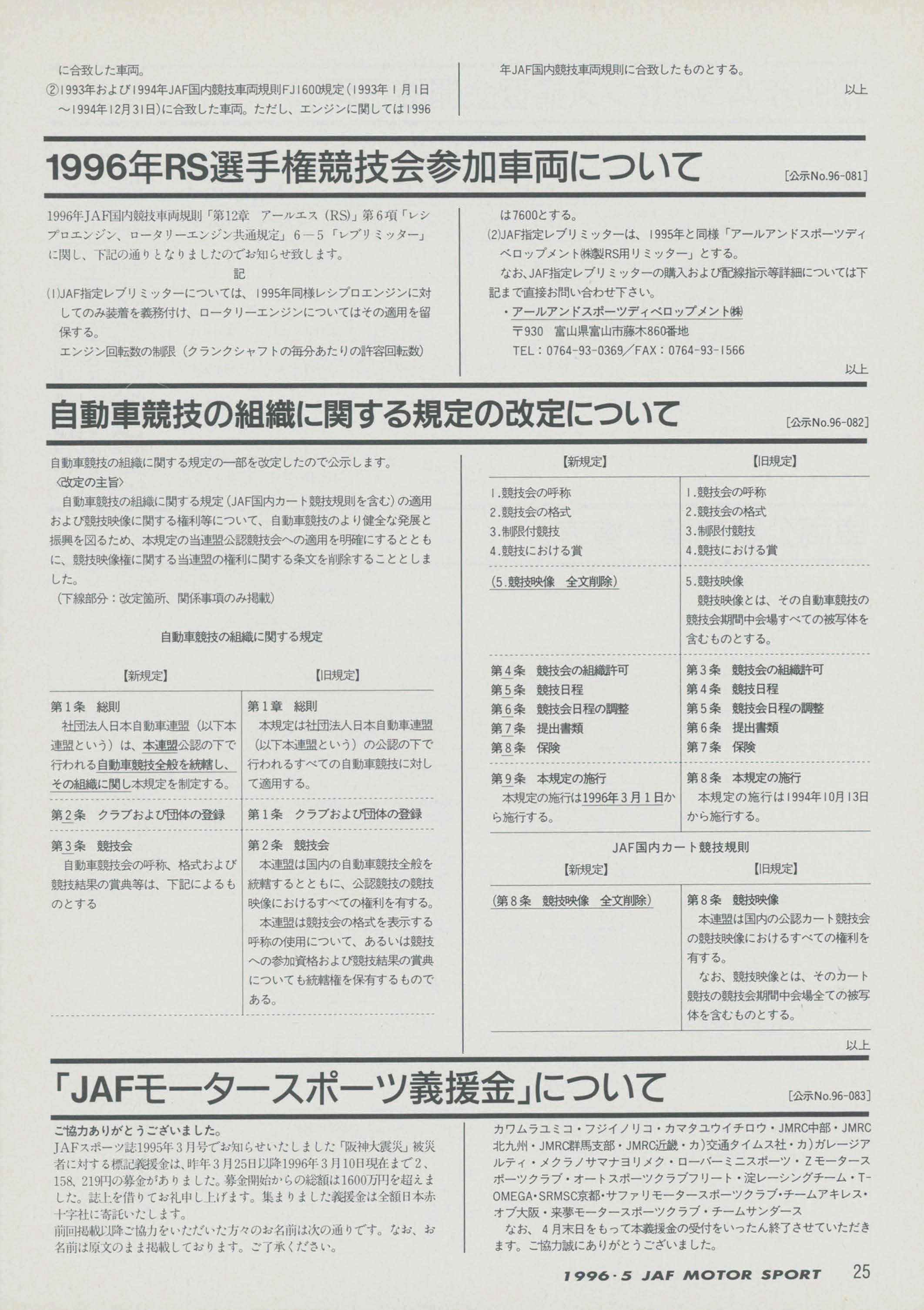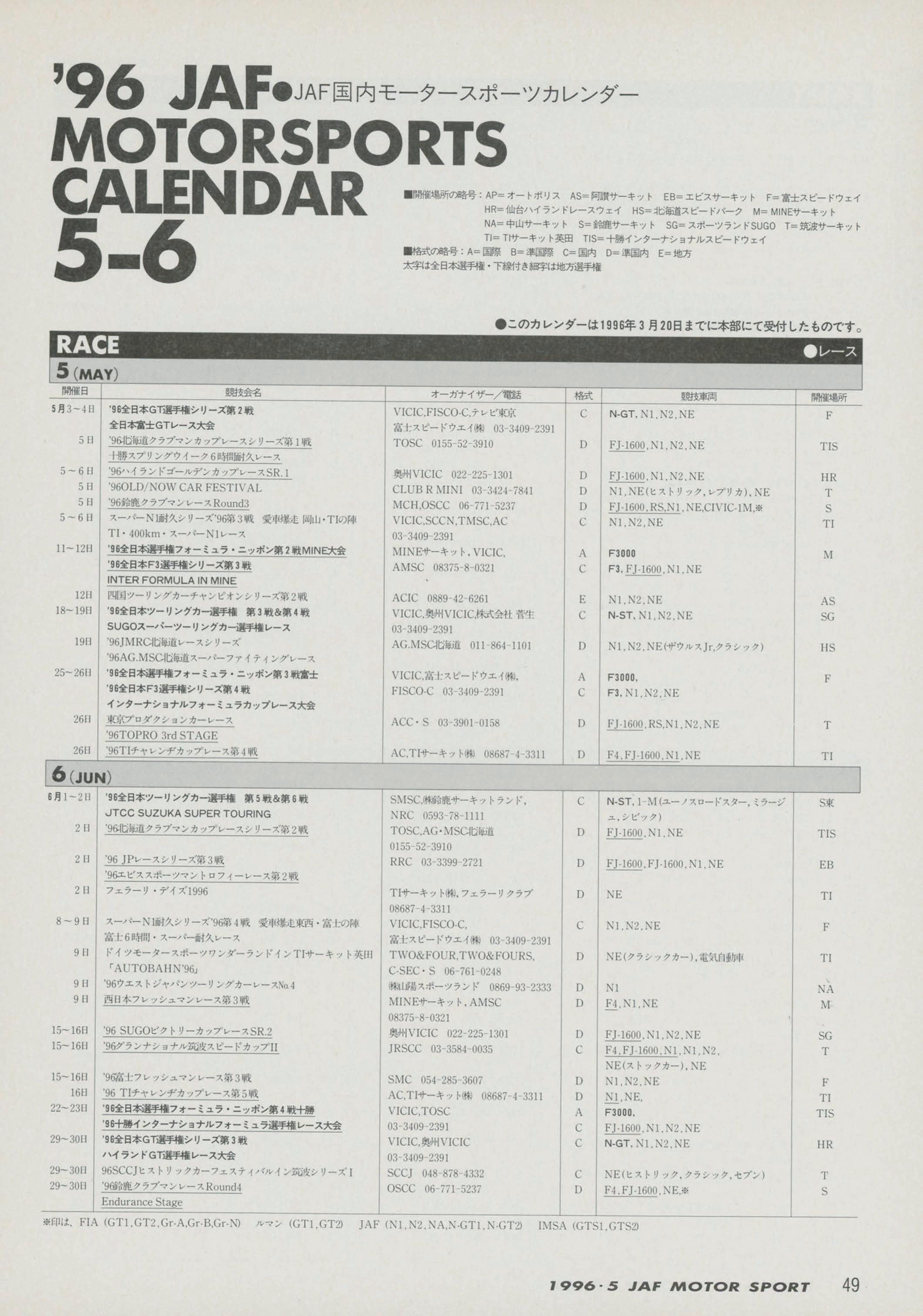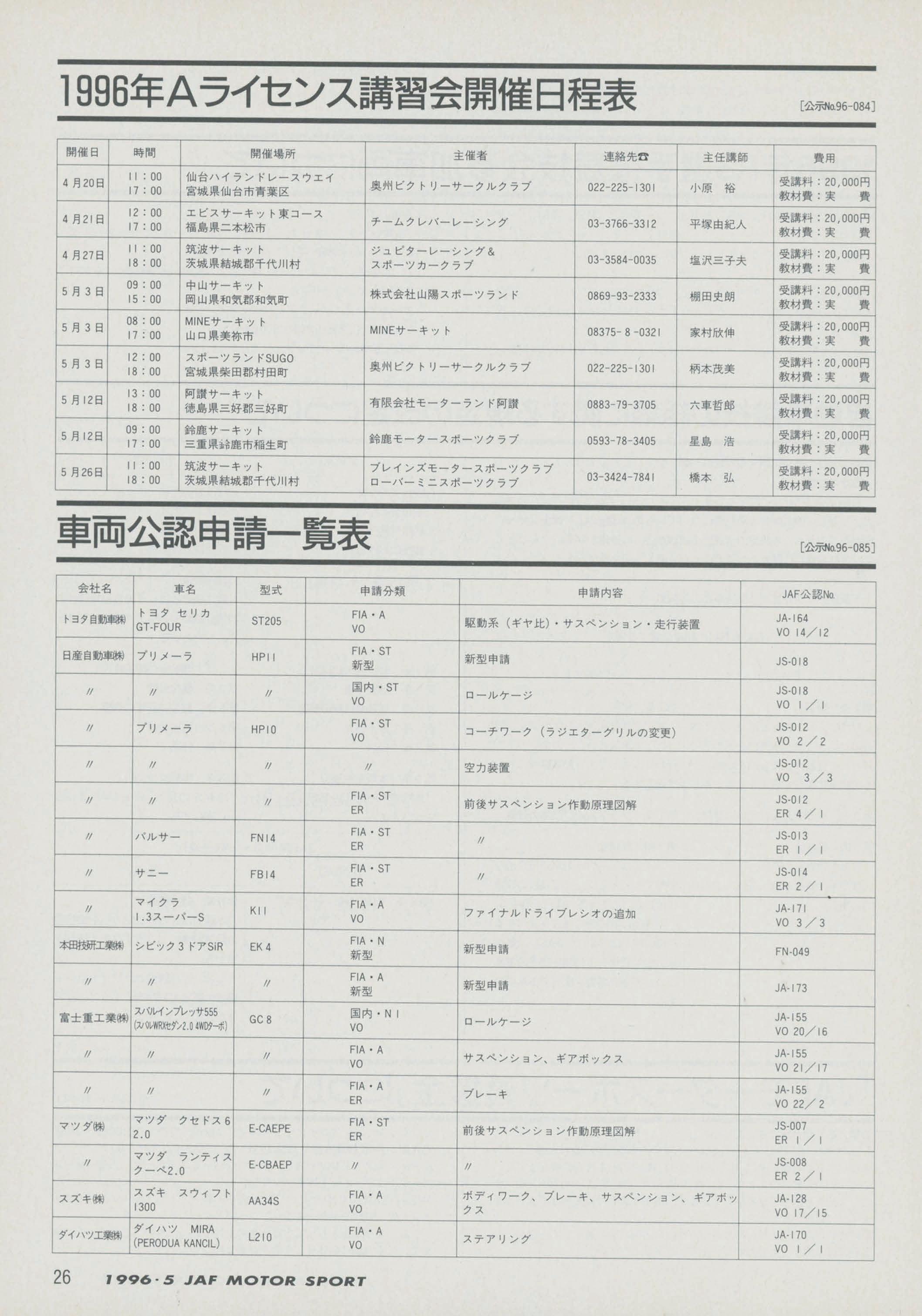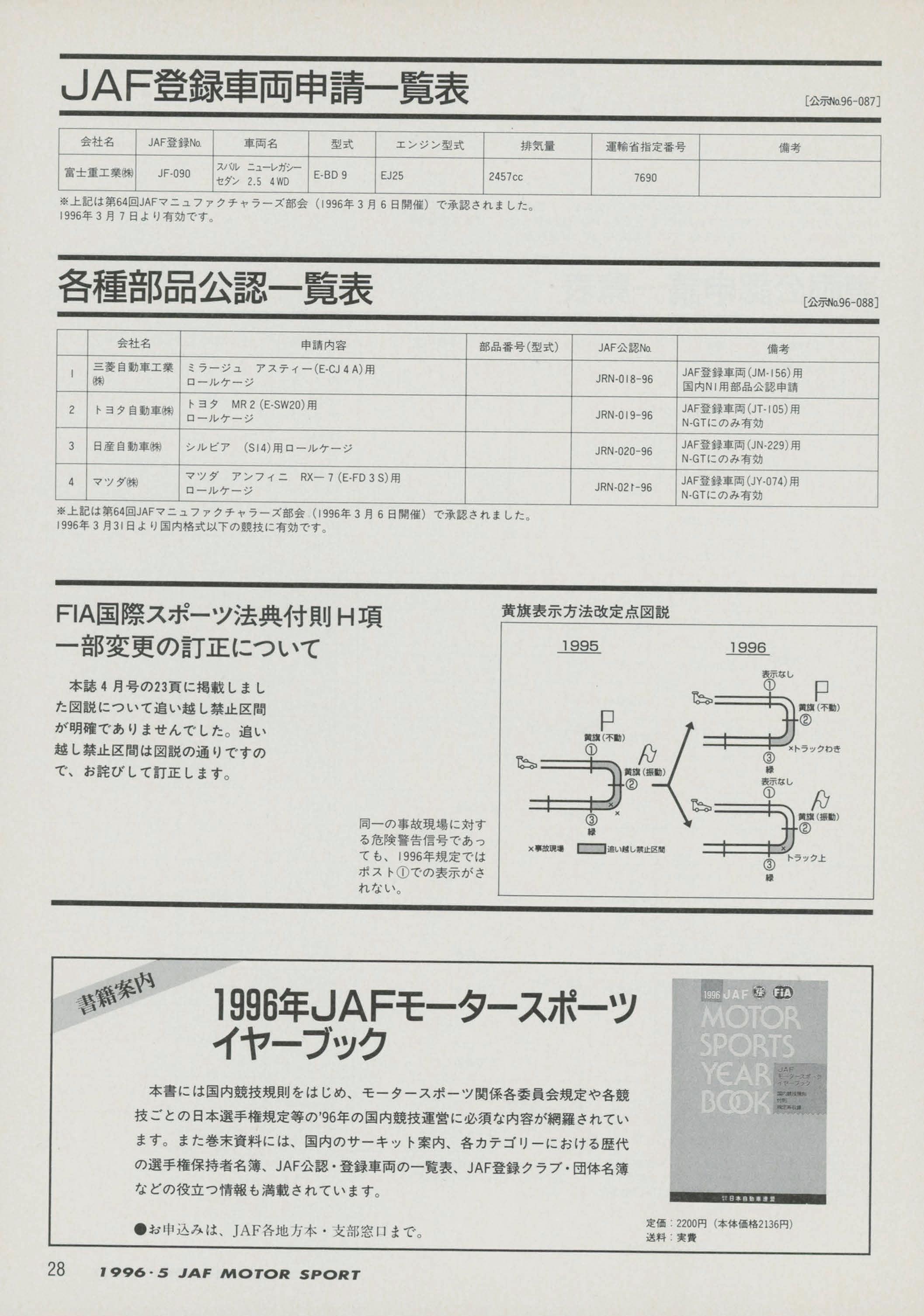 JAFスポーツ 1996年 5月号(第30巻 第4号 1996年5月1日発行)