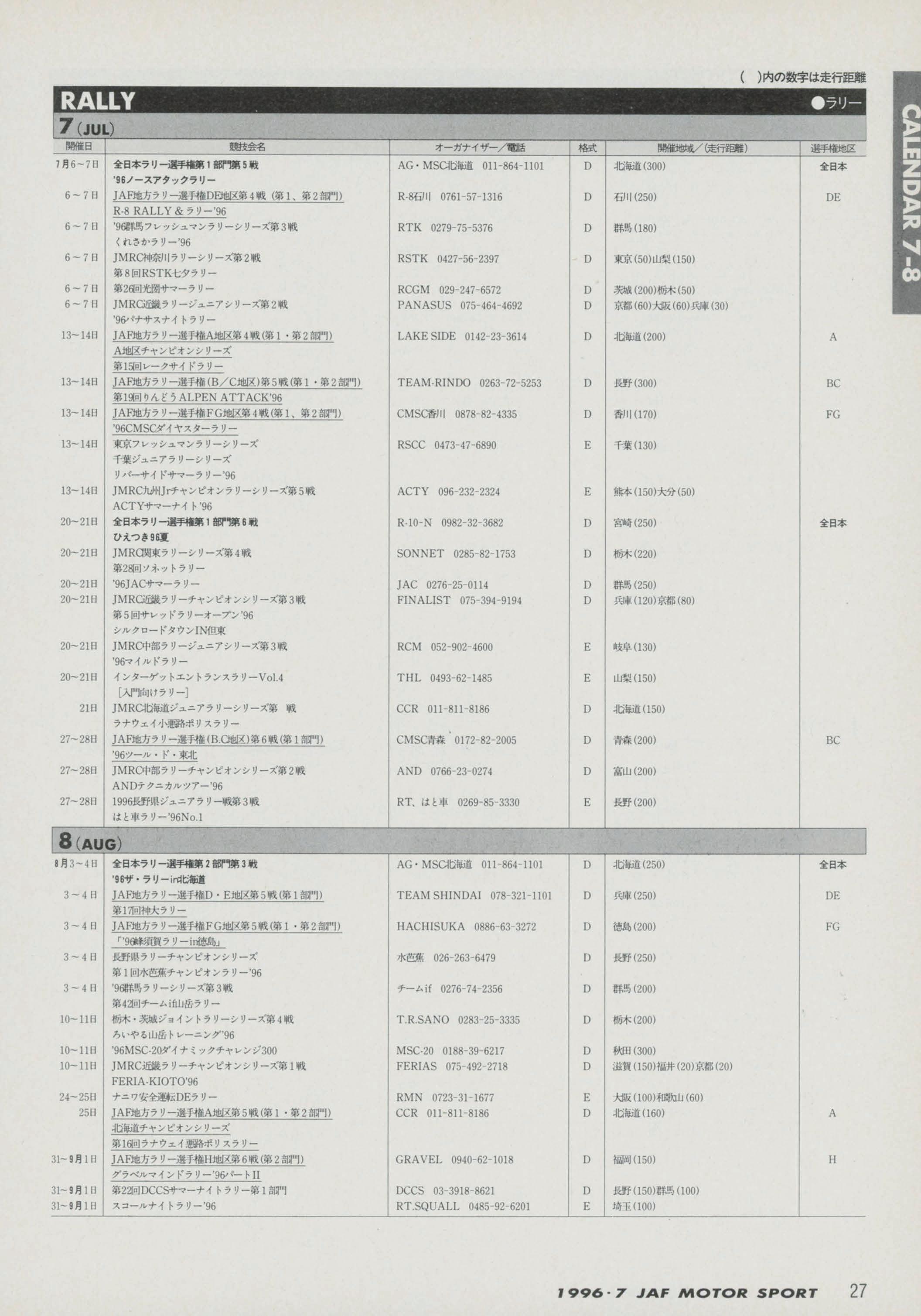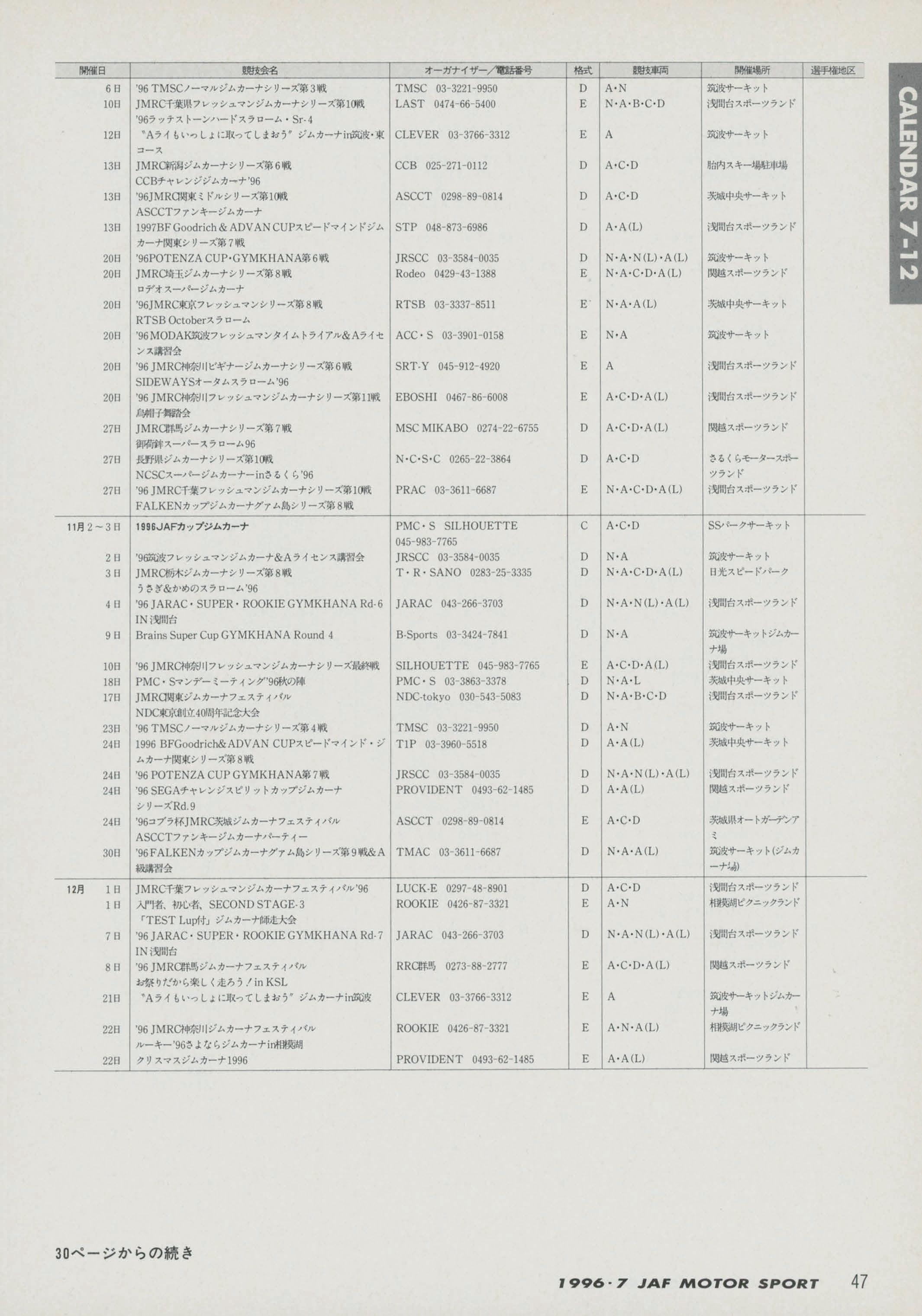 JAFスポーツ 1996年 7月号(第30巻 第6号 1996年7月1日発行)