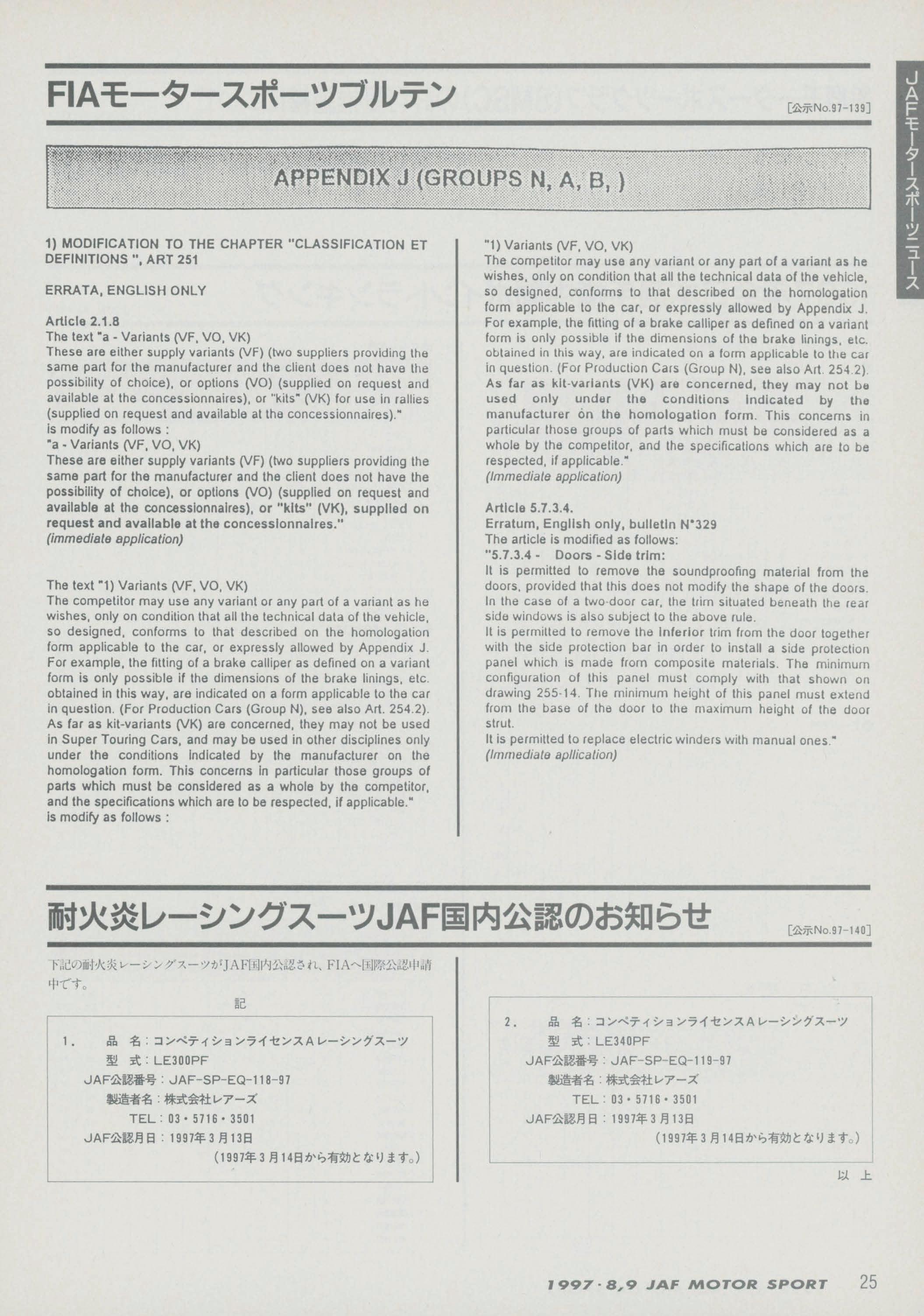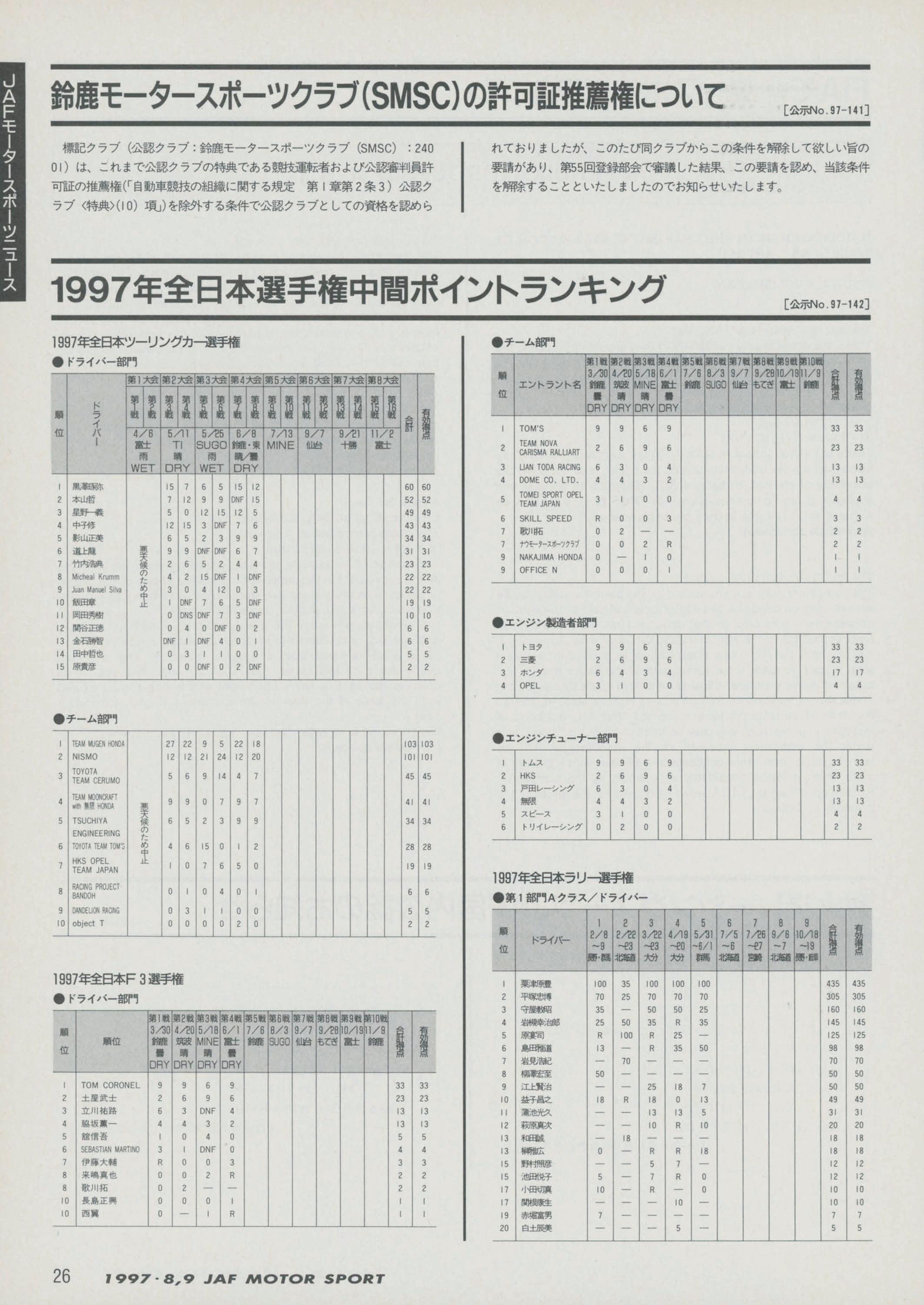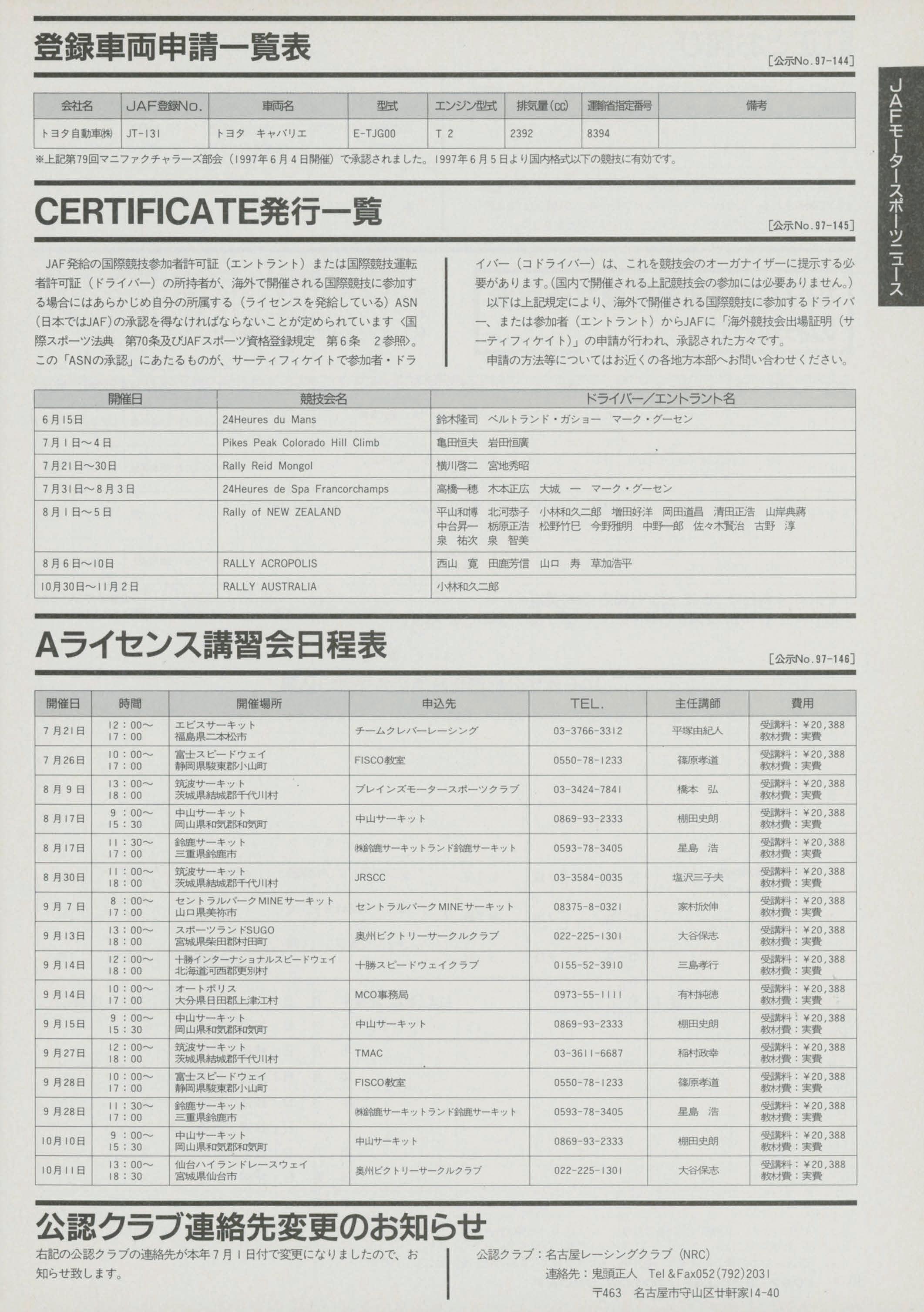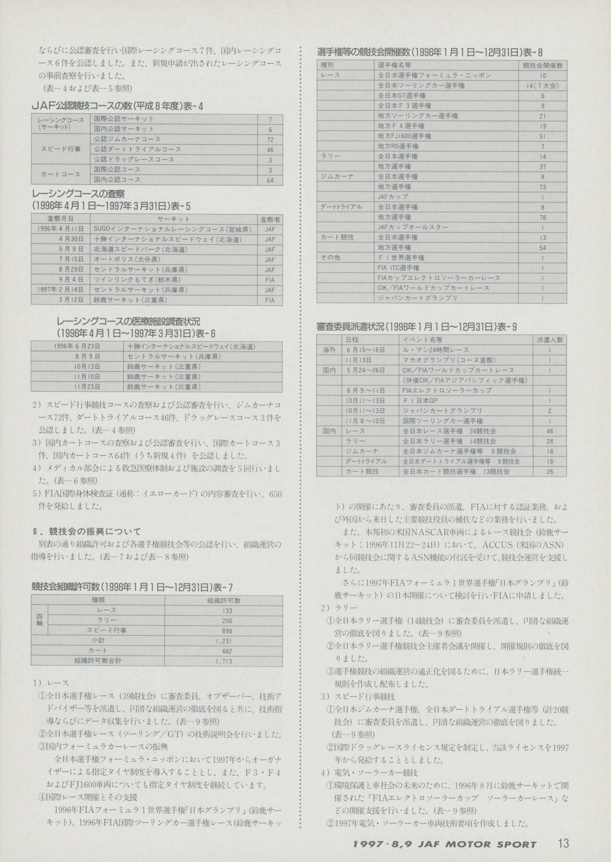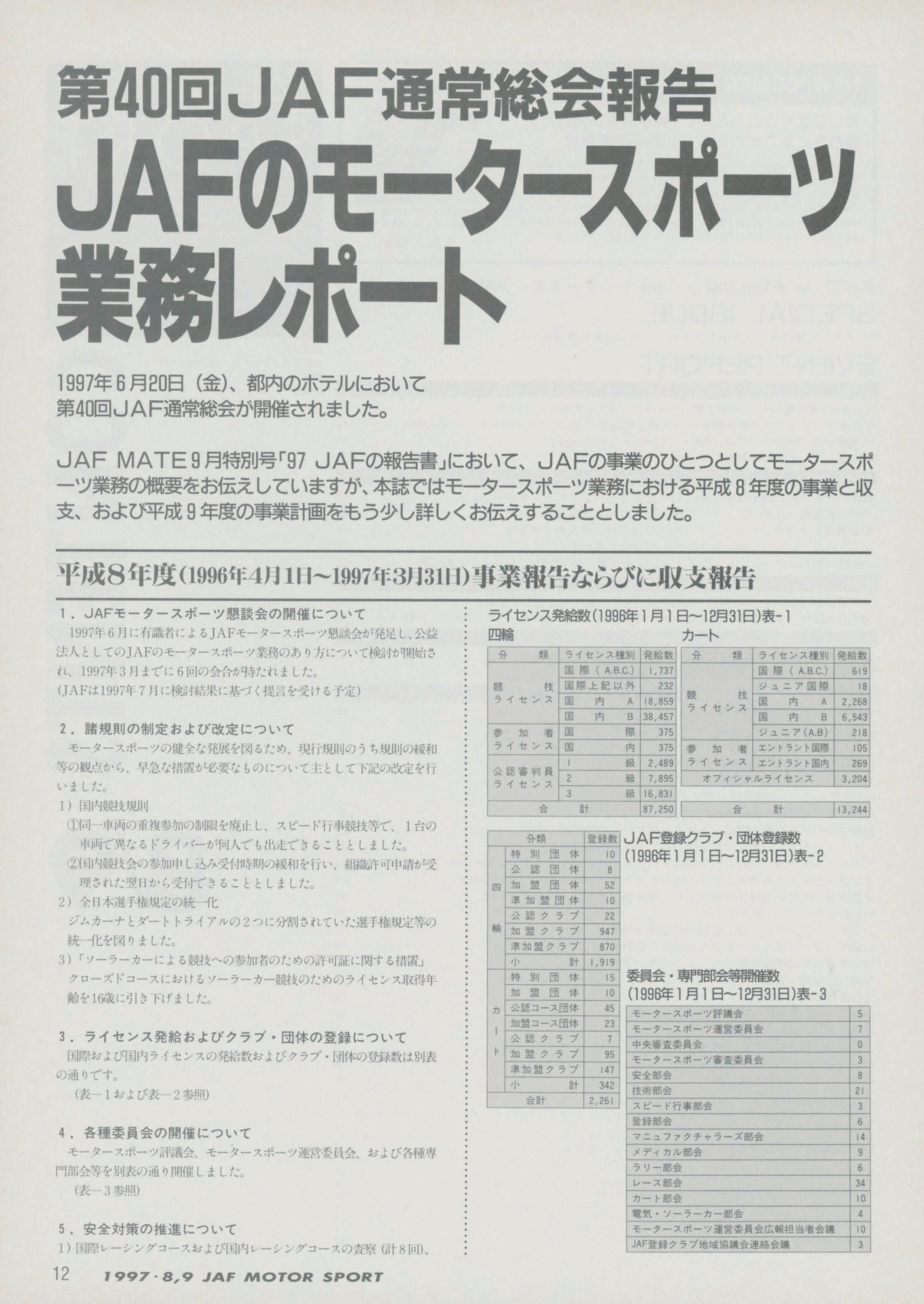 JAFスポーツ 1997年 8/9月号(第31巻 第7号 1997年8月1日発行)