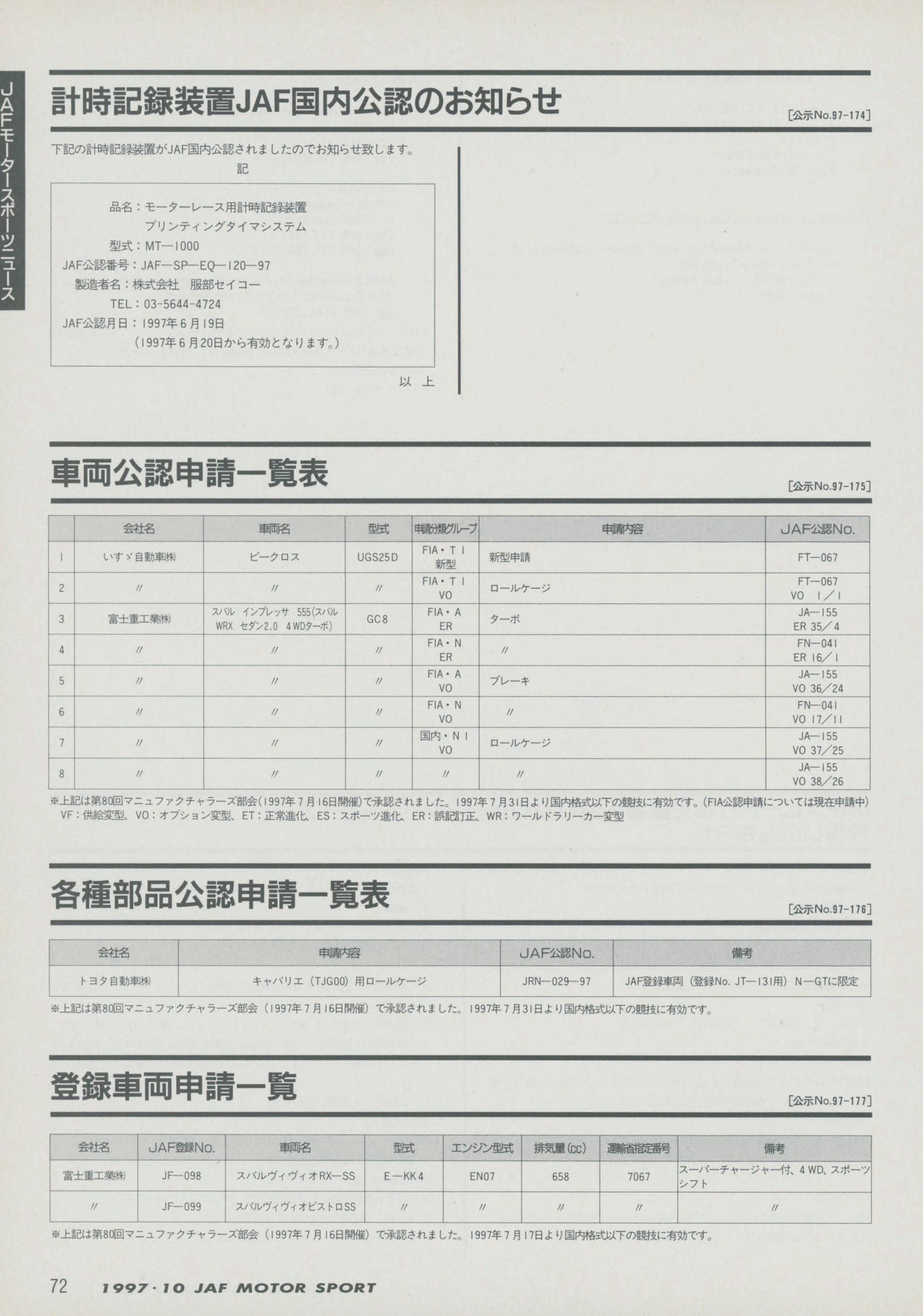 JAFスポーツ 1997年 10月号(第31巻 第8号 1997年10月1日発行)