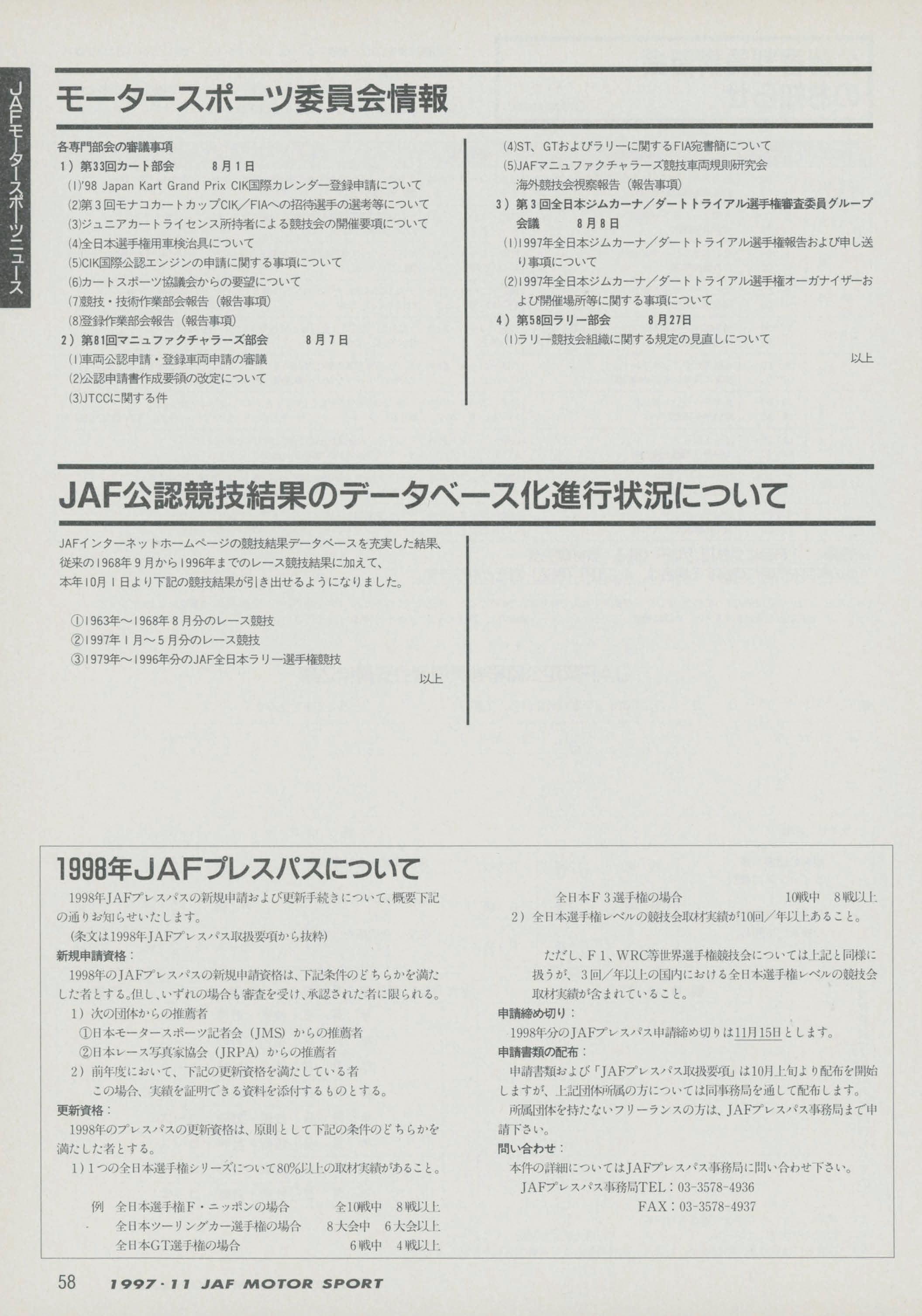 JAFスポーツ 1997年 11月号(第31巻 第9号 1997年11月1日発行)