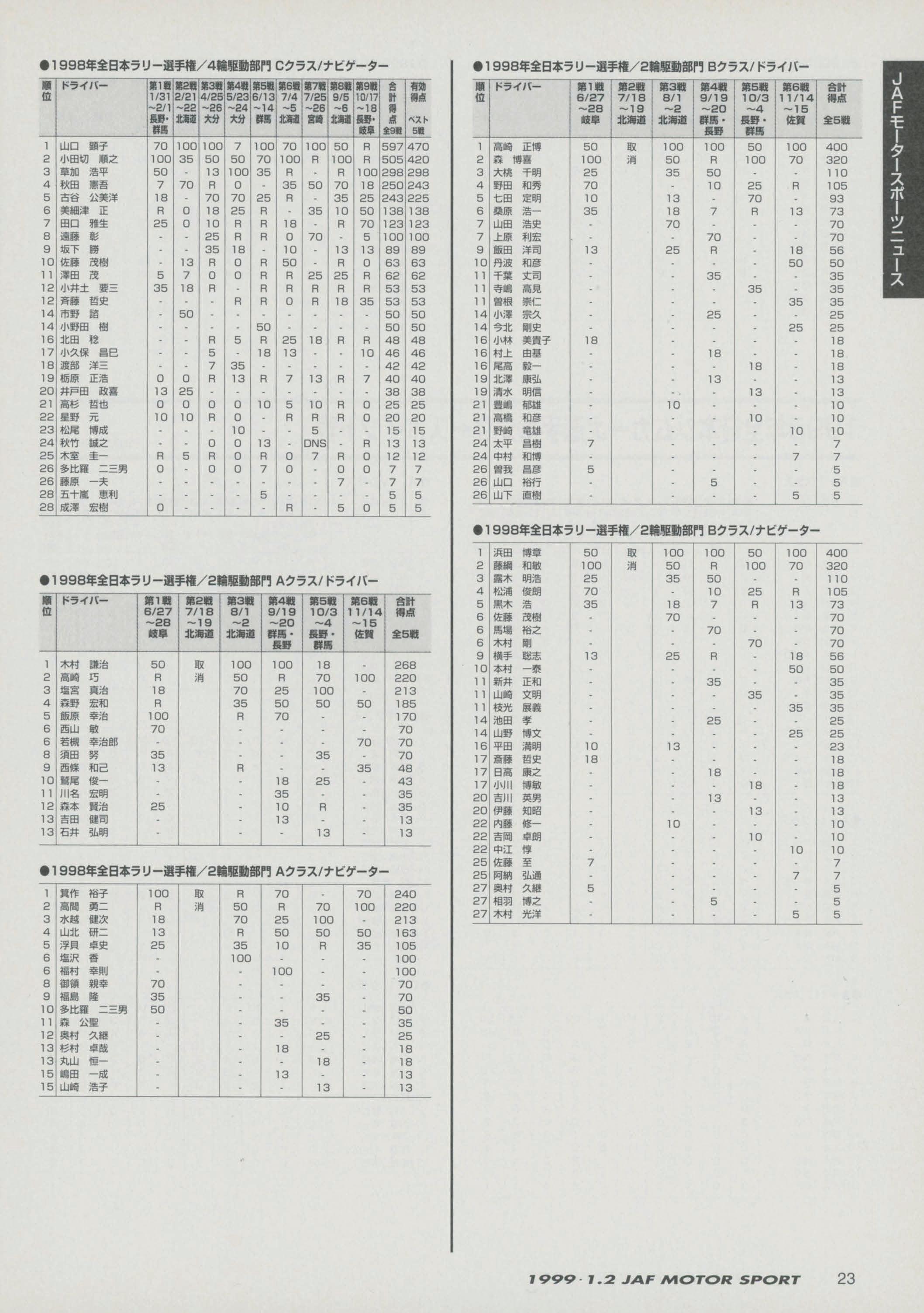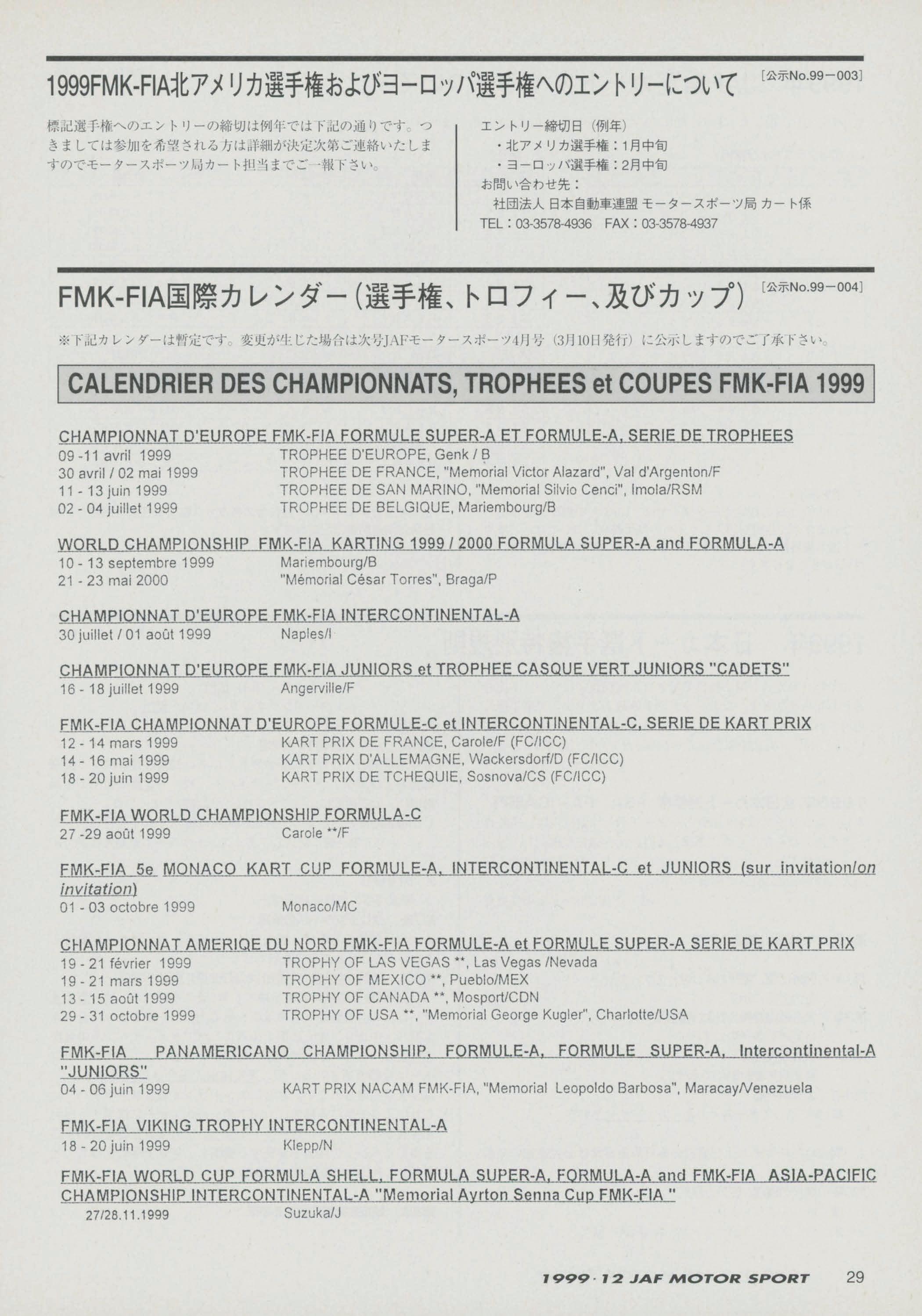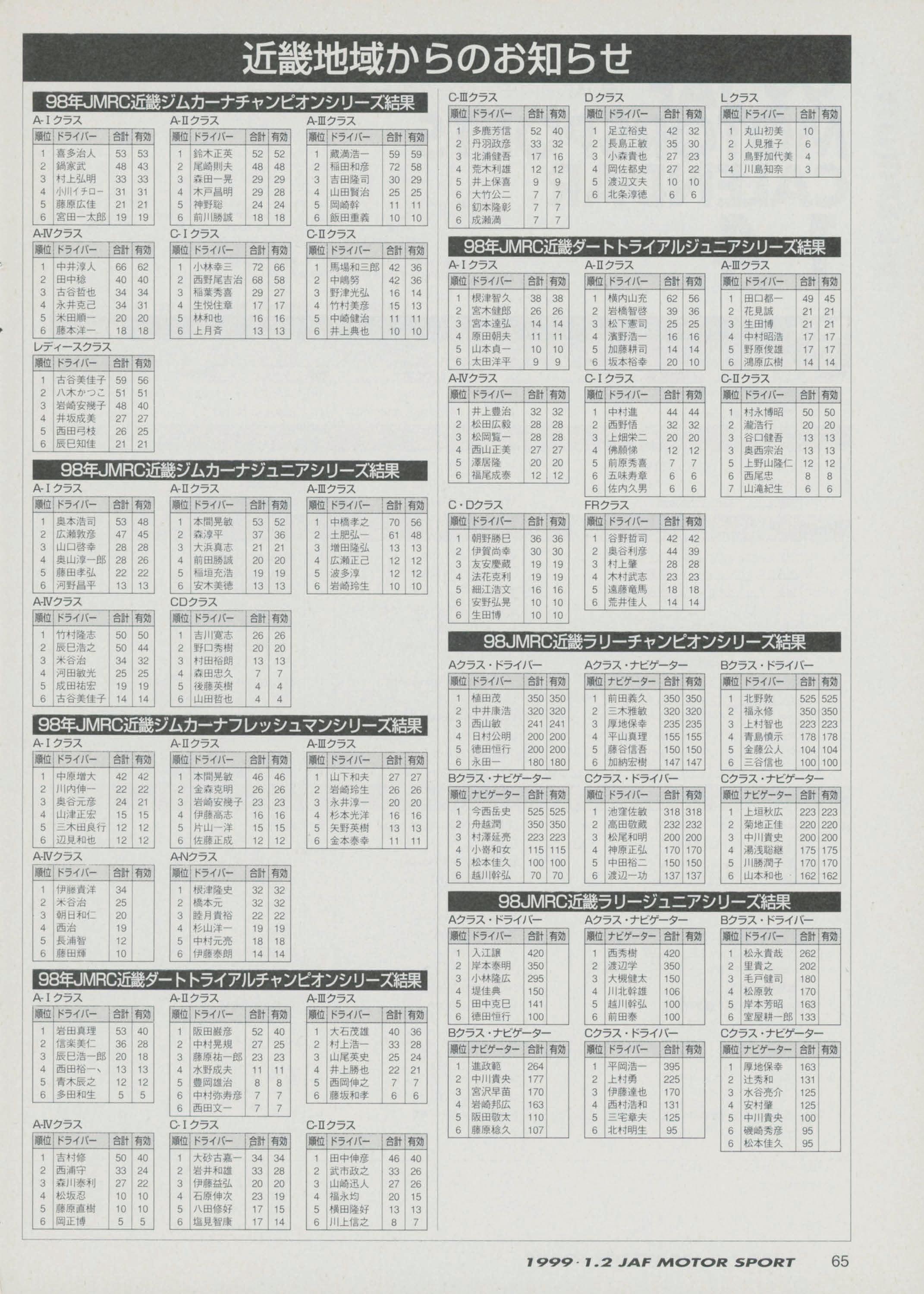 JAFスポーツ 1999年 1/2月号(第33巻 第1号 1999年1月1日発行)