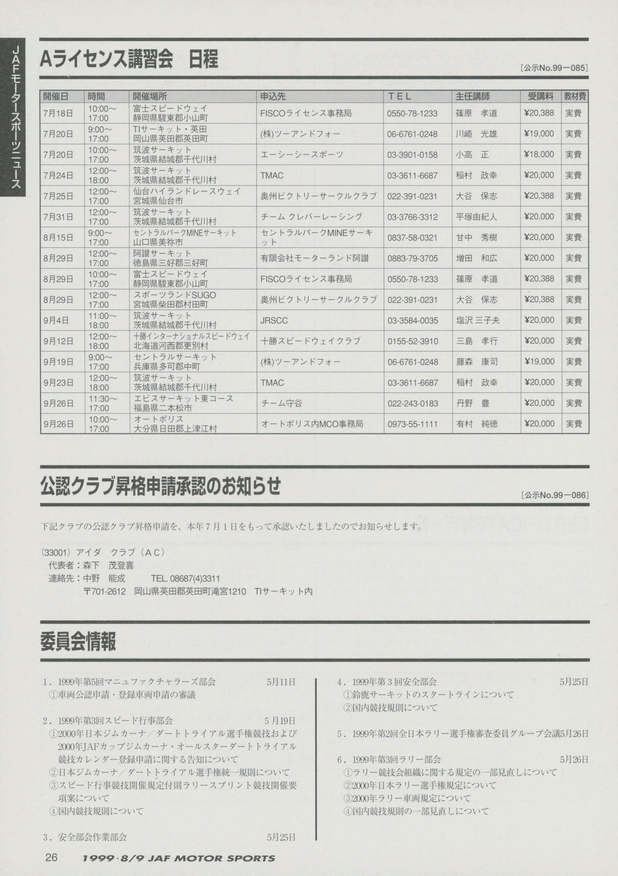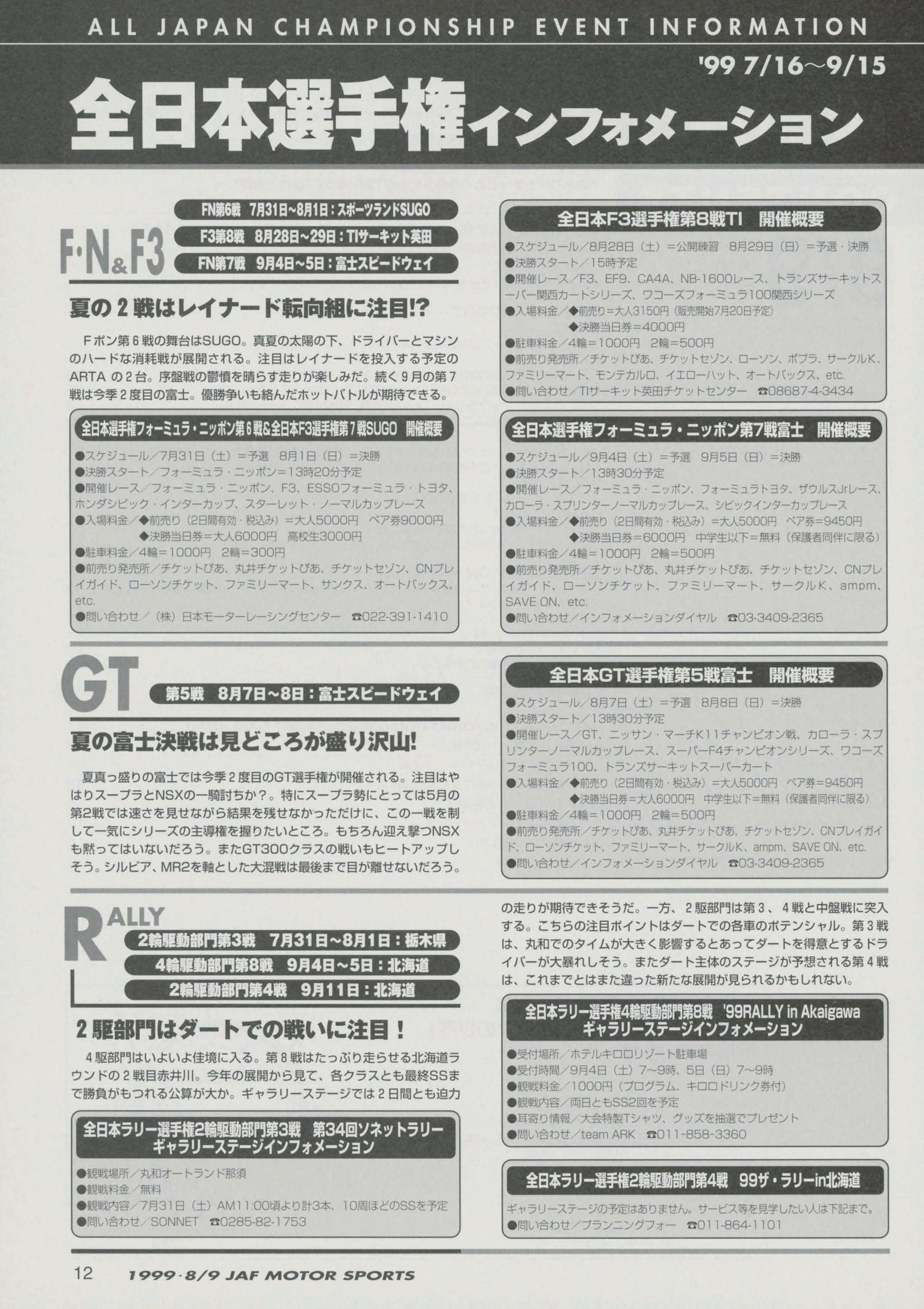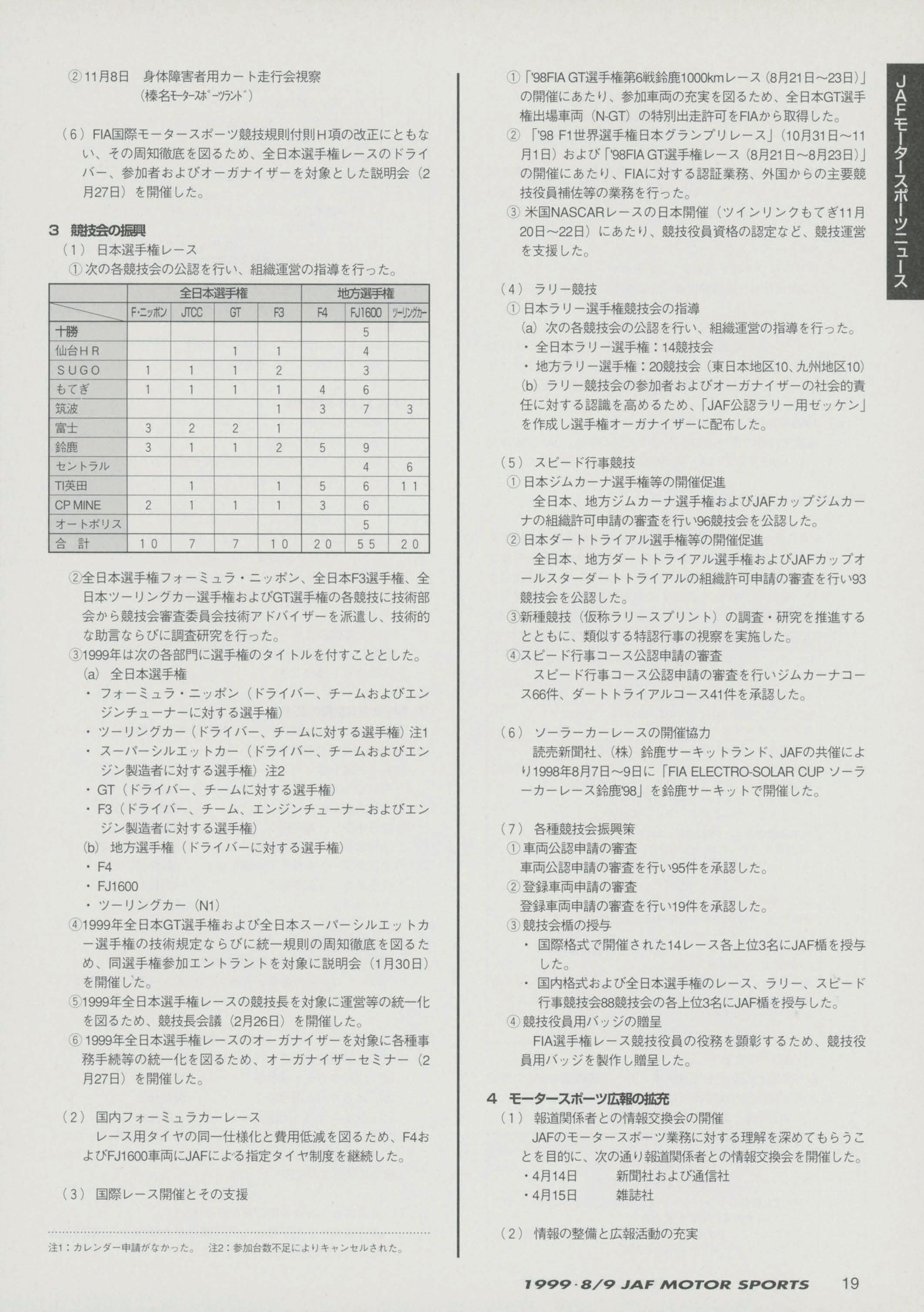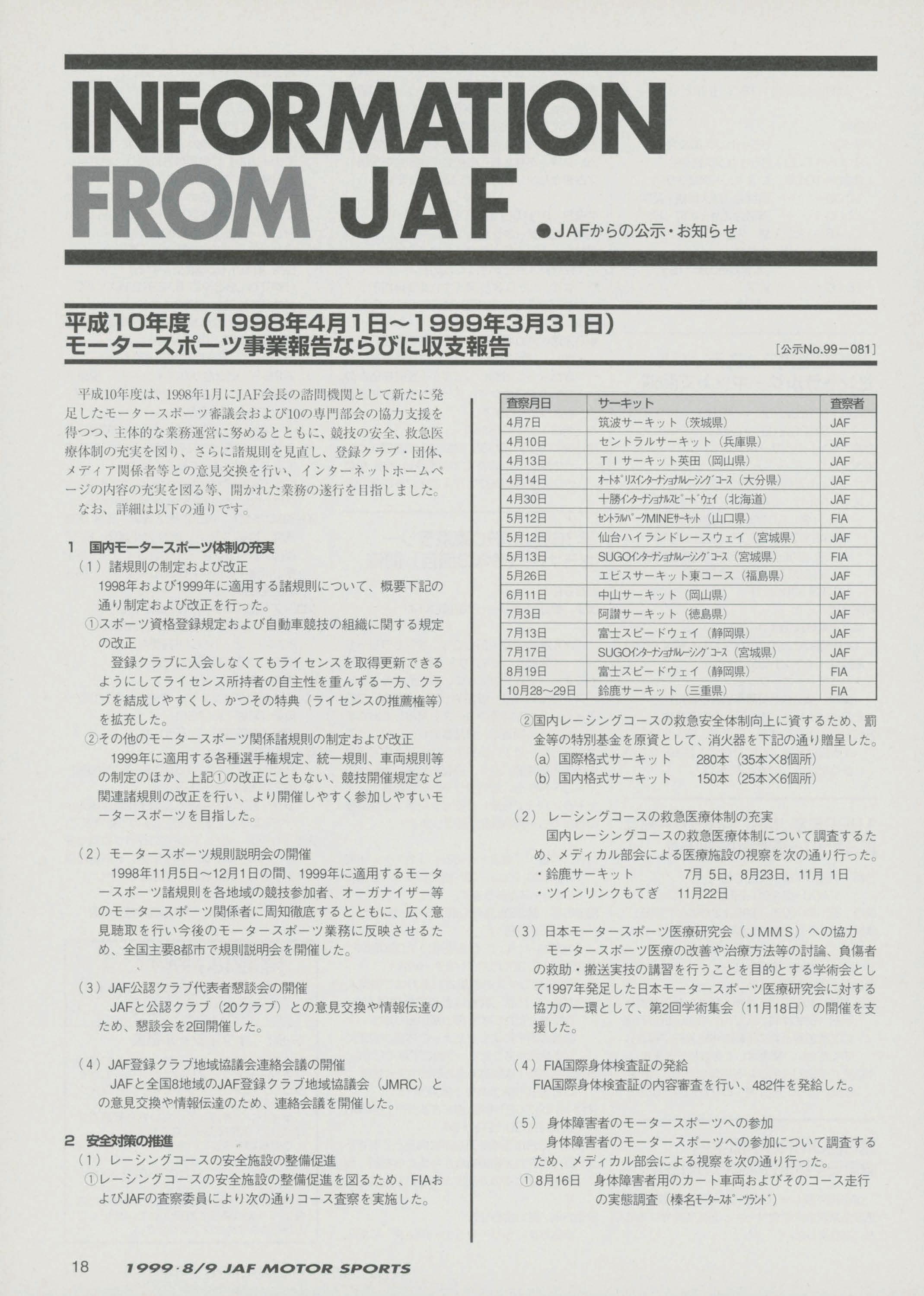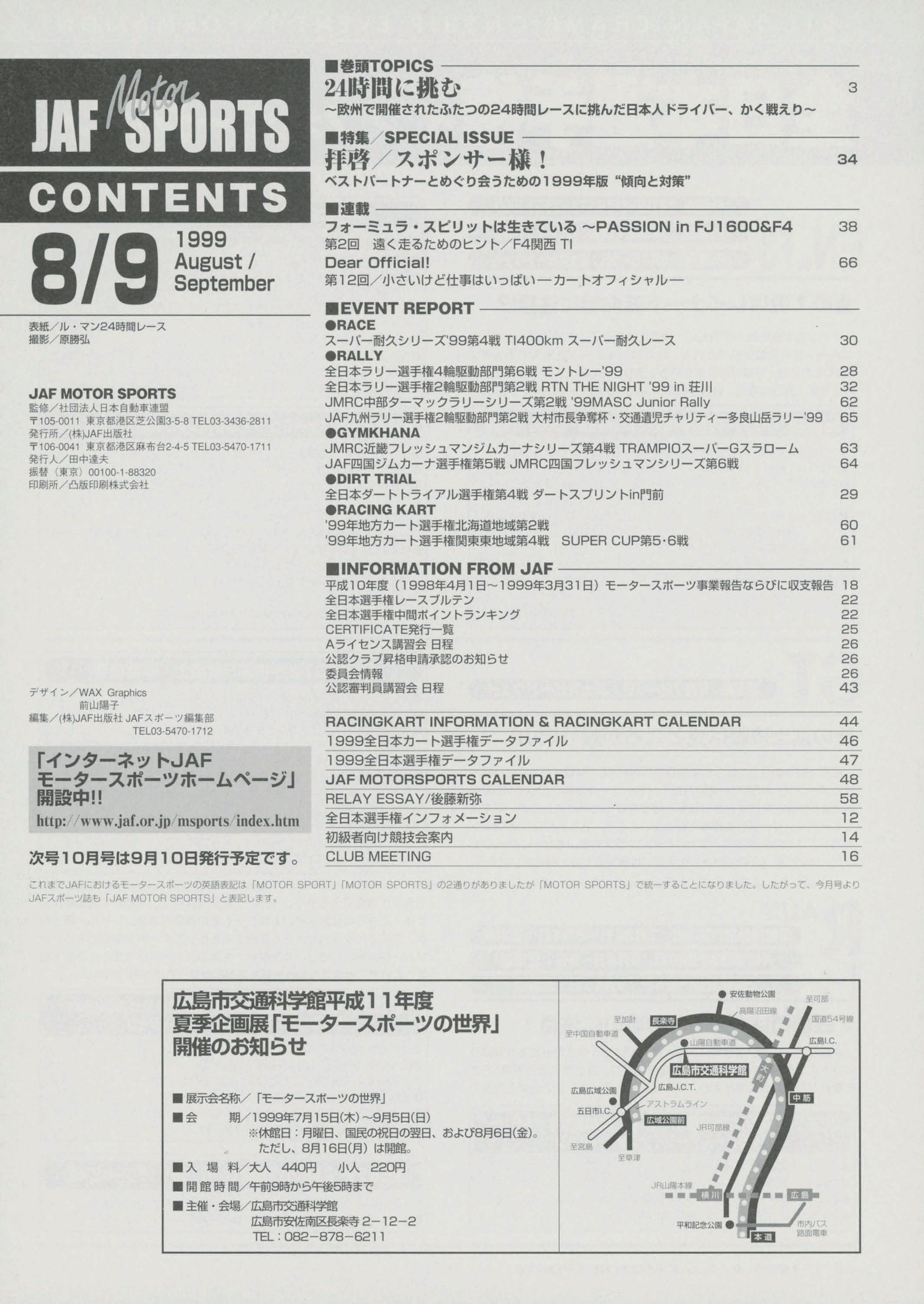 JAFスポーツ 1999年 8/9月号(第33巻 第7号 1999年8月1日発行)