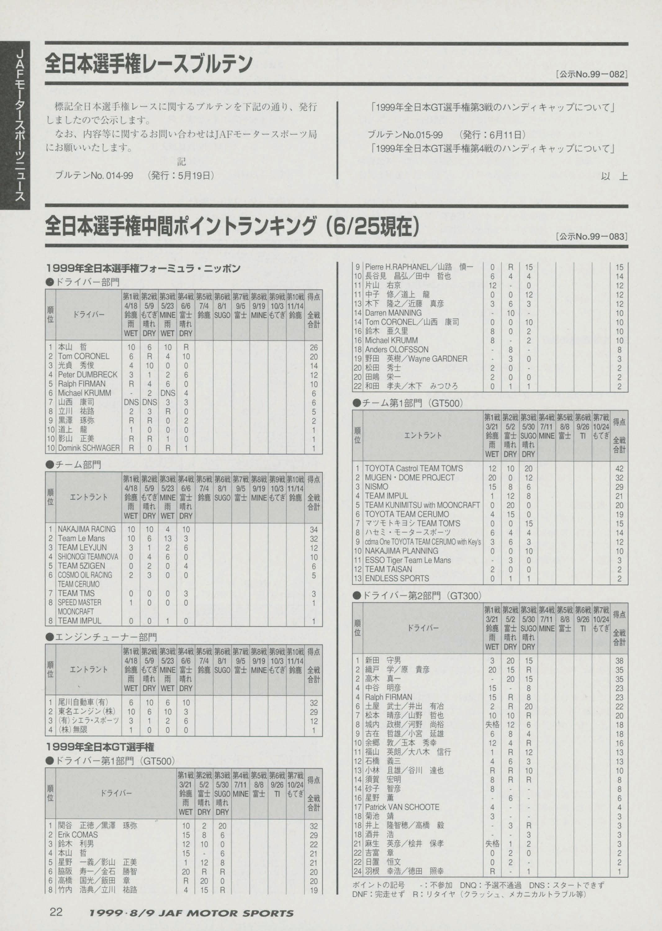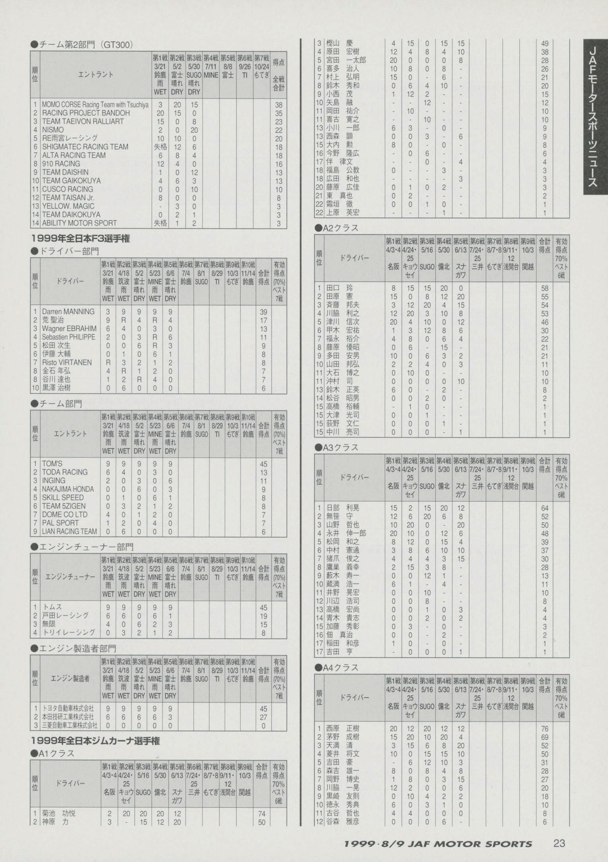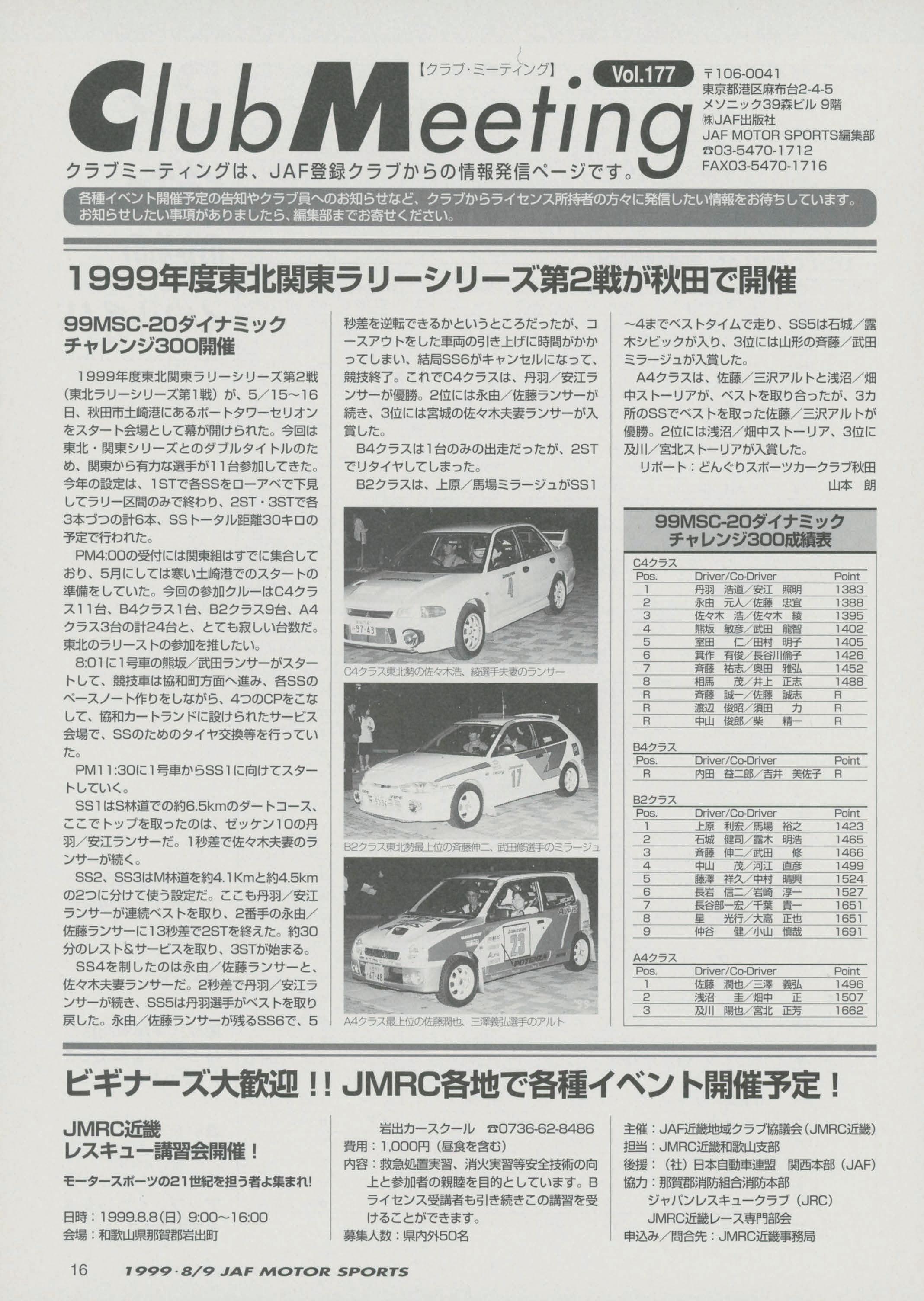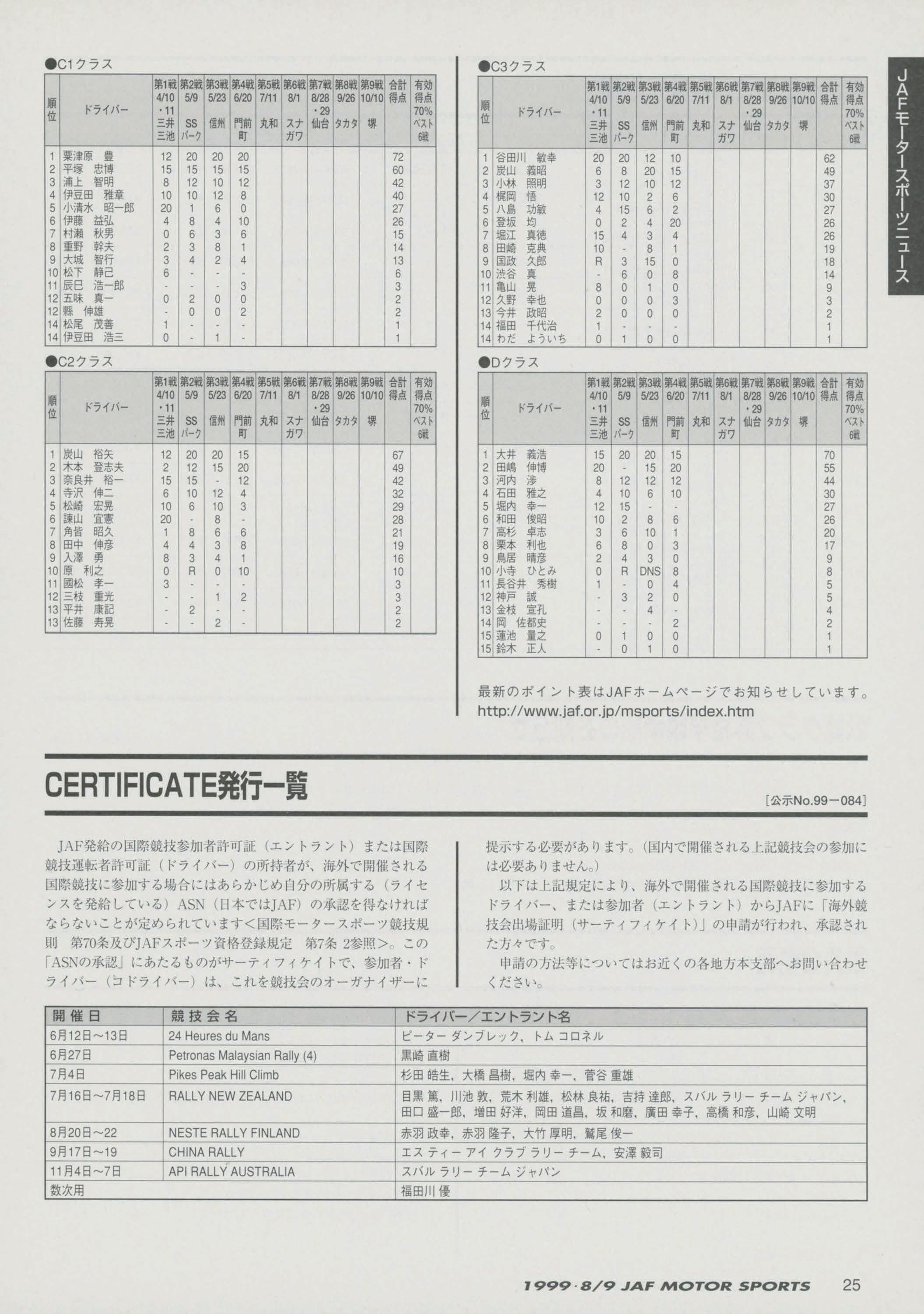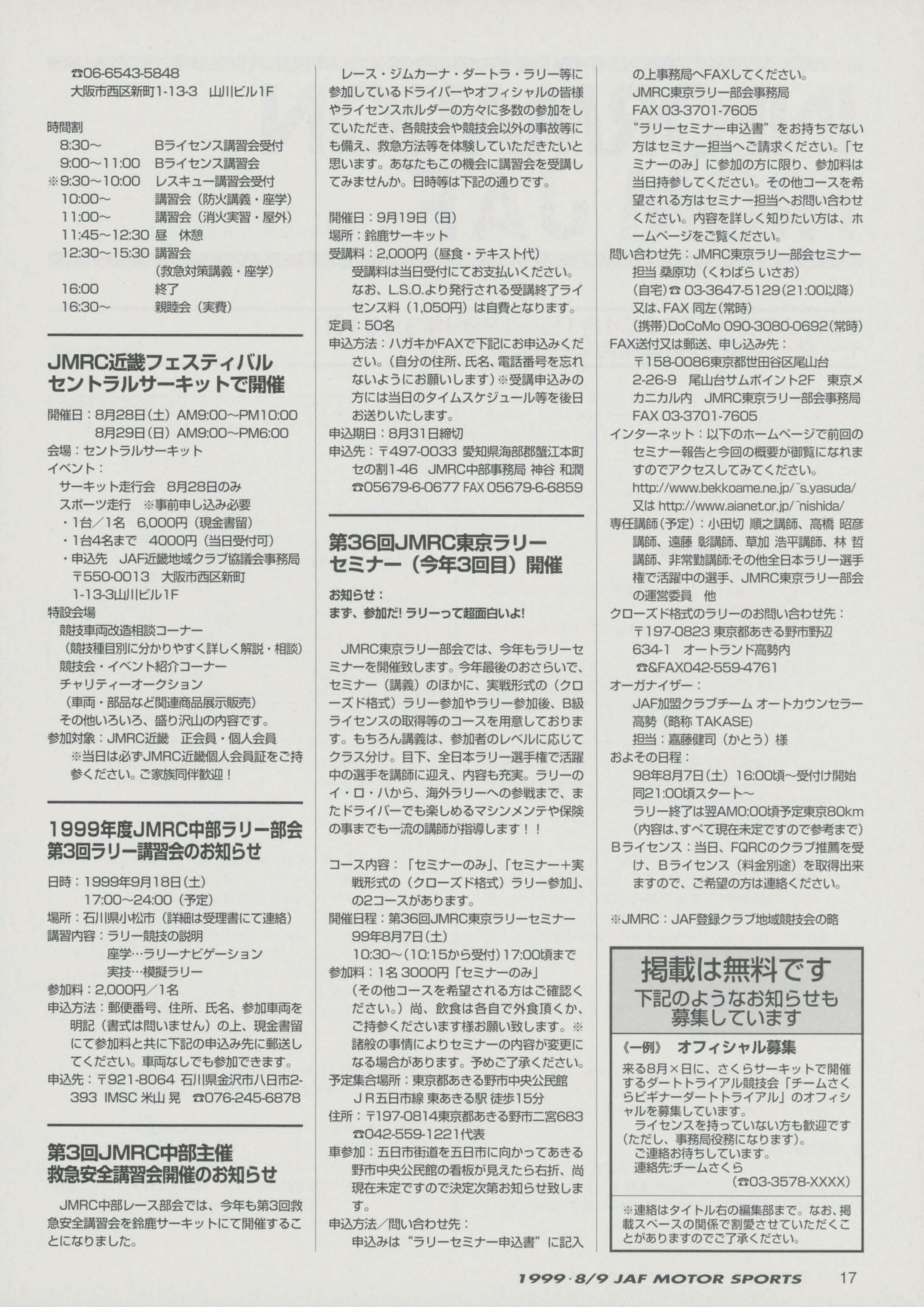 JAFスポーツ 1999年 8/9月号(第33巻 第7号 1999年8月1日発行)