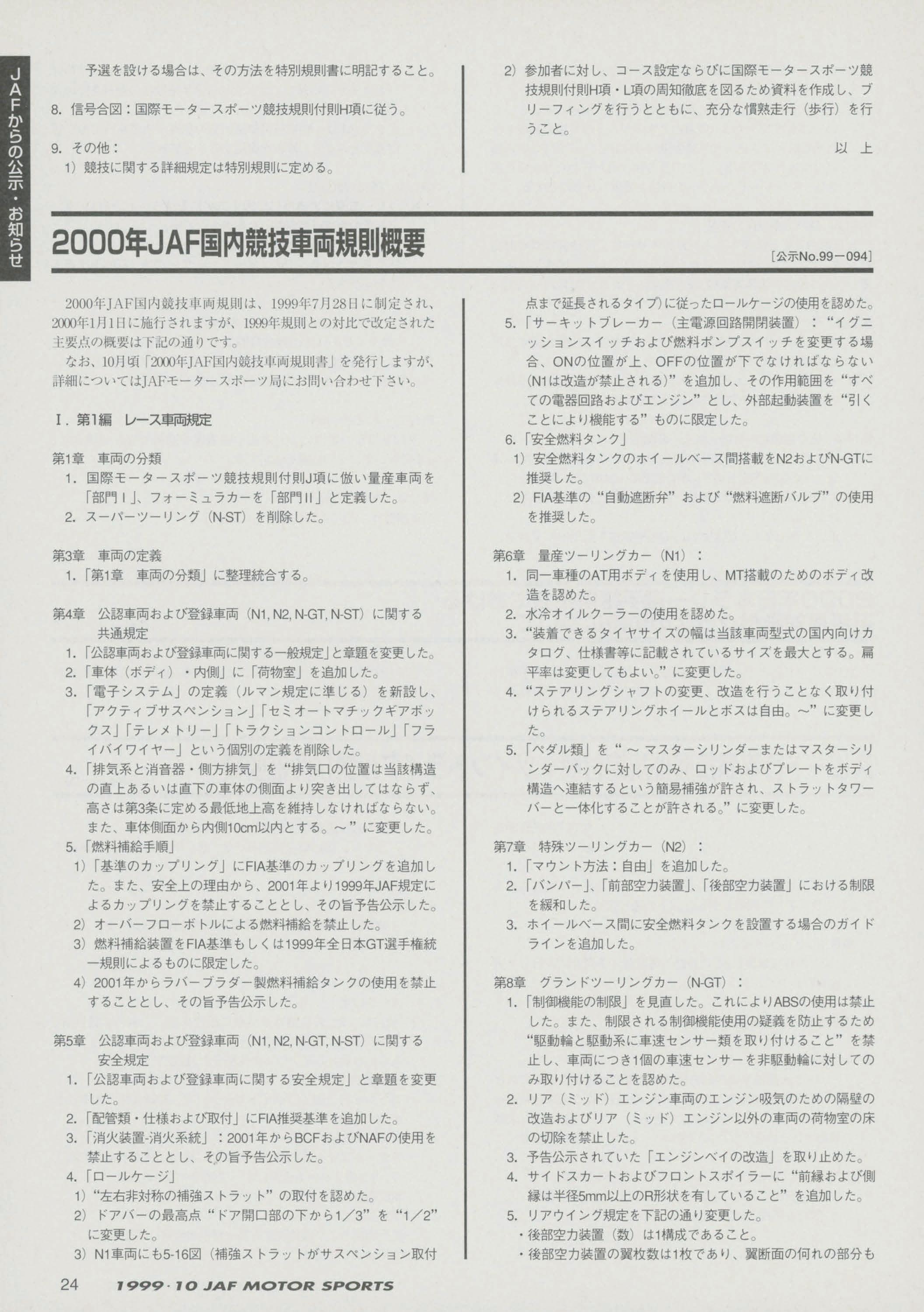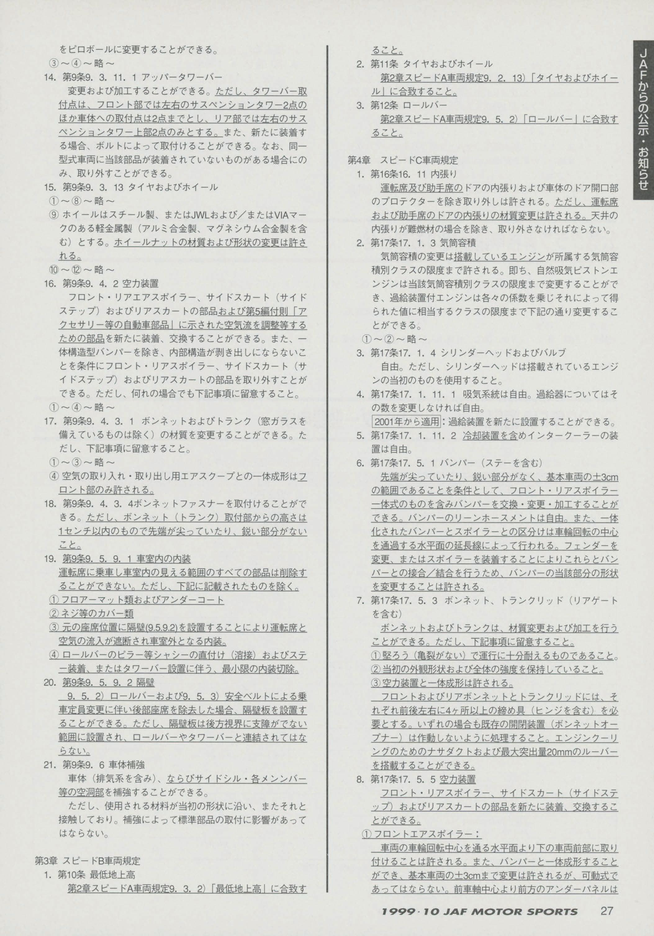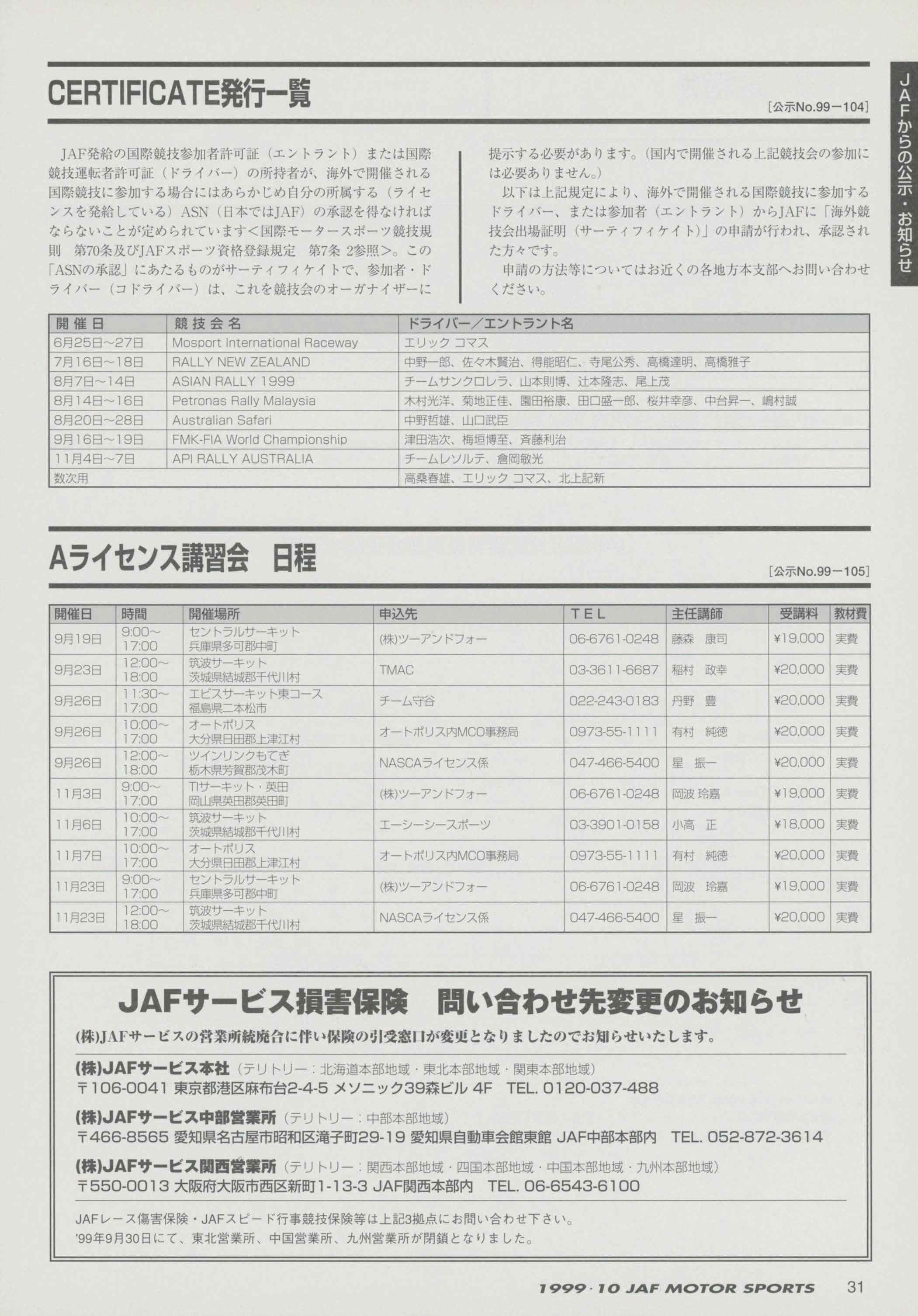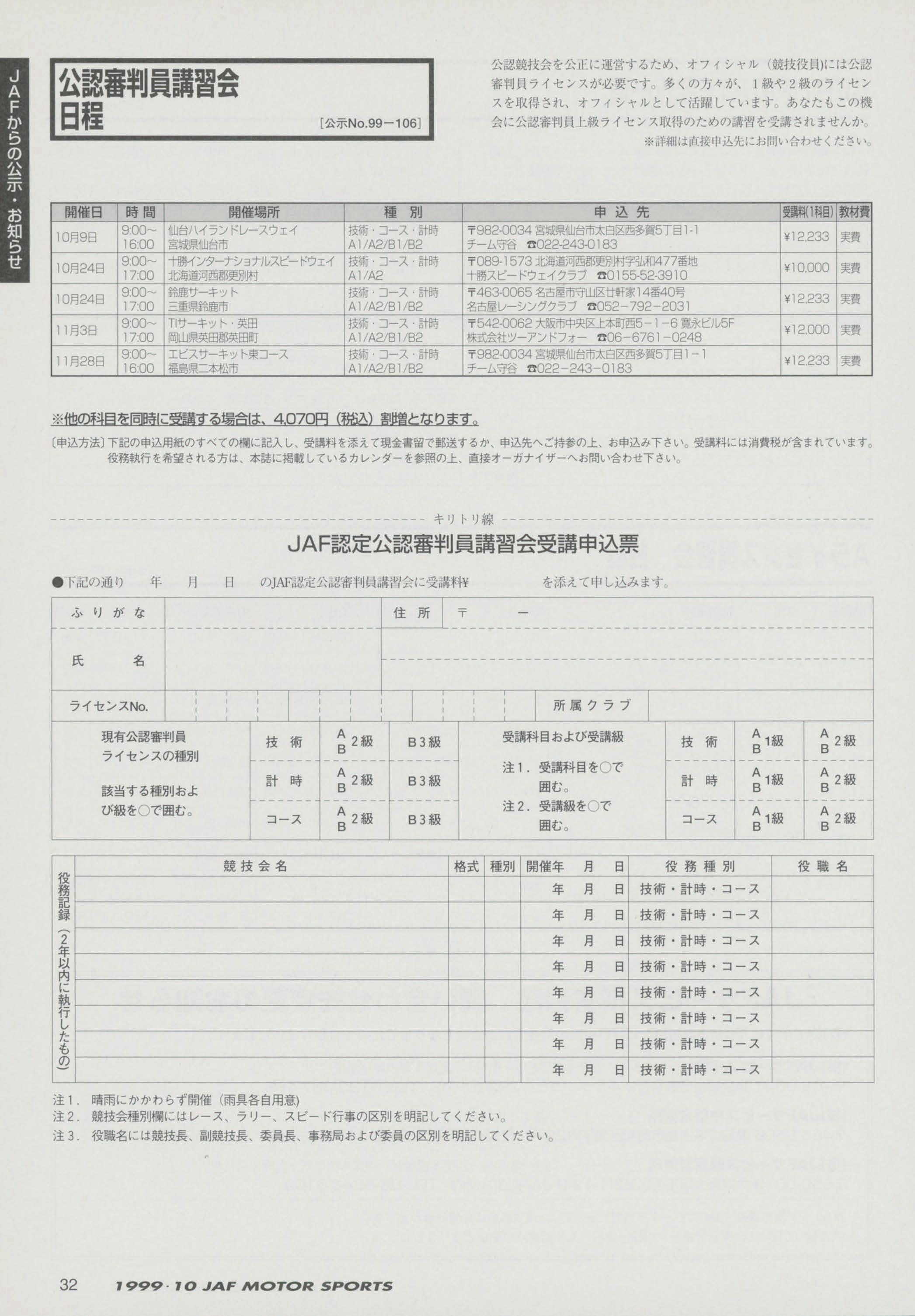 JAFスポーツ 1999年 10月号(第33巻 第8号 1999年10月1日発行)