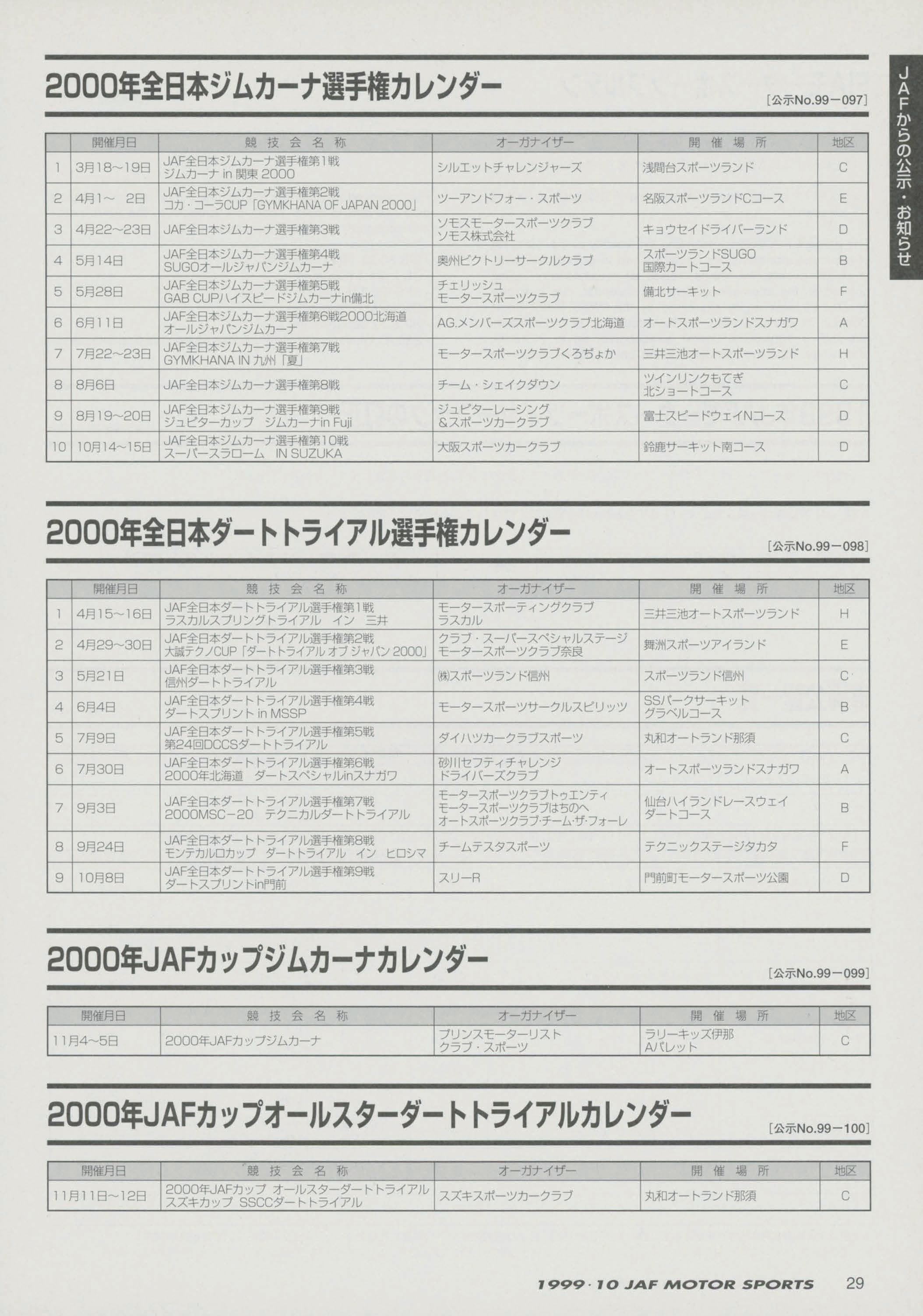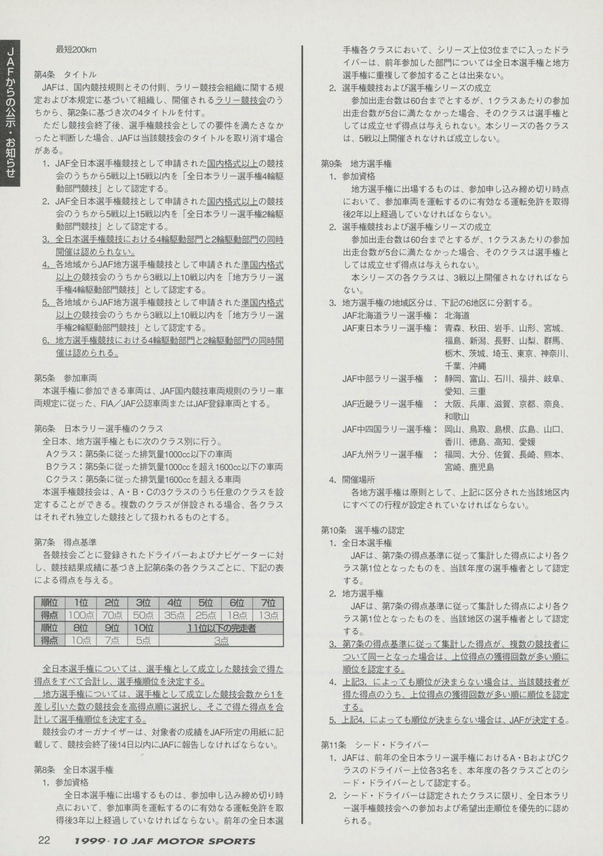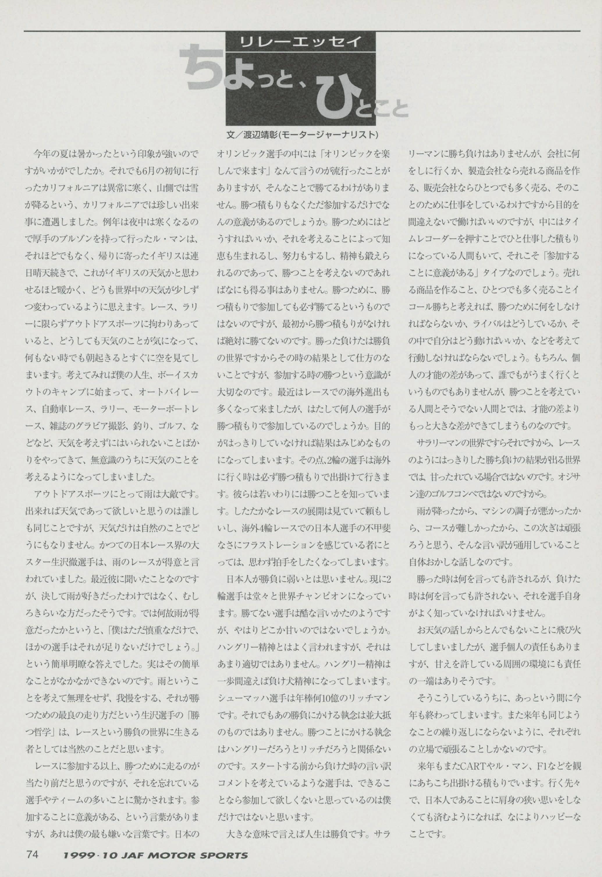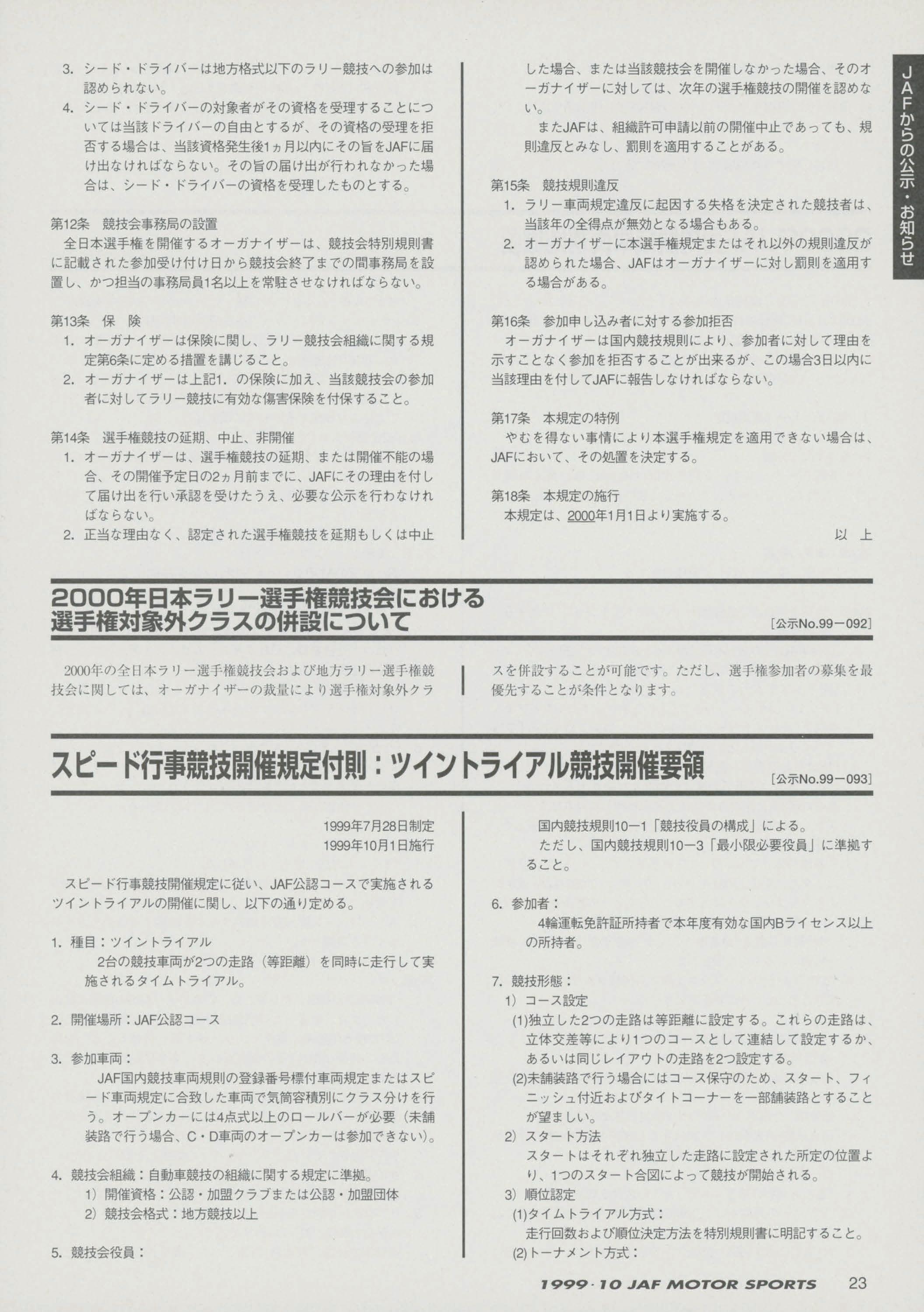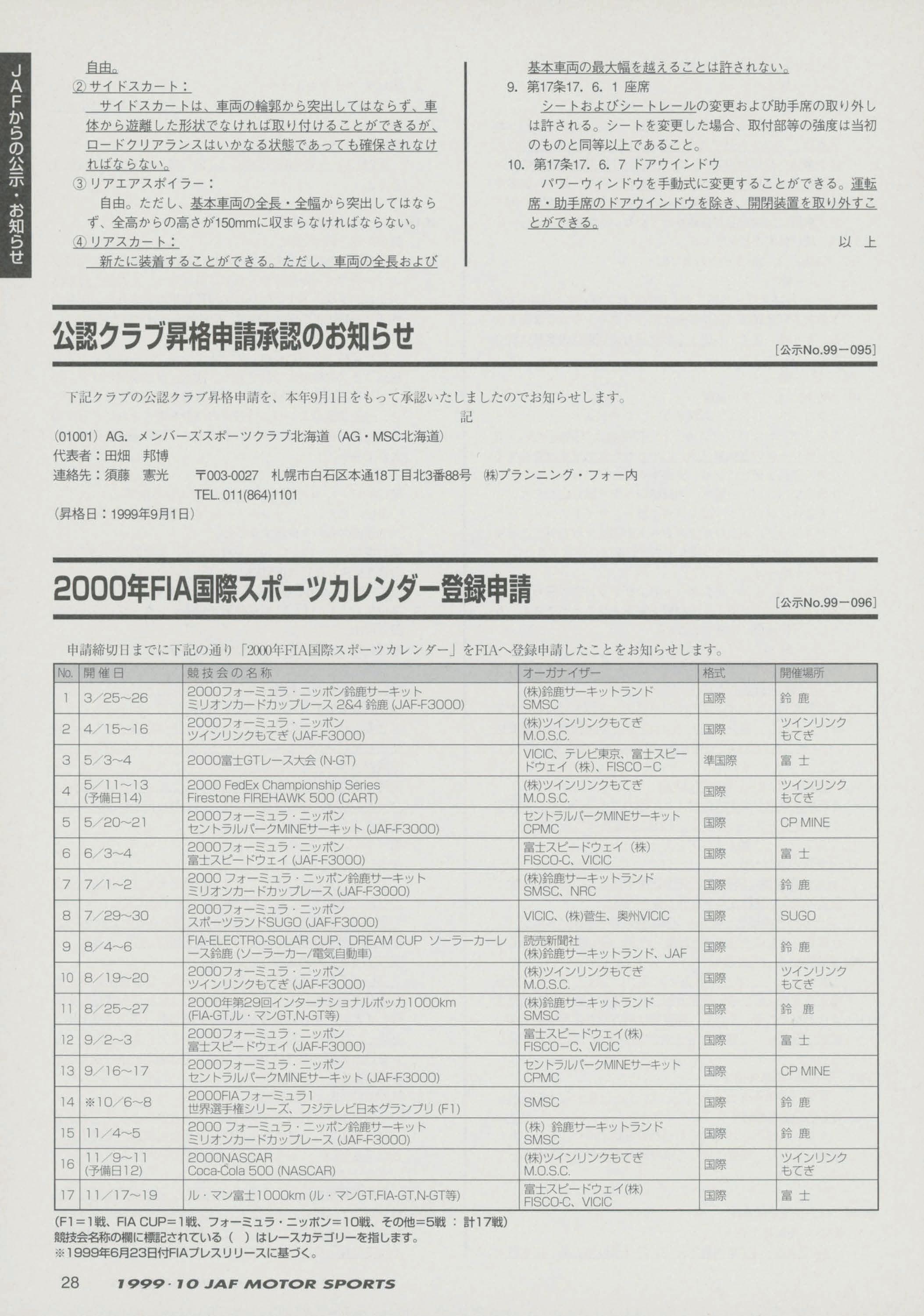 JAFスポーツ 1999年 10月号(第33巻 第8号 1999年10月1日発行)