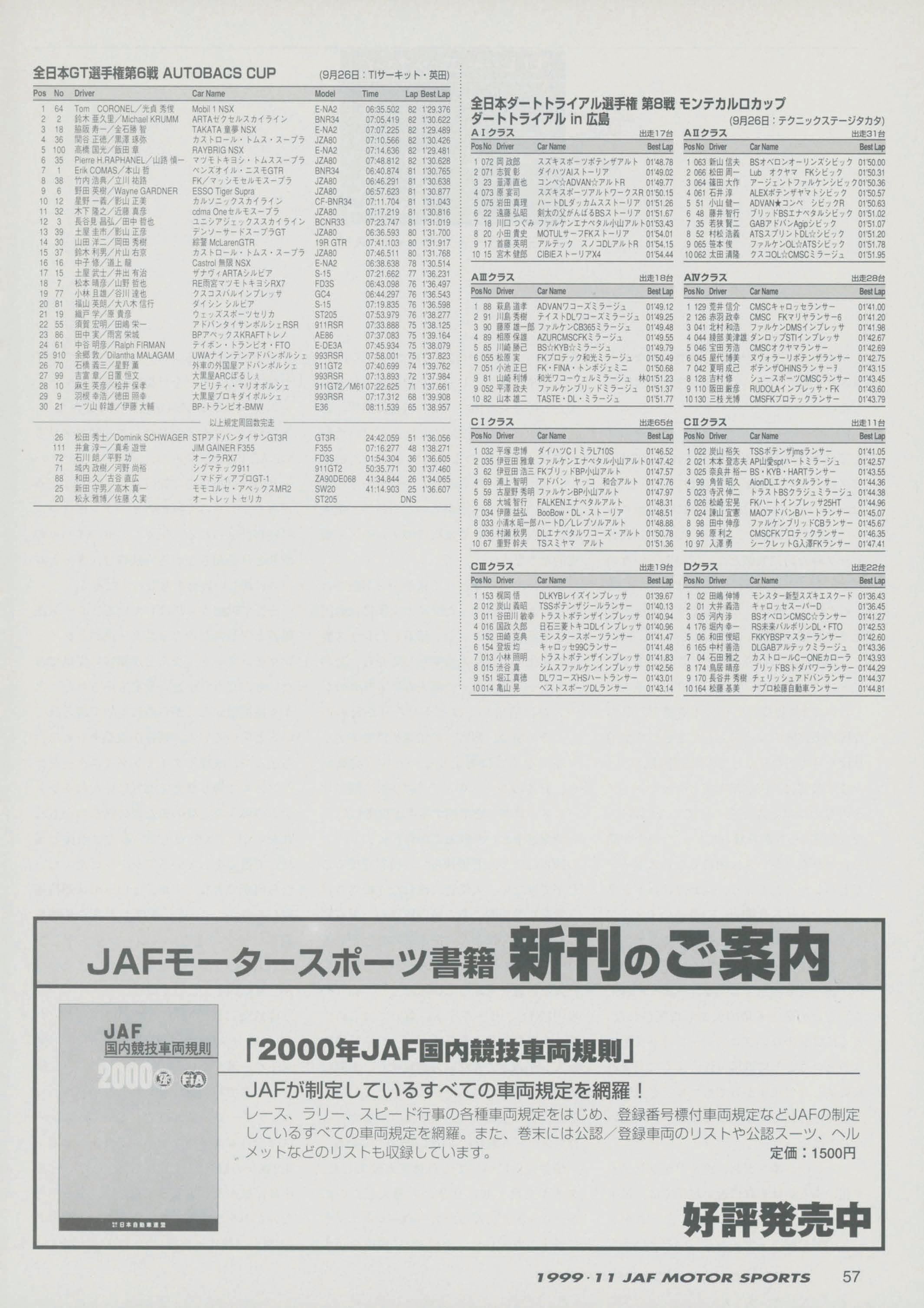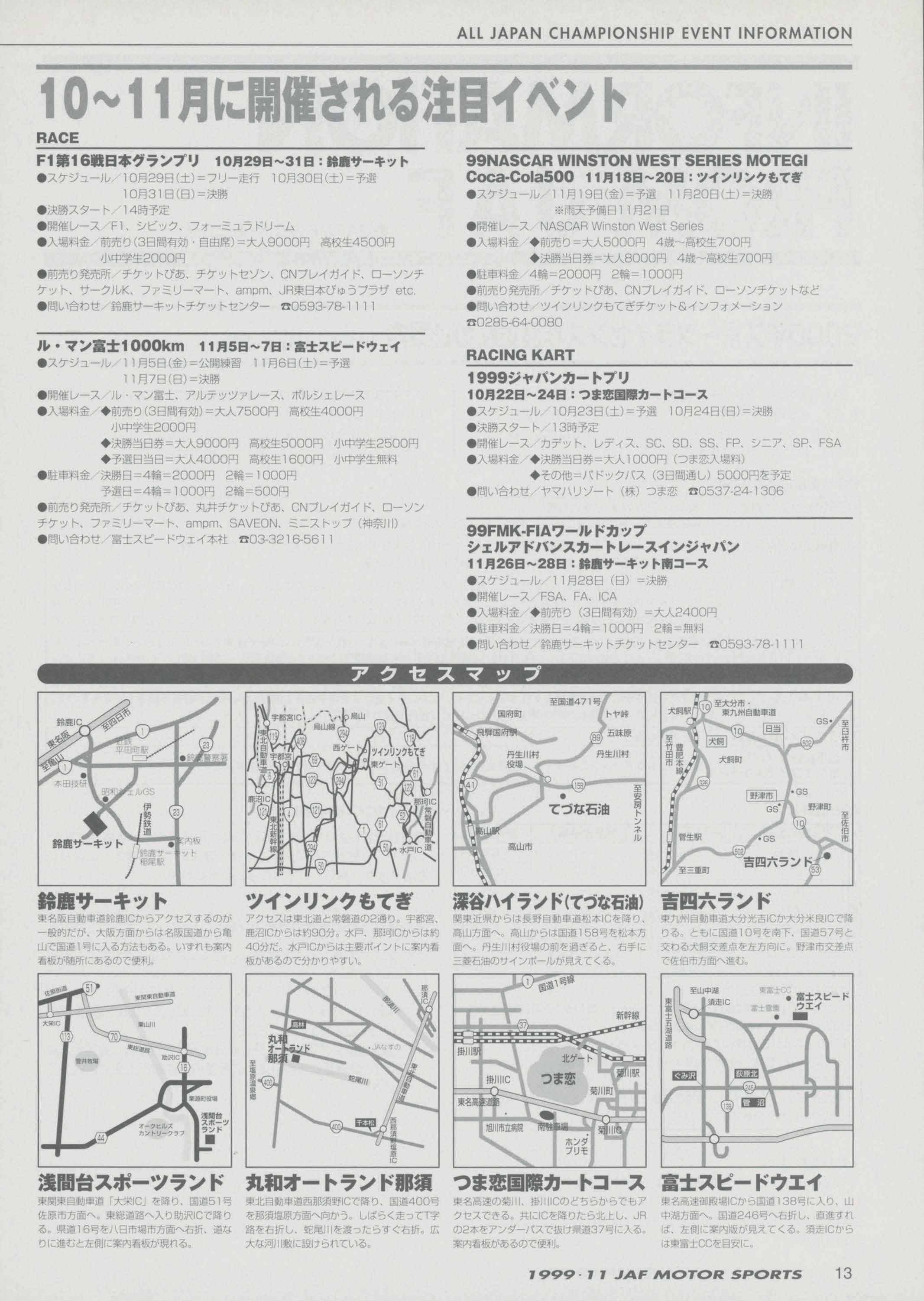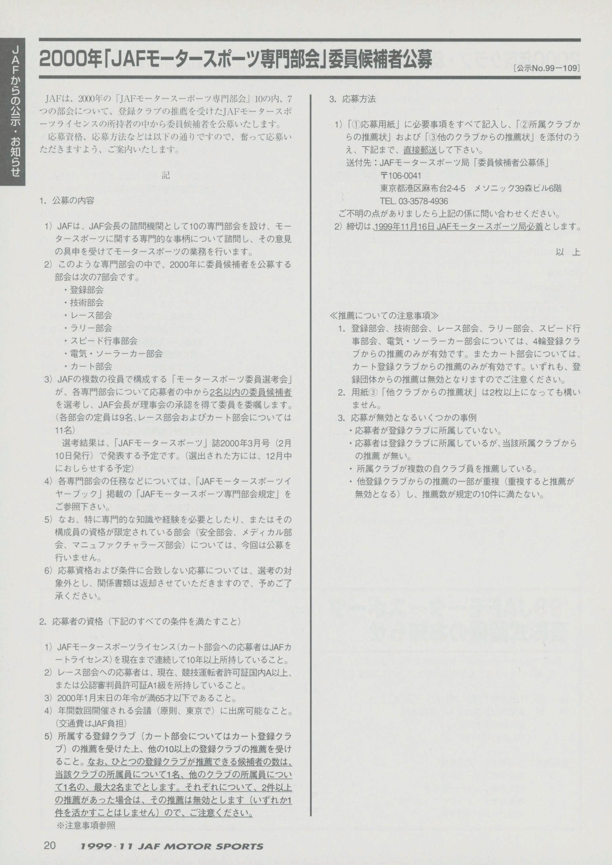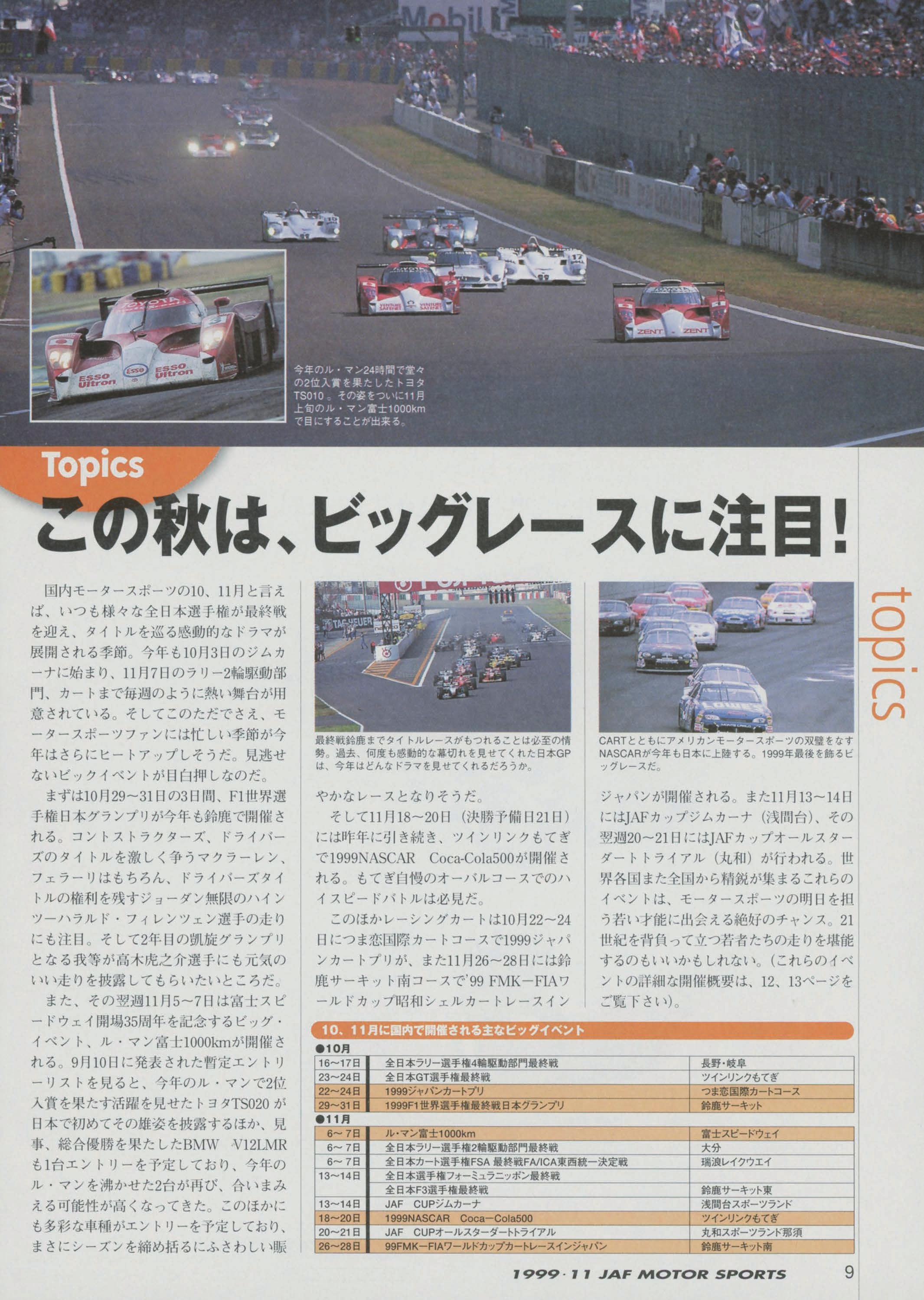 JAFスポーツ 1999年 11月号(第33巻 第9号 1999年11月1日発行)