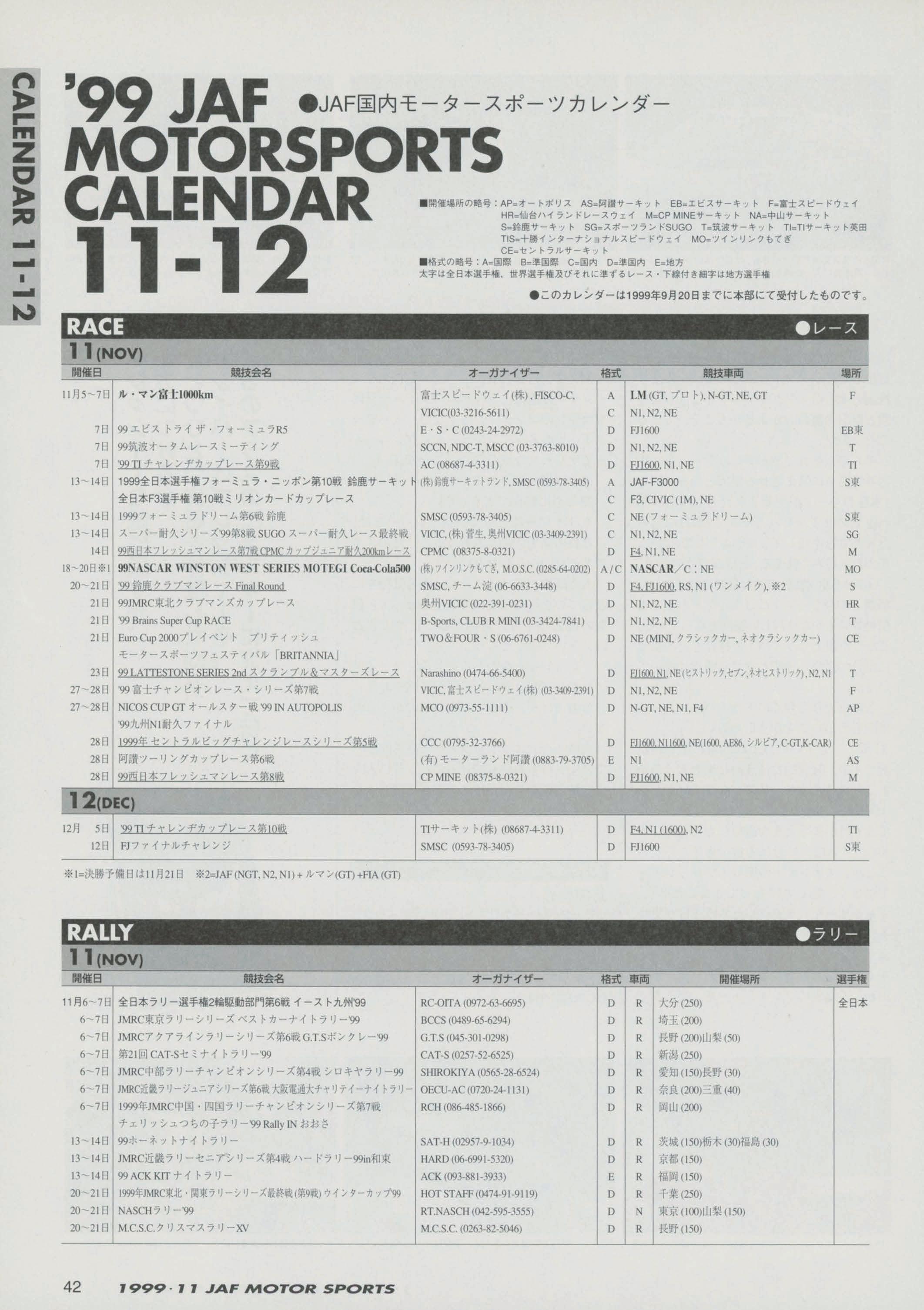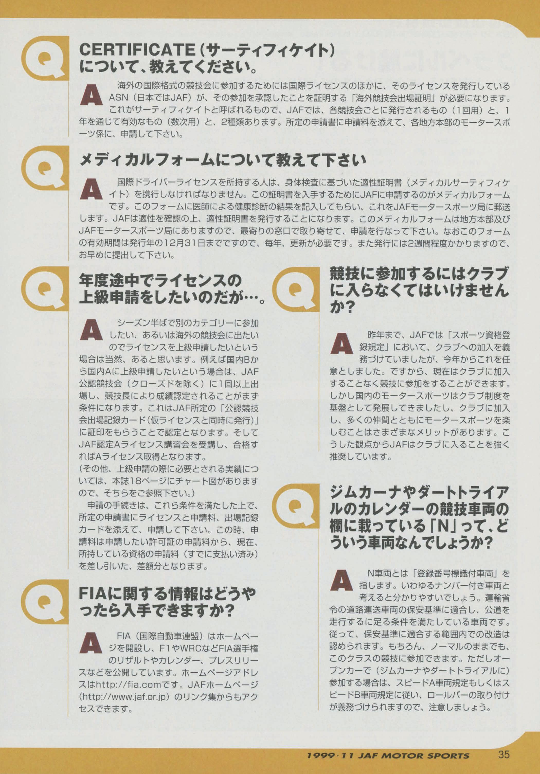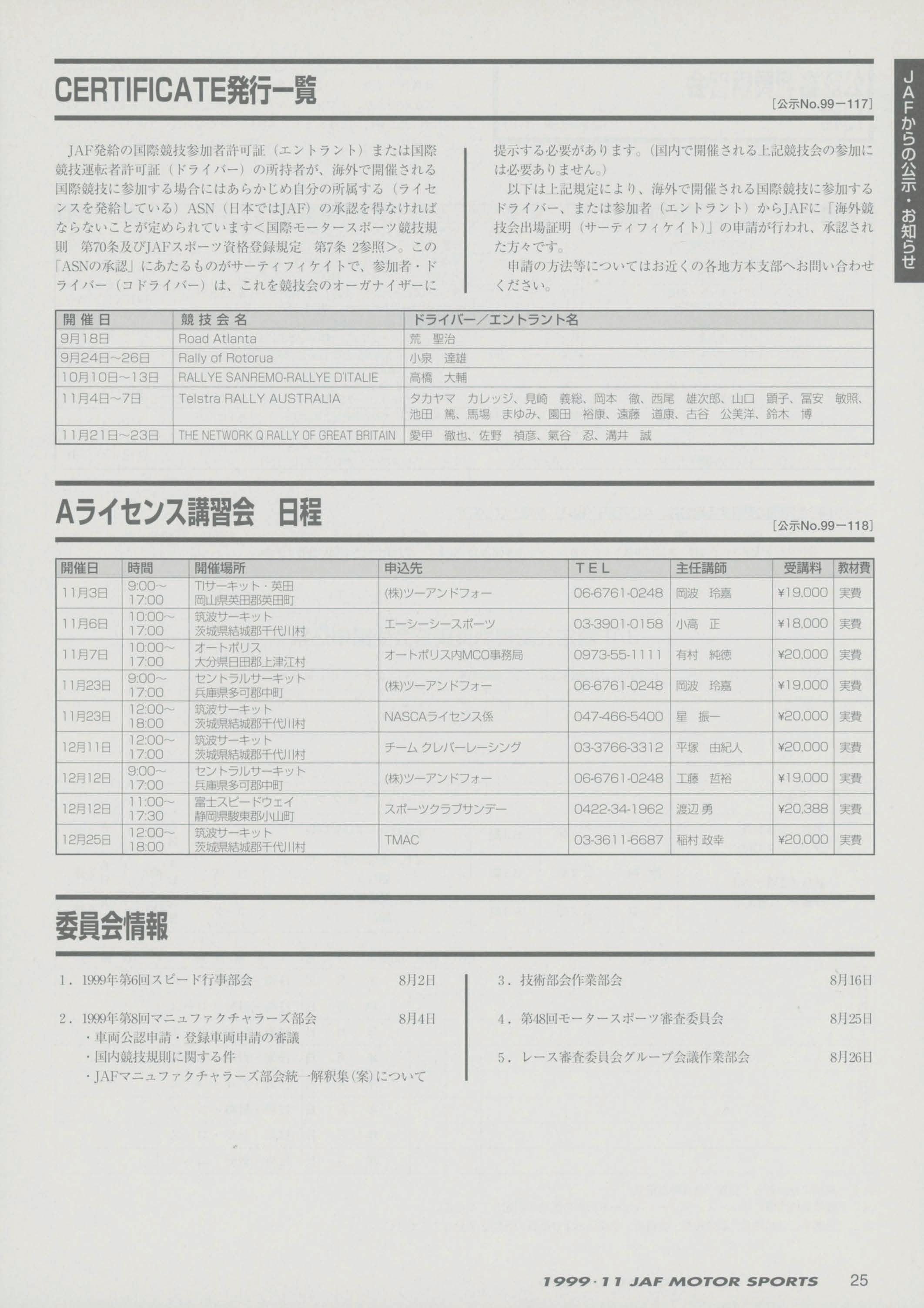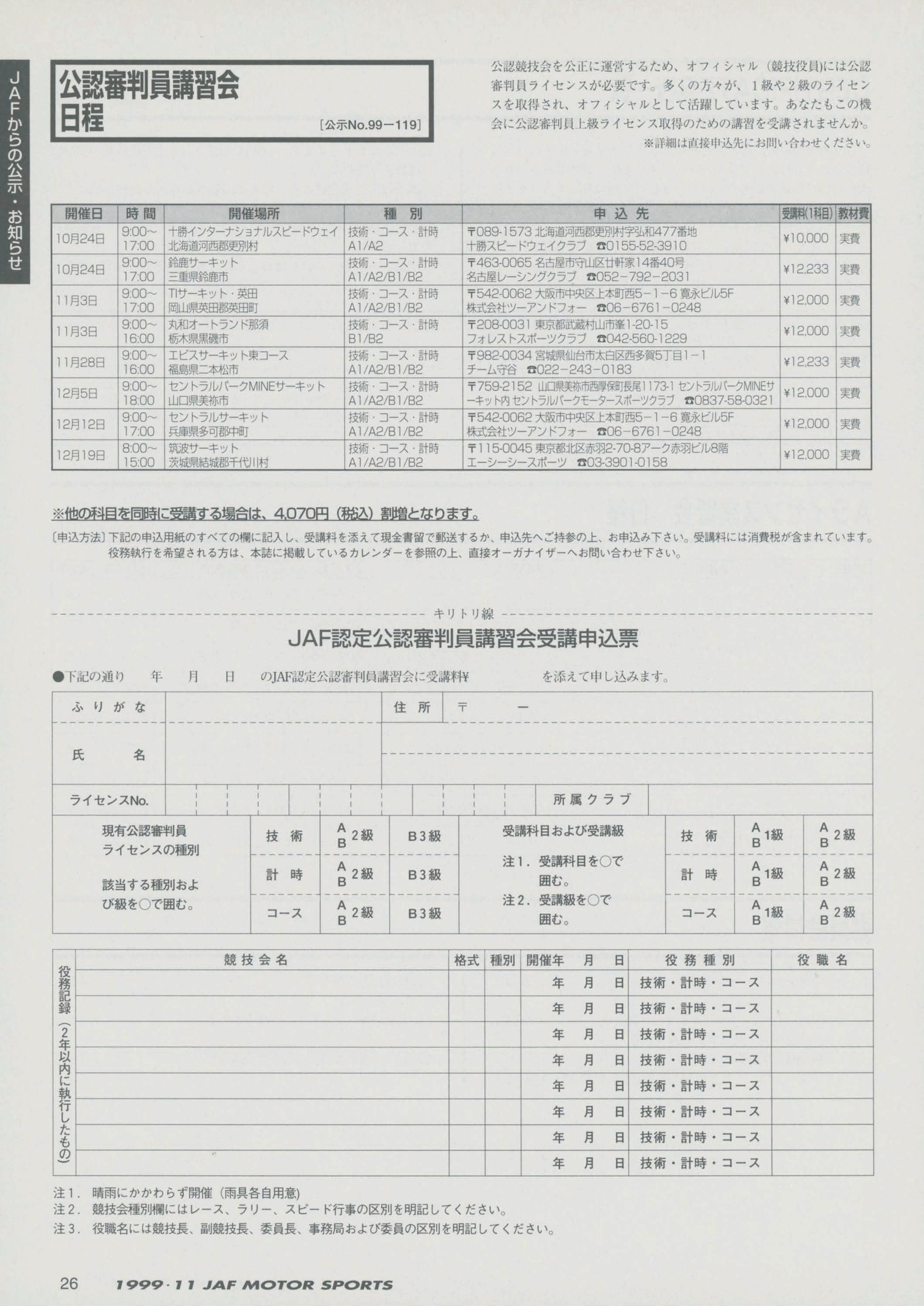 JAFスポーツ 1999年 11月号(第33巻 第9号 1999年11月1日発行)