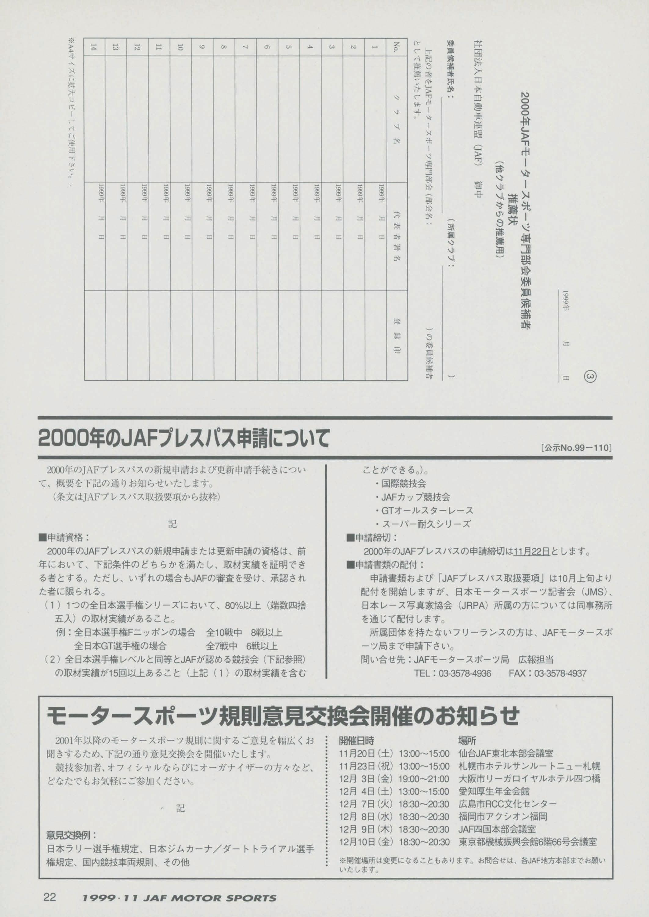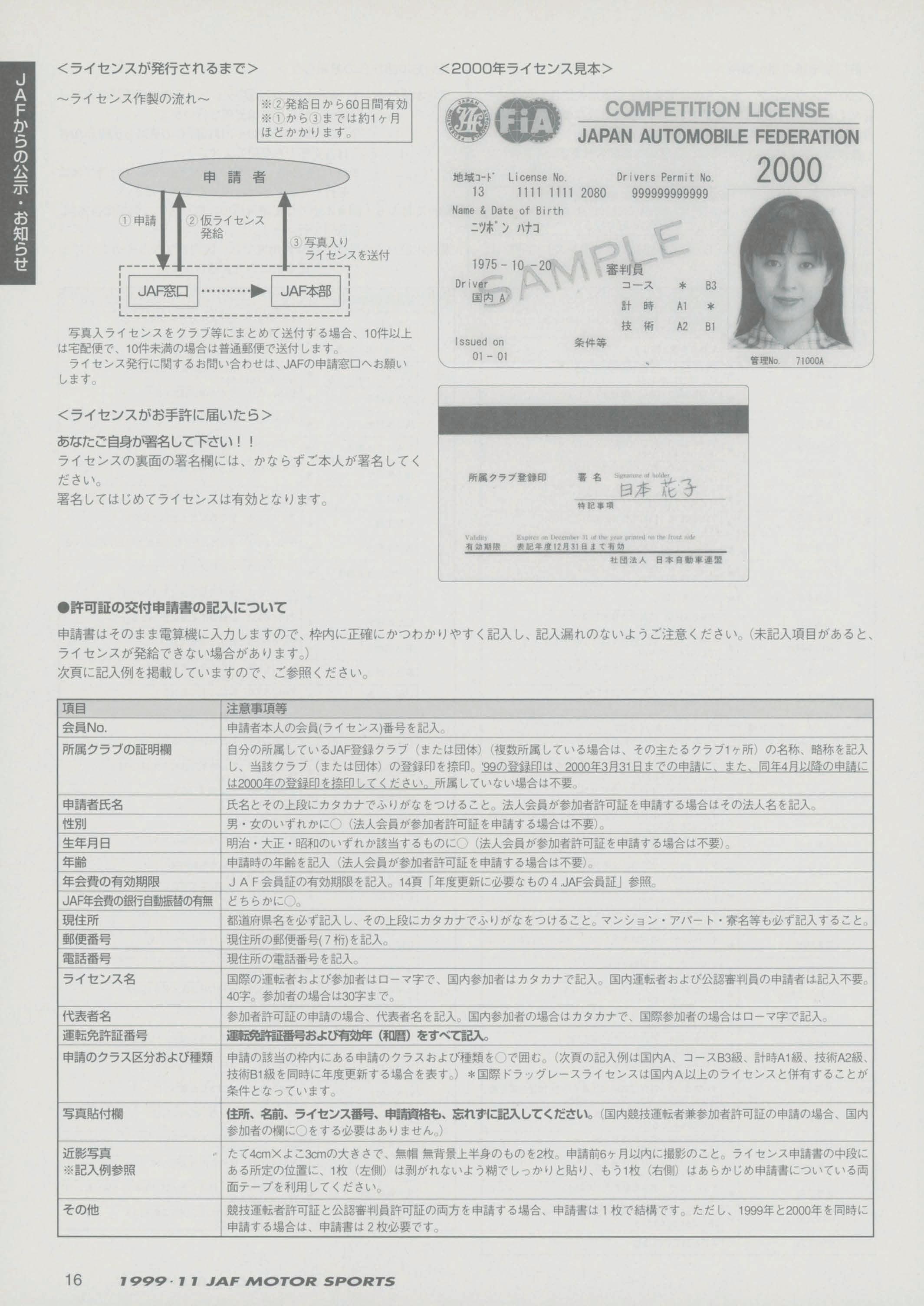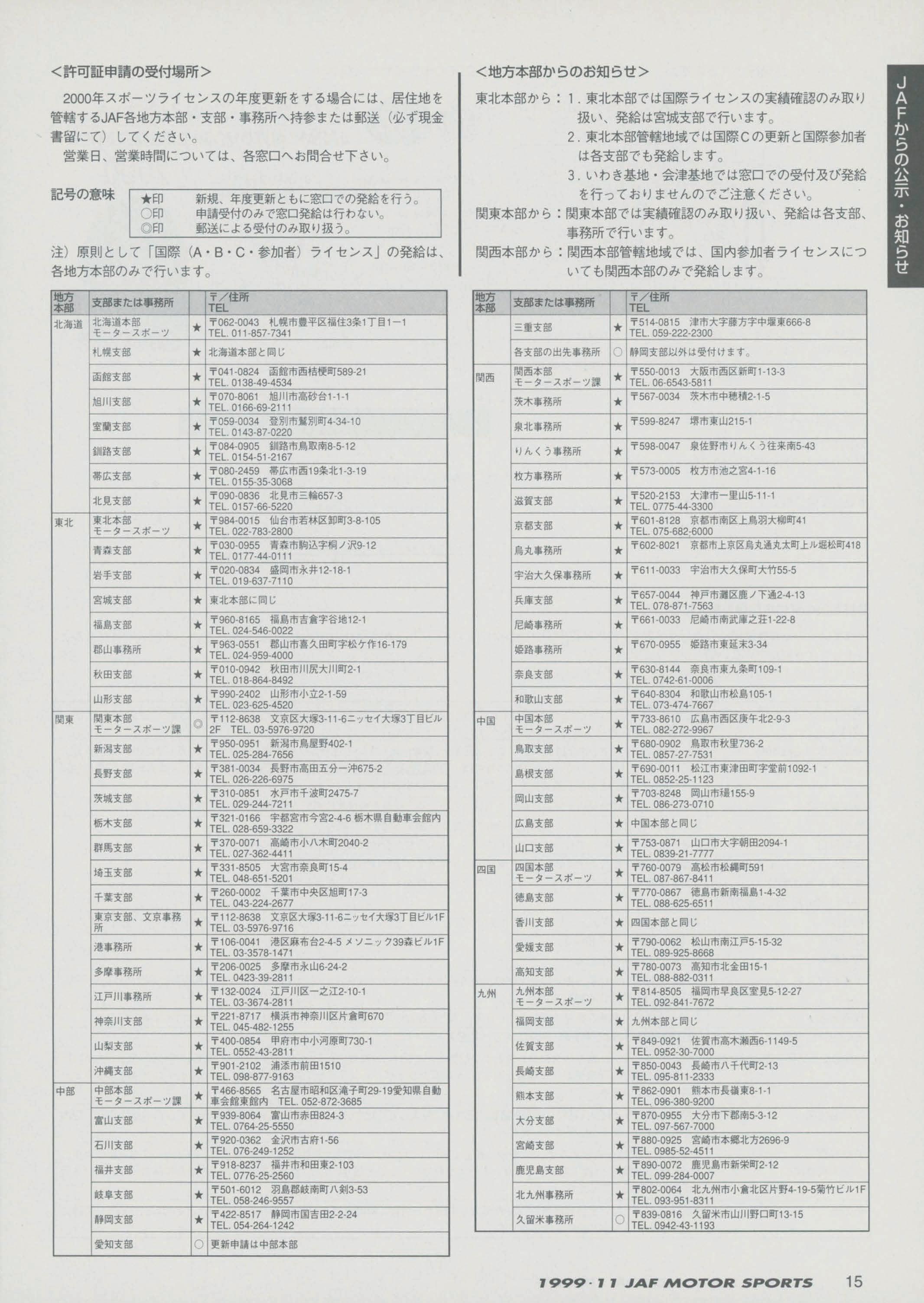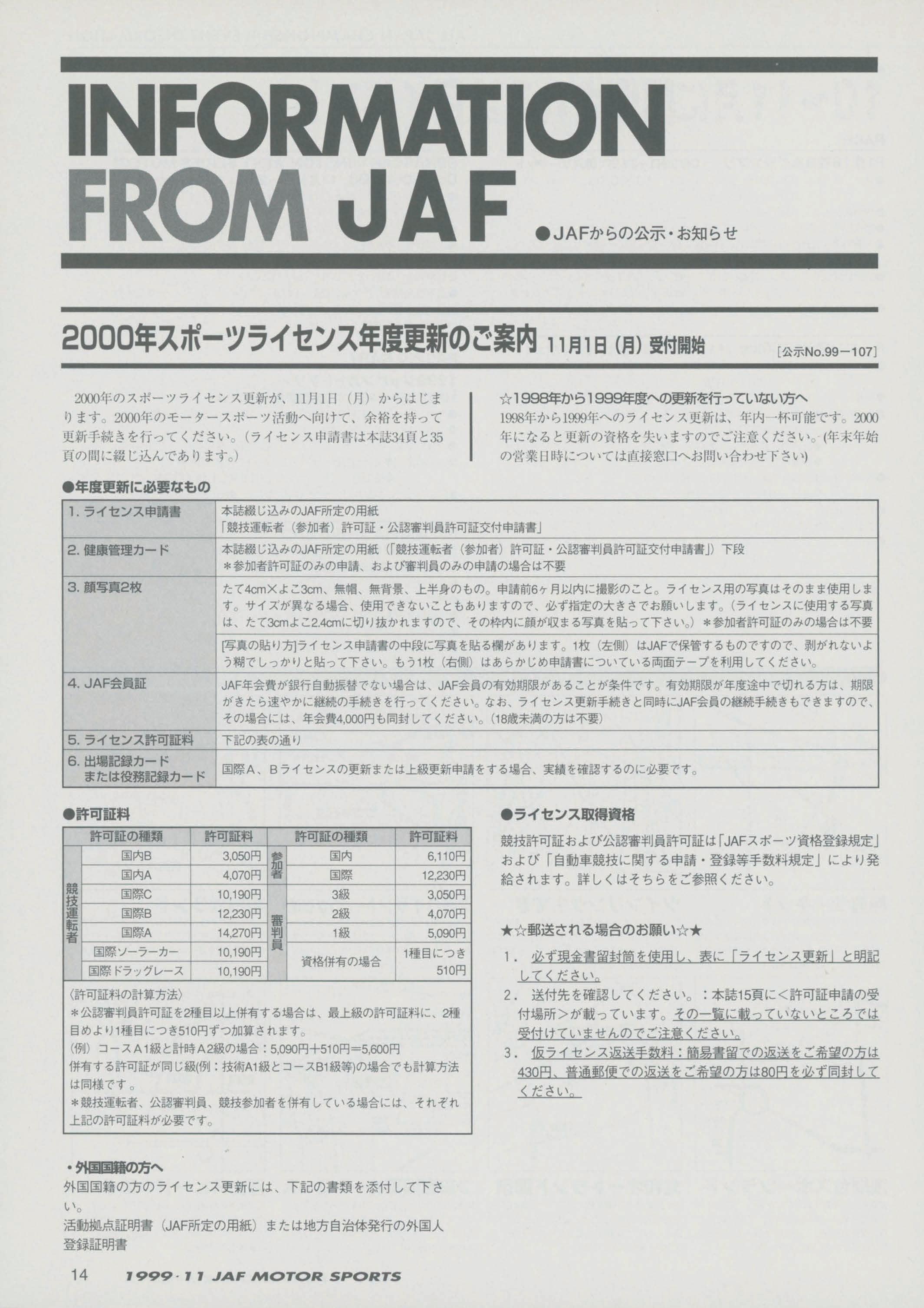JAFスポーツ 1999年 11月号(第33巻 第9号 1999年11月1日発行)