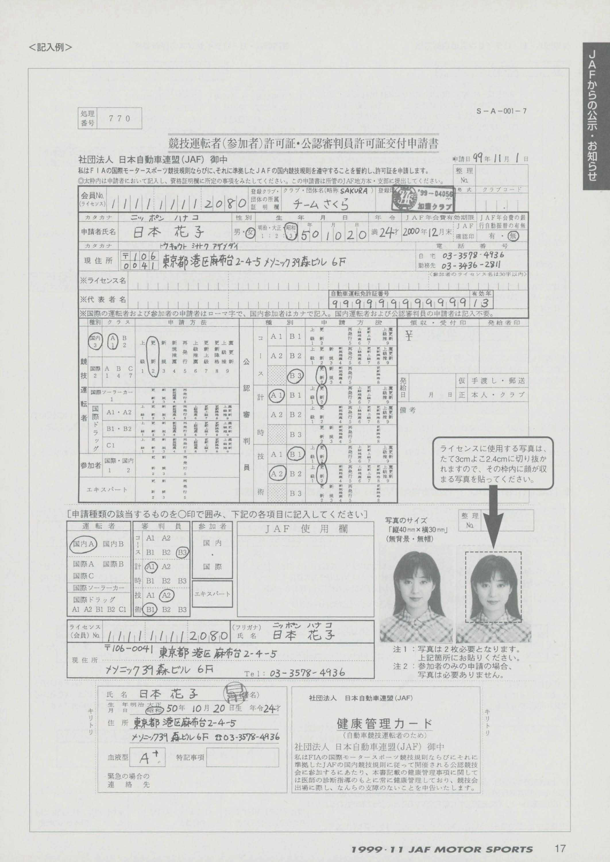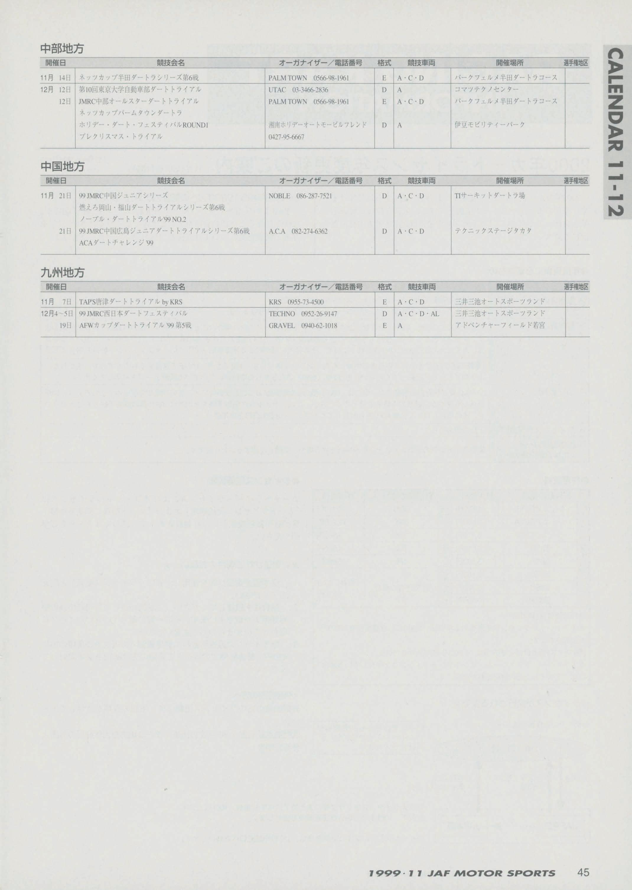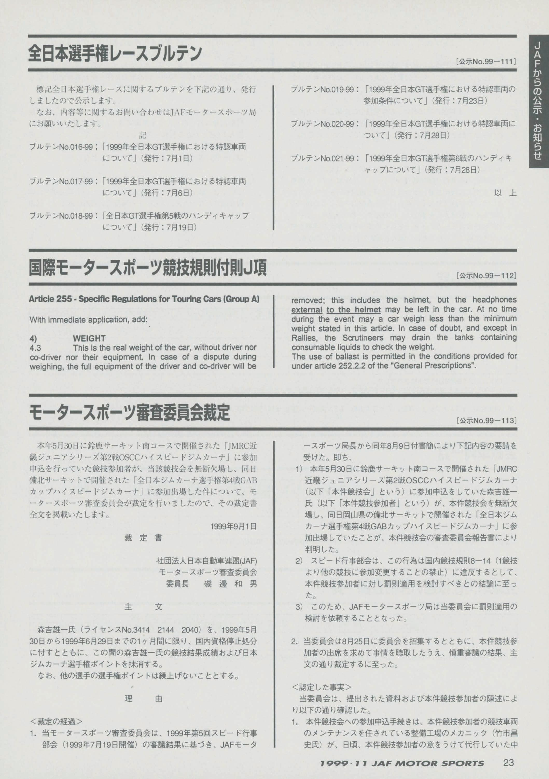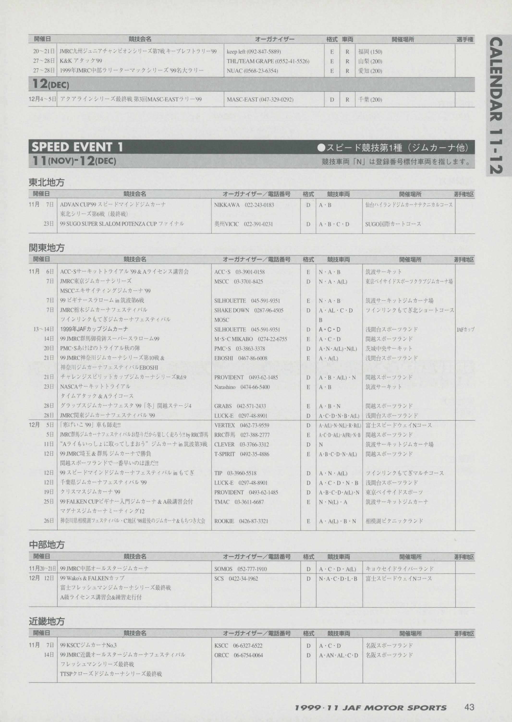 JAFスポーツ 1999年 11月号(第33巻 第9号 1999年11月1日発行)