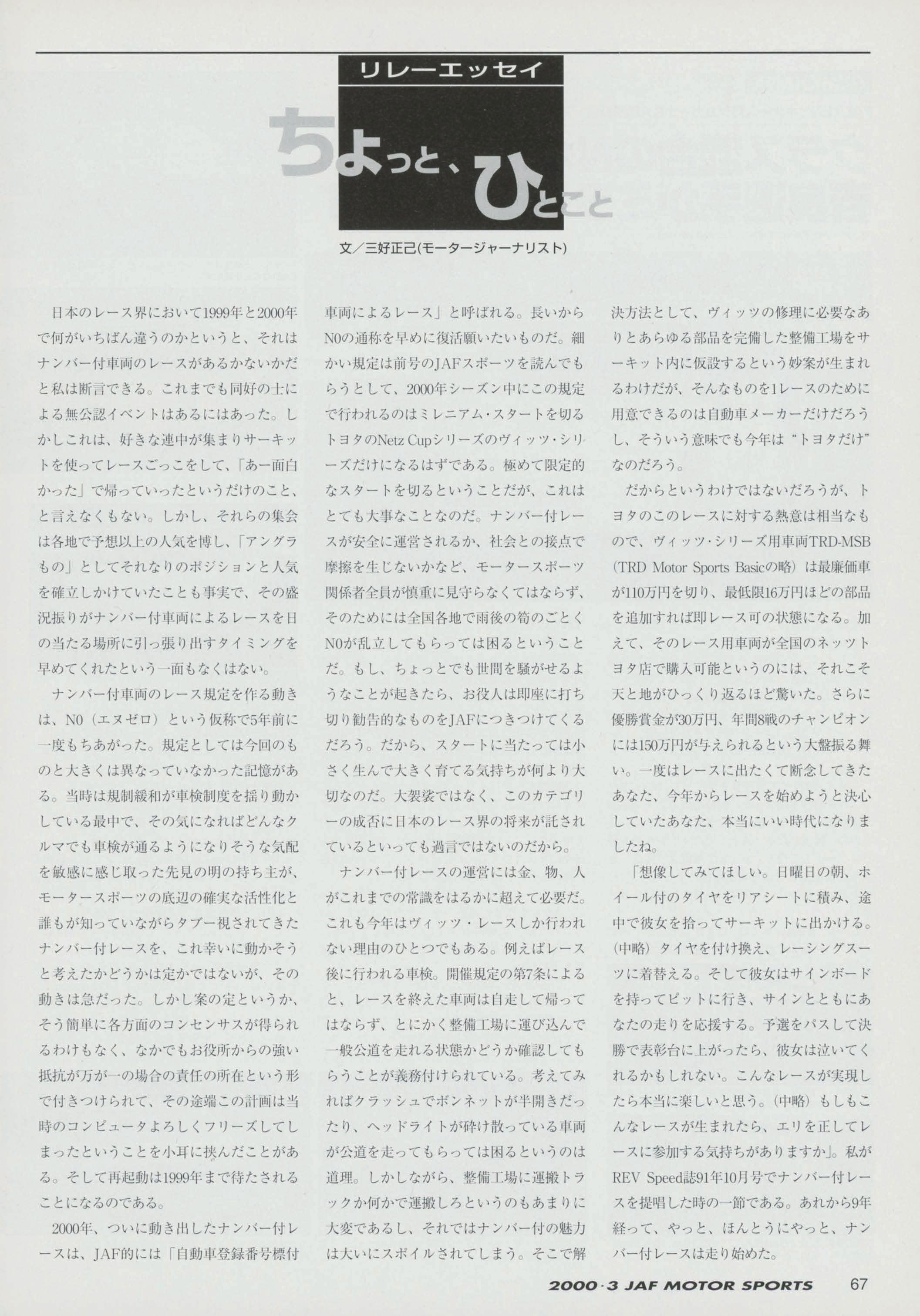 JAFスポーツ 2000年 3月号(第34巻 第2号 2000年3月1日発行)