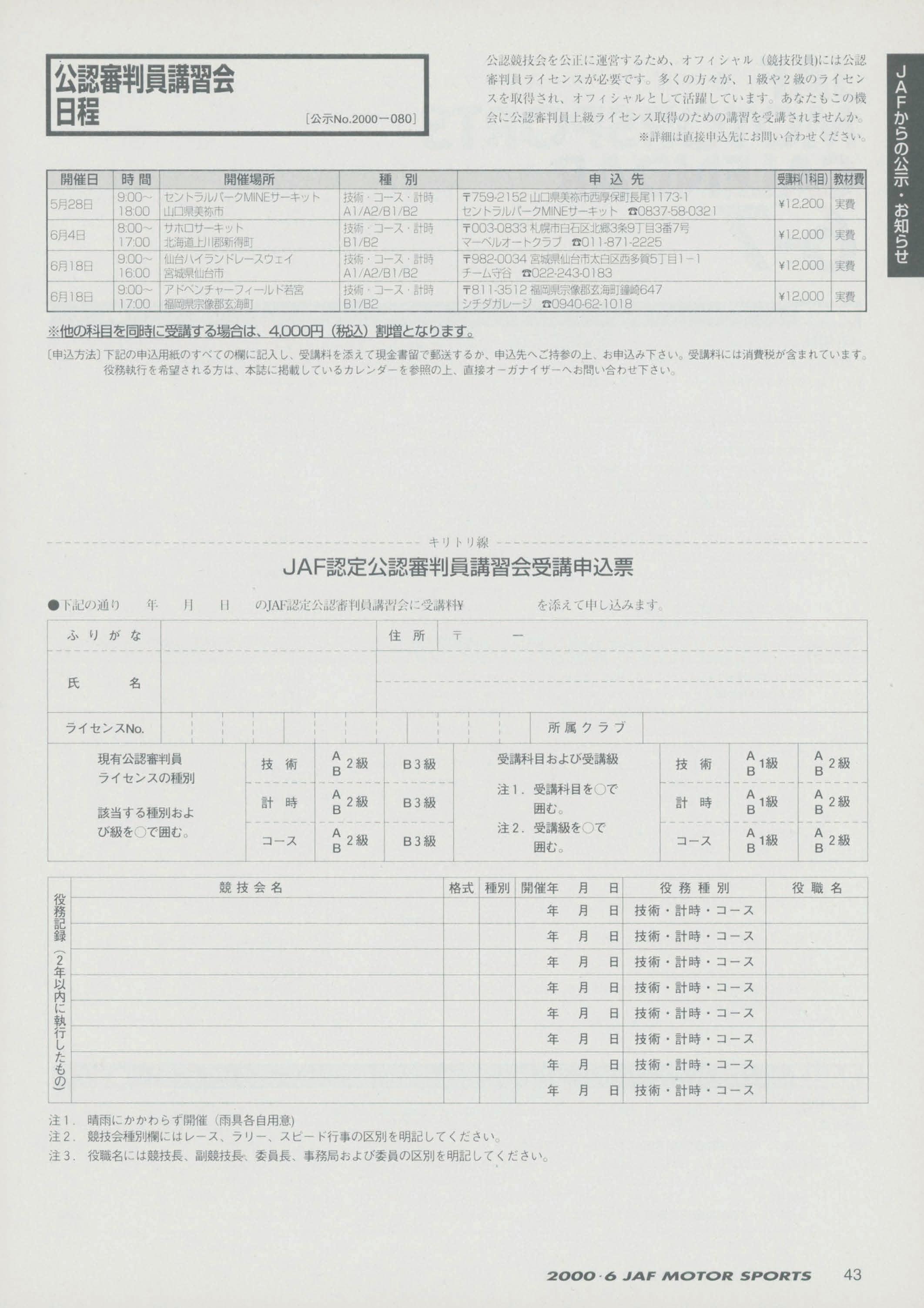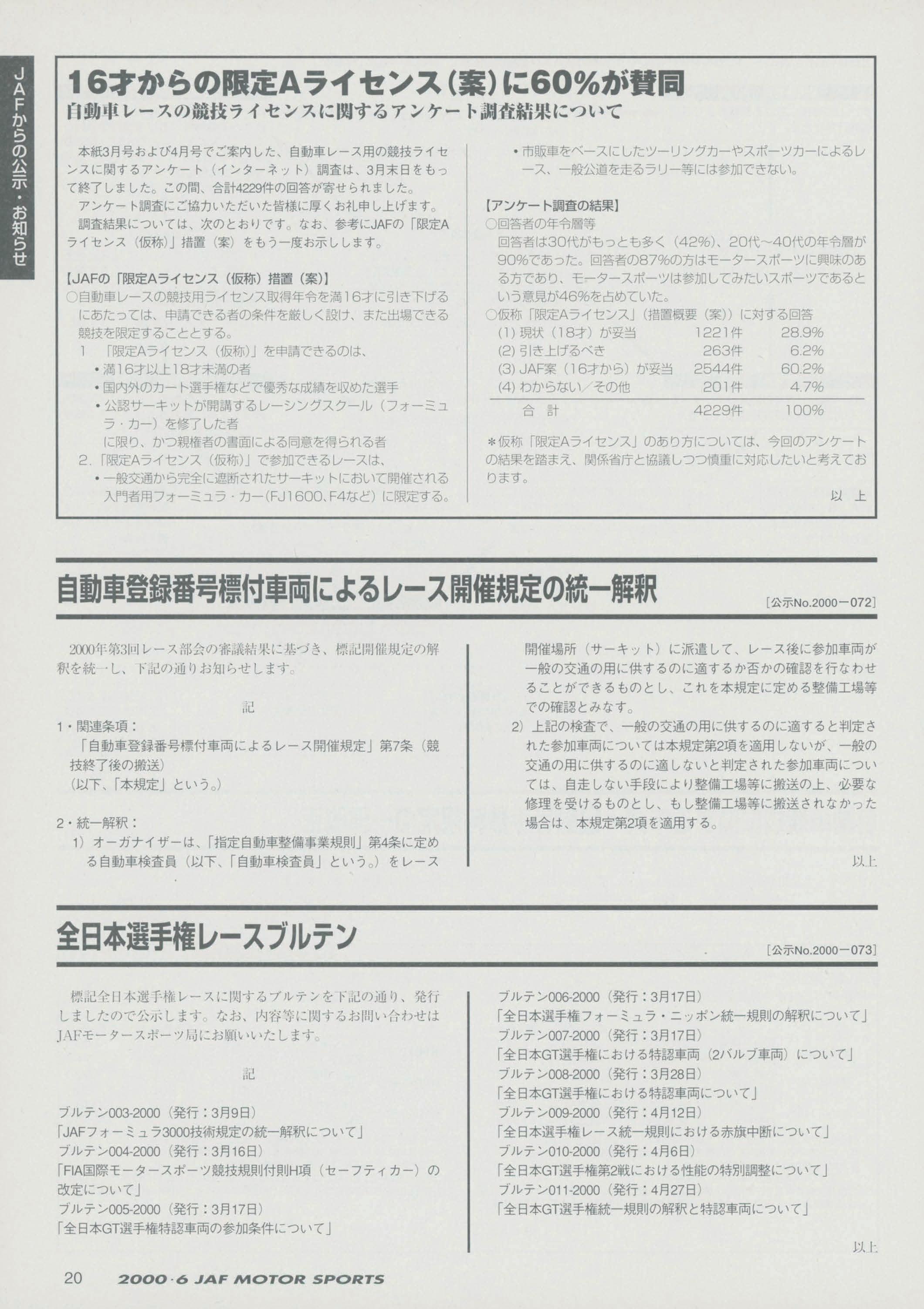 JAFスポーツ 2000年 6月号(第34巻 第5号 2000年6月1日発行)