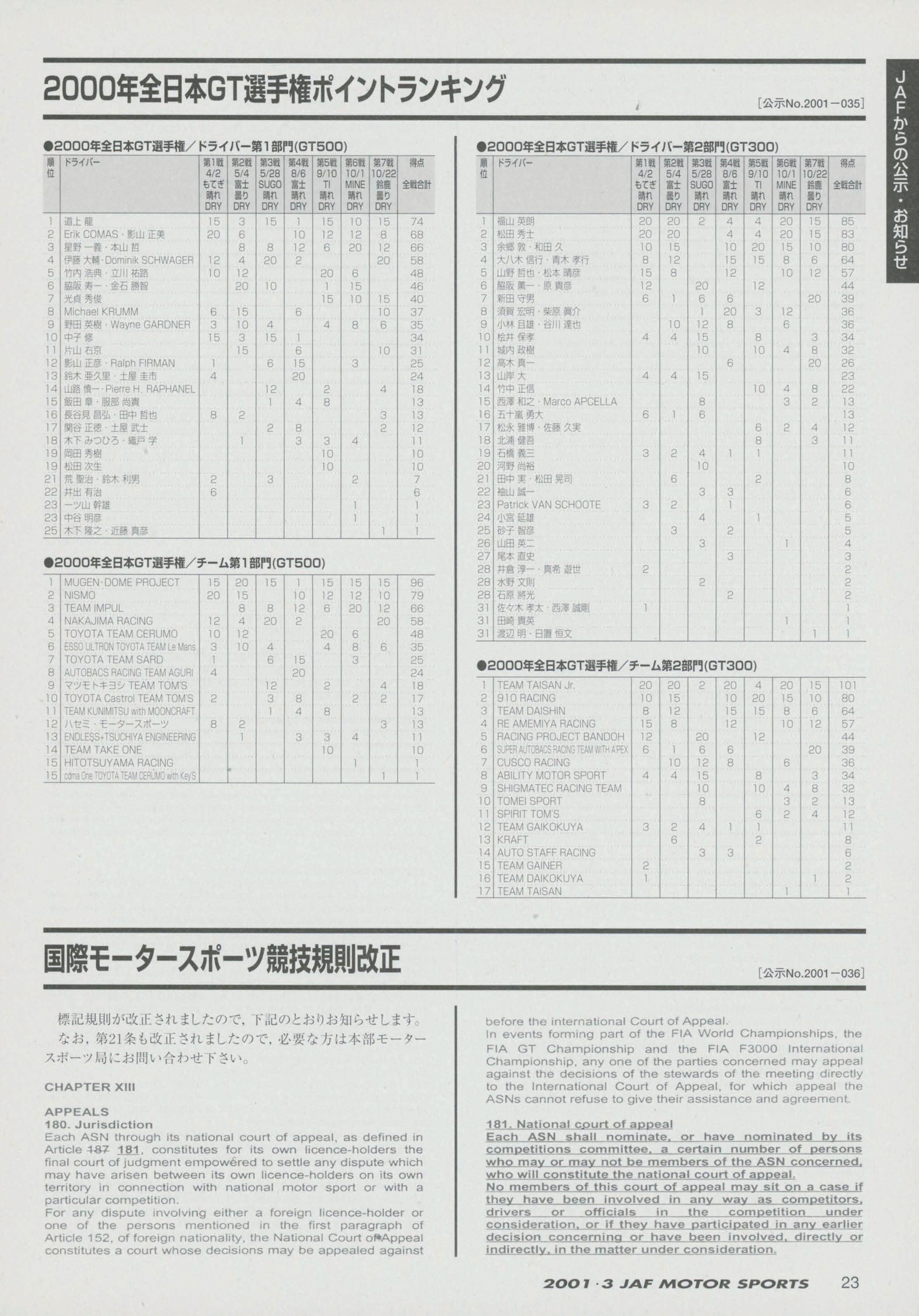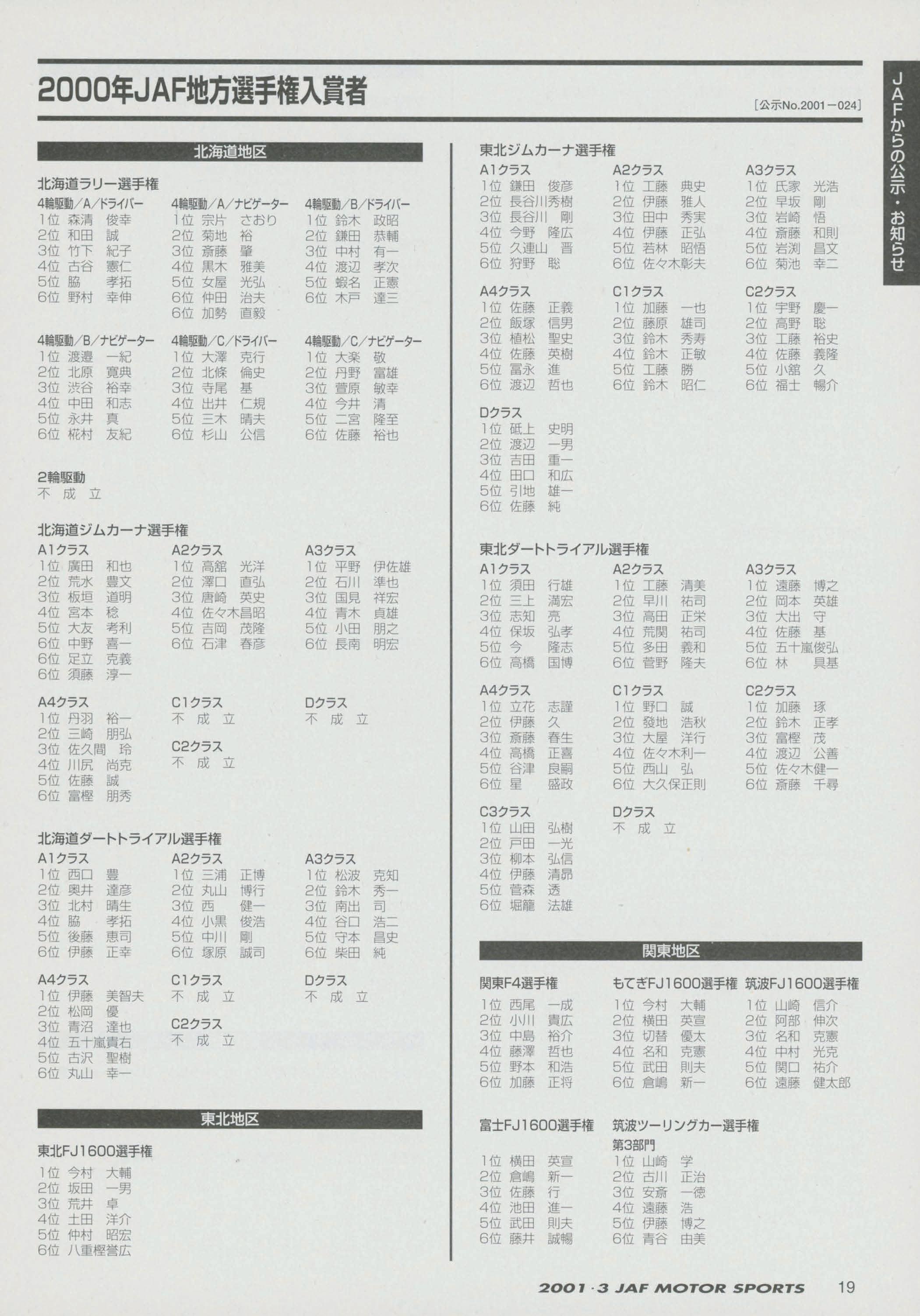 JAFスポーツ 2001年 3月号(第35巻 第2号 2001年3月1日発行)