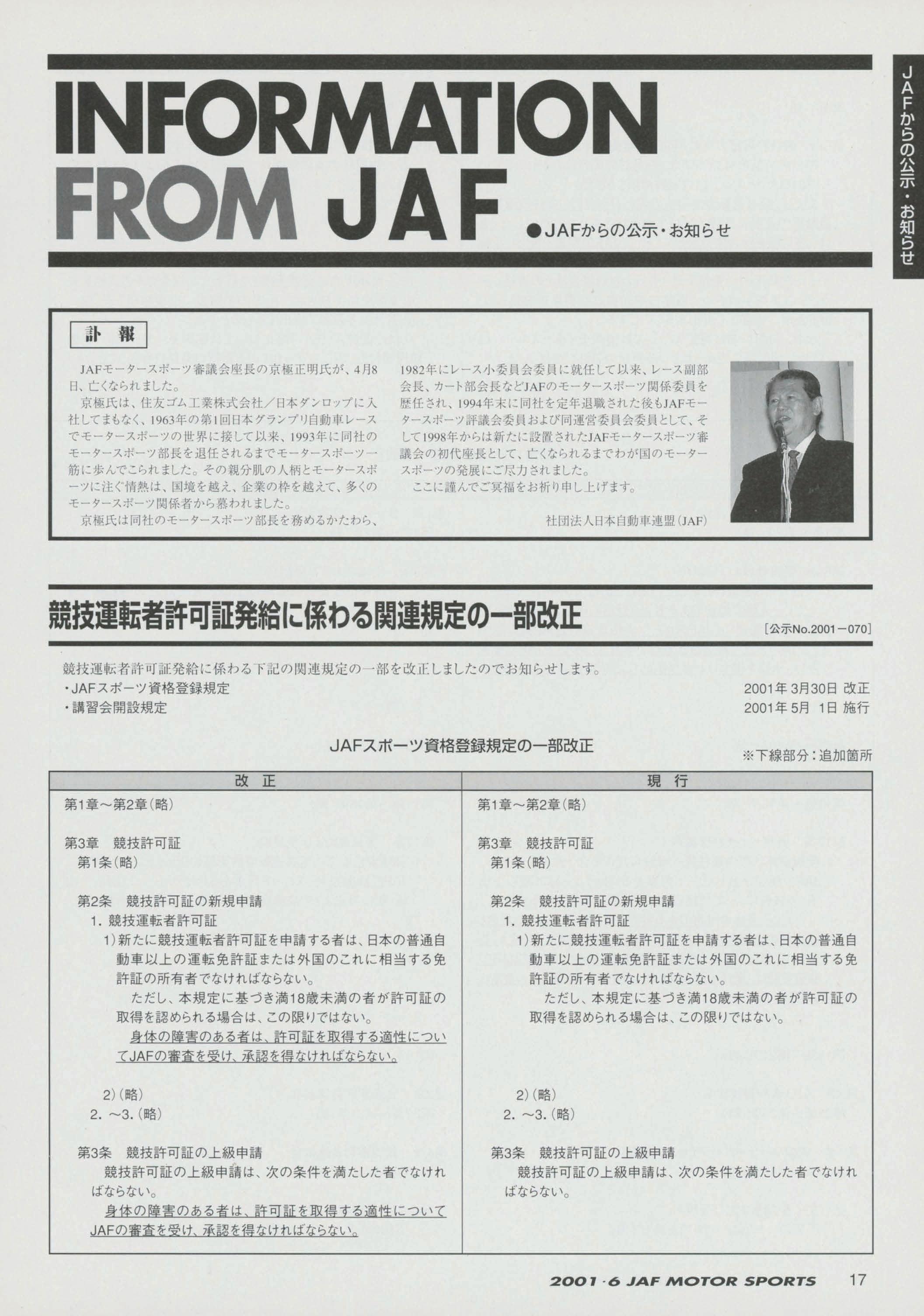 JAFスポーツ 2001年 6月号(第35巻 第5号 2001年6月1日発行)