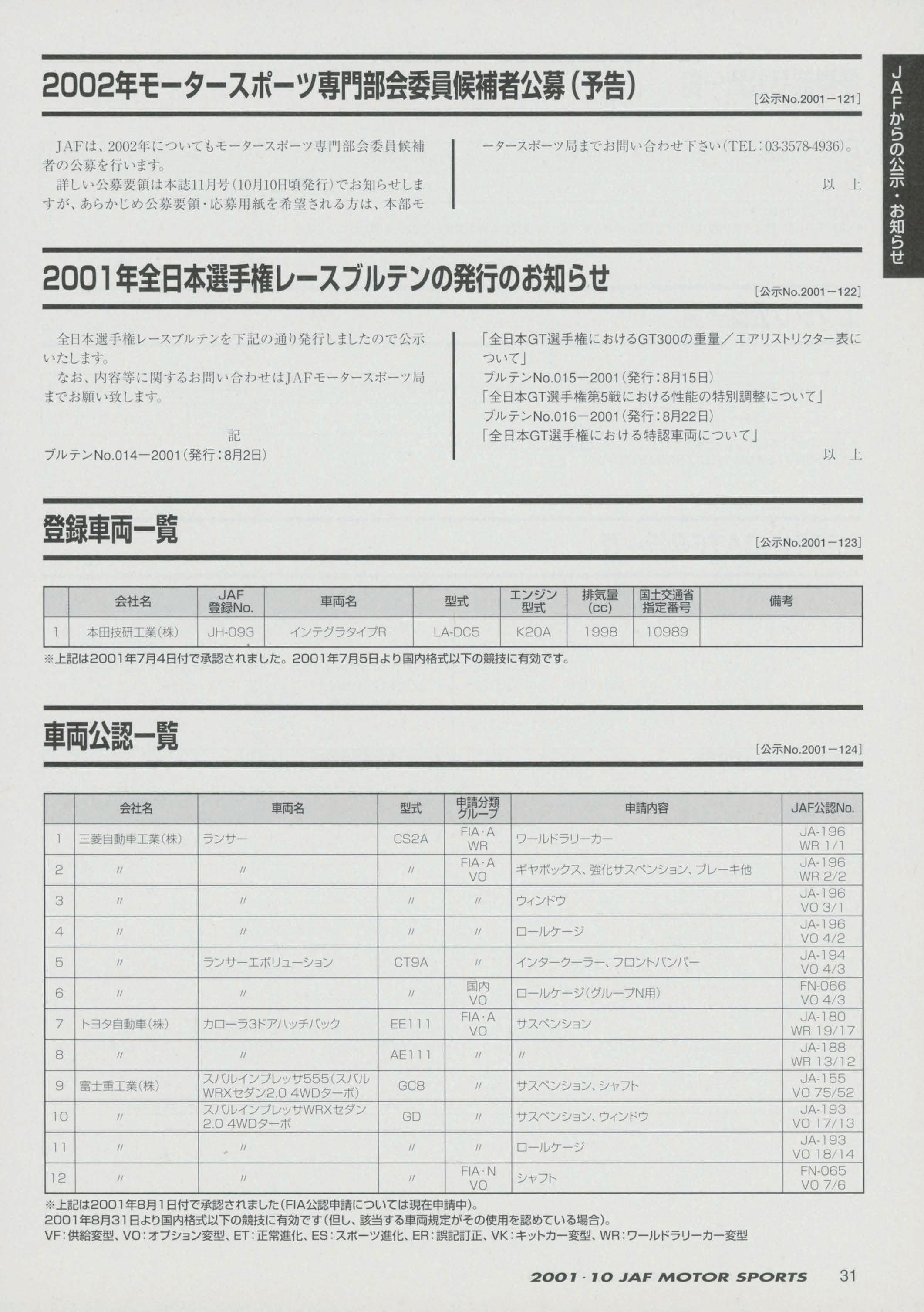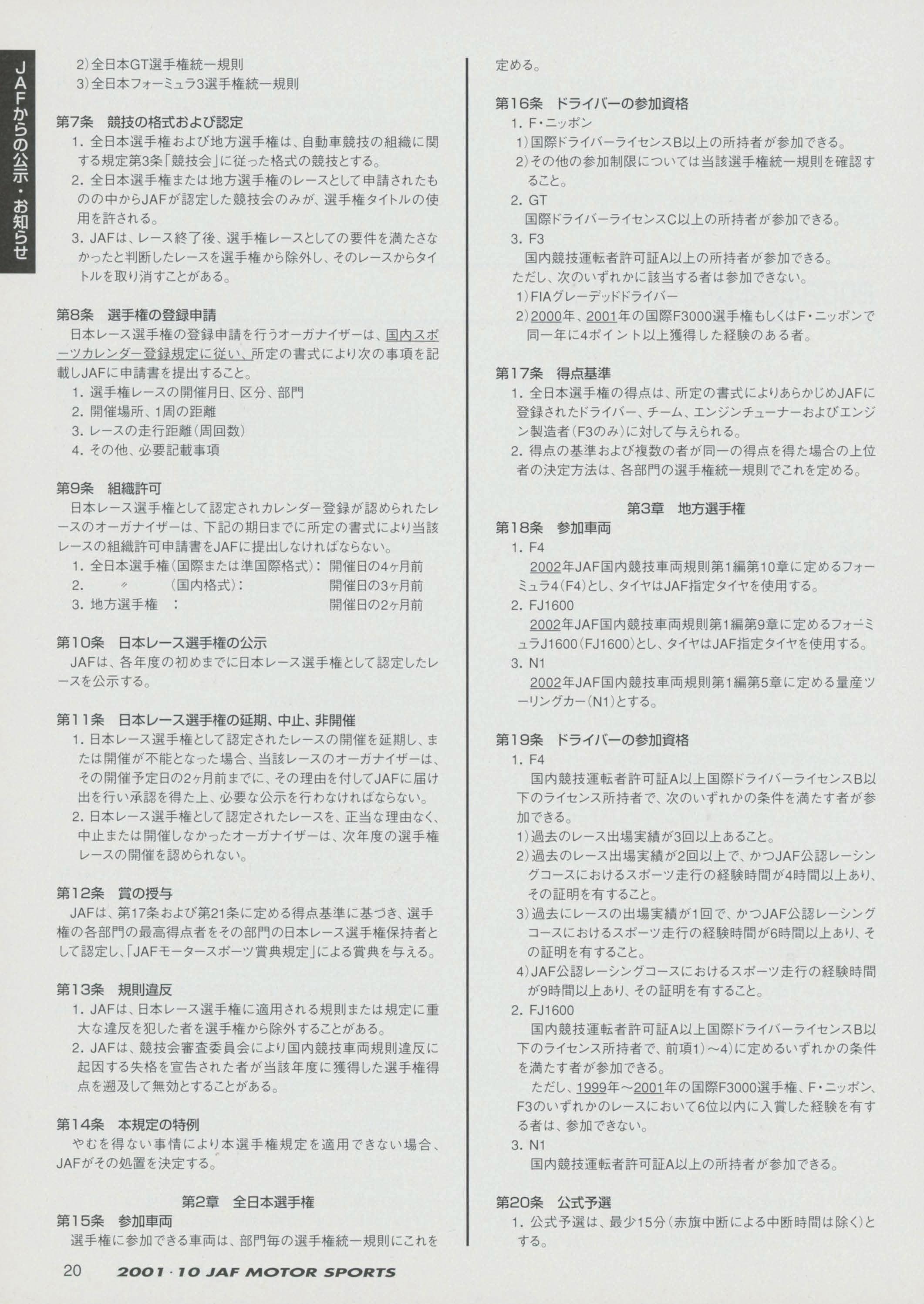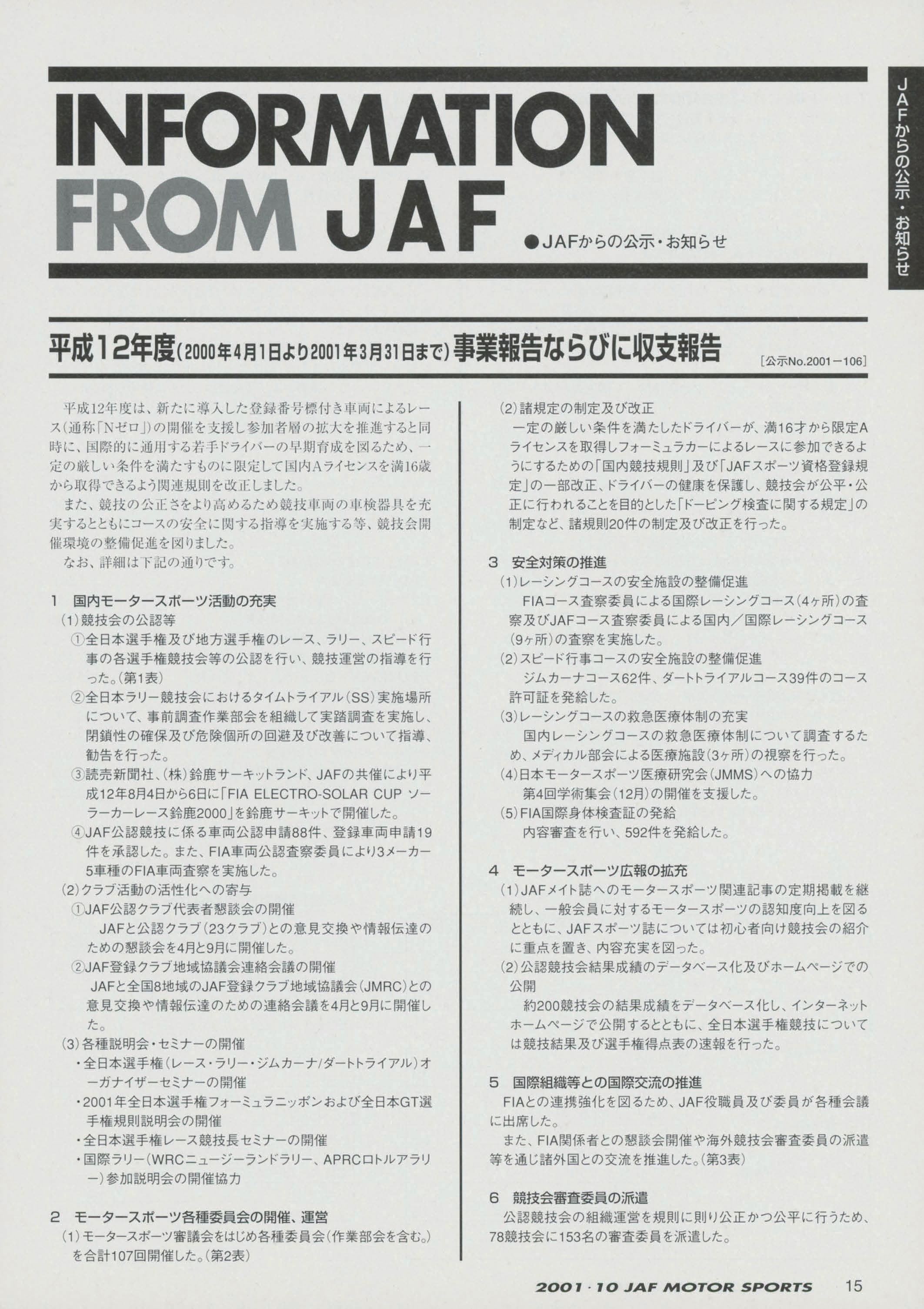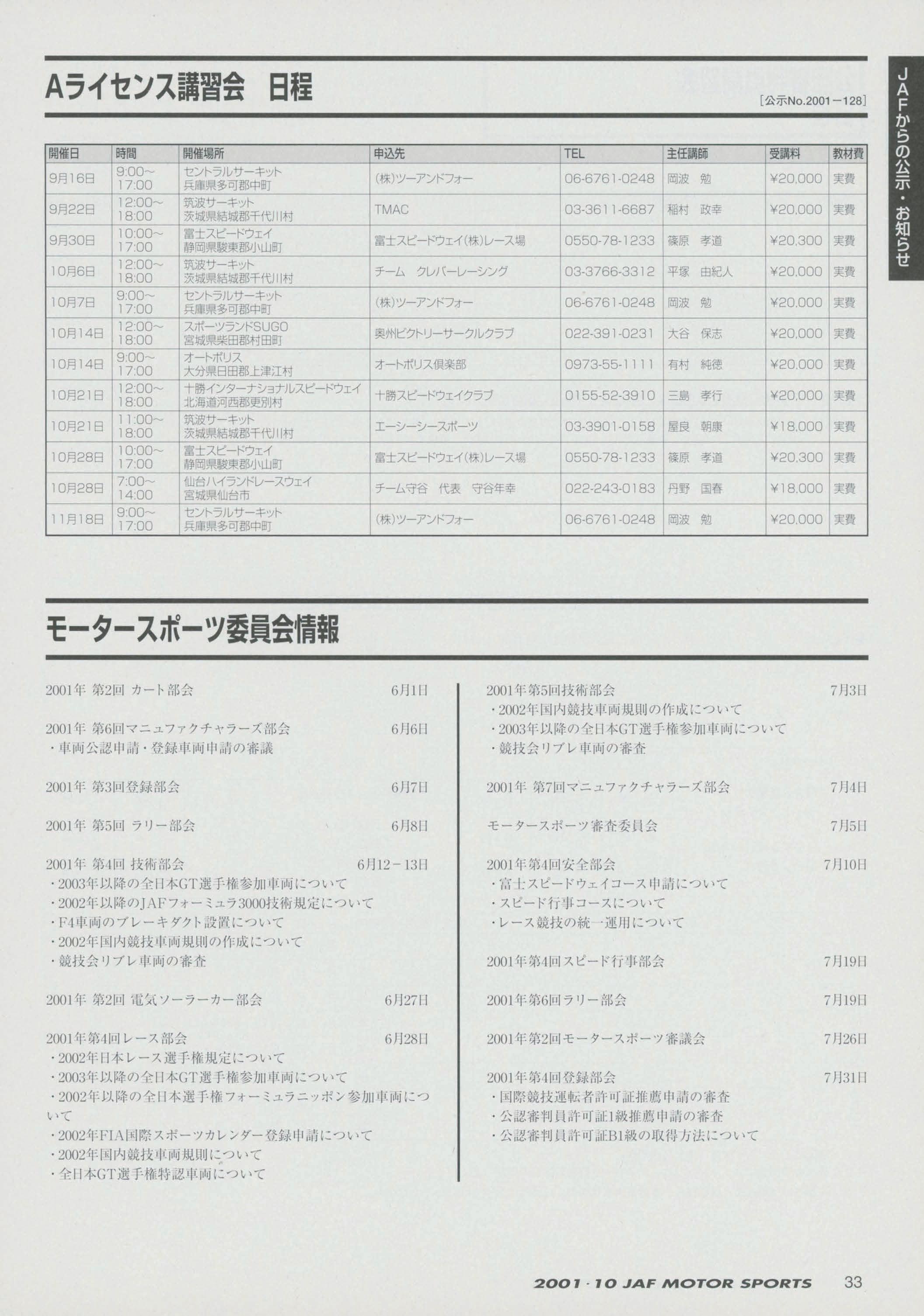 JAFスポーツ 2001年 10月号(第35巻 第8号 2001年10月1日発行)
