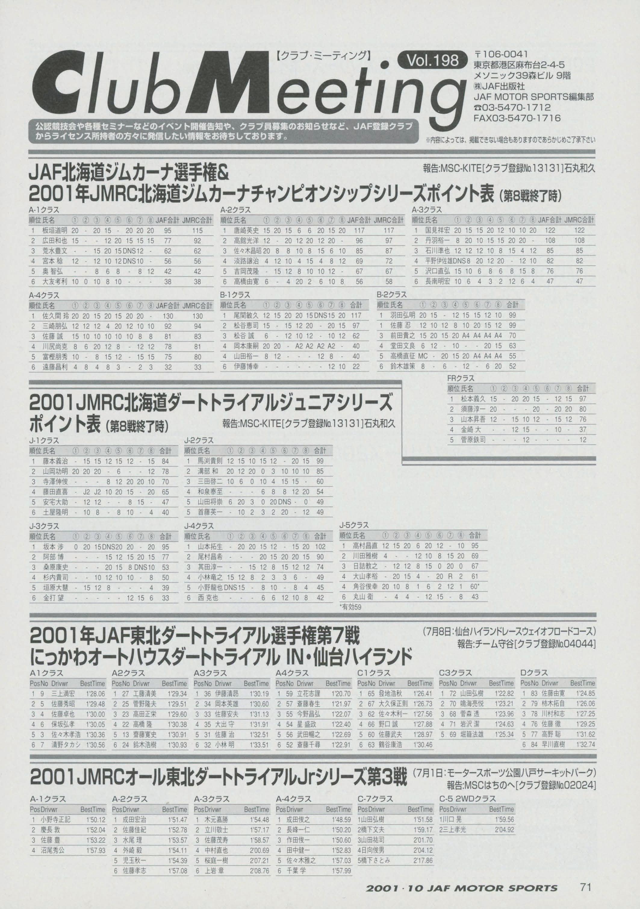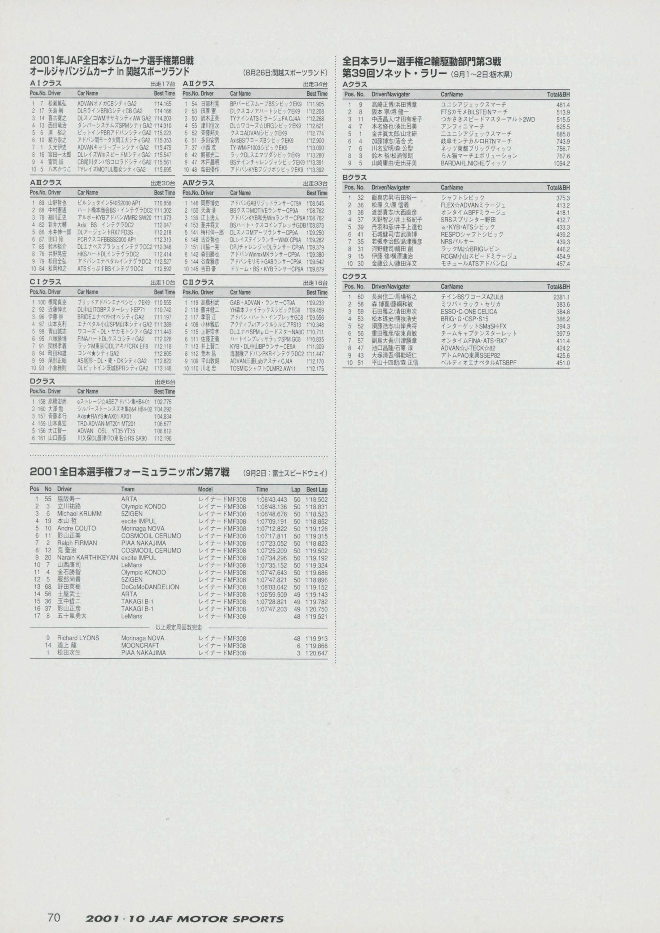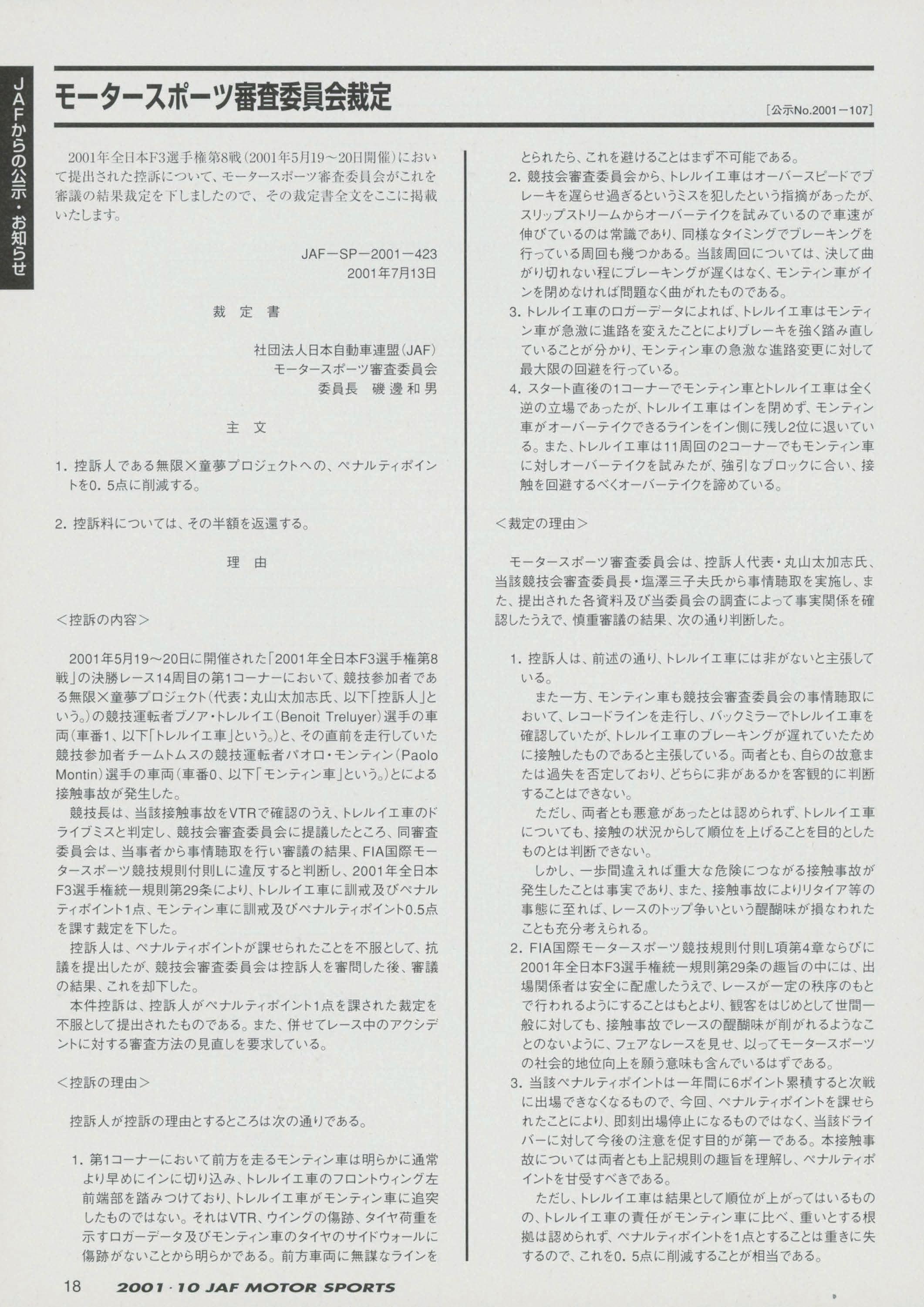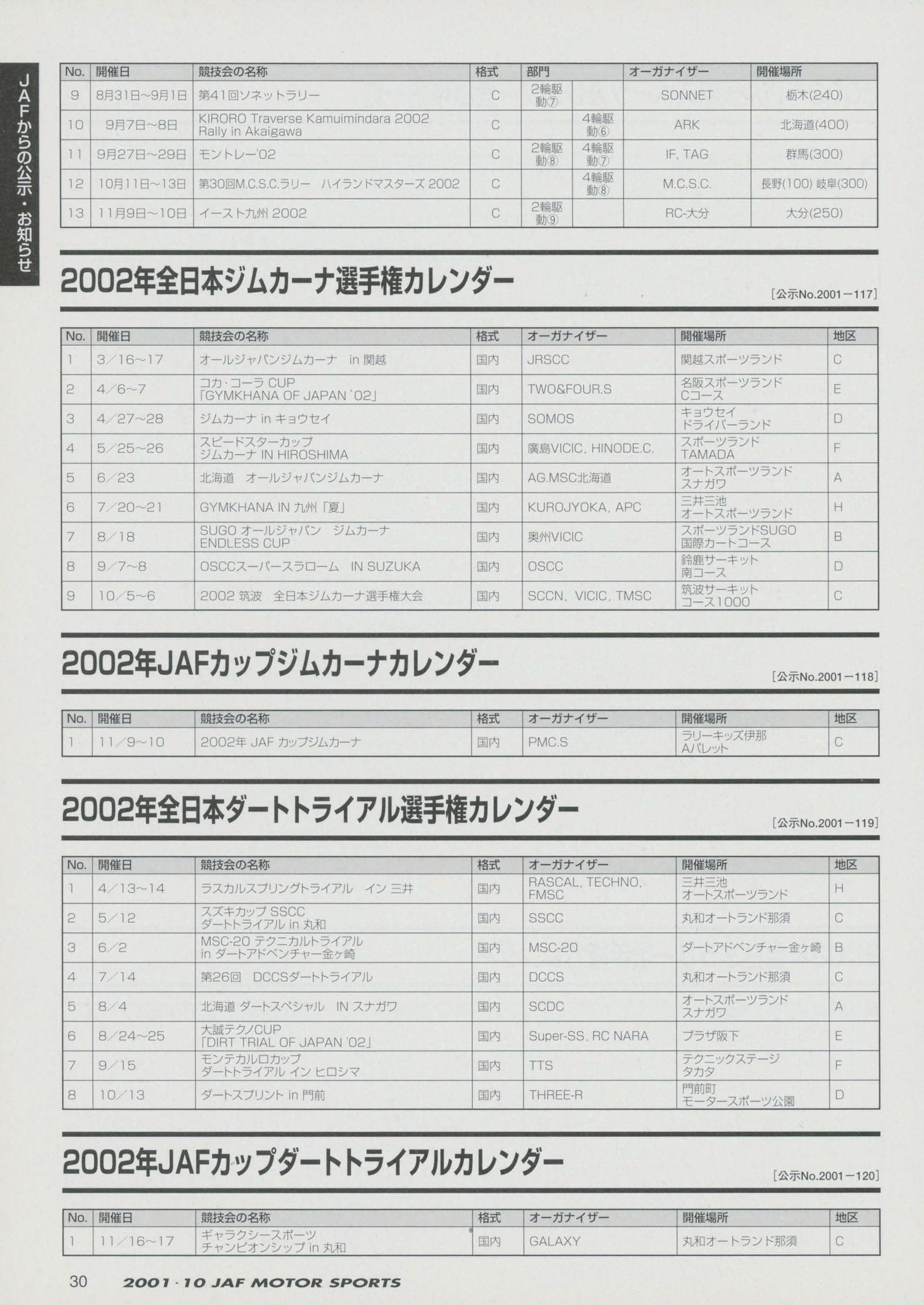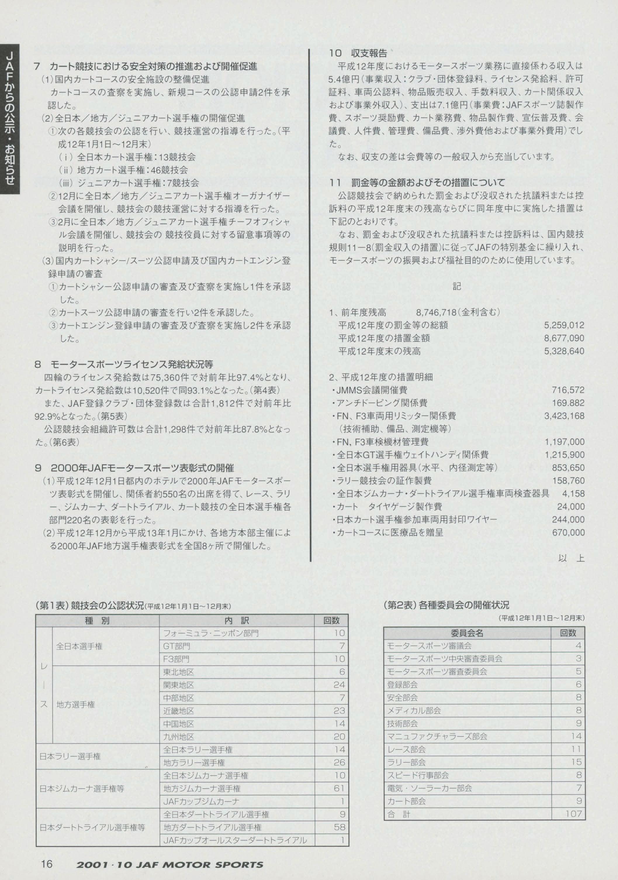 JAFスポーツ 2001年 10月号(第35巻 第8号 2001年10月1日発行)