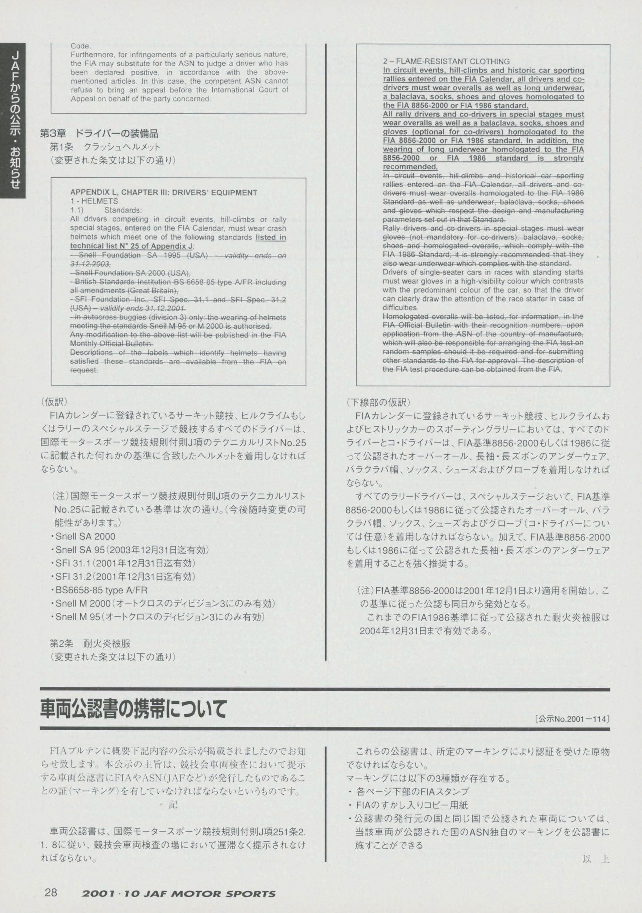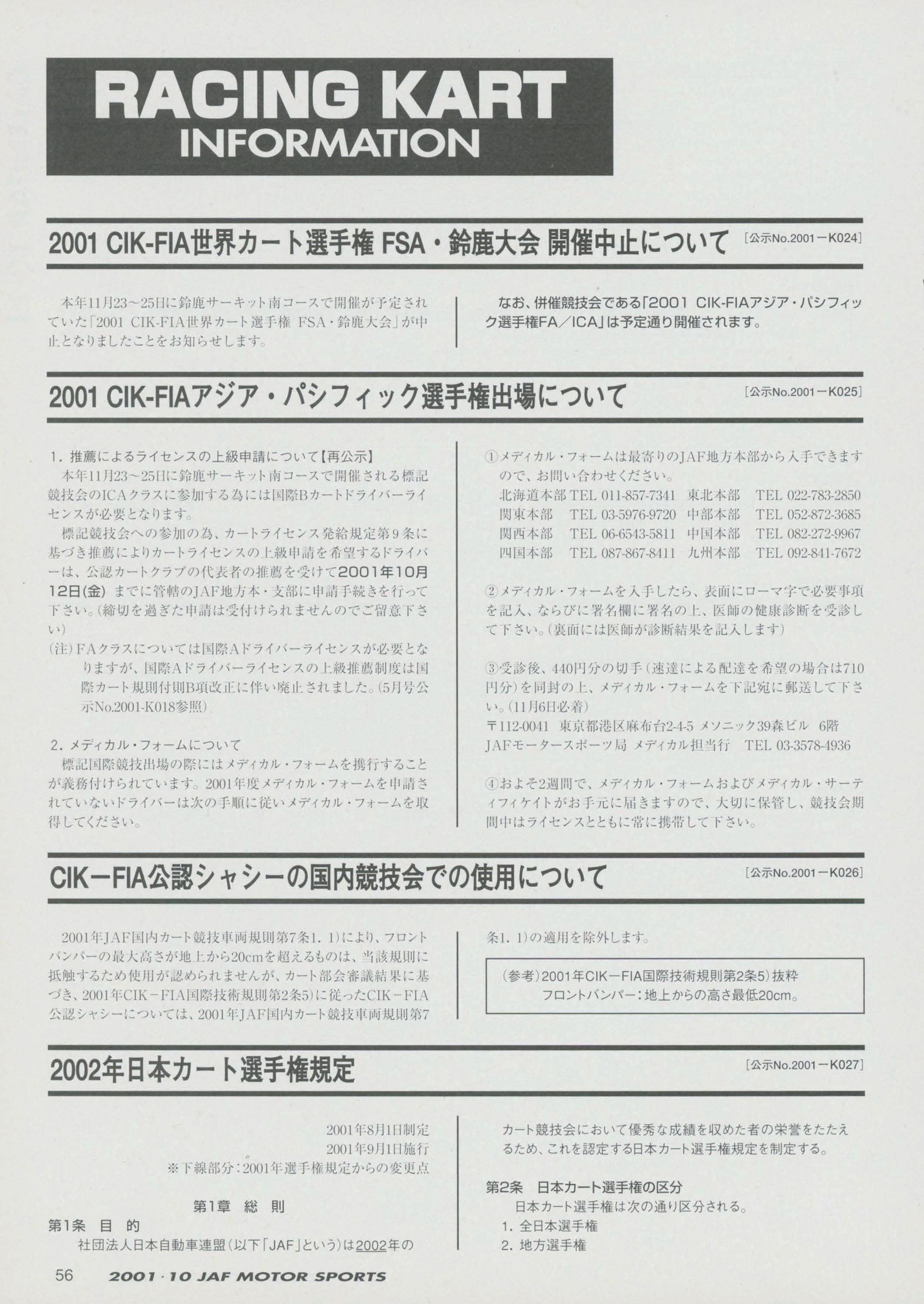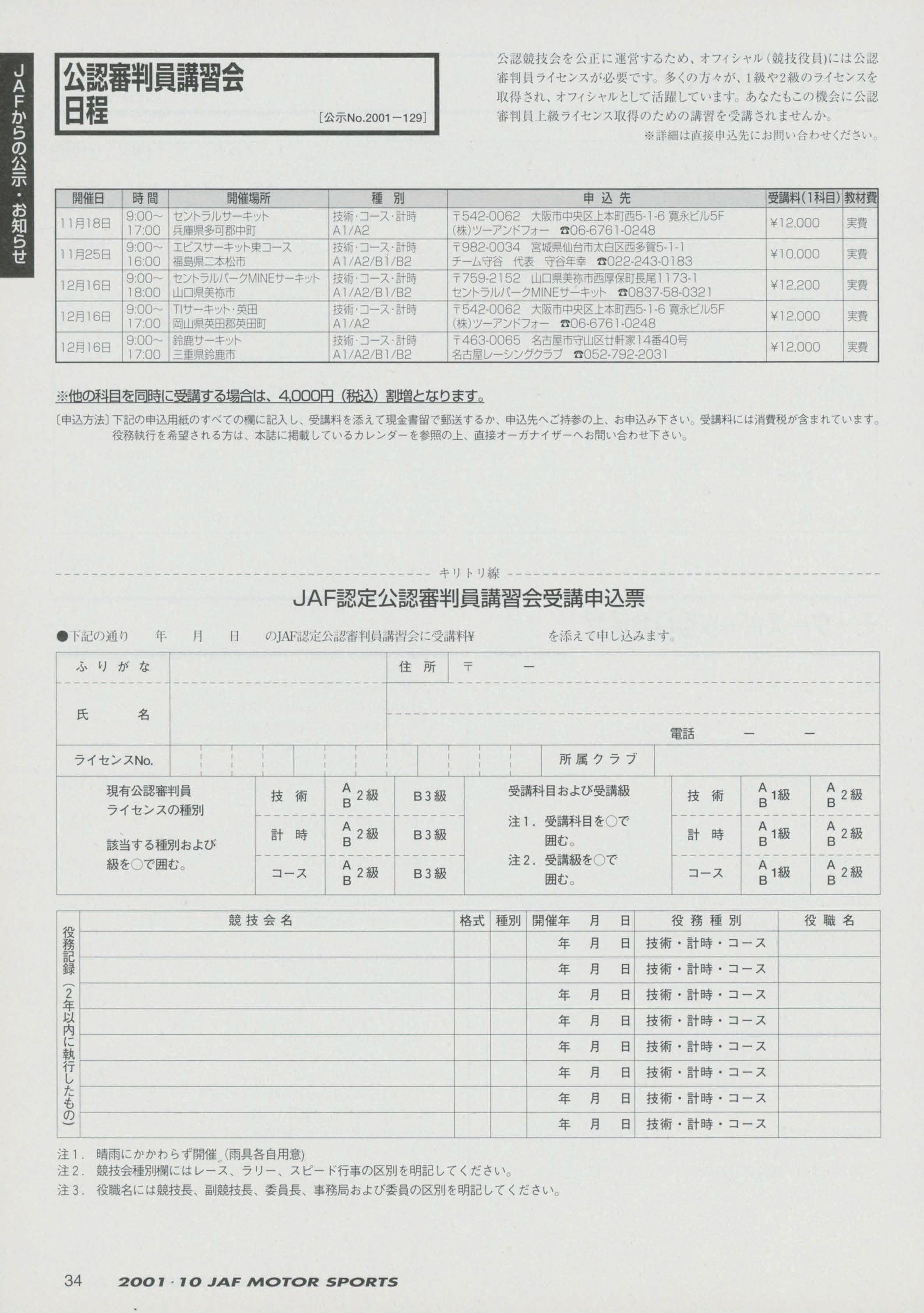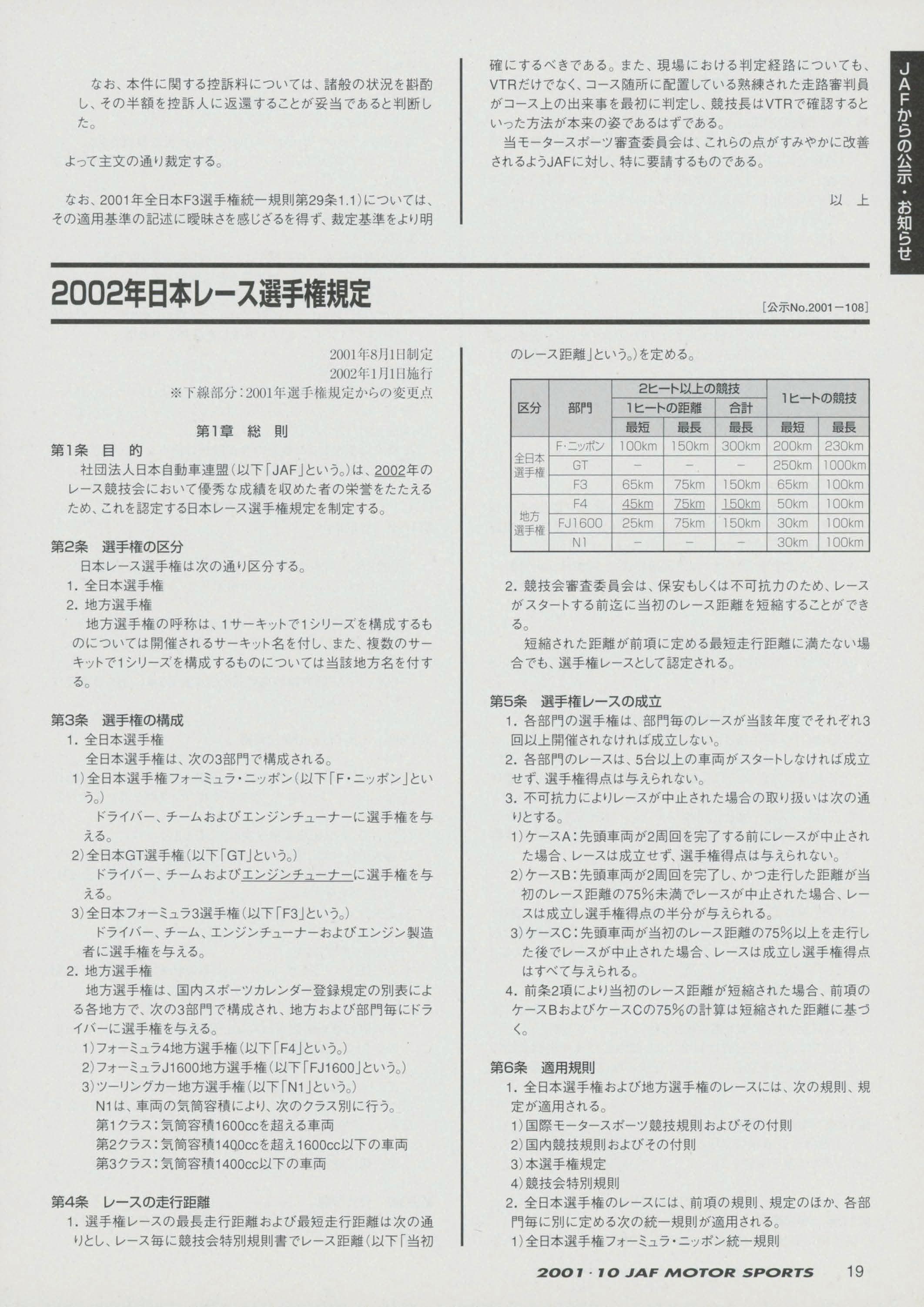 JAFスポーツ 2001年 10月号(第35巻 第8号 2001年10月1日発行)