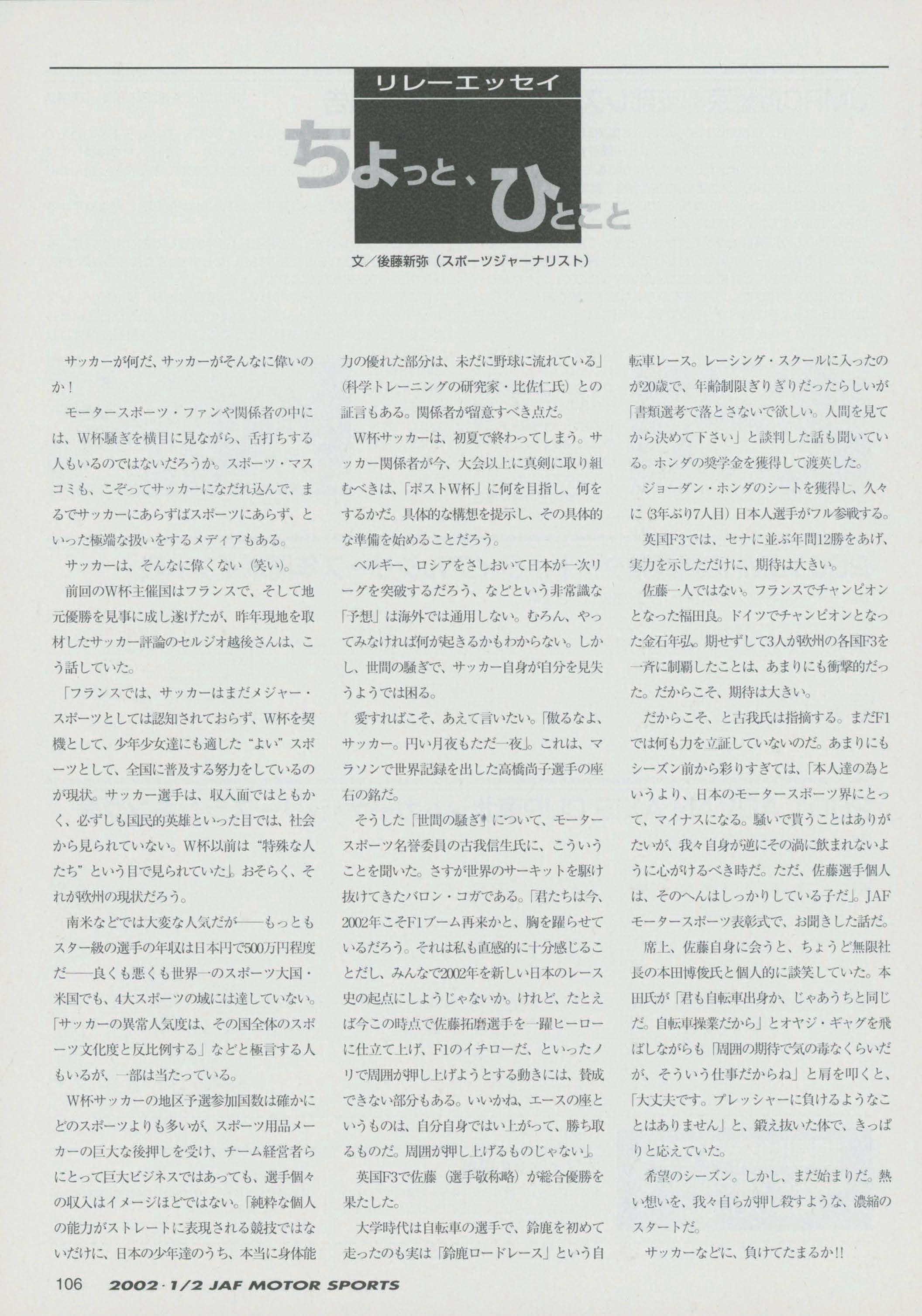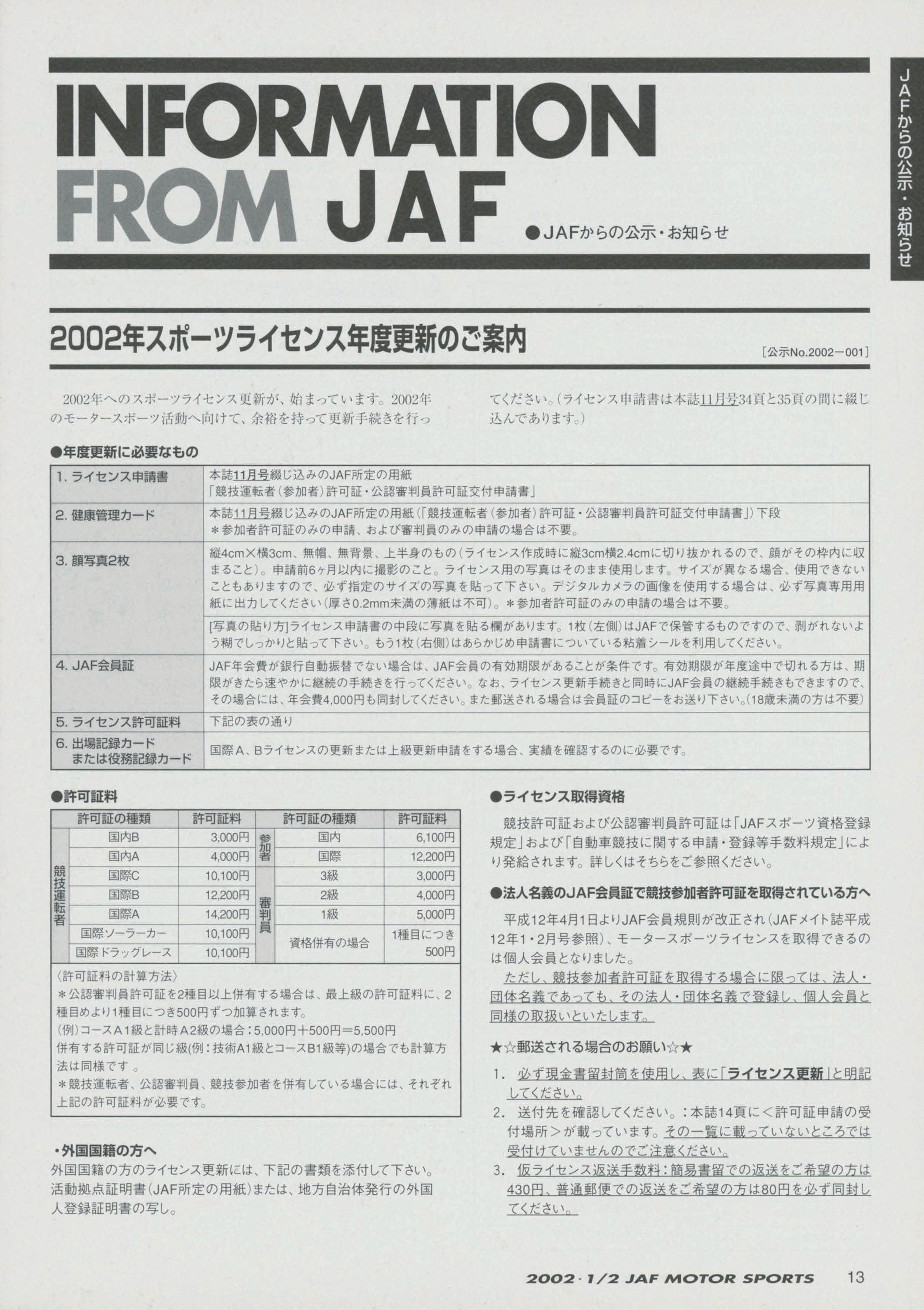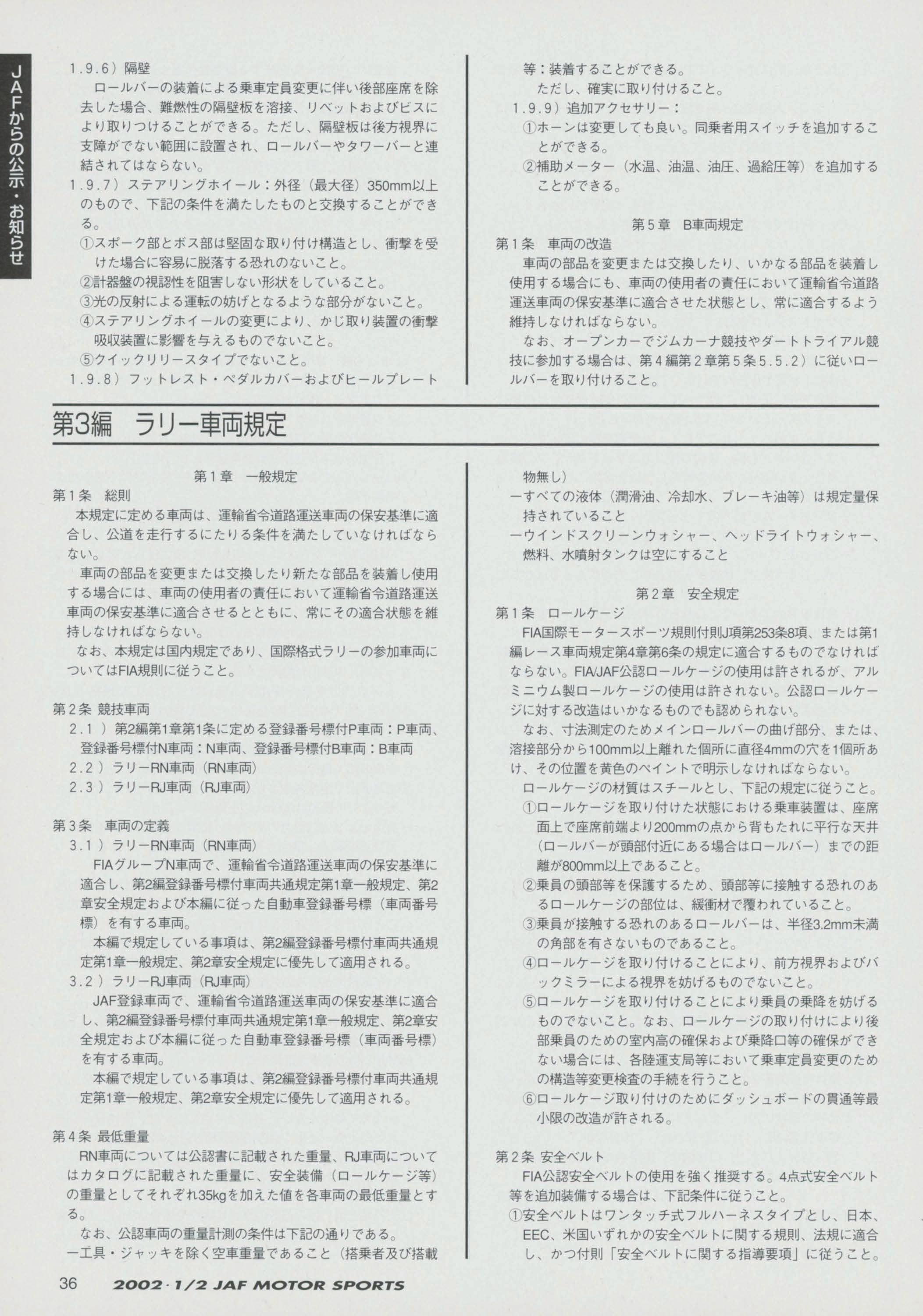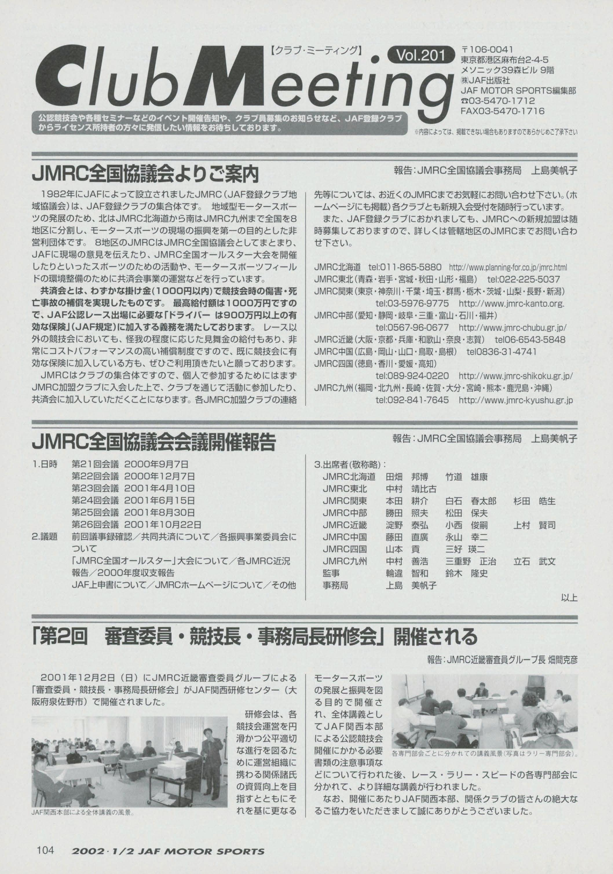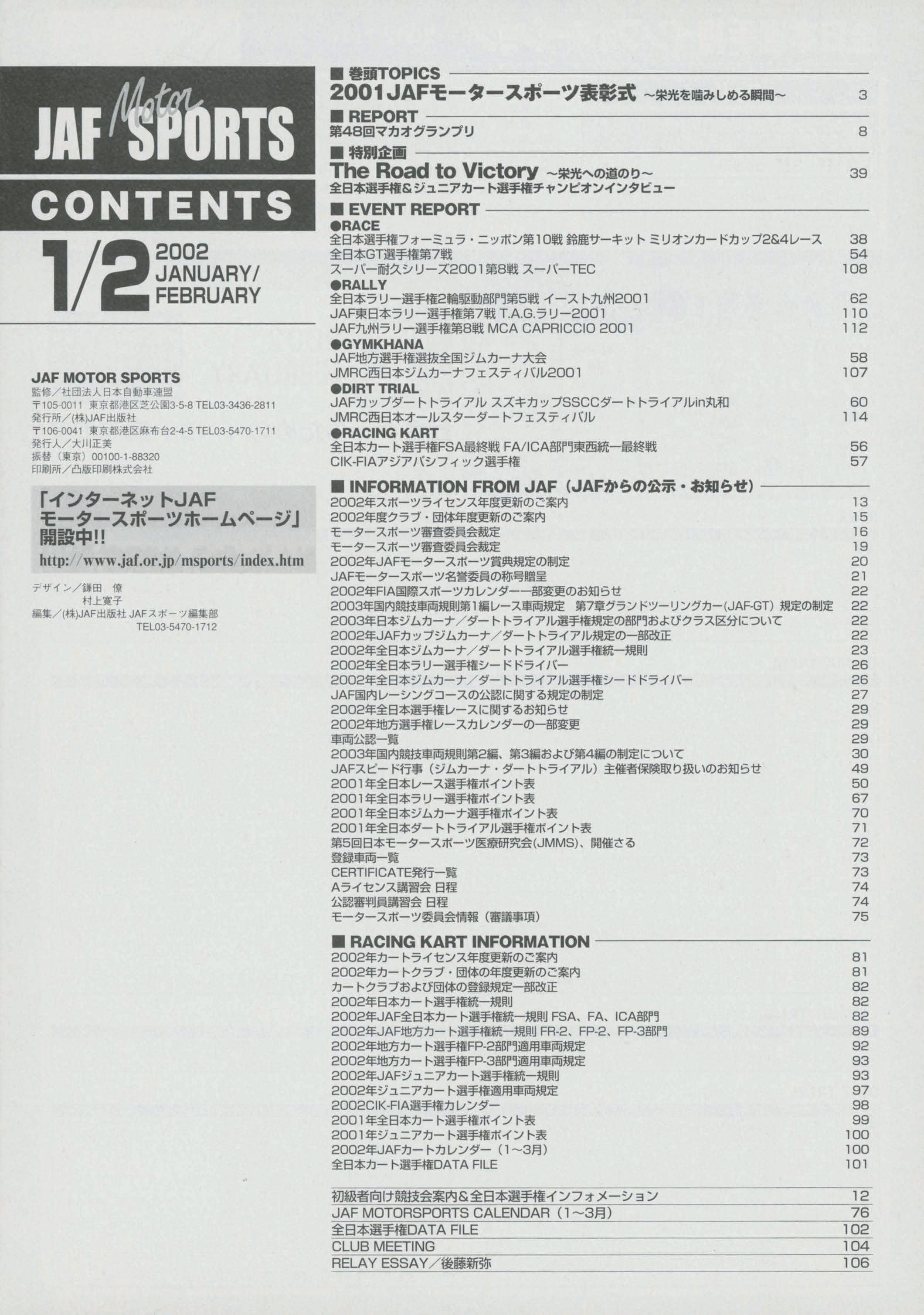 JAFスポーツ 2002年 1/2月号(第36巻 第1号 2002年1月1日発行)