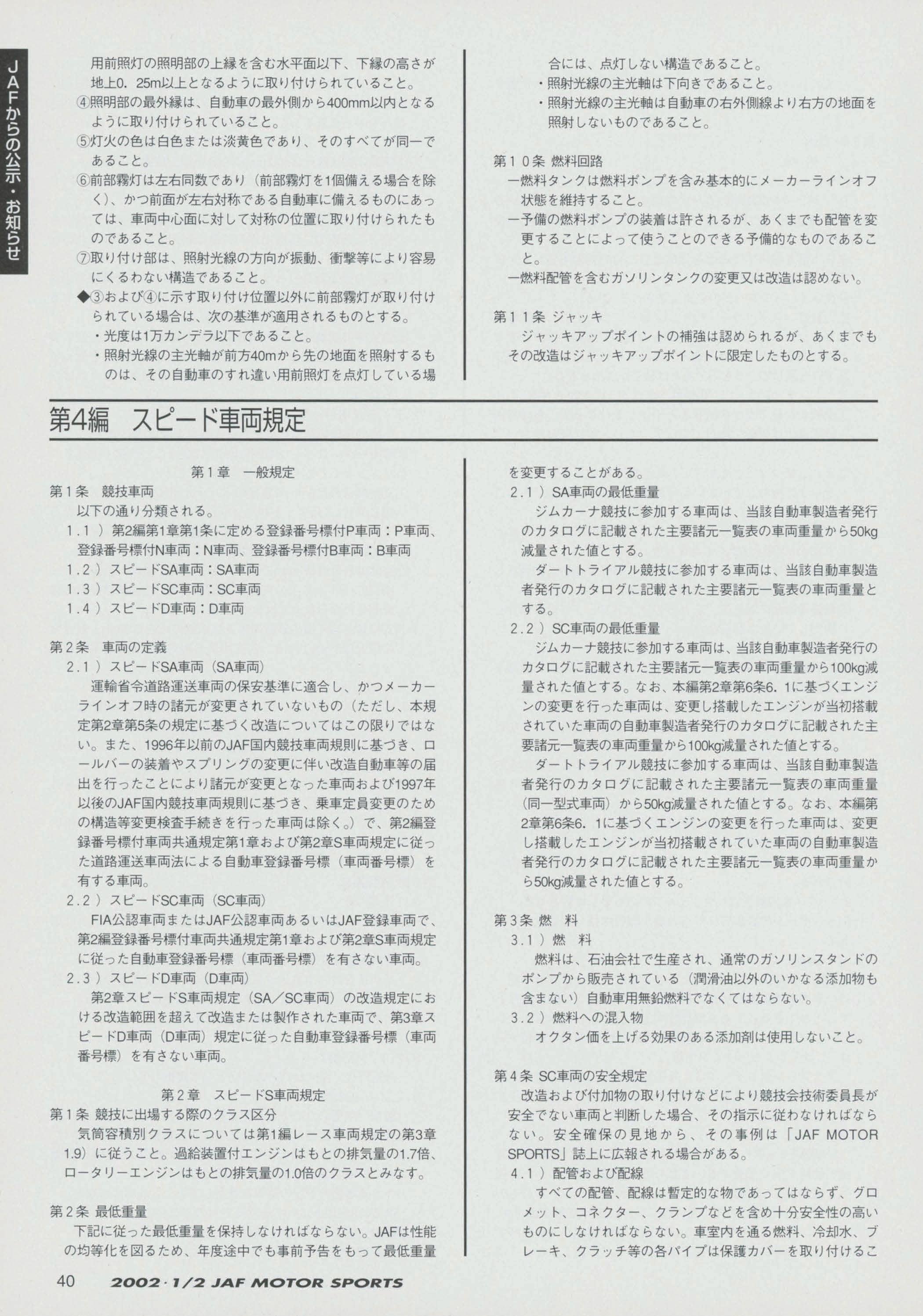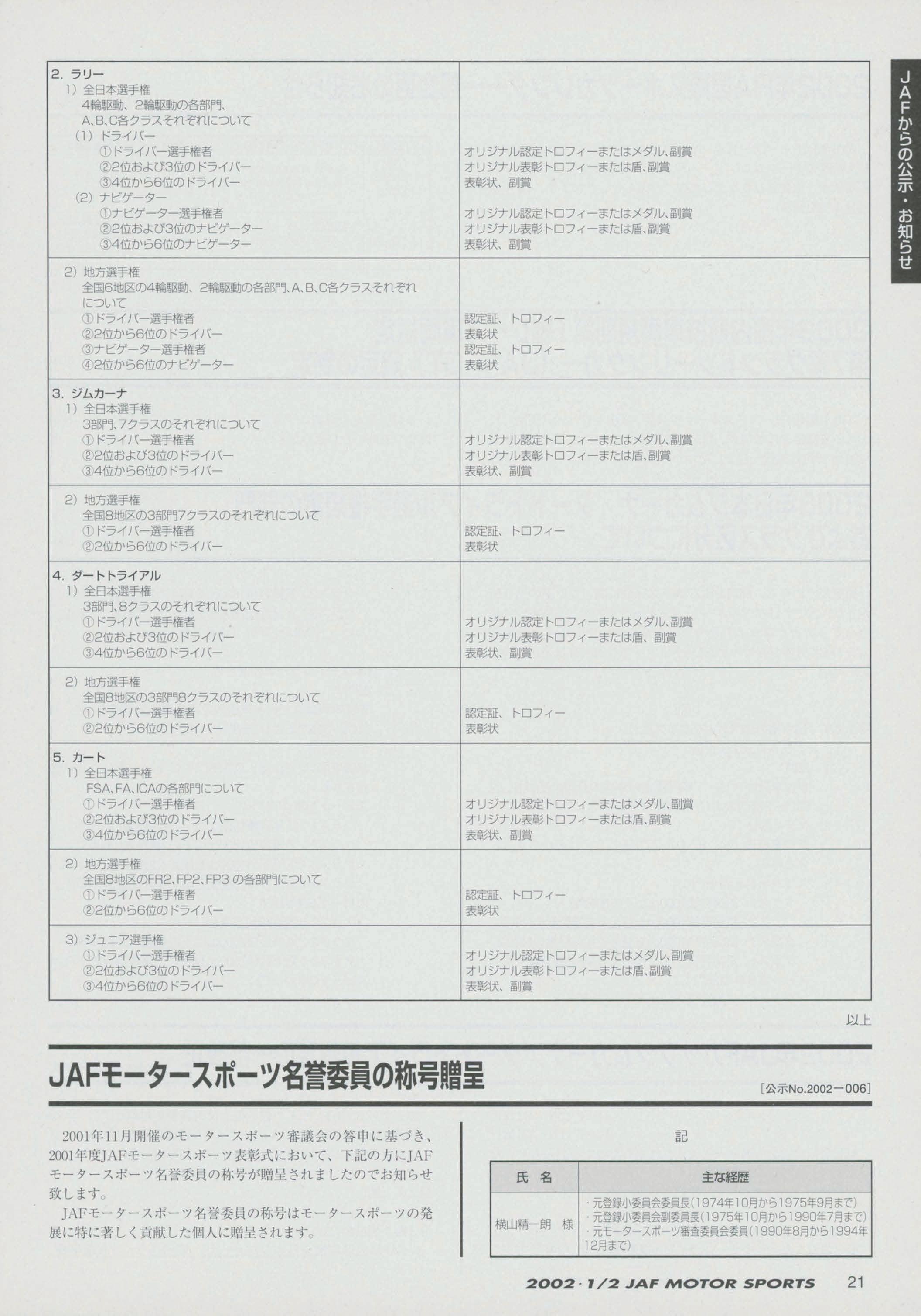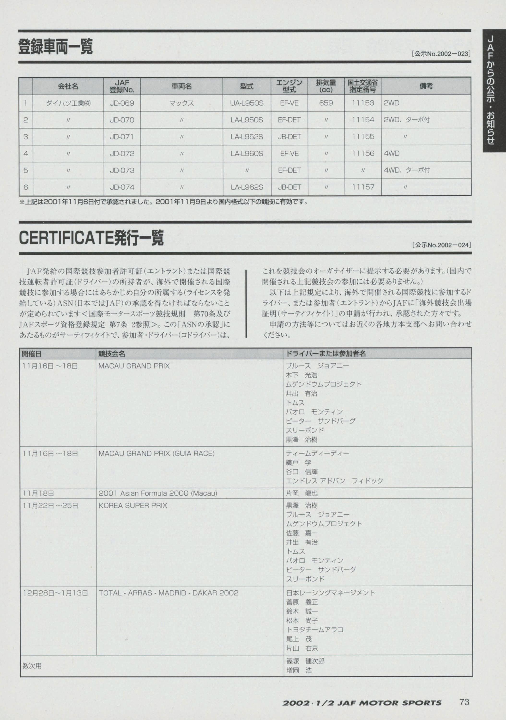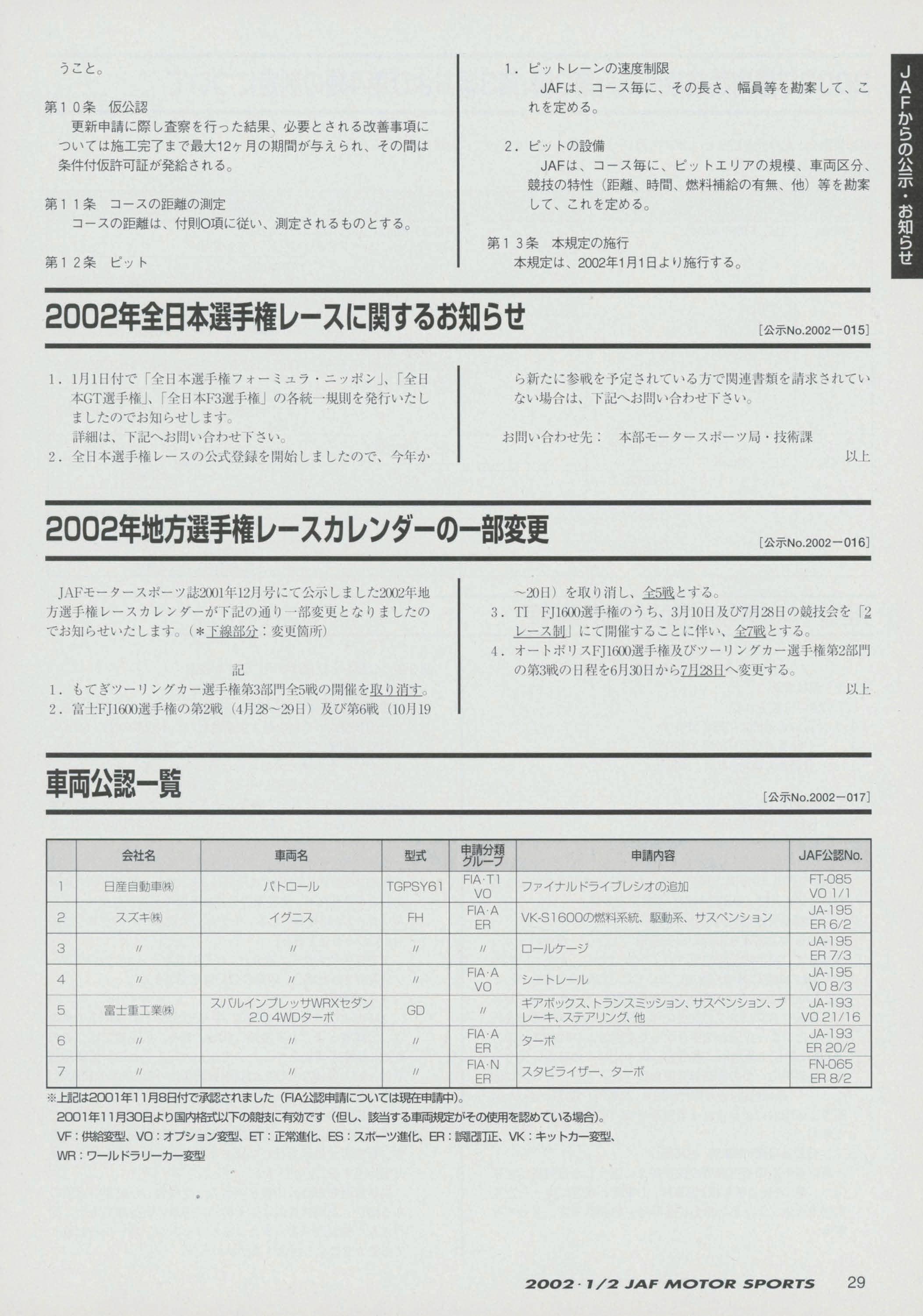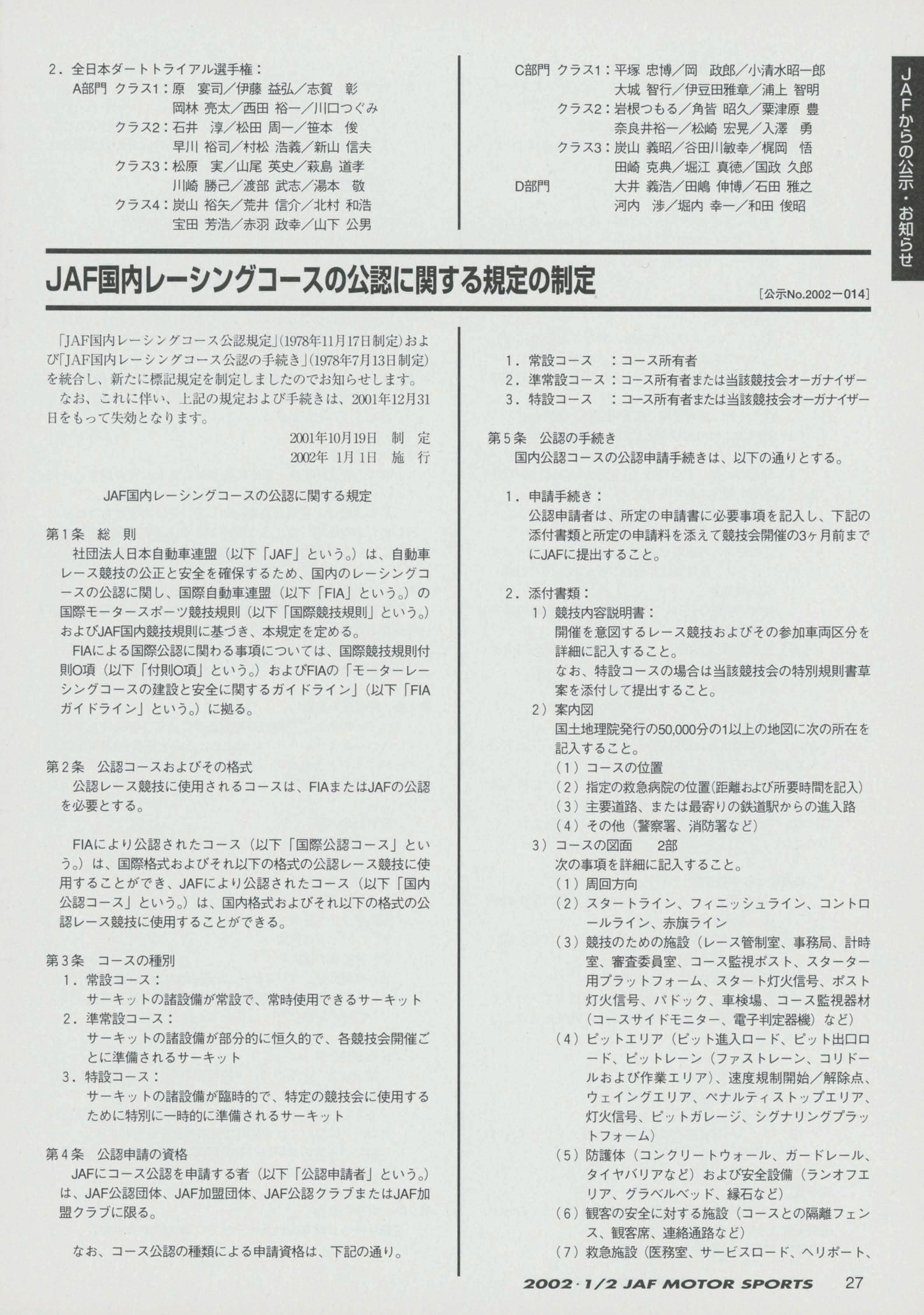 JAFスポーツ 2002年 1/2月号(第36巻 第1号 2002年1月1日発行)
