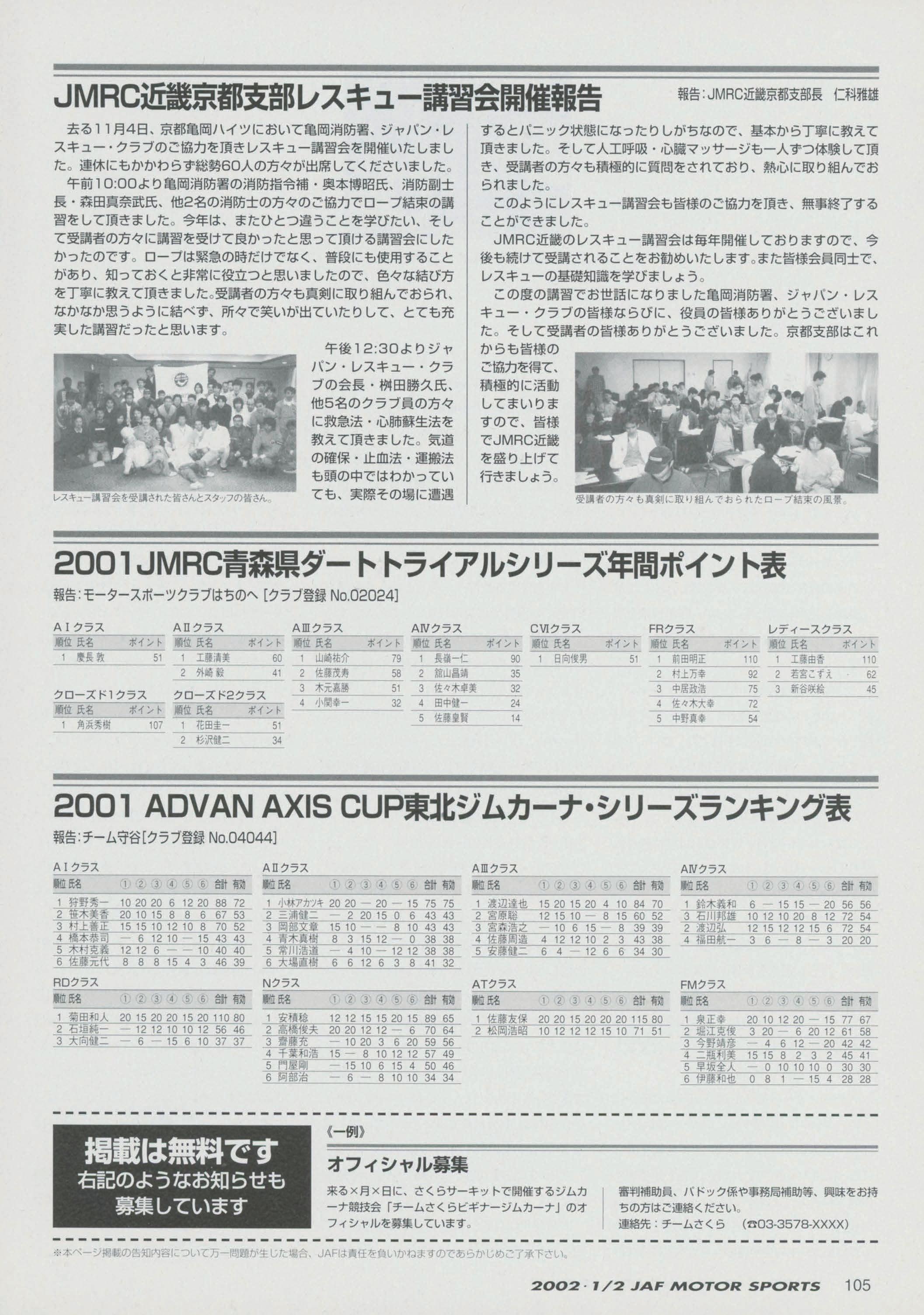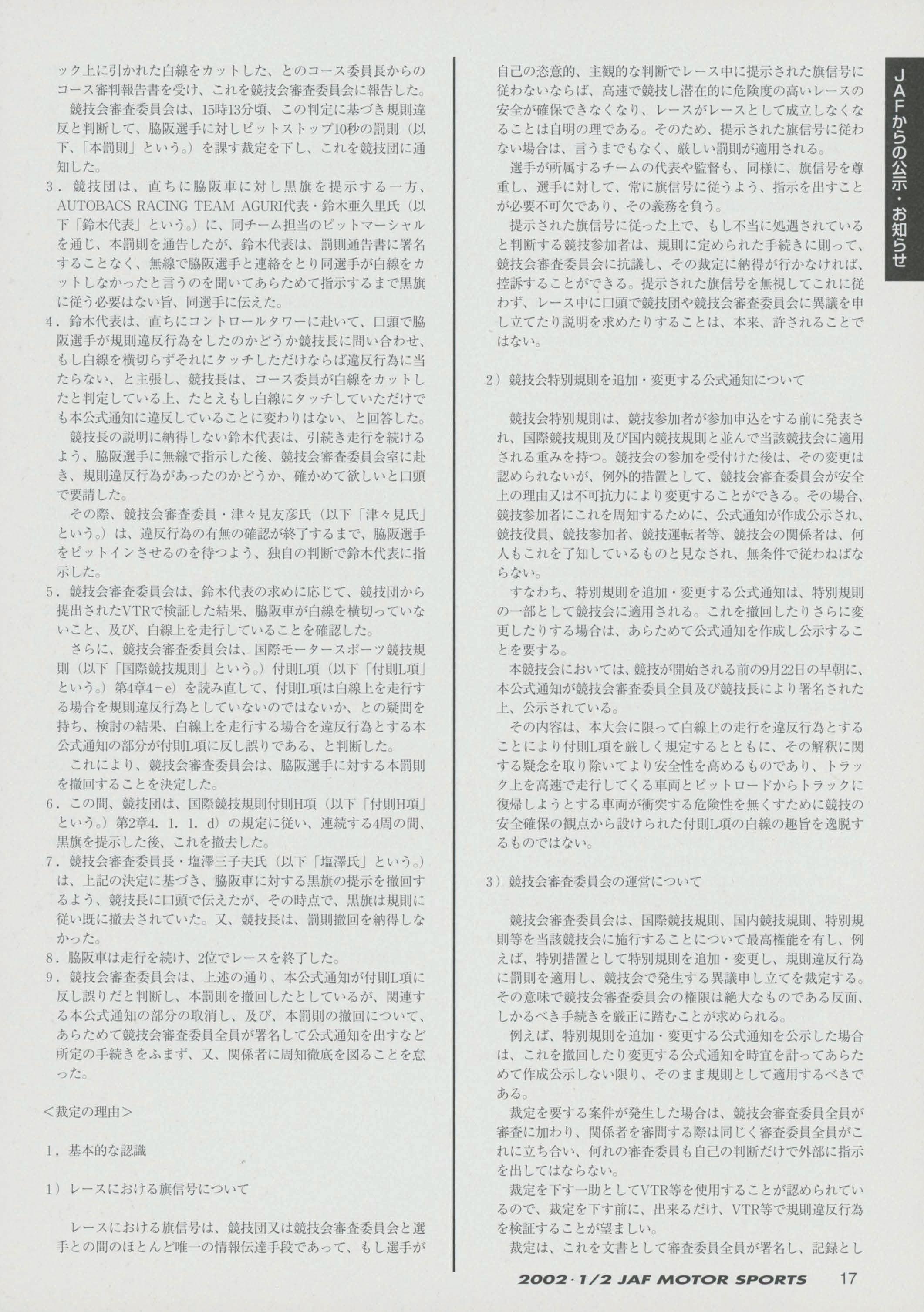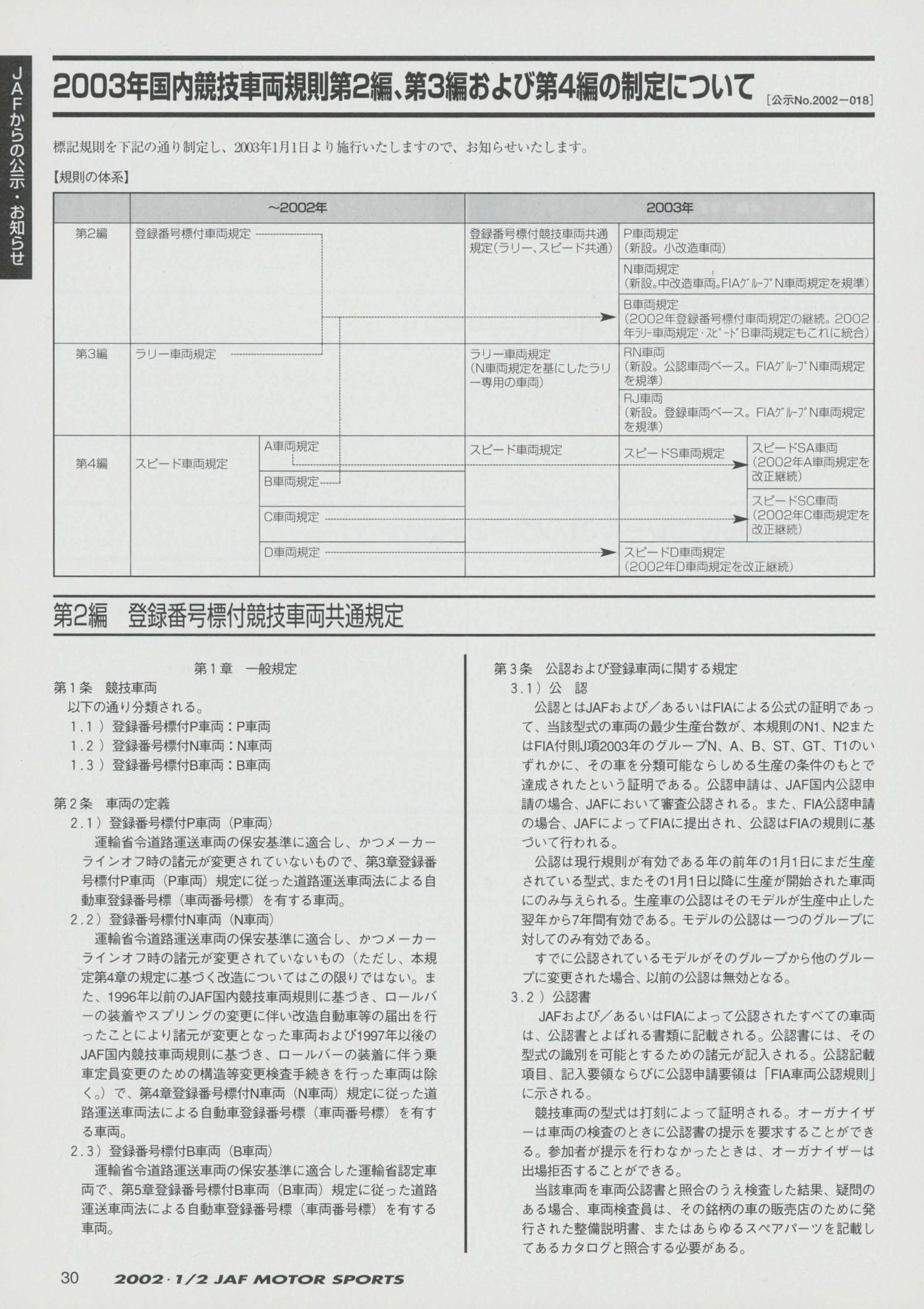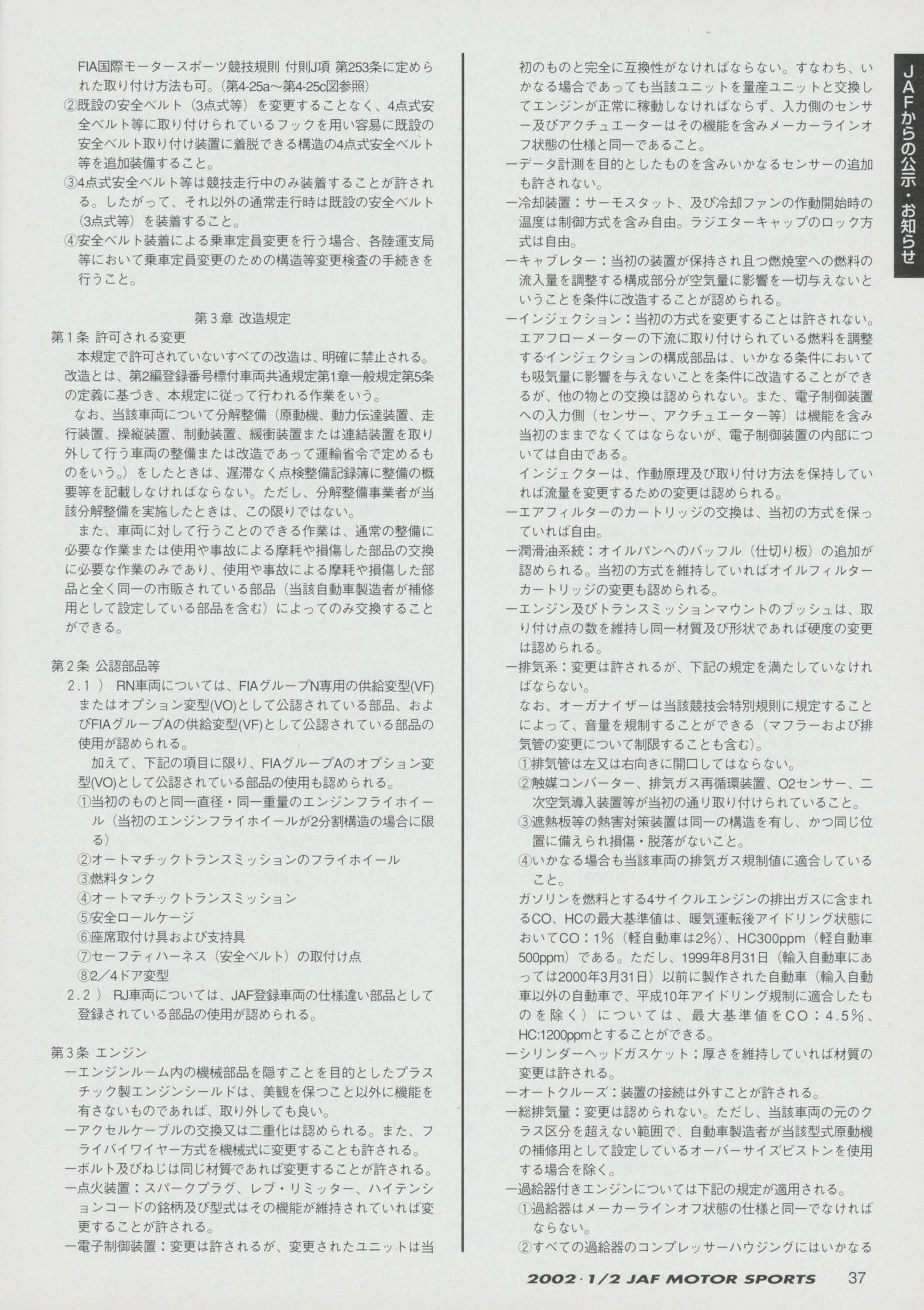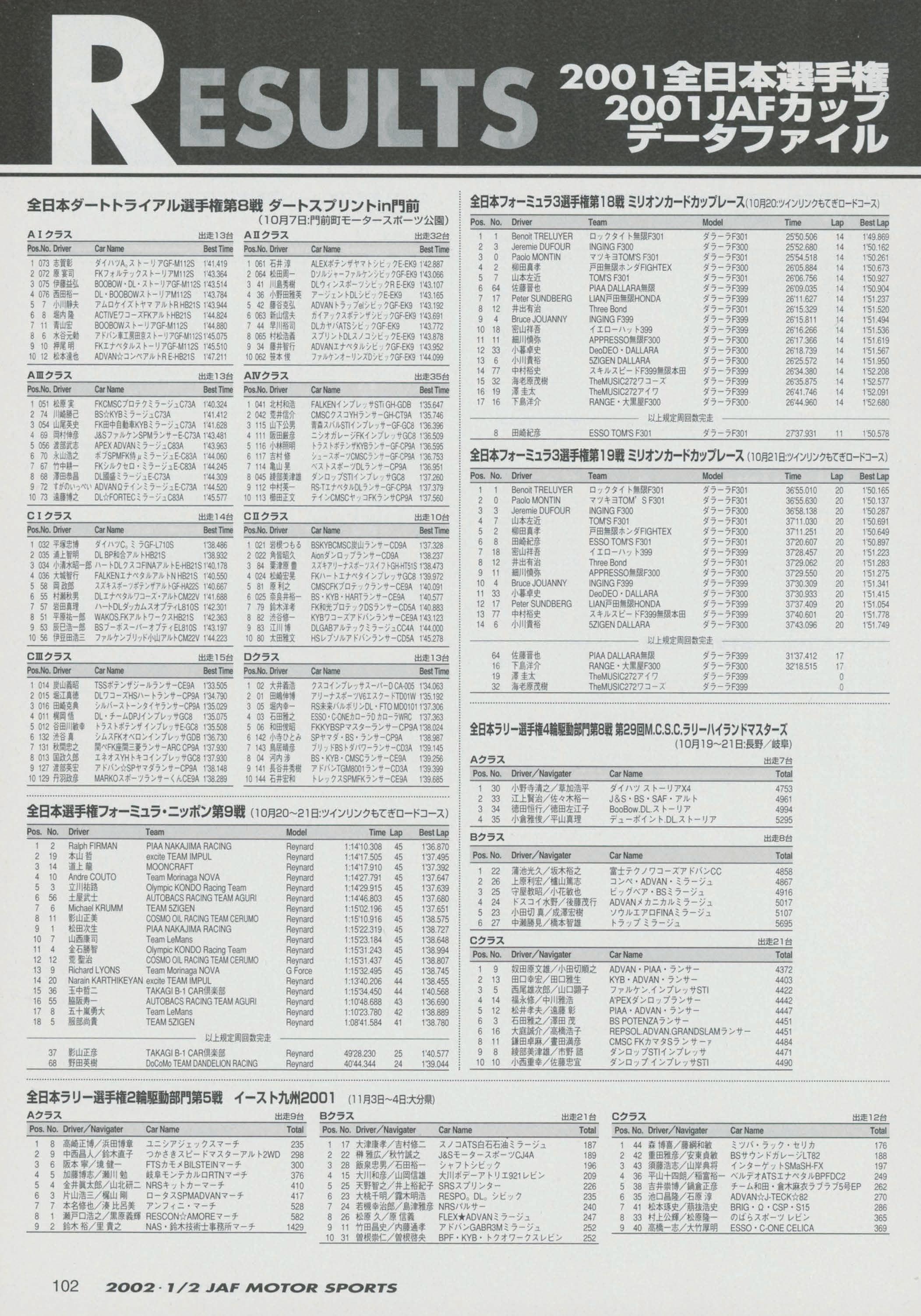 JAFスポーツ 2002年 1/2月号(第36巻 第1号 2002年1月1日発行)