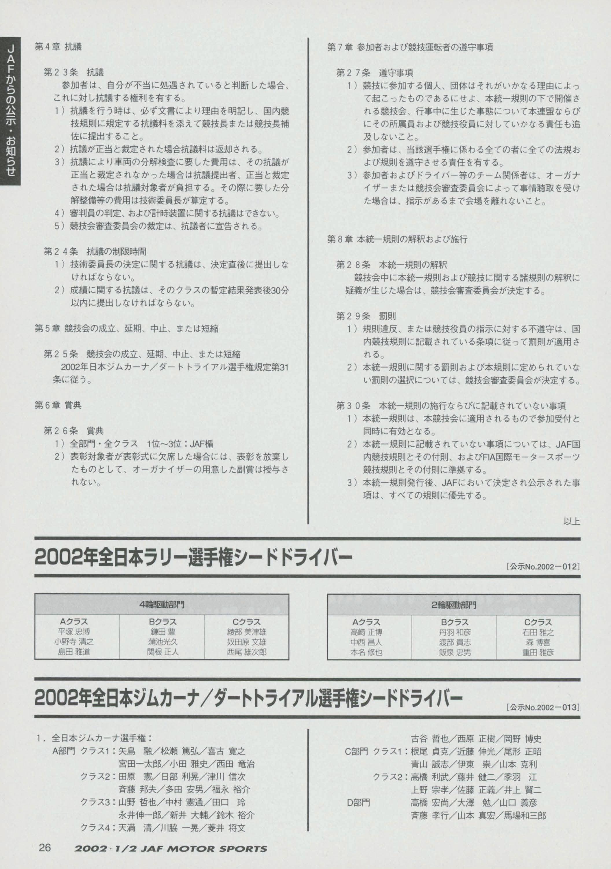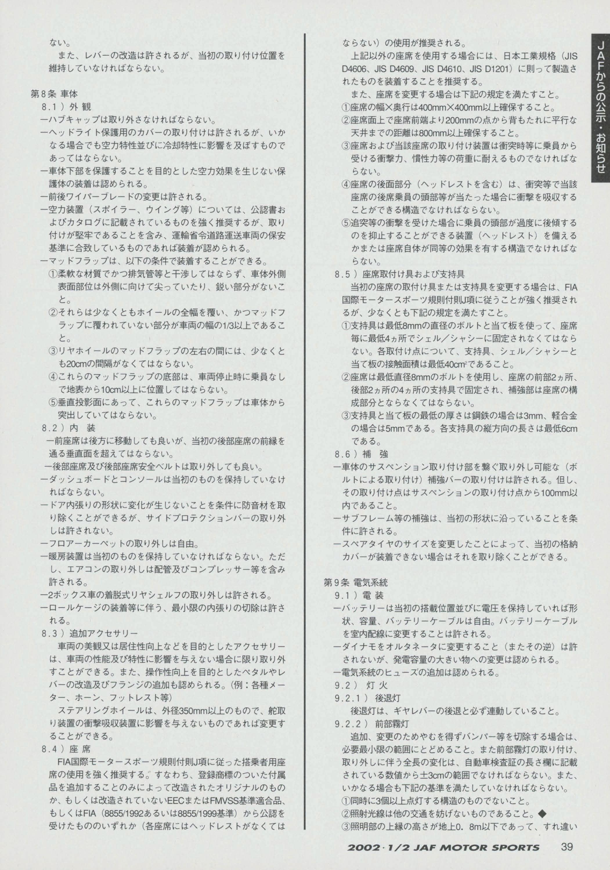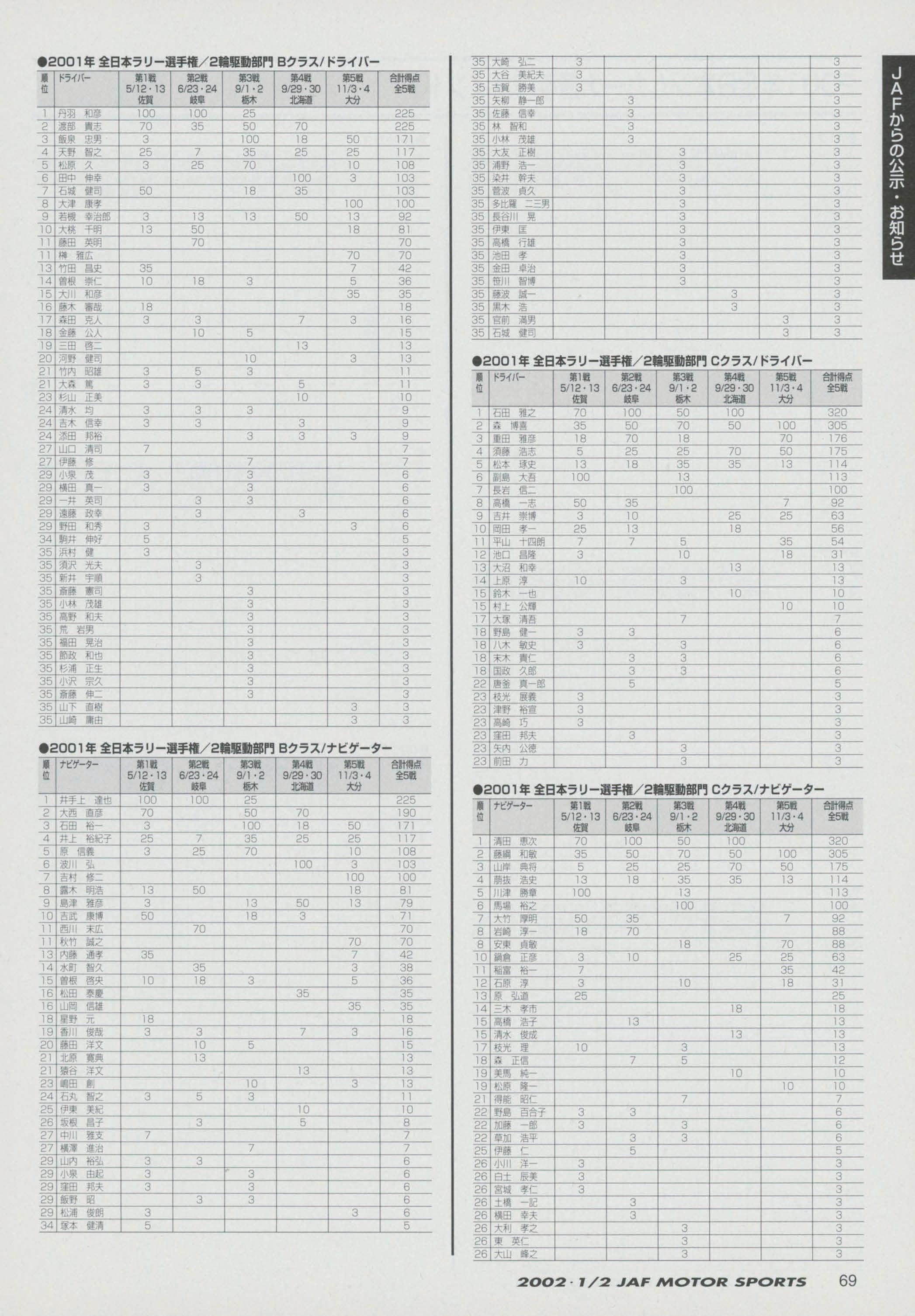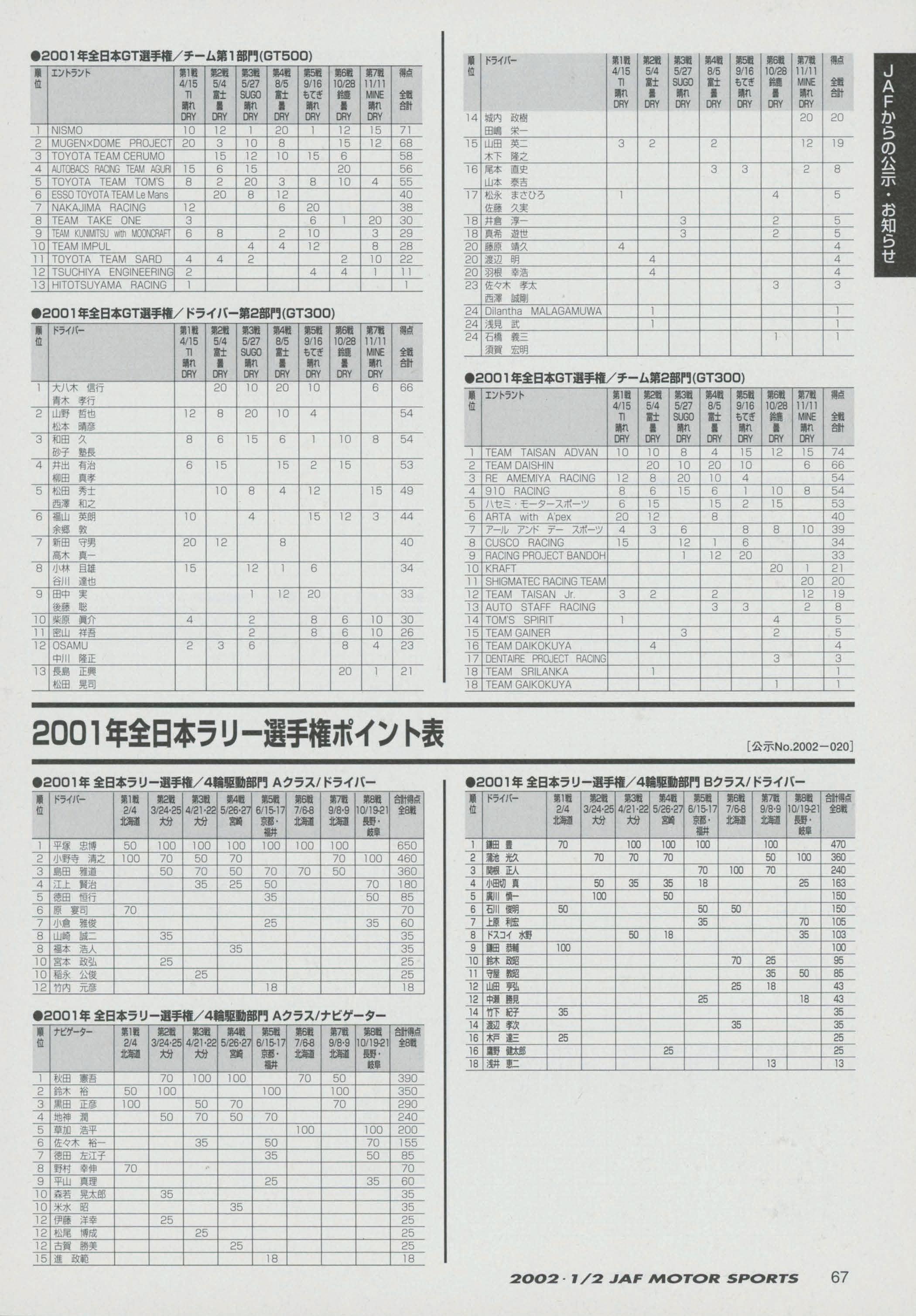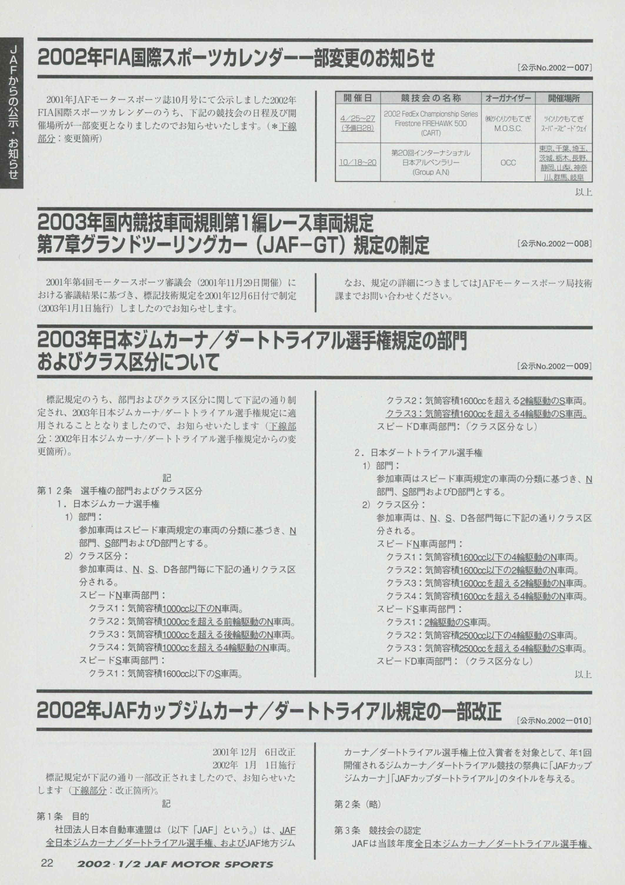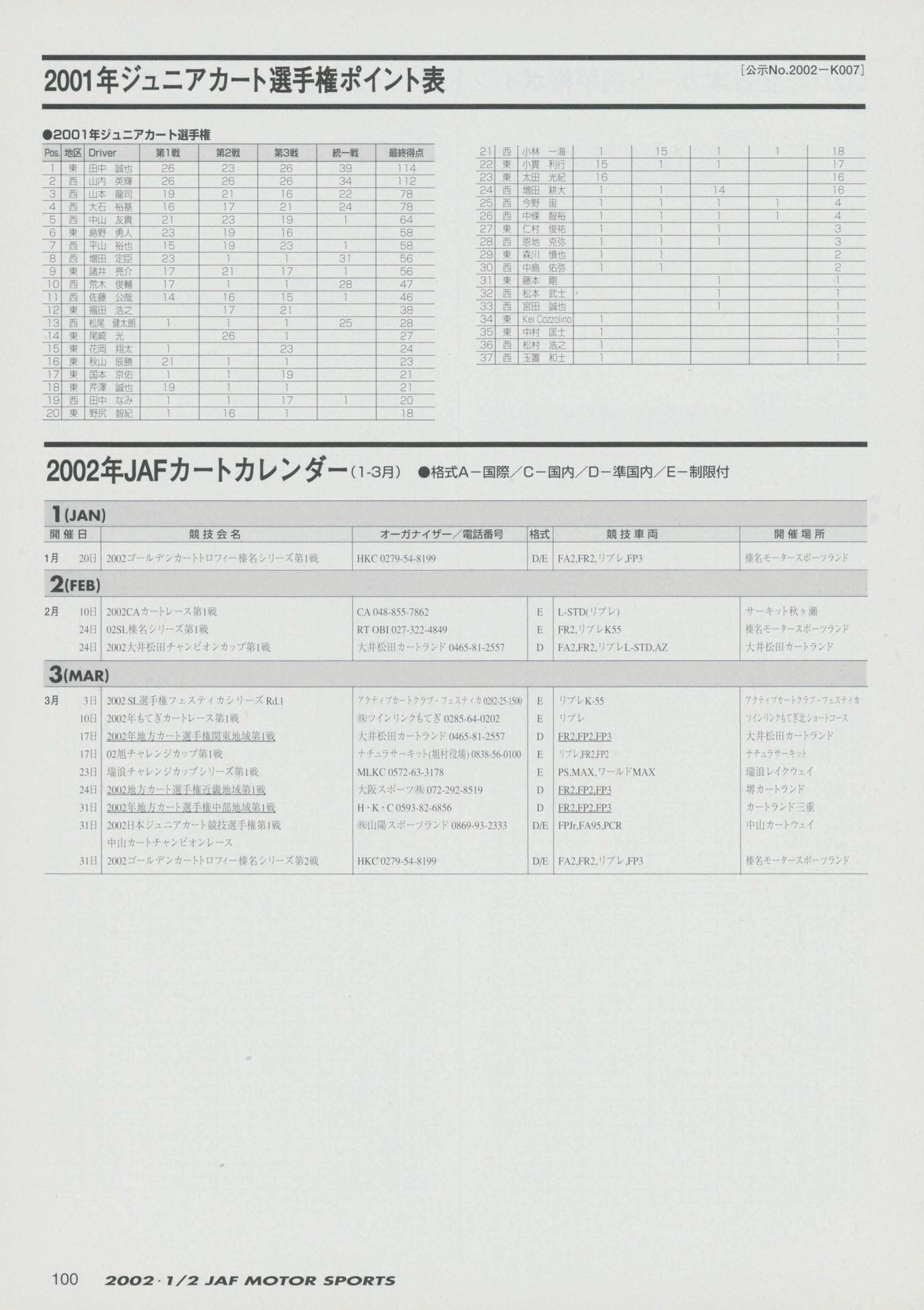 JAFスポーツ 2002年 1/2月号(第36巻 第1号 2002年1月1日発行)