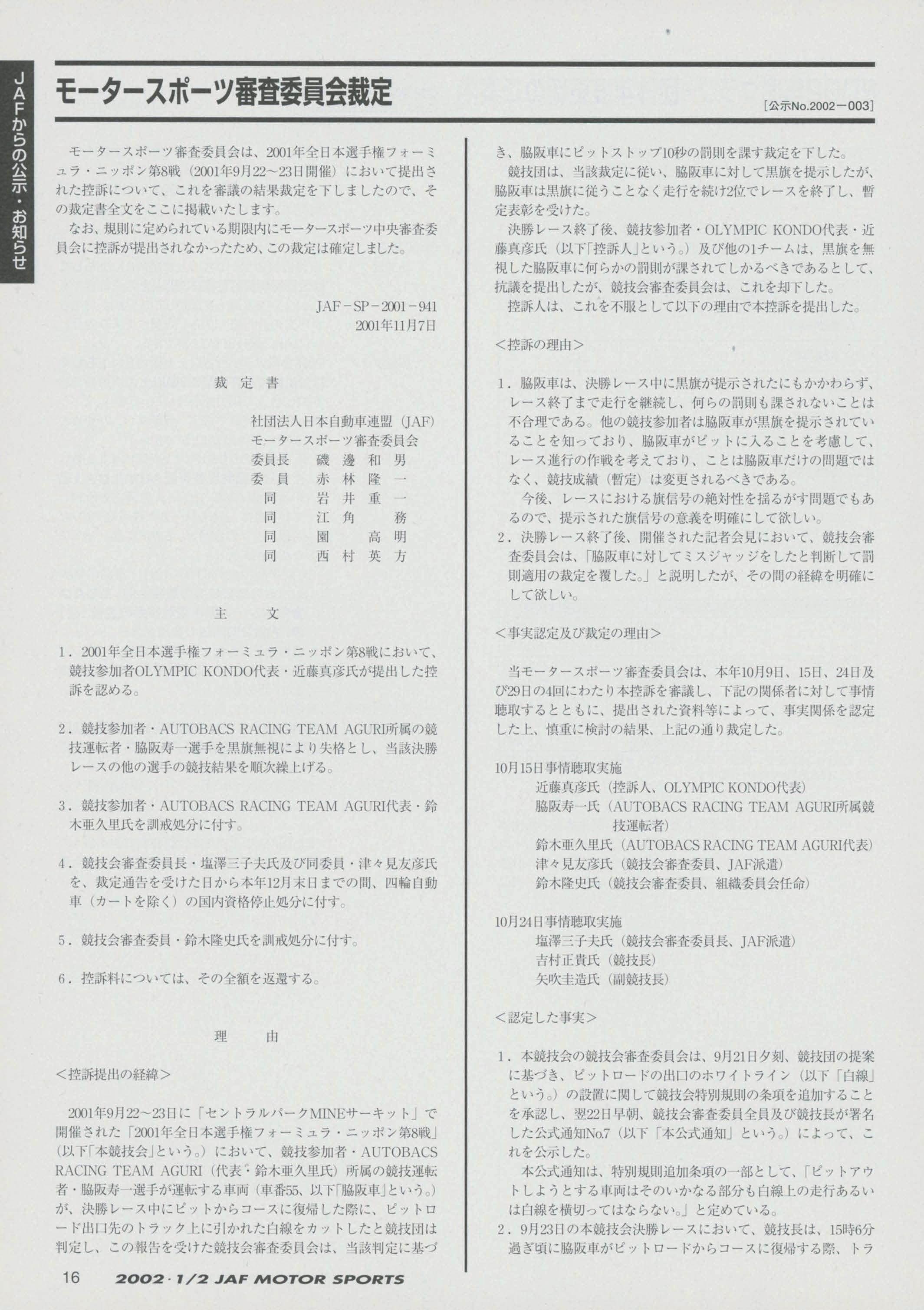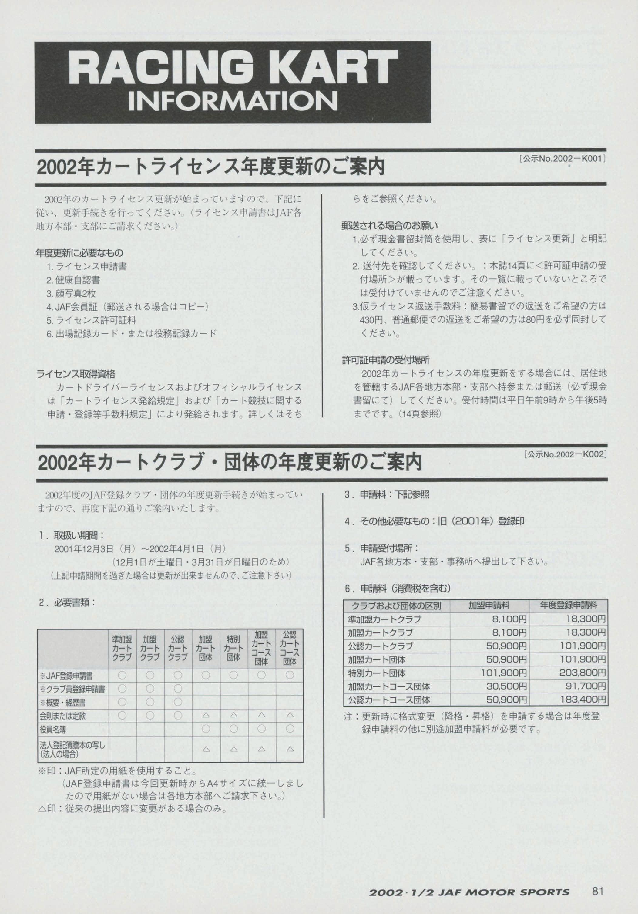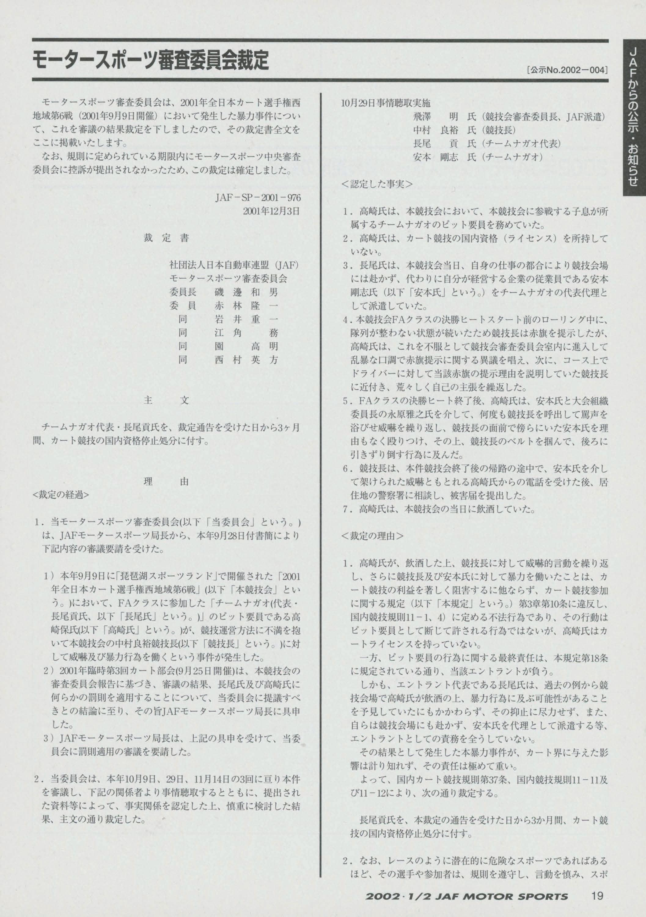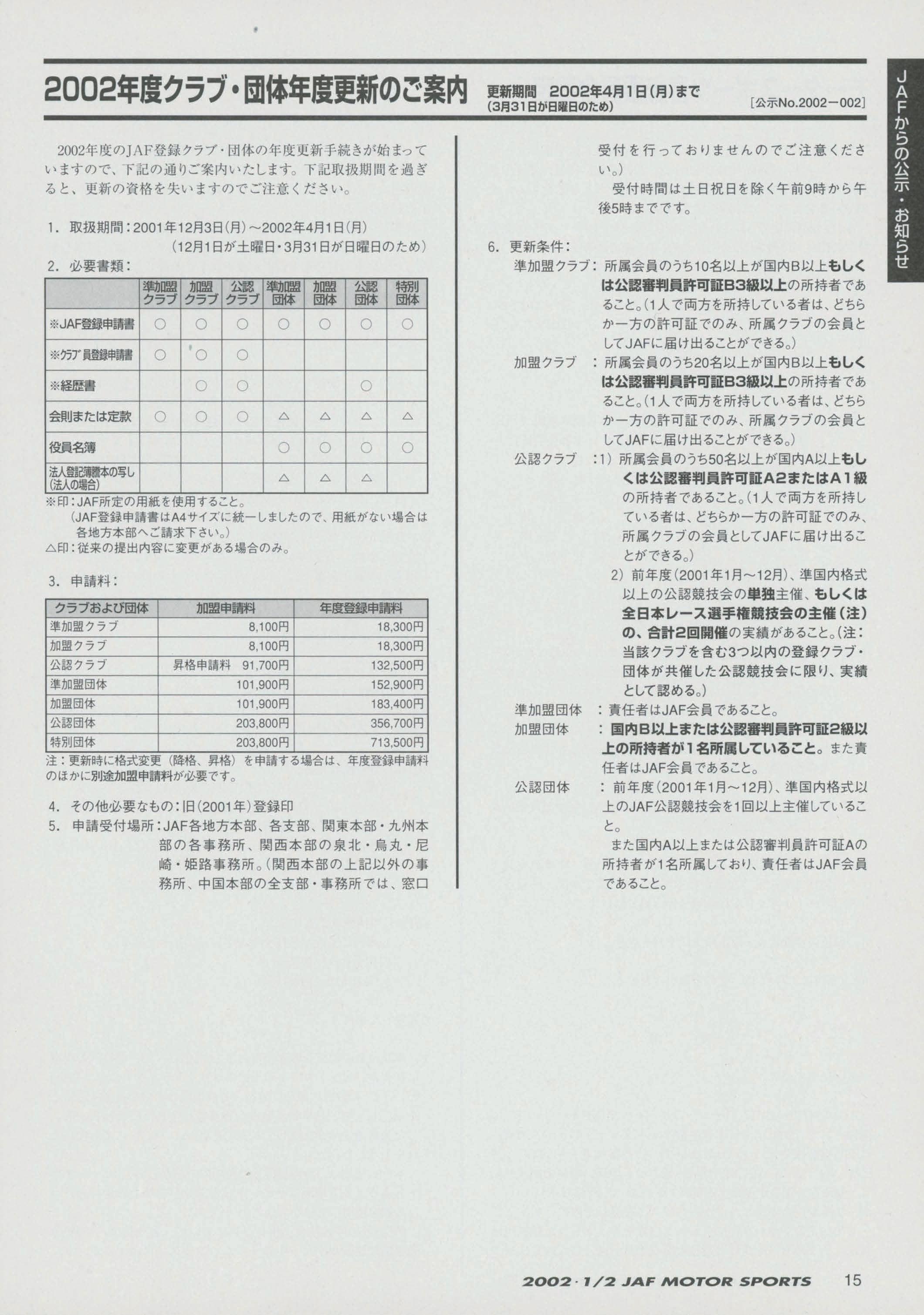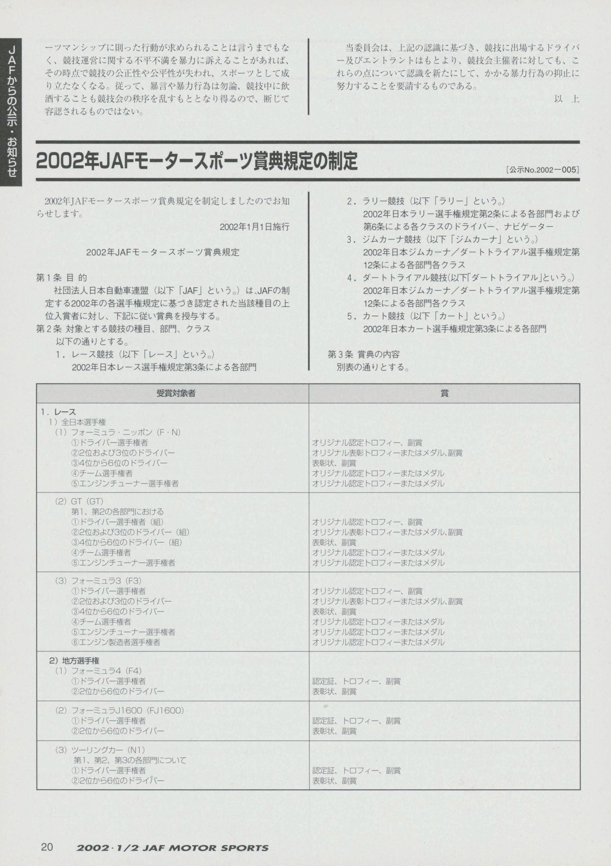 JAFスポーツ 2002年 1/2月号(第36巻 第1号 2002年1月1日発行)