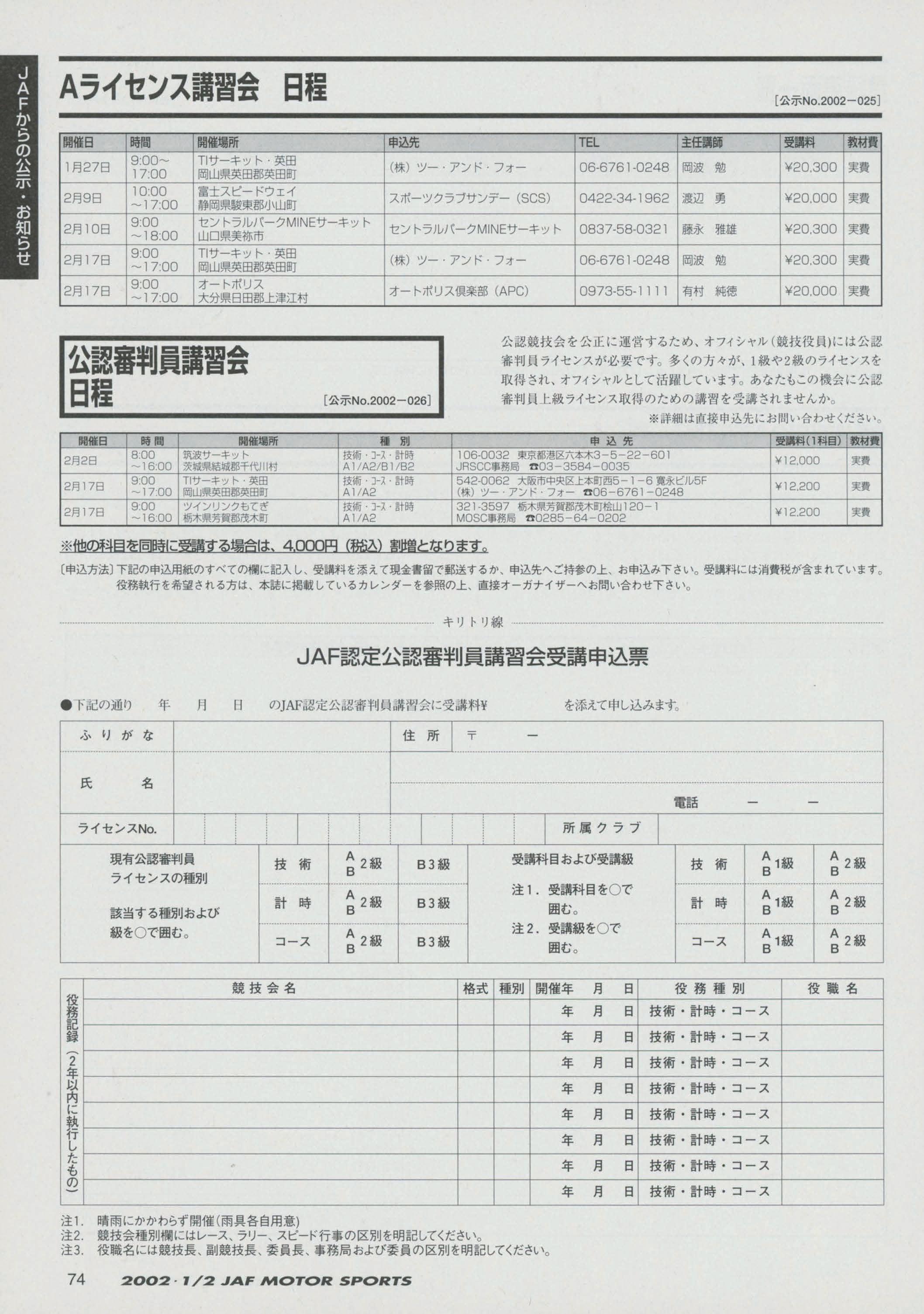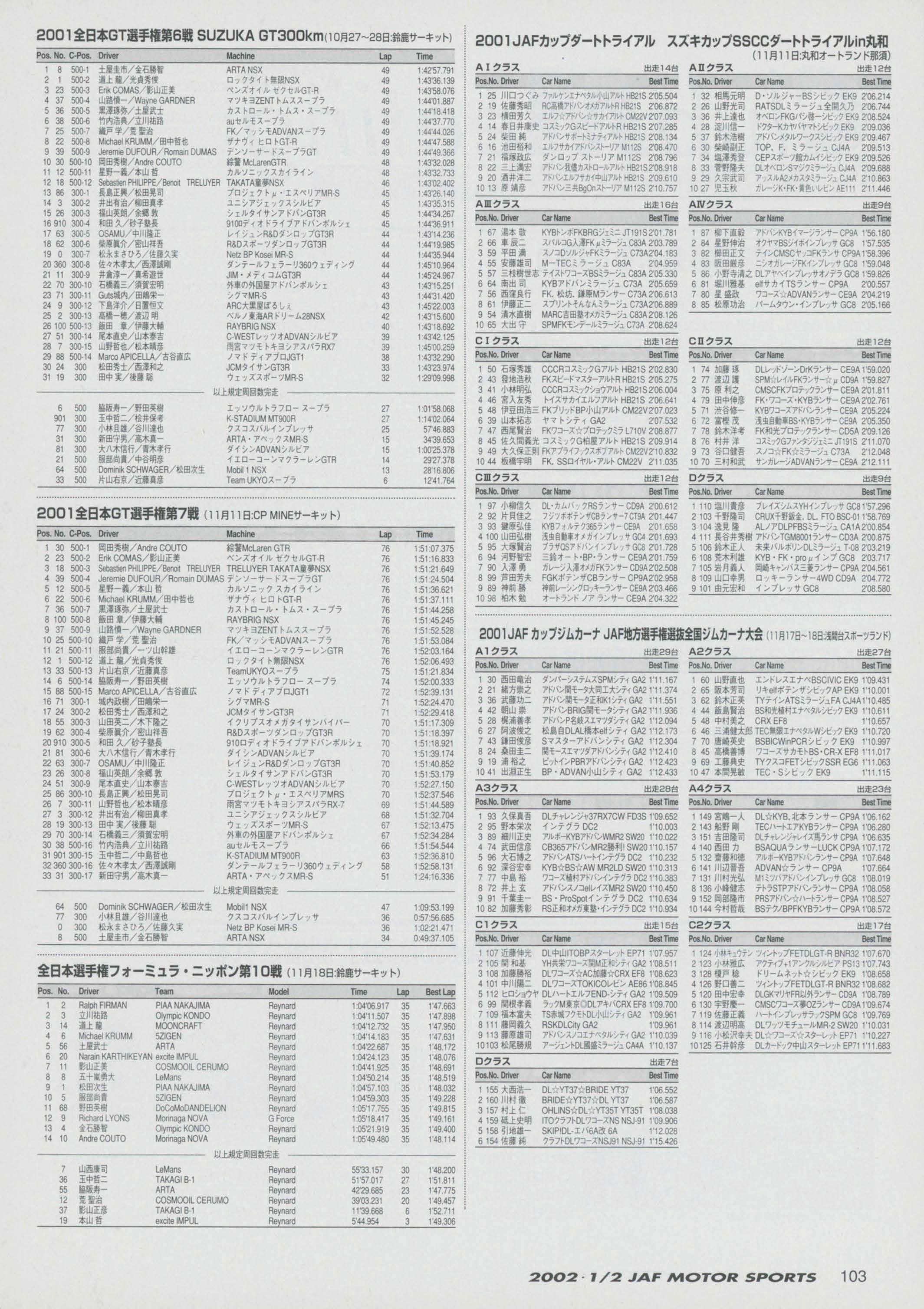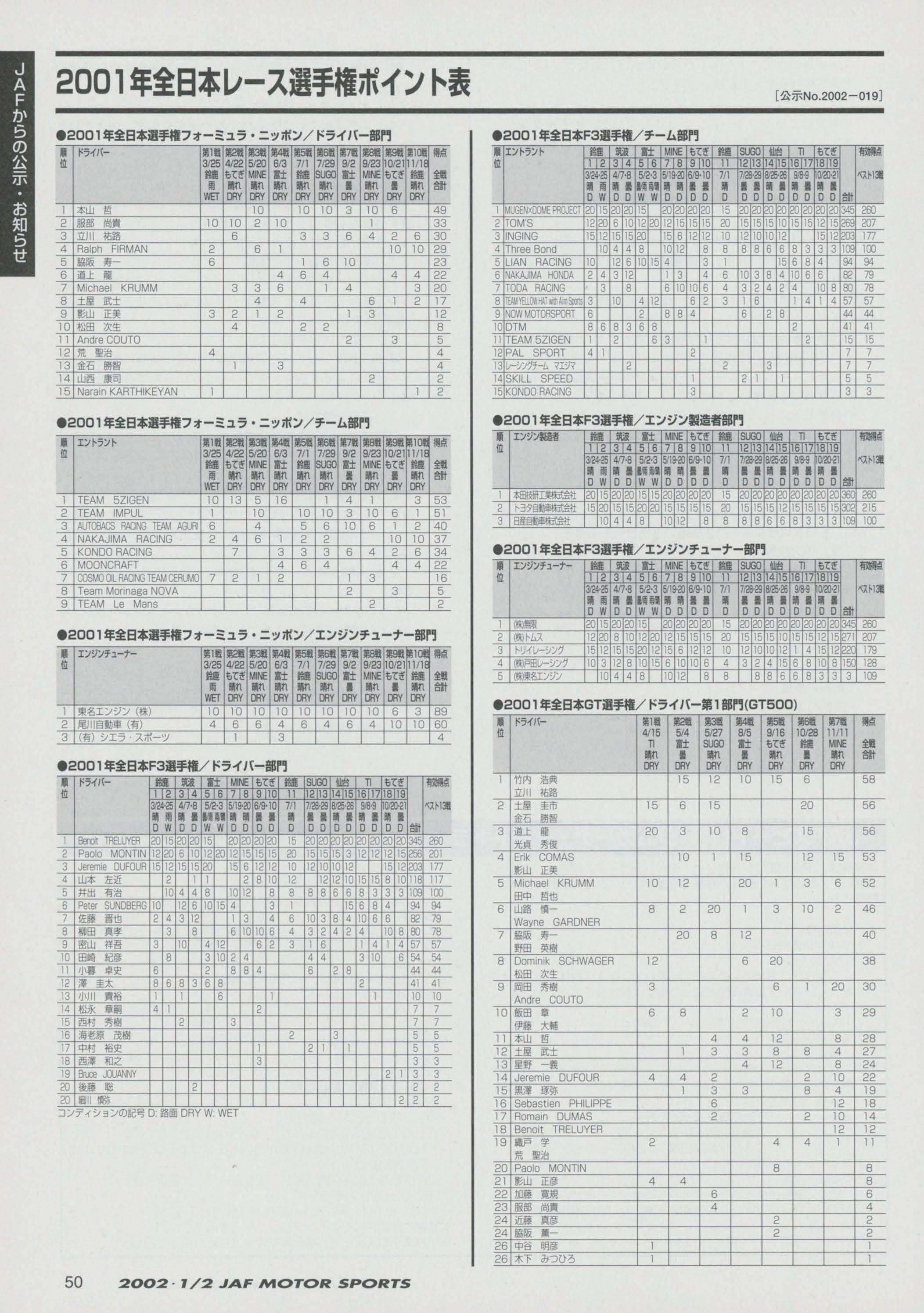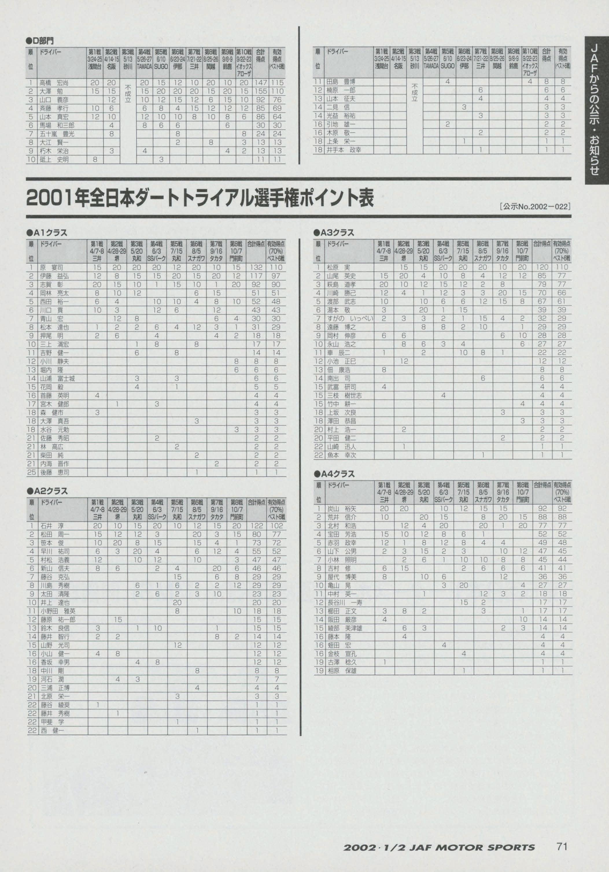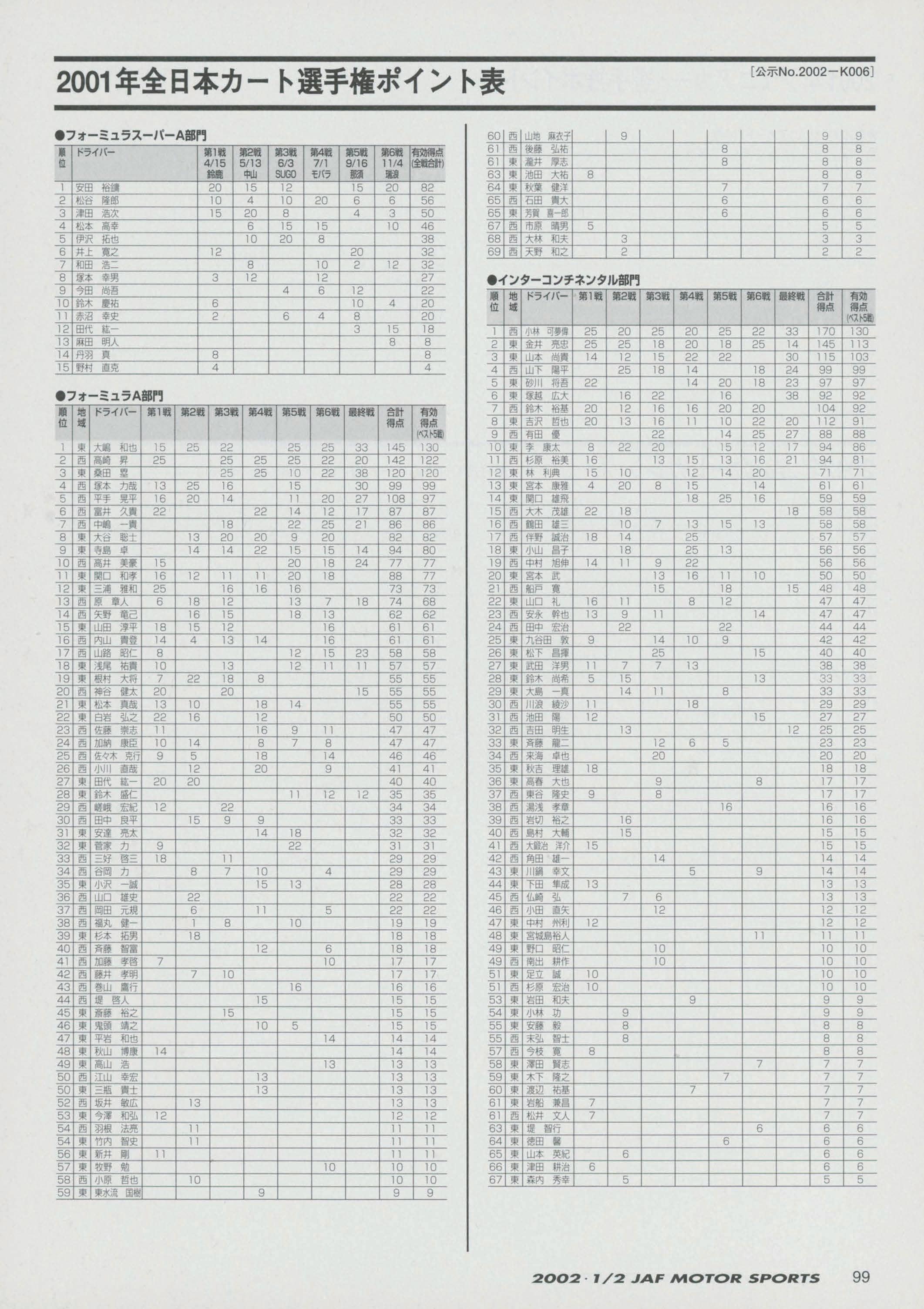 JAFスポーツ 2002年 1/2月号(第36巻 第1号 2002年1月1日発行)