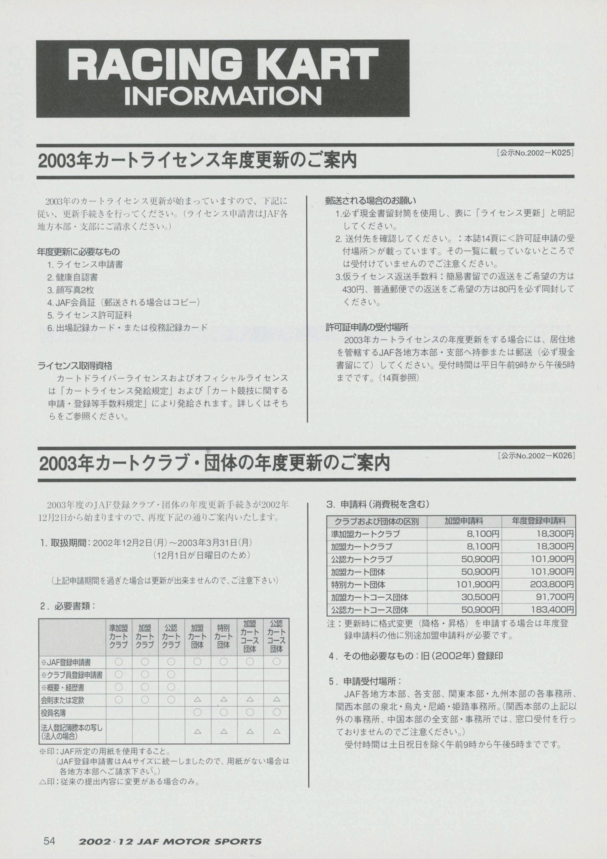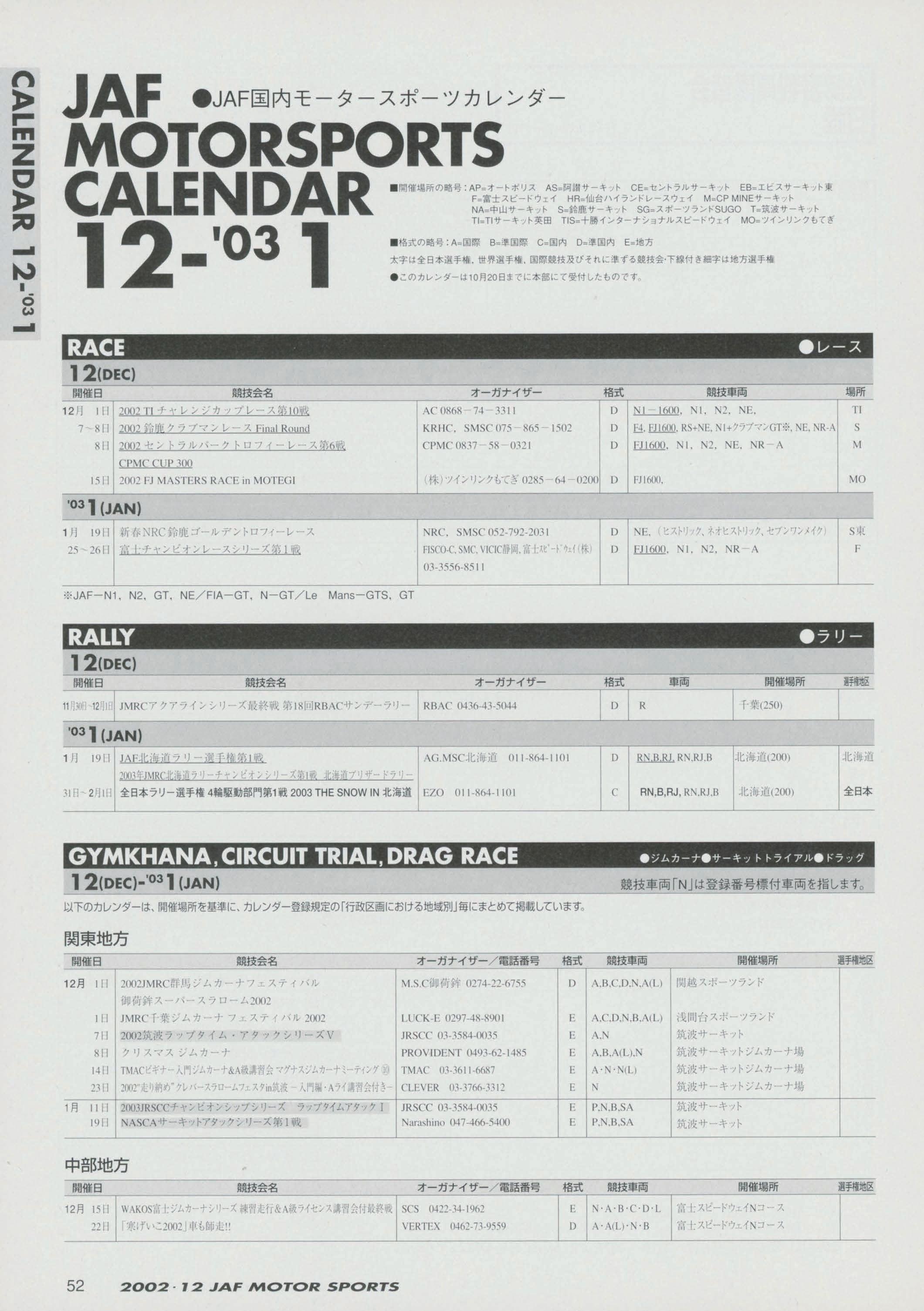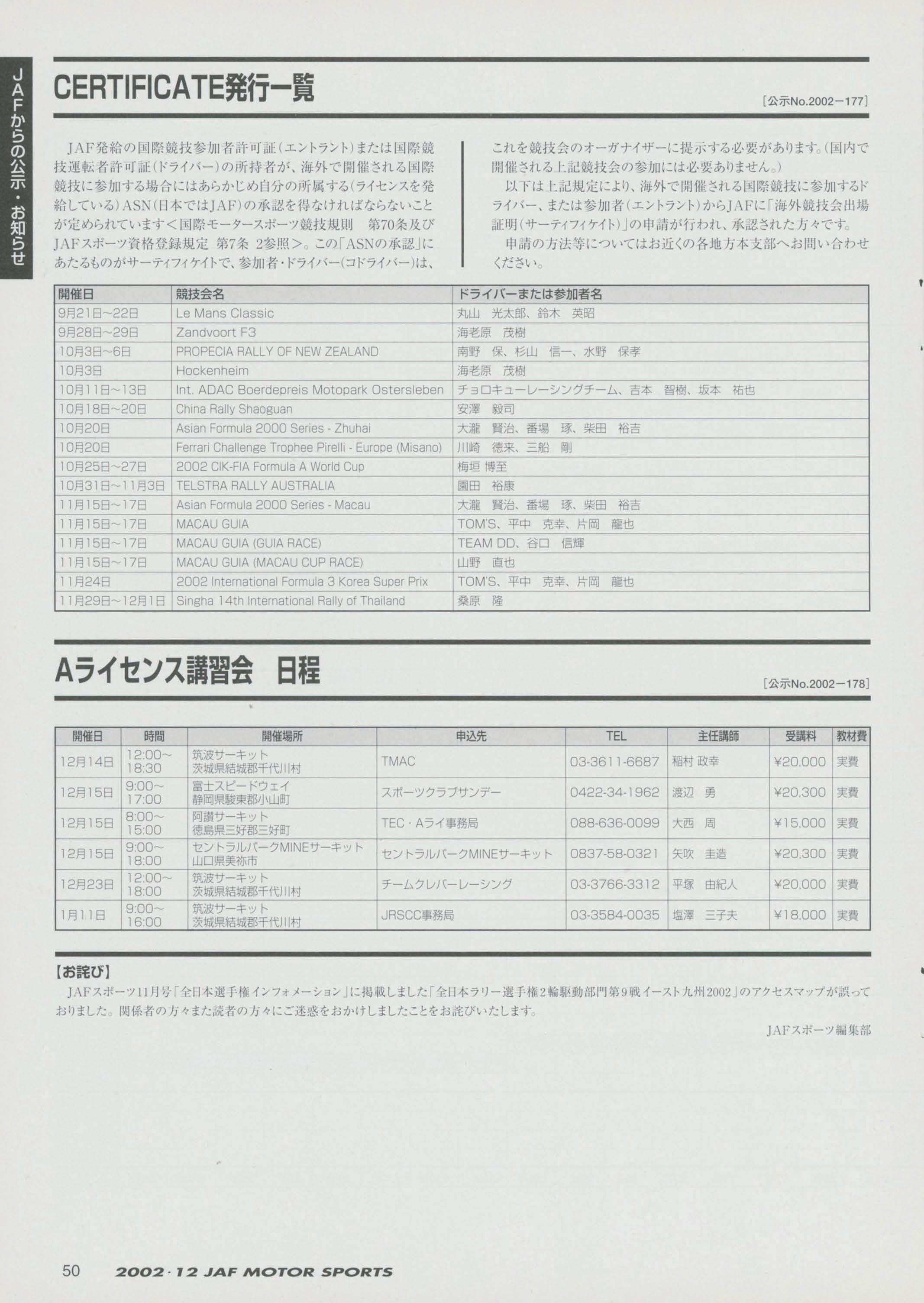 JAFスポーツ 2002年 12月号(第36巻 第10号 2002年12月1日発行)