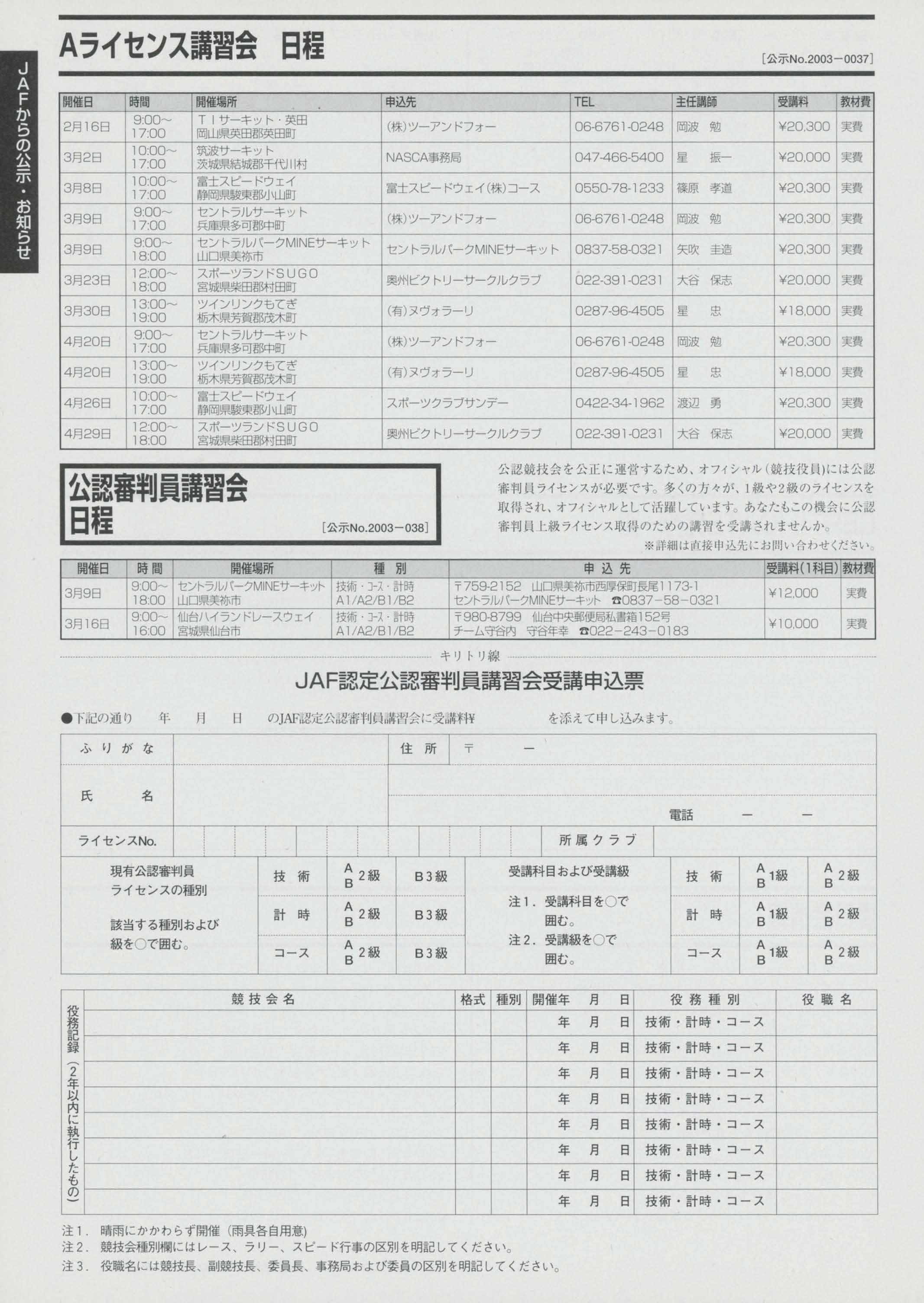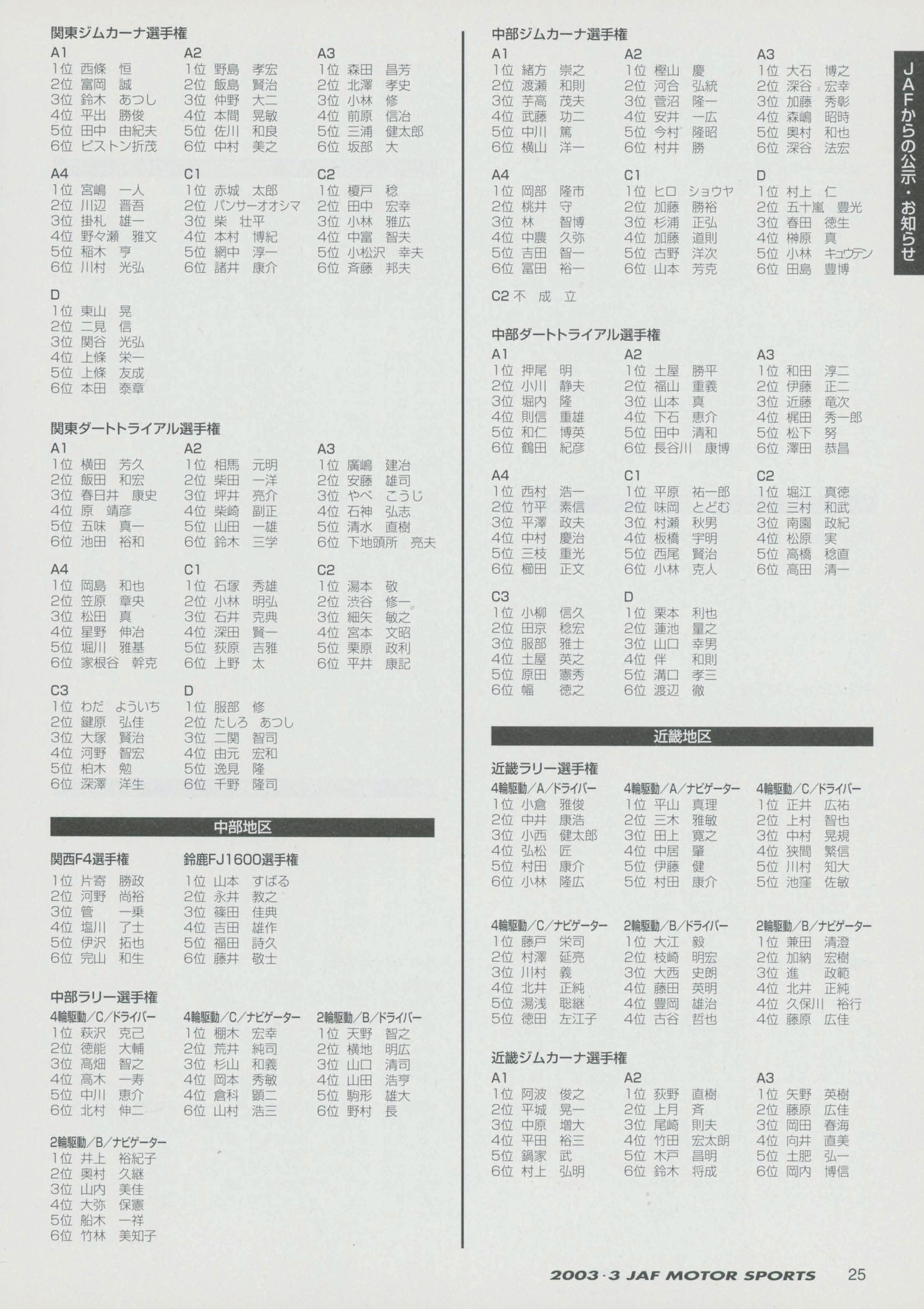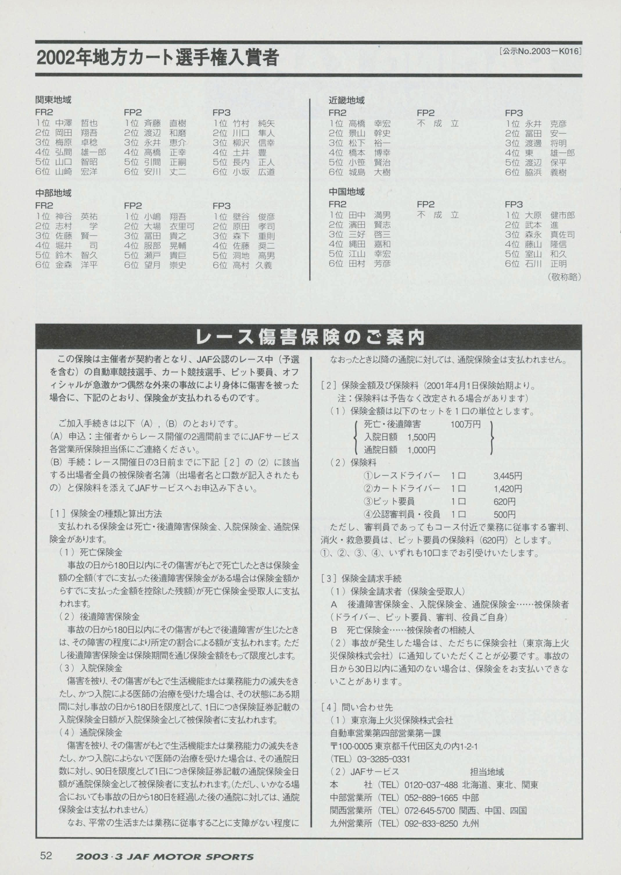 JAFスポーツ 2003年 3月号(第37巻 第2号 2003年3月1日発行)
