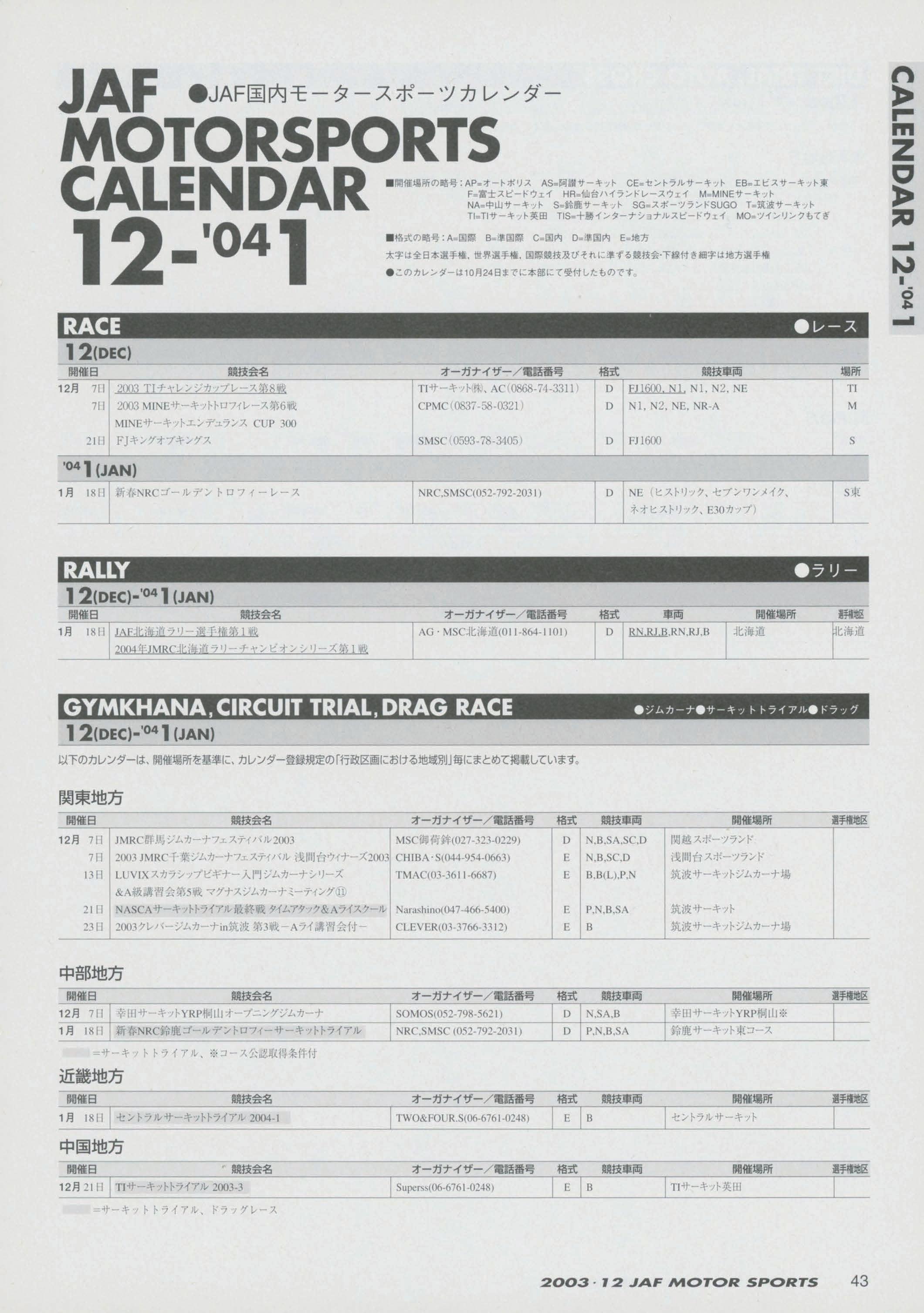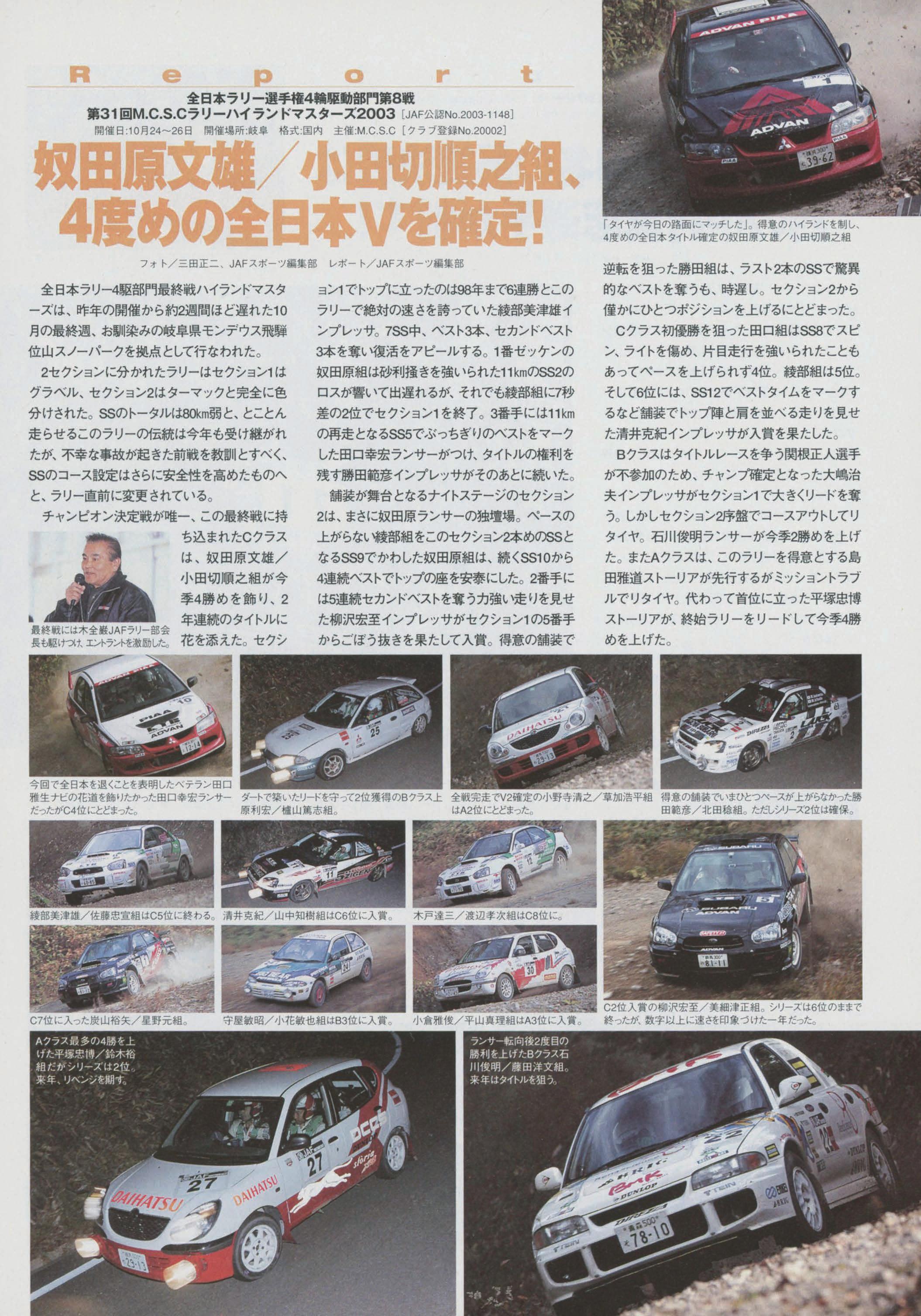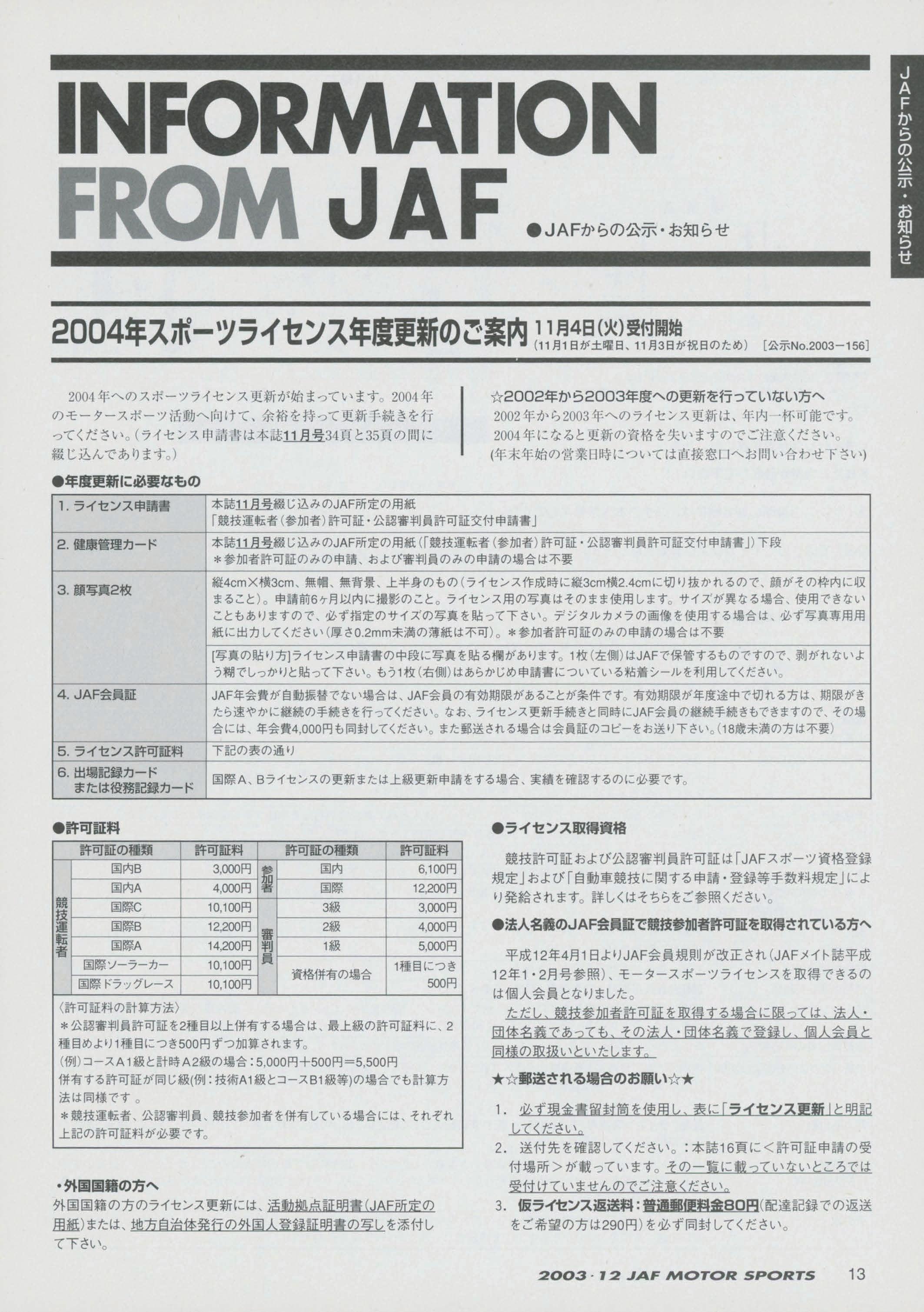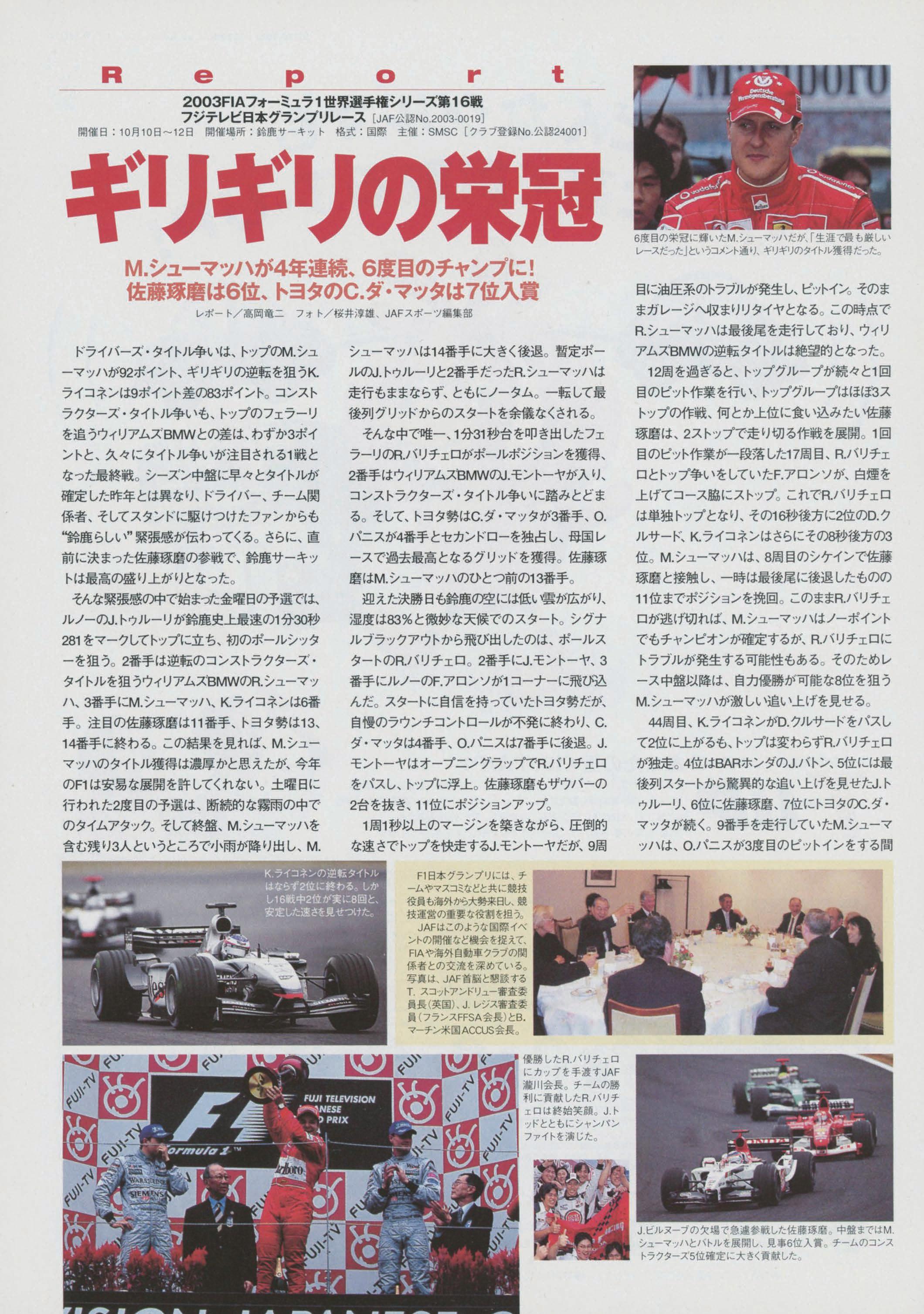 JAFスポーツ 2003年 12月号(第37巻 第10号 2003年12月1日発行)