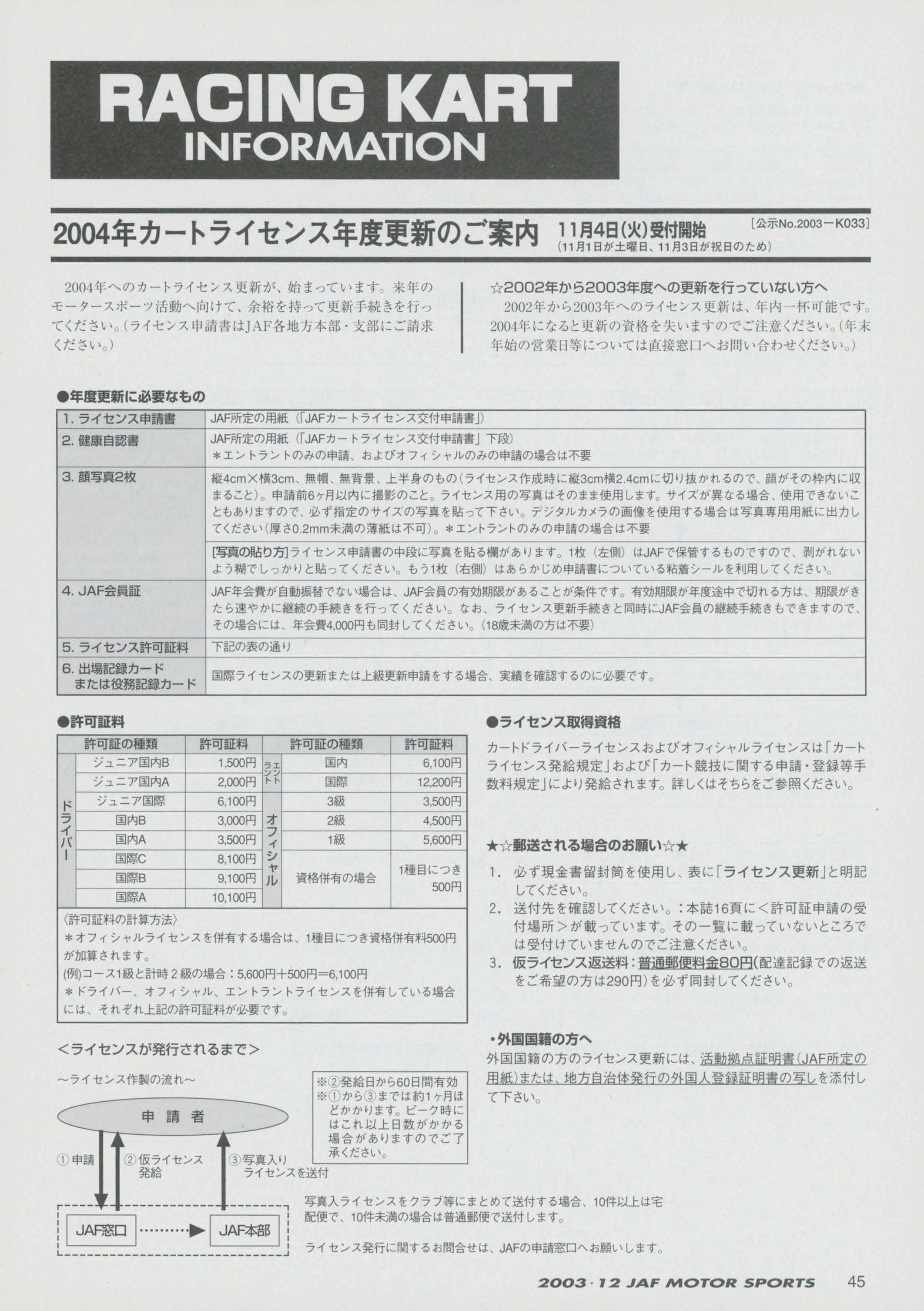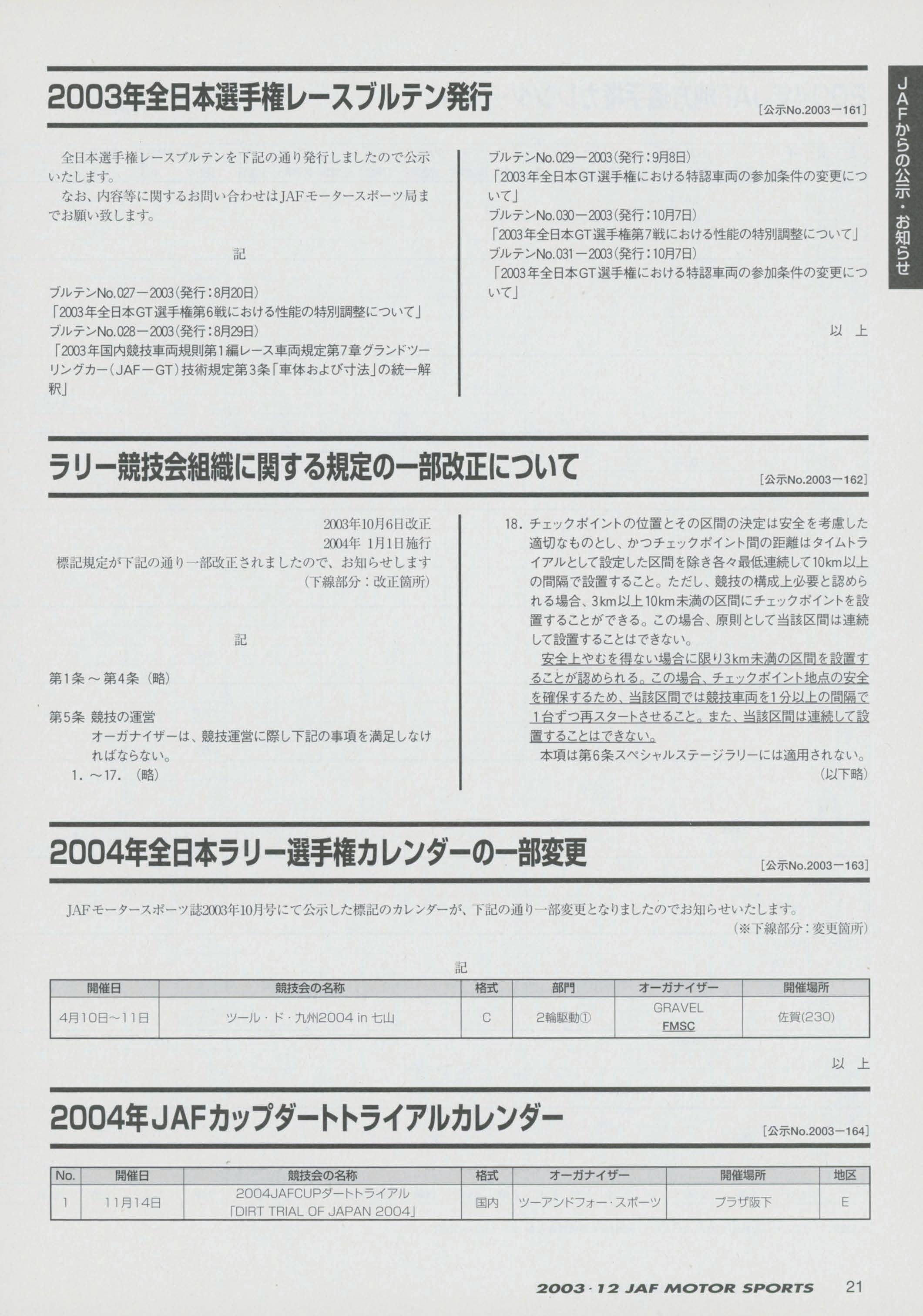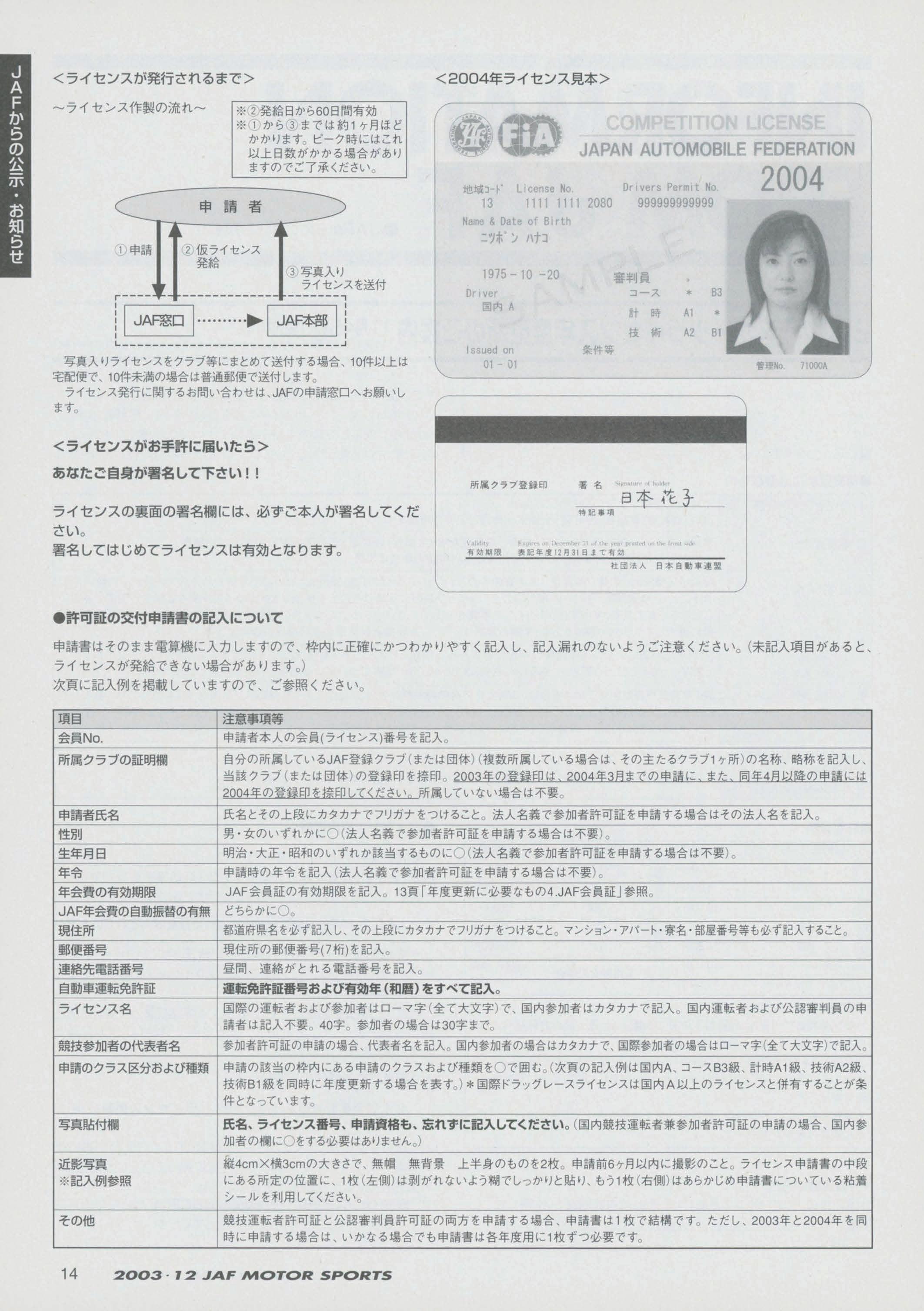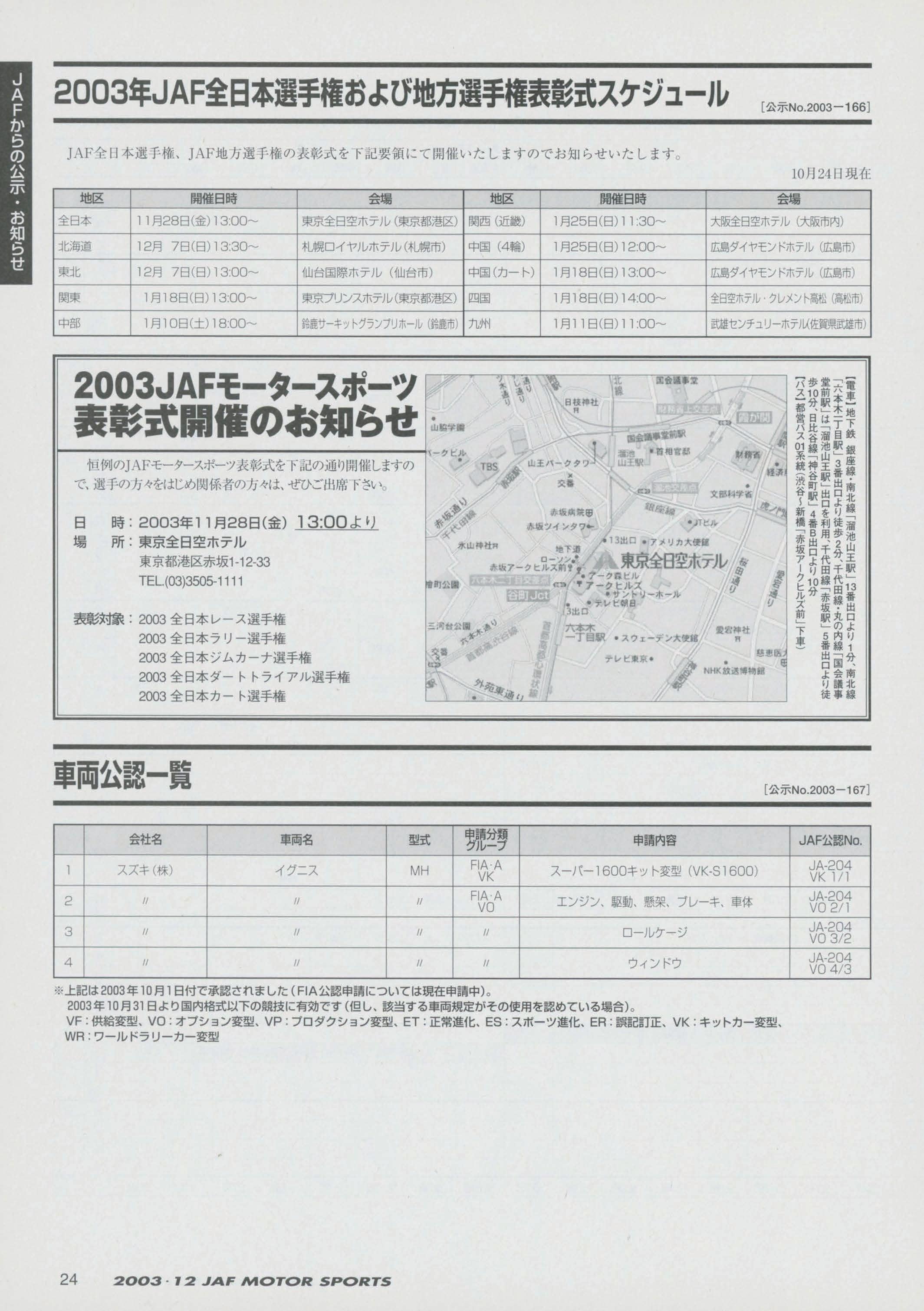 JAFスポーツ 2003年 12月号(第37巻 第10号 2003年12月1日発行)