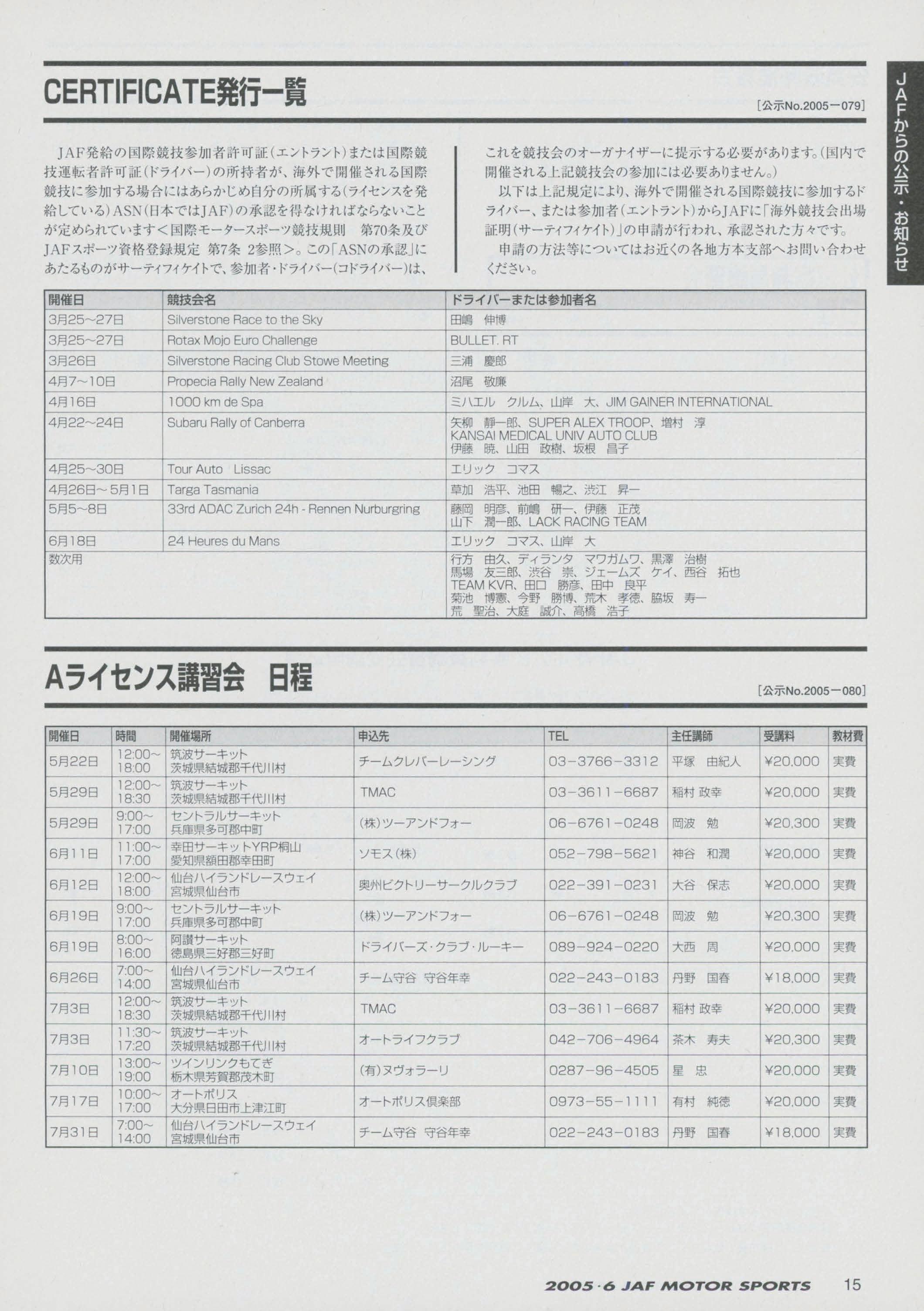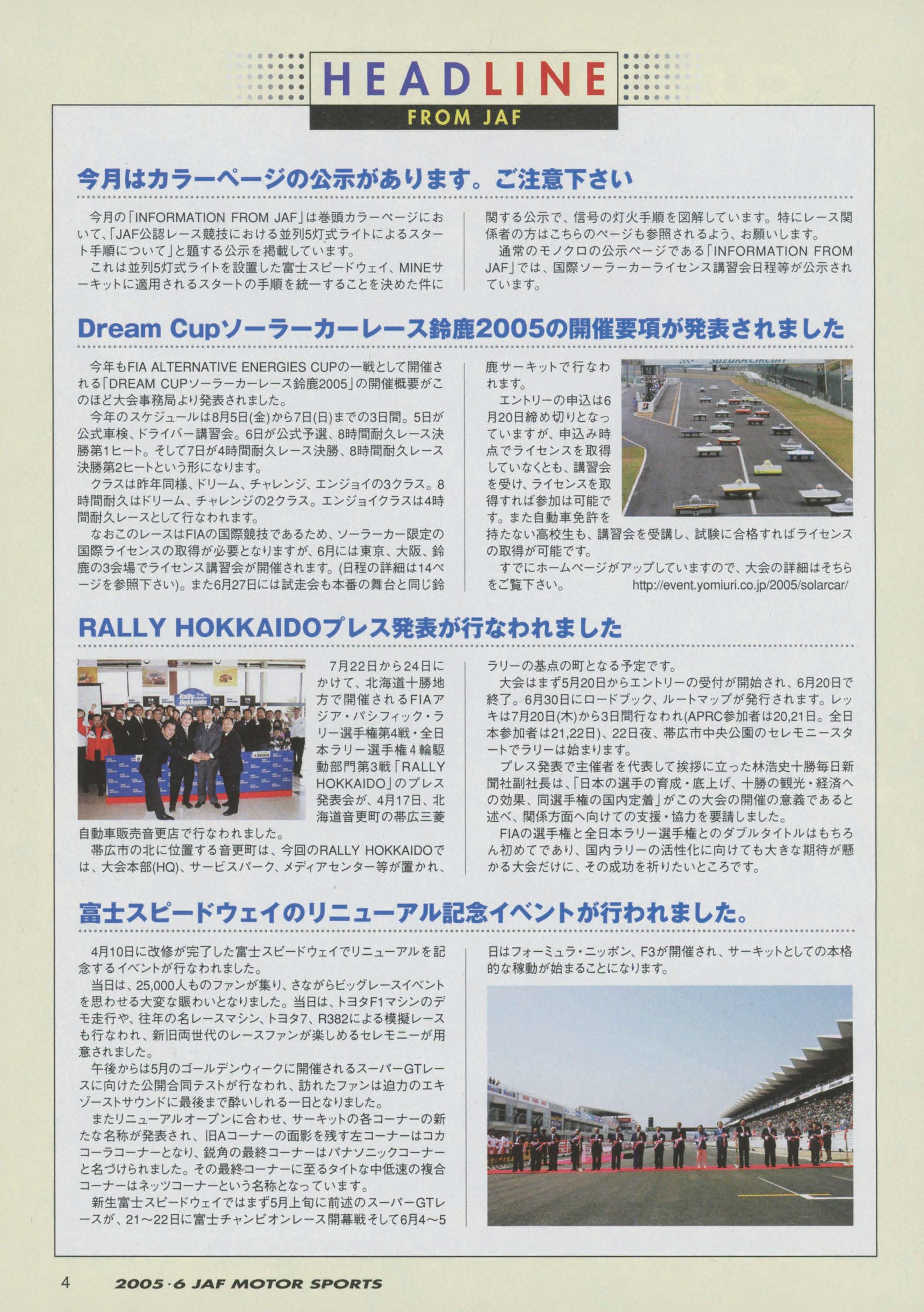 JAFスポーツ 2005年 6月号(第39巻 第5号 2005年6月1日発行)