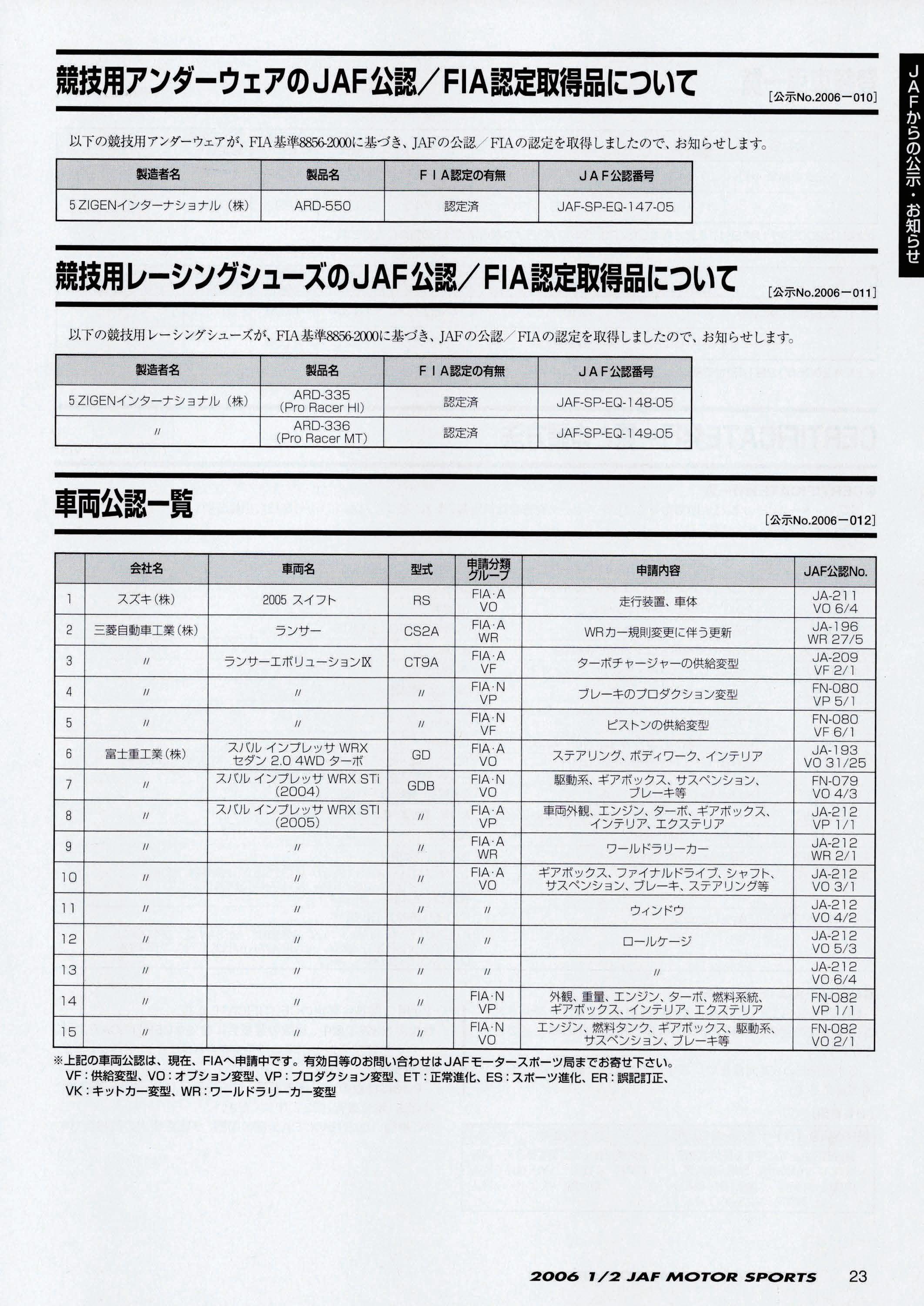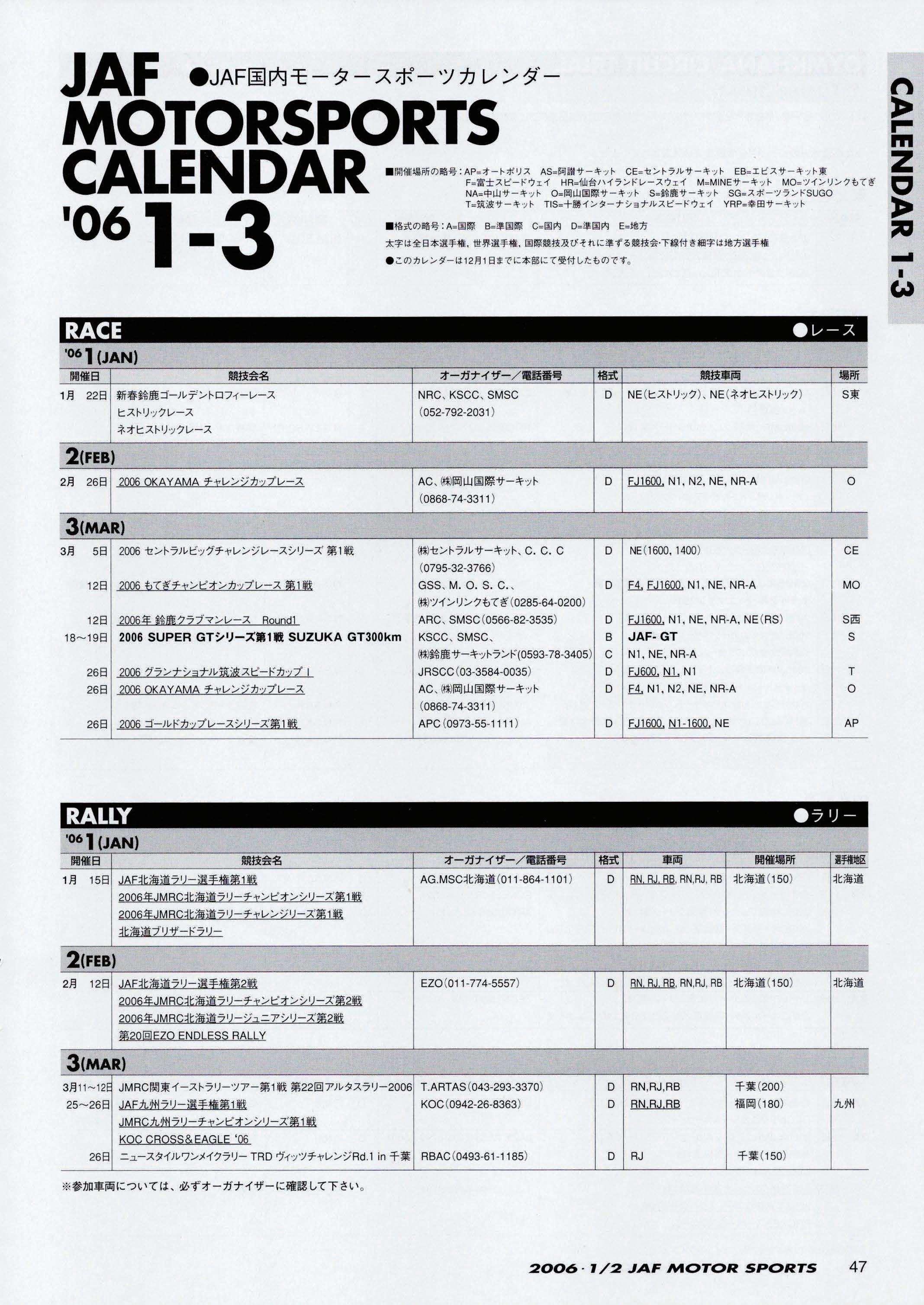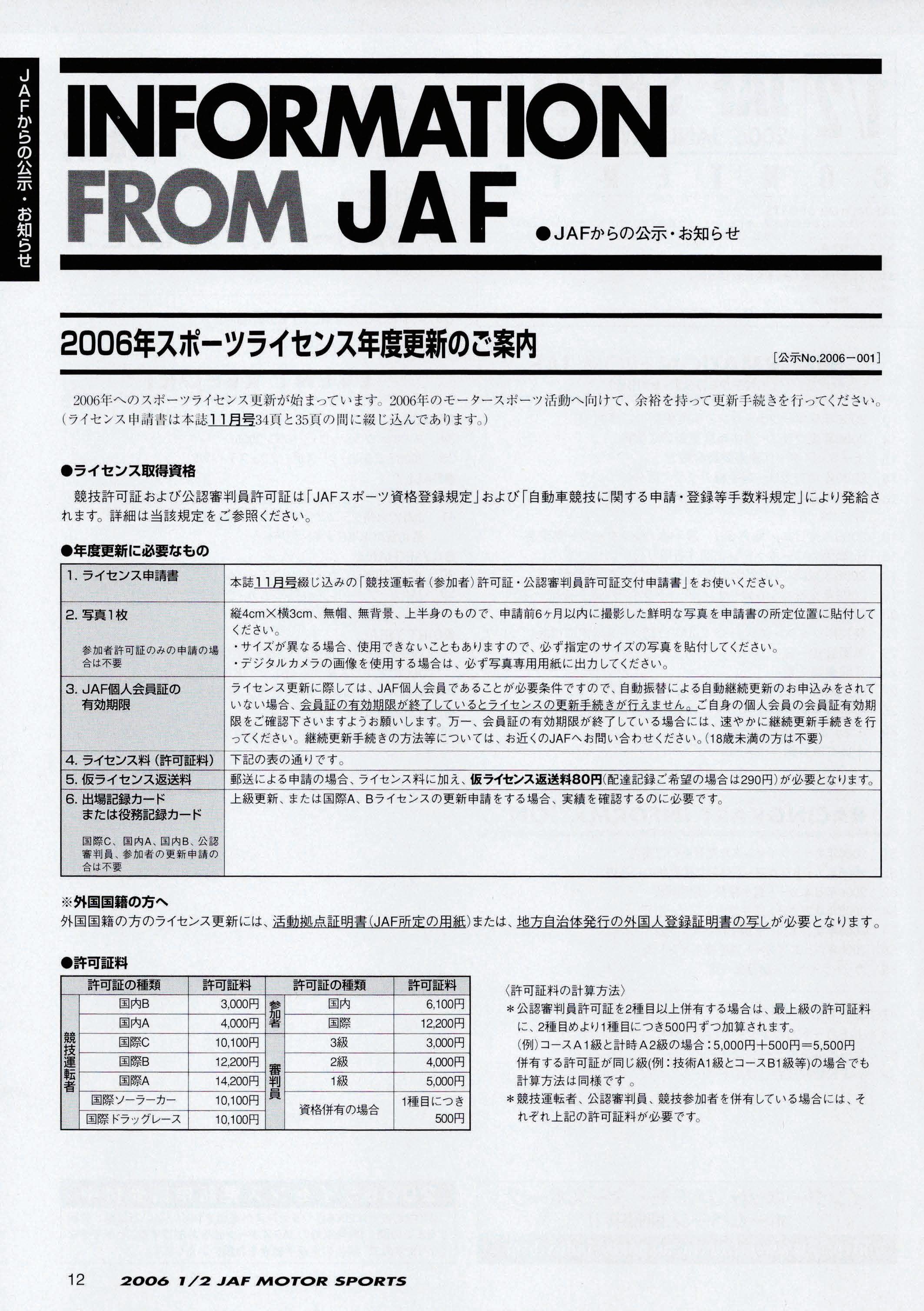 JAFスポーツ 2006年 1/2月号(第40巻 第1号 2006年1月1日発行)