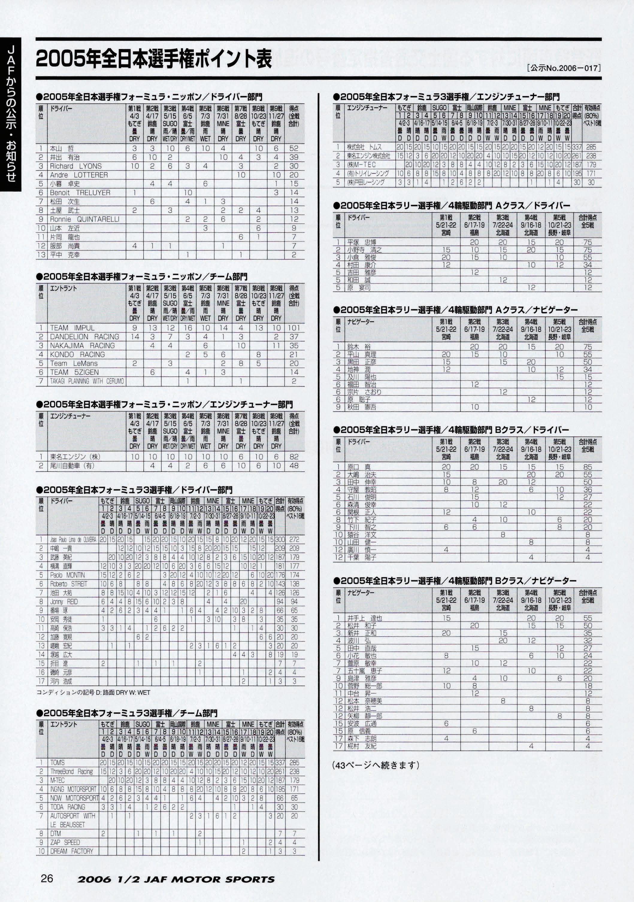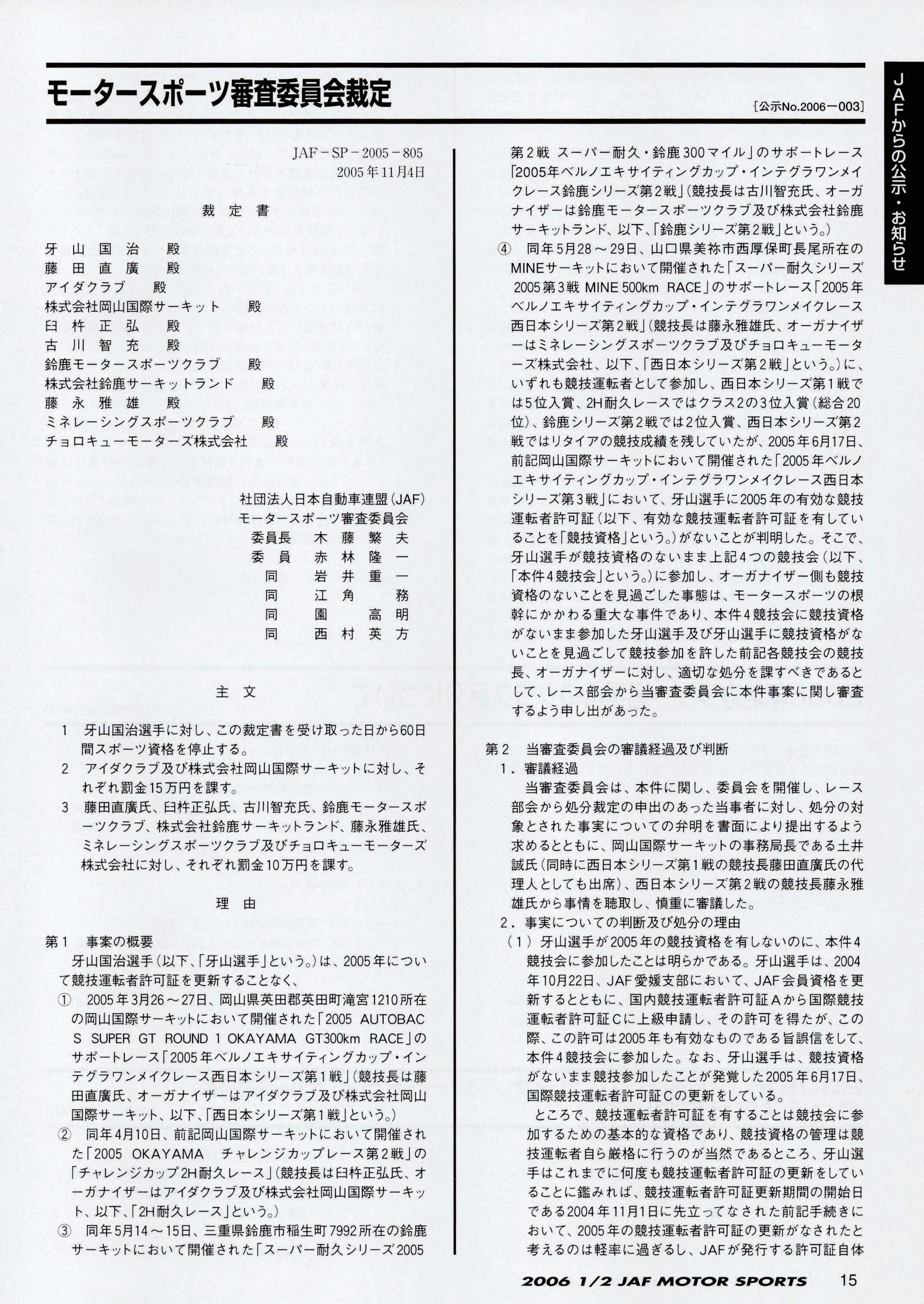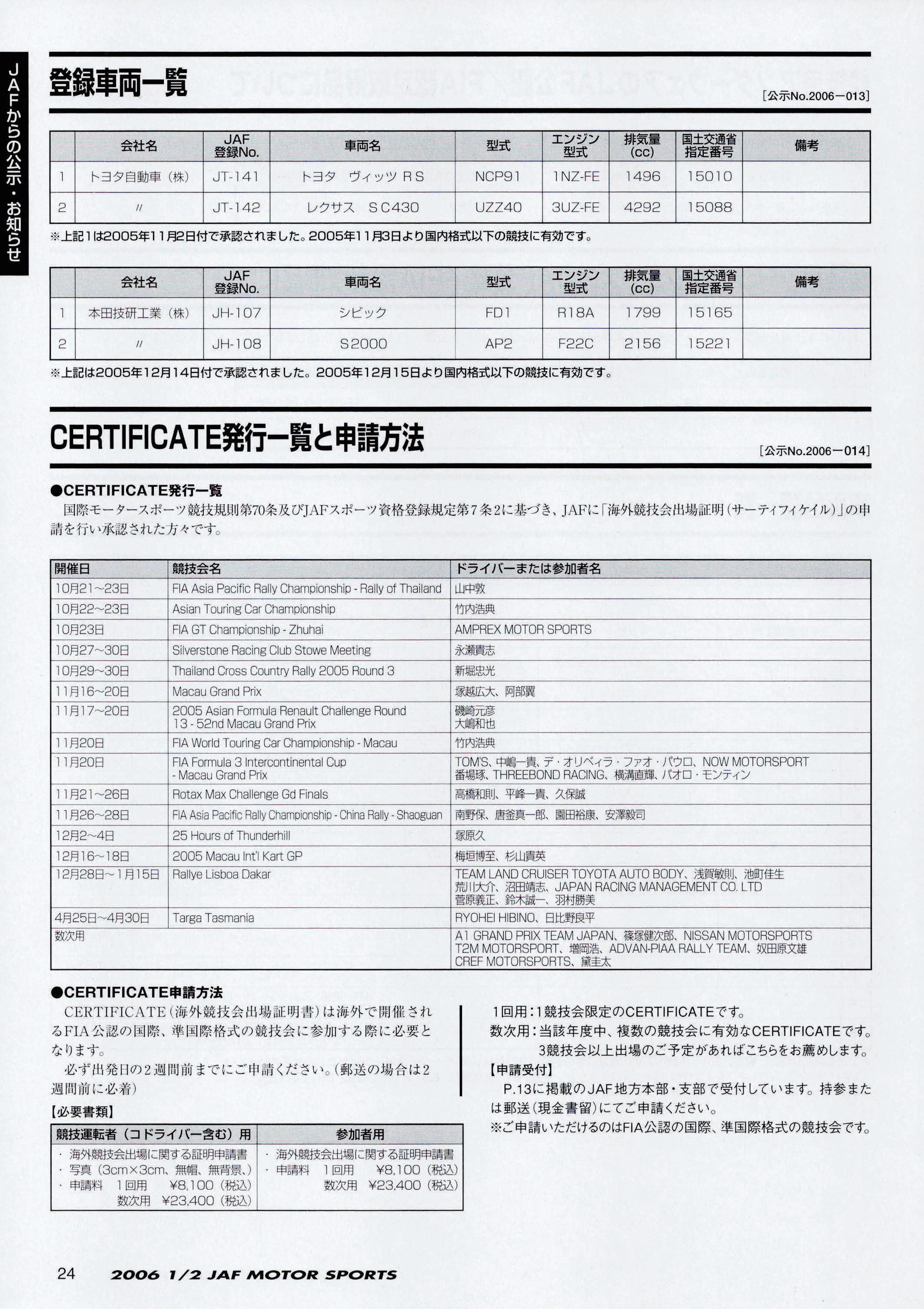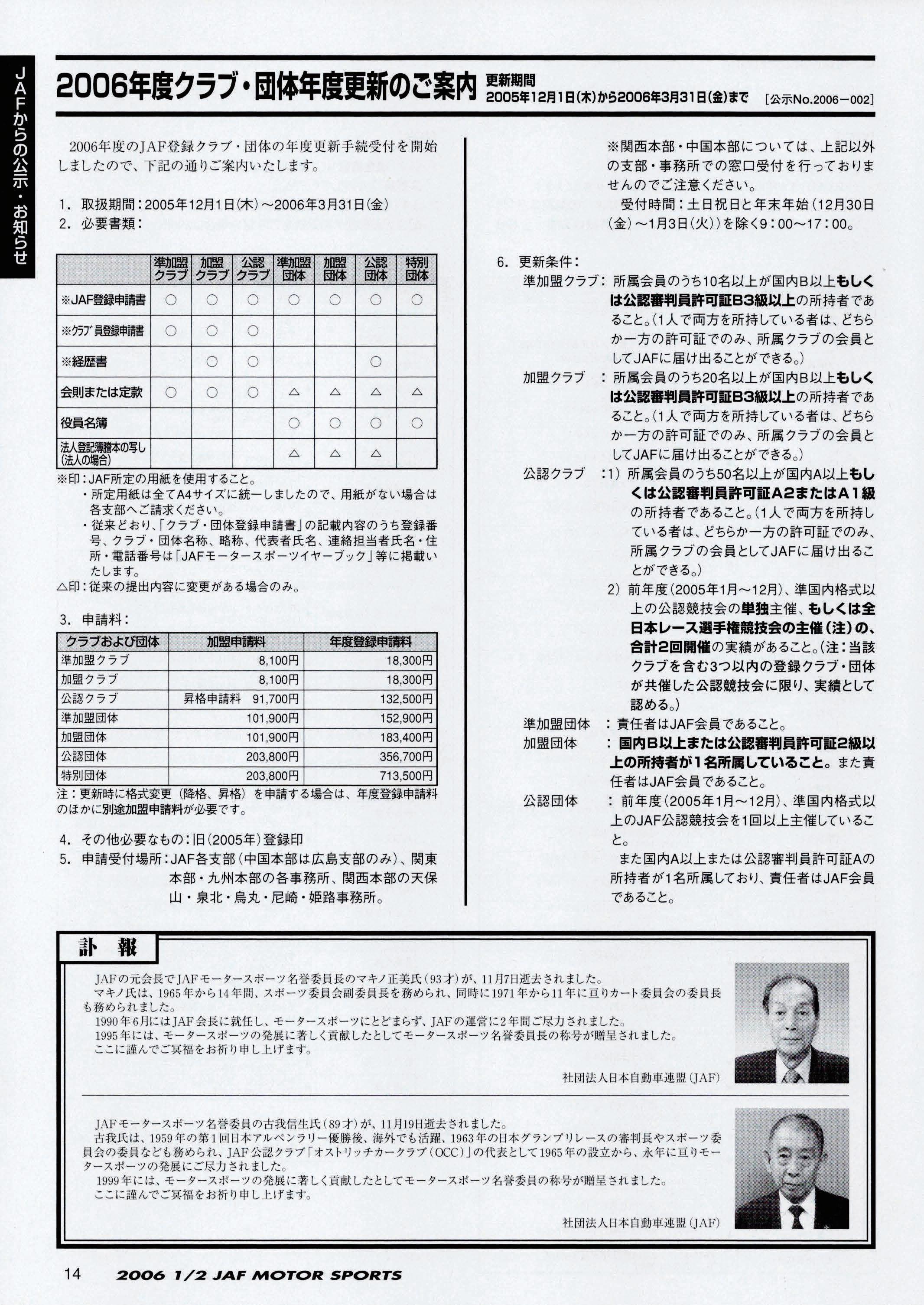JAFスポーツ 2006年 1/2月号(第40巻 第1号 2006年1月1日発行)