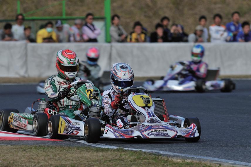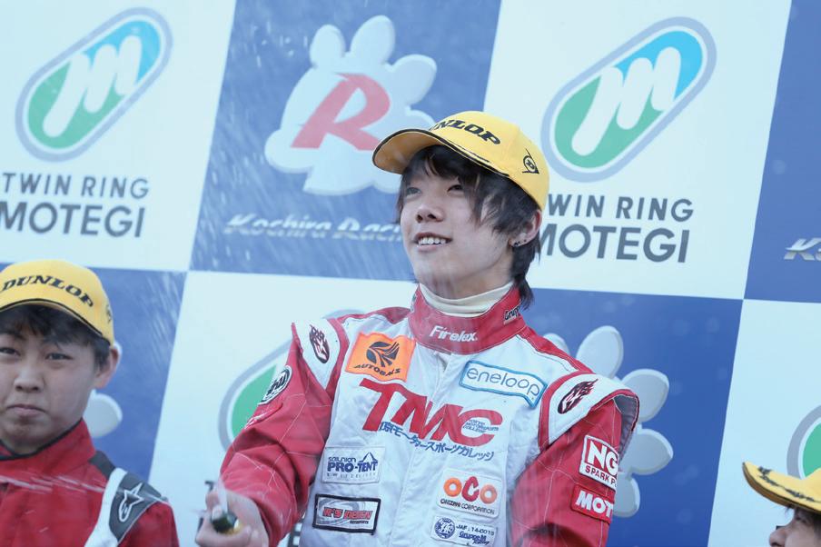 地方カート選手権FP-3部門/12. 平均年齢39.8歳のレースは、 津野和彦選手が予選も決勝も圧巻の独り舞台で優勝。ジュニア カート選手権 FP-Jr Cadets部門/13. 決勝は佐藤蓮選手と 武井遙斗選手の一騎討ちに。レース中盤からは武井選手が先頭を ひた走ったが、ゴールまで残りふたつのコーナーで佐藤選手が逆 転に成功して勝利をさらった。地方カート選手権FS-125部門/ 14. 予選で最後尾グリッドから1位を奪った宮田莉朋選手が決勝も 制圧、独走ウィンを飾る。ジュニアカート選手権FP-Jr部門/ 15. 加瀬駿介選手が1周めからリードを広げてデビューウィンを達 成。青柳駿之介選手が大集団の戦いを制して2位に。森田大駿選 手が14番グリッドから3位フィニッシュを遂げた。
