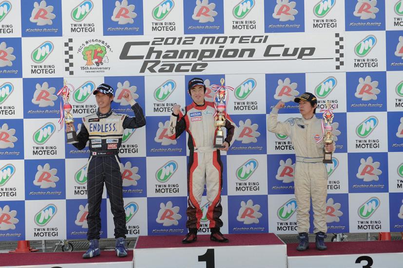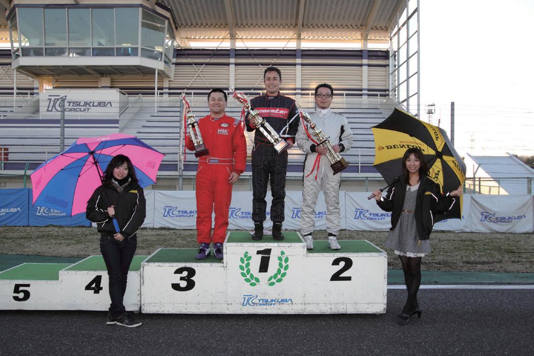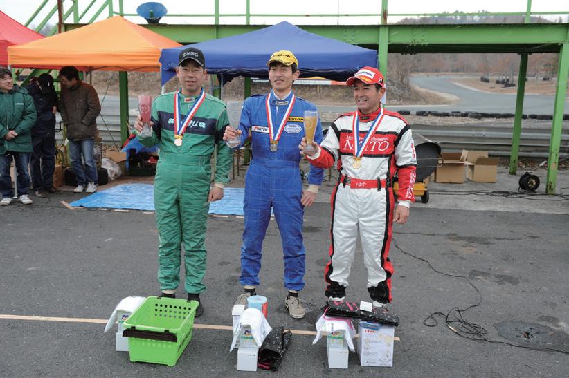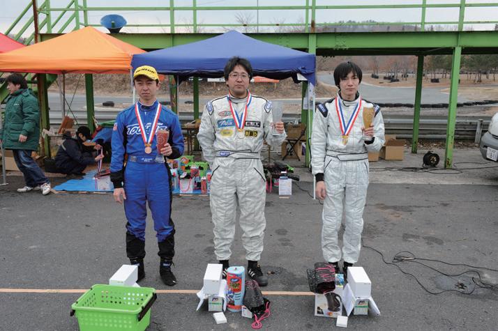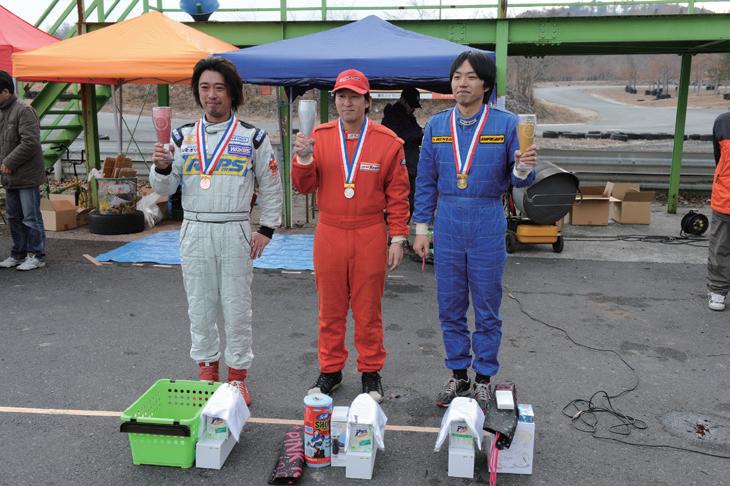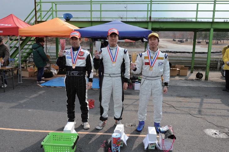 開幕戦で09年最終戦以来の優勝を飾った三村壮太郎選手。2.KF1部門2 年めの平木湧也選手。最後尾スタートを強いられながら2戦連続表彰台と 結果を残した。3.KF1で全日本デビューを飾った高橋悠之選手。開幕戦2 位、第2戦3位と早くも連続表彰台をゲット。