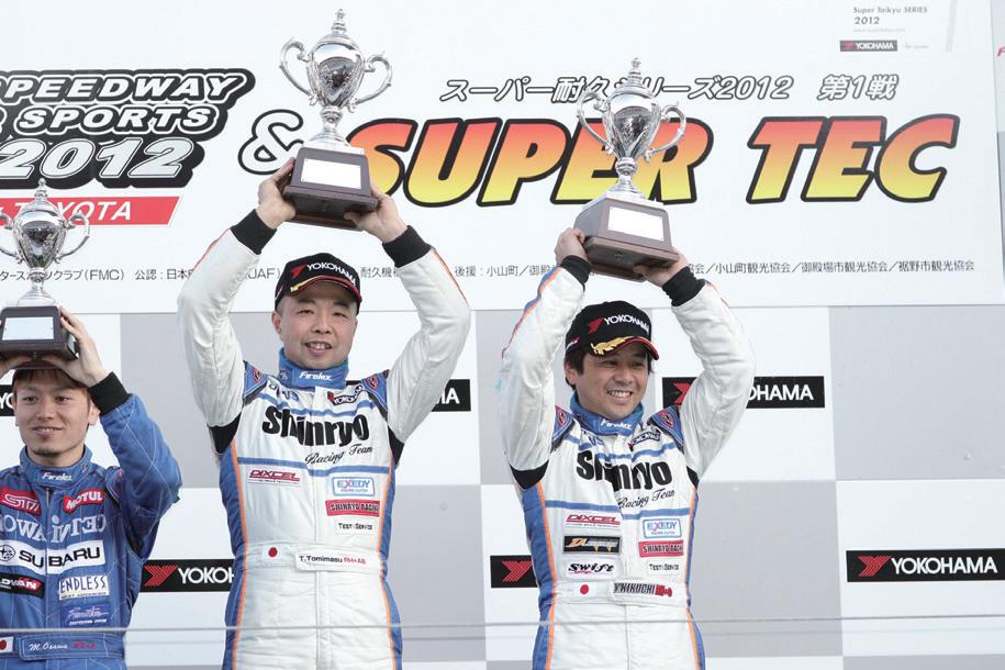 1. メルセデスSLSのS耐デビューウィンを飾ったGT3クラス谷口信輝、ファリーク・ハイルマン、ドミニク・アンの3選手(左 から)。2.ST-1クラスENDLESS・ADVAN・380RS-Cはマシントラブルで2位に甘んじた。3.4.日欧のスポーツカーが集った ST-1クラスは土屋武士/神取彦一郎/松井孝允組のSAMURAI Porscheが初優勝。